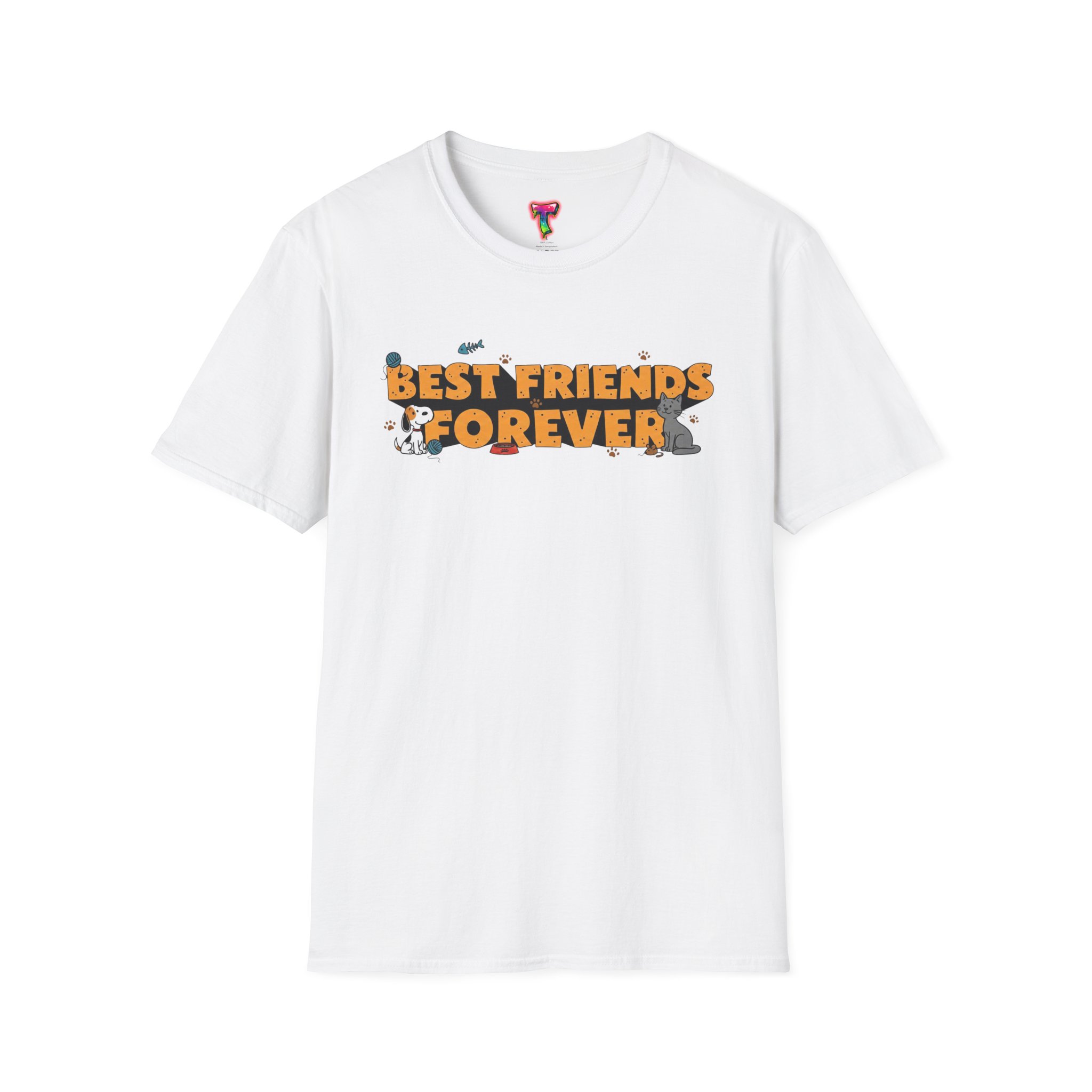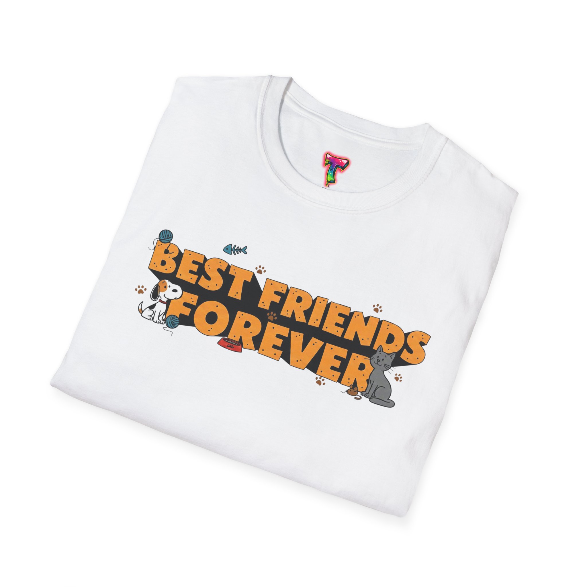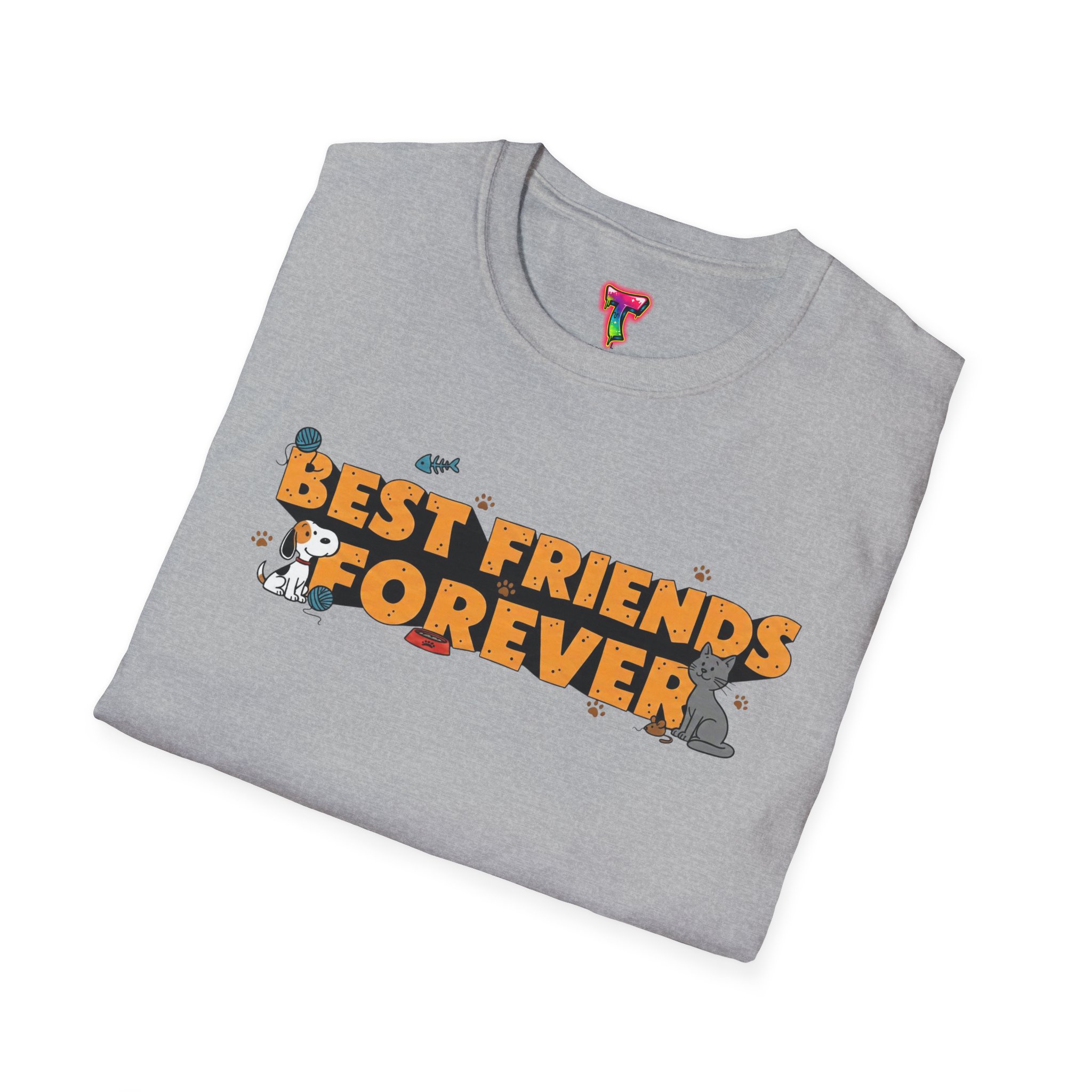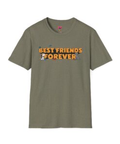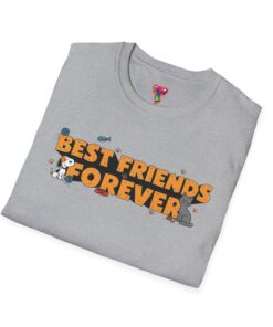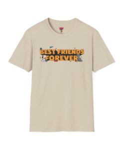 This lightweight crew-neck tee carries a warm, playful message — ‘Best Friends Forever’ spelled in bold, textured letters with tiny companion animals peeking around the words. The design sits centered on the chest and reads like a small, personal banner: nostalgic, friendly, and quietly joyful. Wear it on casual days when you want to celebrate the small bonds — dog-walking mornings, coffee runs with a friend, or lazy afternoons at home. The shirt’s soft hand and clean fit make the design feel lived-in, not loud. It settles easily into everyday outfits and becomes a subtle nod to people (or pets) who make ordinary days better.
