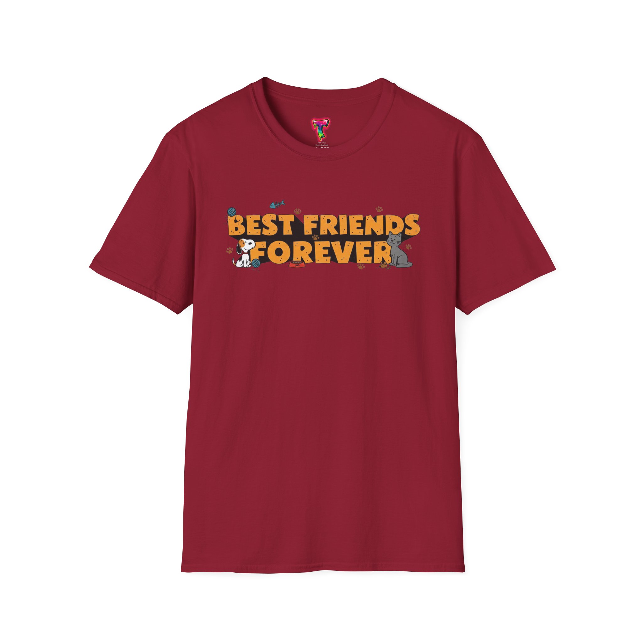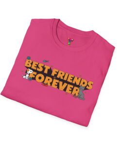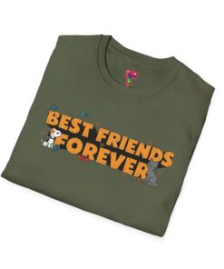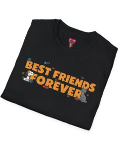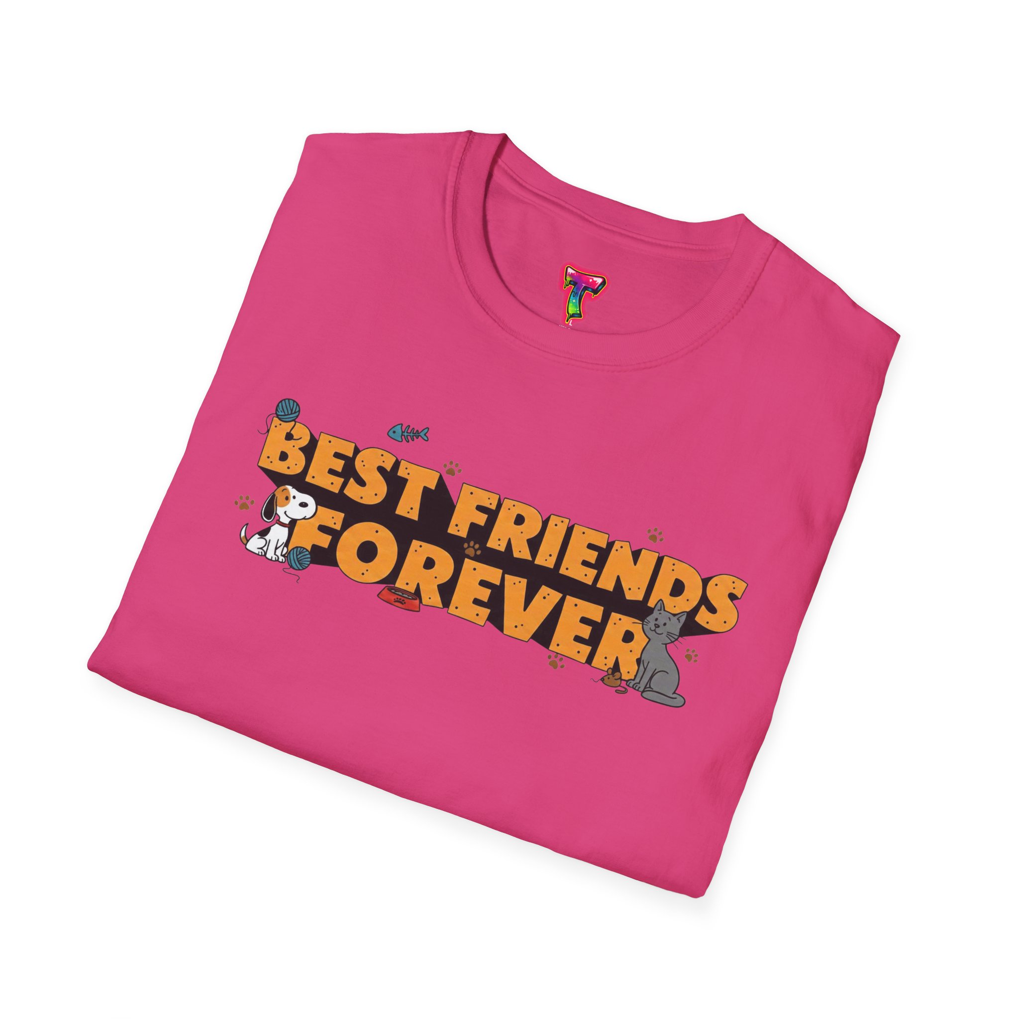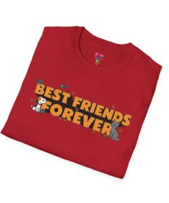 This lightweight crew-neck tee carries a warm, playful message — ‘Best Friends Forever’ spelled in bold, textured letters with tiny companion animals peeking around the words. The design sits centered on the chest and reads like a small, personal banner: nostalgic, friendly, and quietly joyful. Wear it on casual days when you want to celebrate the small bonds — dog-walking mornings, coffee runs with a friend, or lazy afternoons at home. The shirt’s soft hand and clean fit make the design feel lived-in, not loud. It settles easily into everyday outfits and becomes a subtle nod to people (or pets) who make ordinary days better.