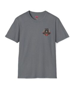 This olive green cotton tee carries a bold, road-ready vibe — a wolf in leather roaring down the highway on a classic cruiser. The design sits small on the chest and larger across the back, so the shirt reads like a quiet nod from the front and a confident statement from behind. Lightweight and softly worn against the skin, it layers easily beneath a jacket or stands alone on warmer days. Wear it on weekend rides, at meetups with fellow riders, or when you want your outfit to speak with a little edge and a lot of attitude.