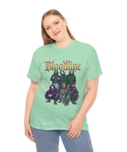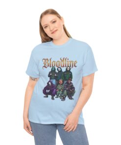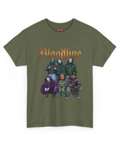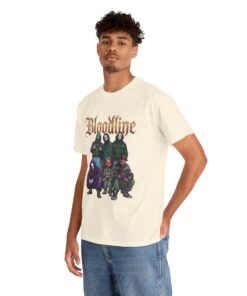 This is a relaxed, street-ready tee that wears like a favorite from day one. The vintage-style band illustration and bold “Bloodline” lettering sit front and center, giving the shirt a dark, cinematic energy—like a midnight alley scene lit by neon. It fits right into the wardrobe of someone who collects band tees, vinyl covers, and late-night zines. Layer it under a worn denim jacket or throw it on with cargo pants for a look that reads underground but intentional. The roomy crew neck and classic cut keep movement easy; the soft, medium-weight cotton settles comfortably whether you’re heading to a show, a record swap, or just wandering the city at dusk.