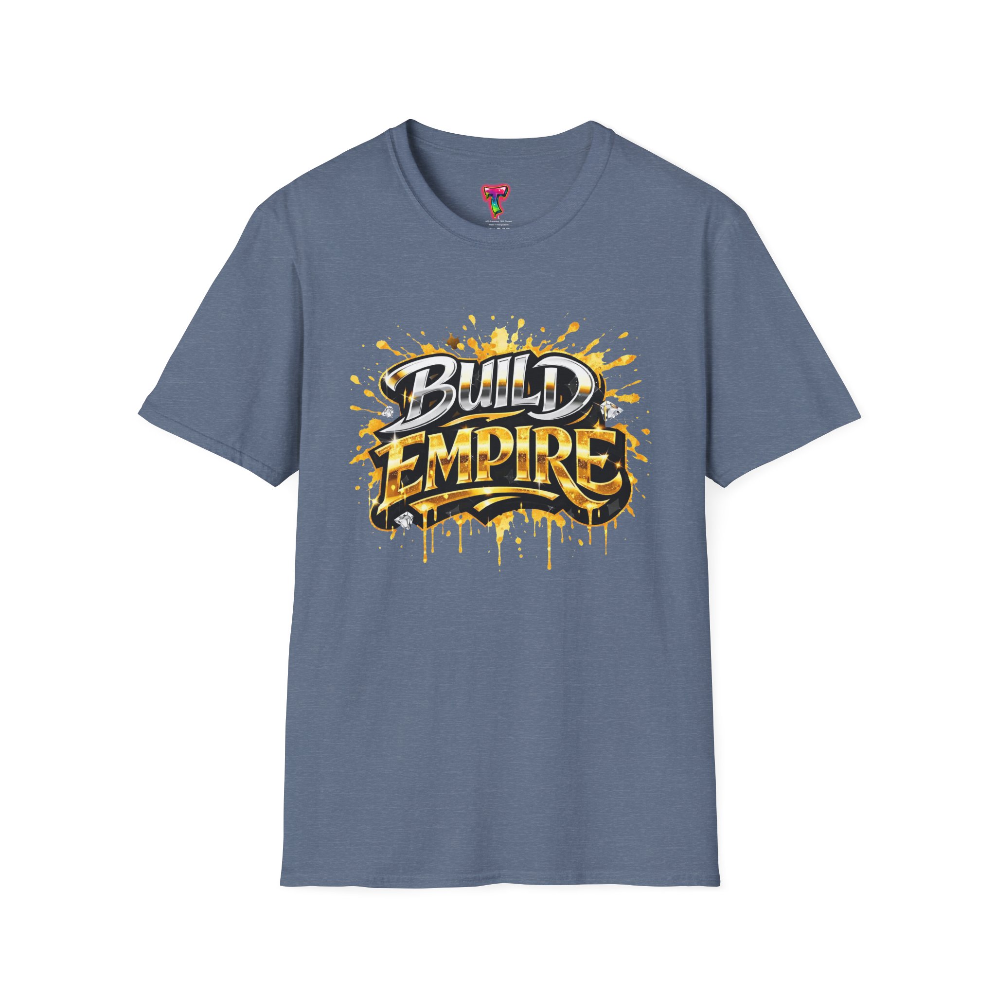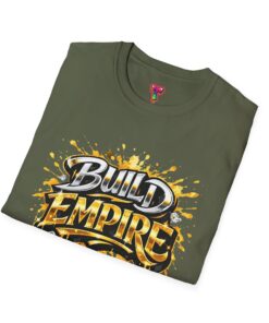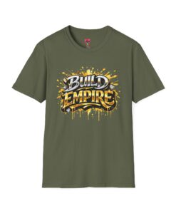 This lightweight cotton tee carries a bold, street-art inspired graphic that shouts ambition: “Build Empire” in layered golds and gritty black strokes with paint-splatter accents. Wear it when you want to channel hustle energy — whether you’re sketching the next project, meeting collaborators, or running weekend errands. The crew neckline and classic fit keep the silhouette clean so the artwork stands out. Breathable and soft, it moves with you through long days and late nights, feeling lived-in from the first wear.
