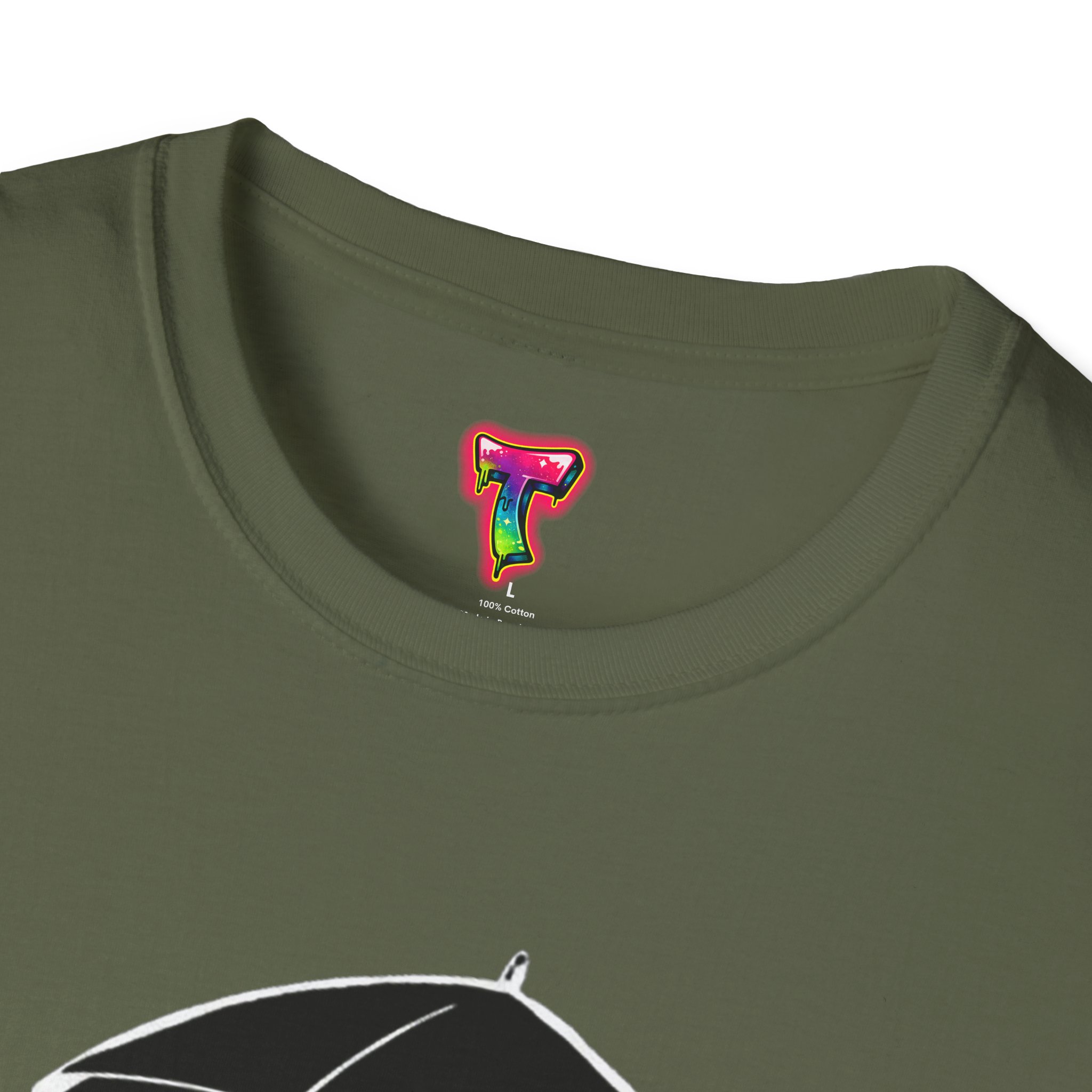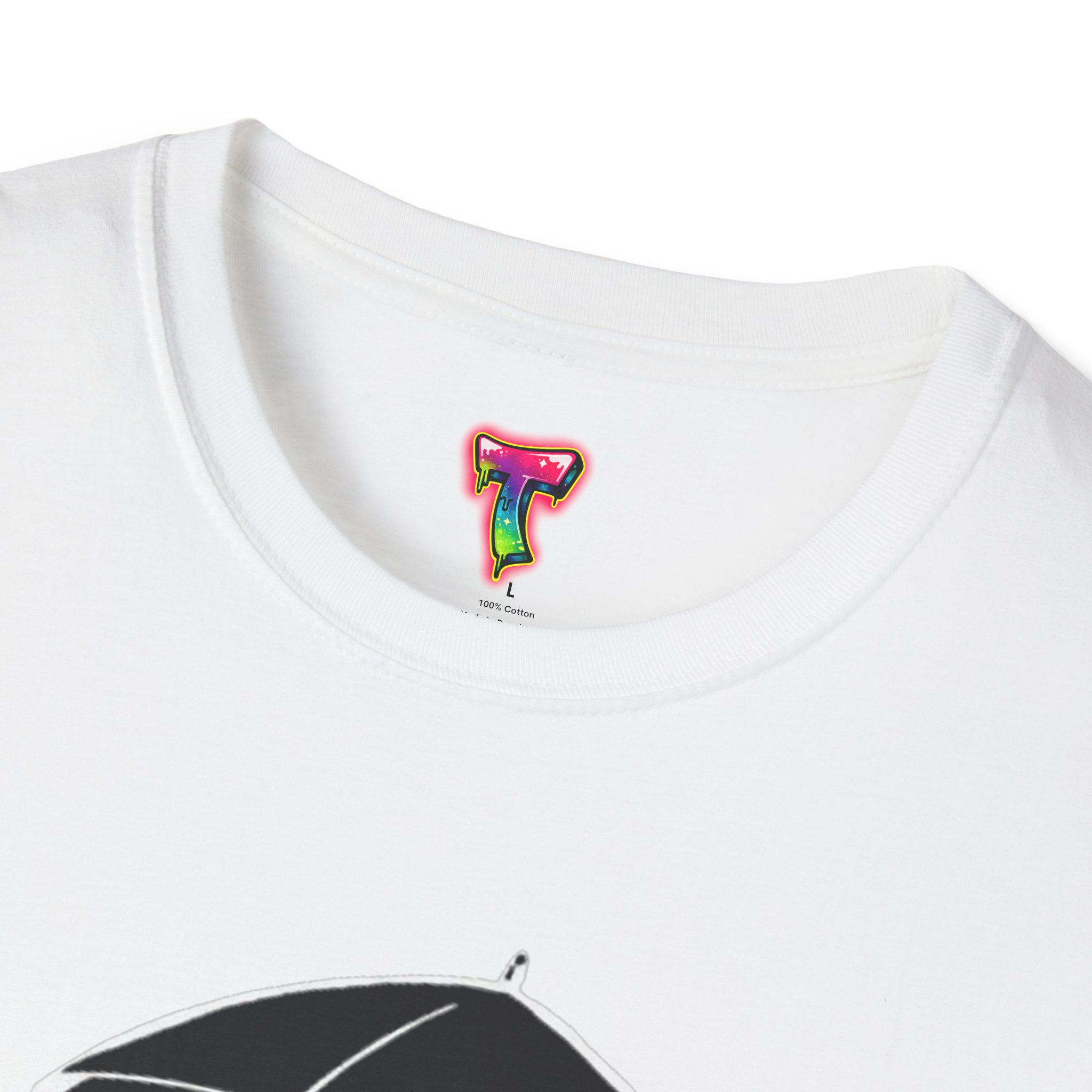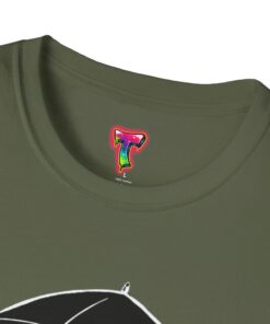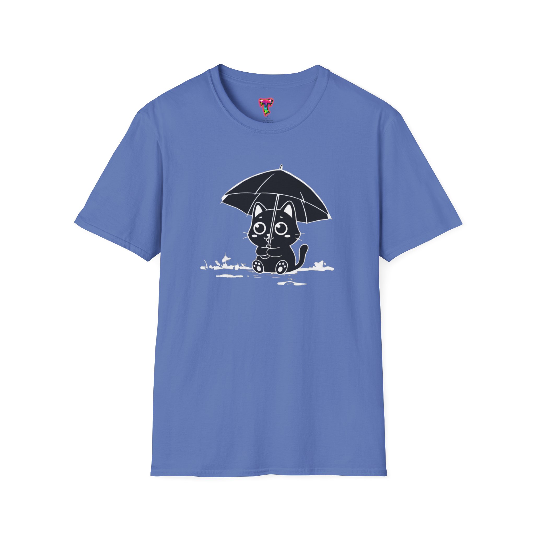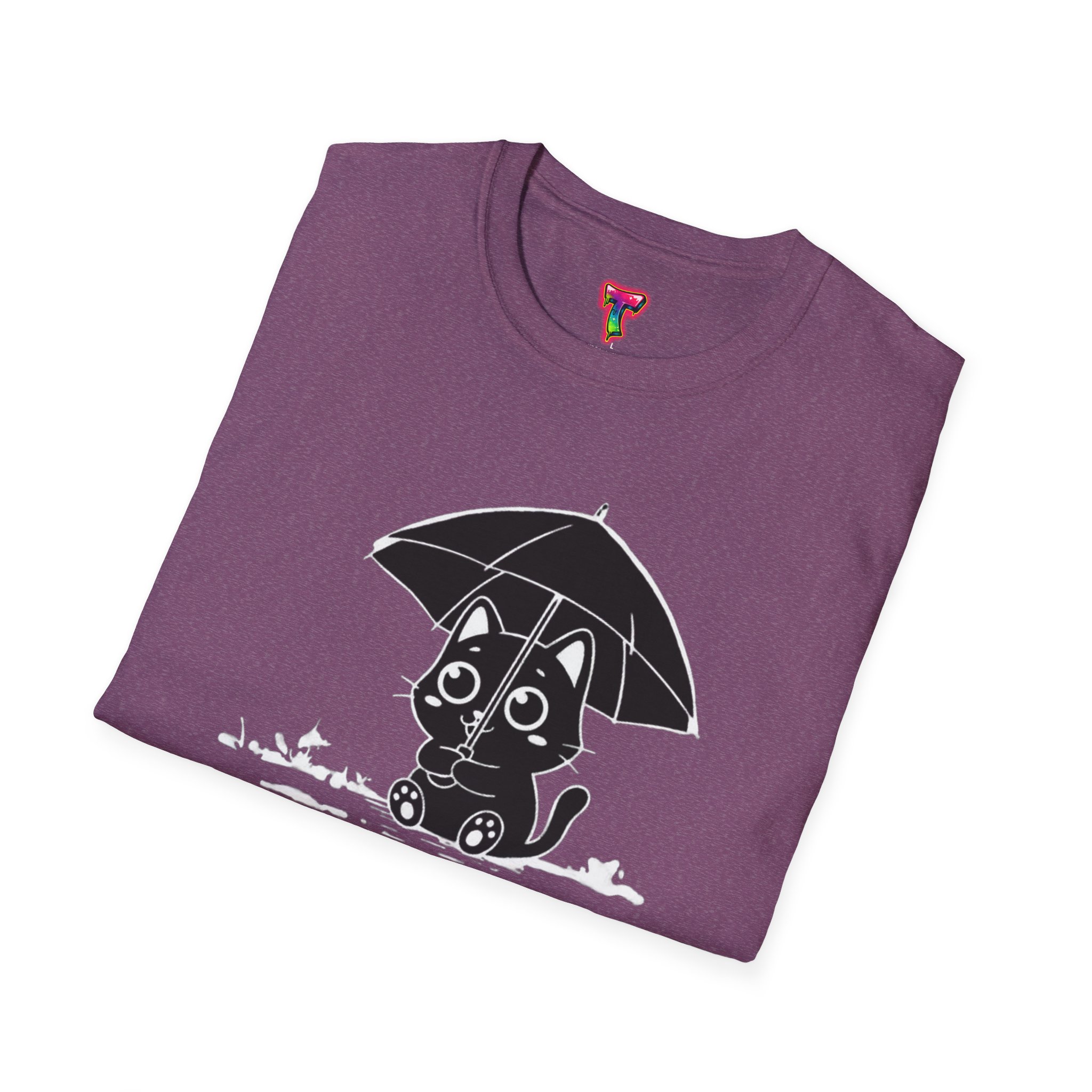 Soft, cozy, and quietly playful — this lightweight crew tee brings a gentle smile to rainy days. A small, wide-eyed black kitten shelters beneath an umbrella, its wet paws splashing in tiny puddles rendered in crisp white ink. The design sits slightly above center for a handcrafted look, while the smooth, ring-spun cotton body feels breathable and lived-in from the first wear. Wear it on slow mornings with jeans, layered under a cardigan for commuter weather, or to brighten a casual night out — it’s the kind of shirt that turns ordinary days into little stories.