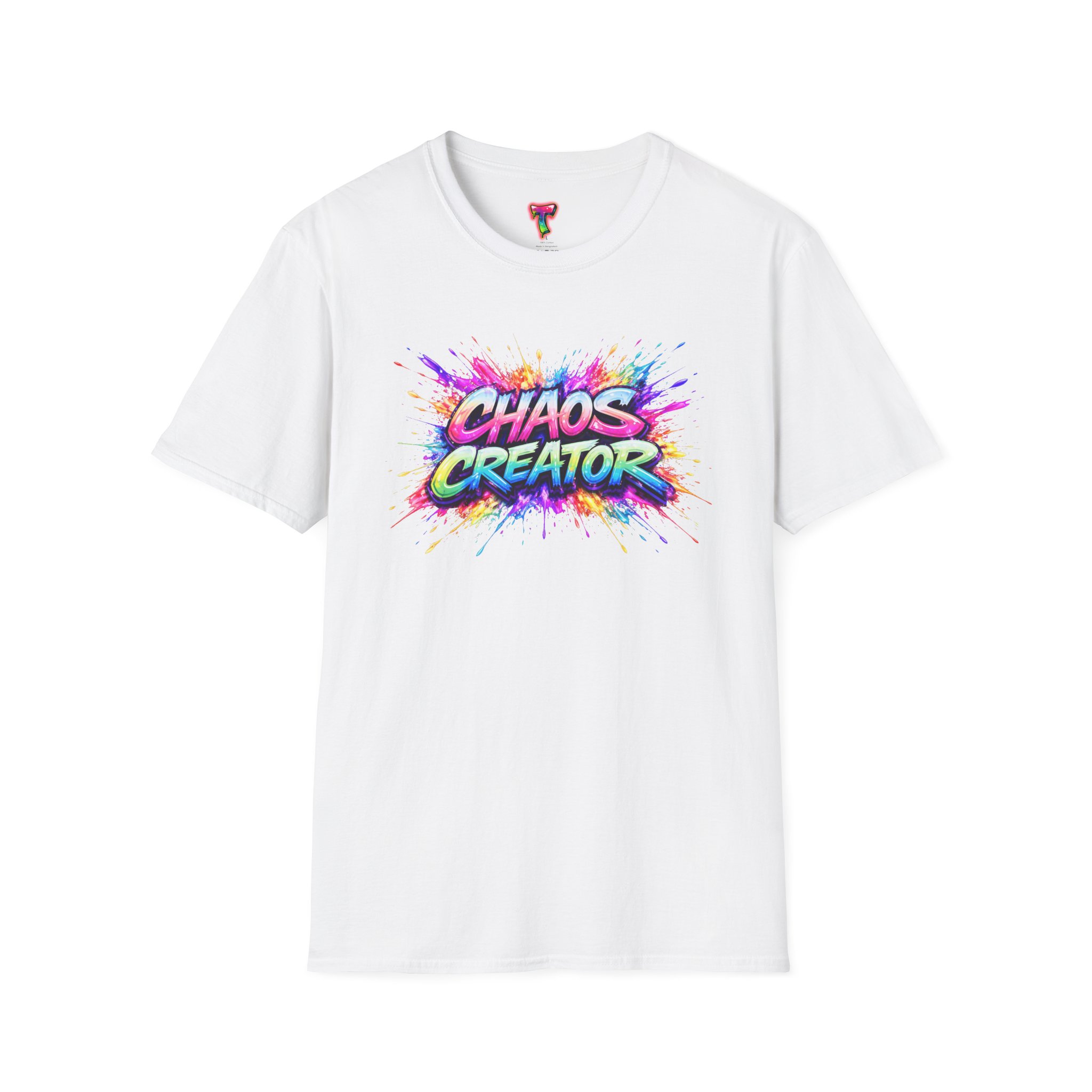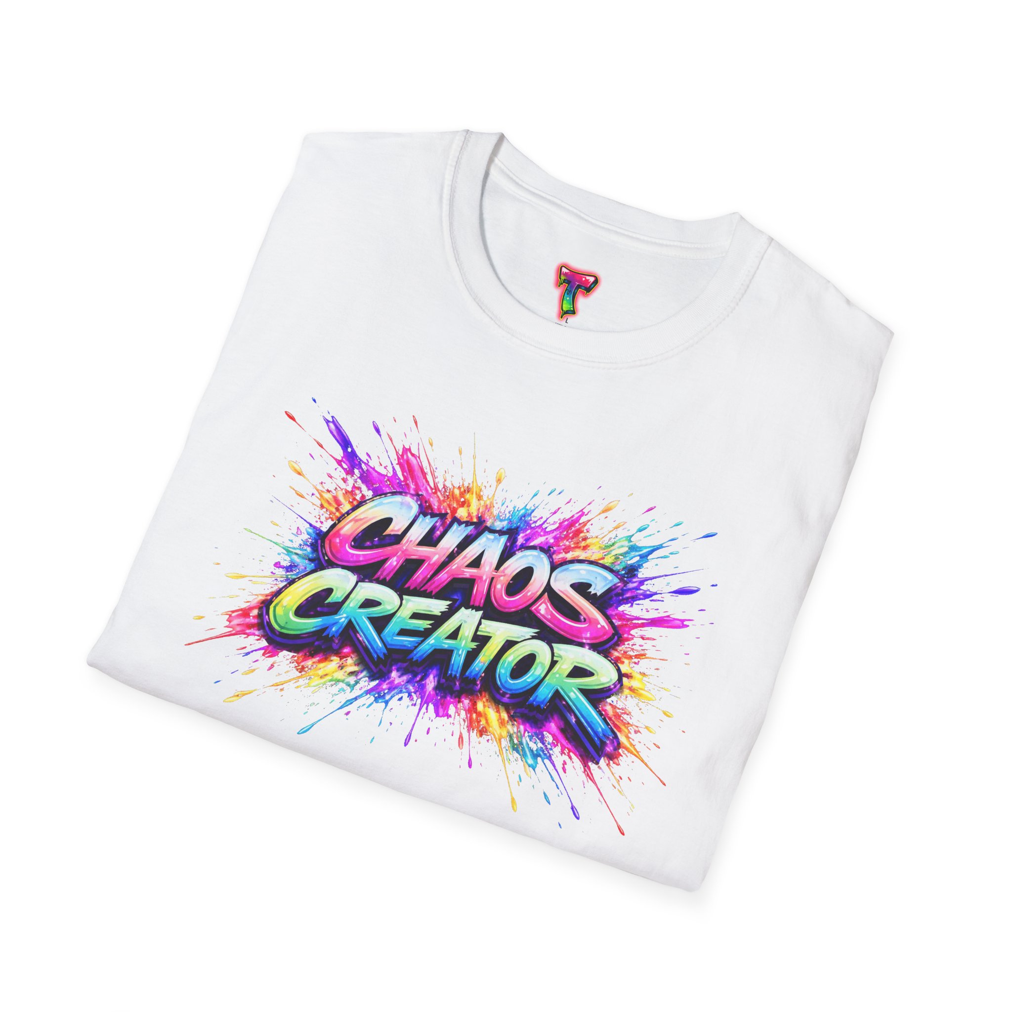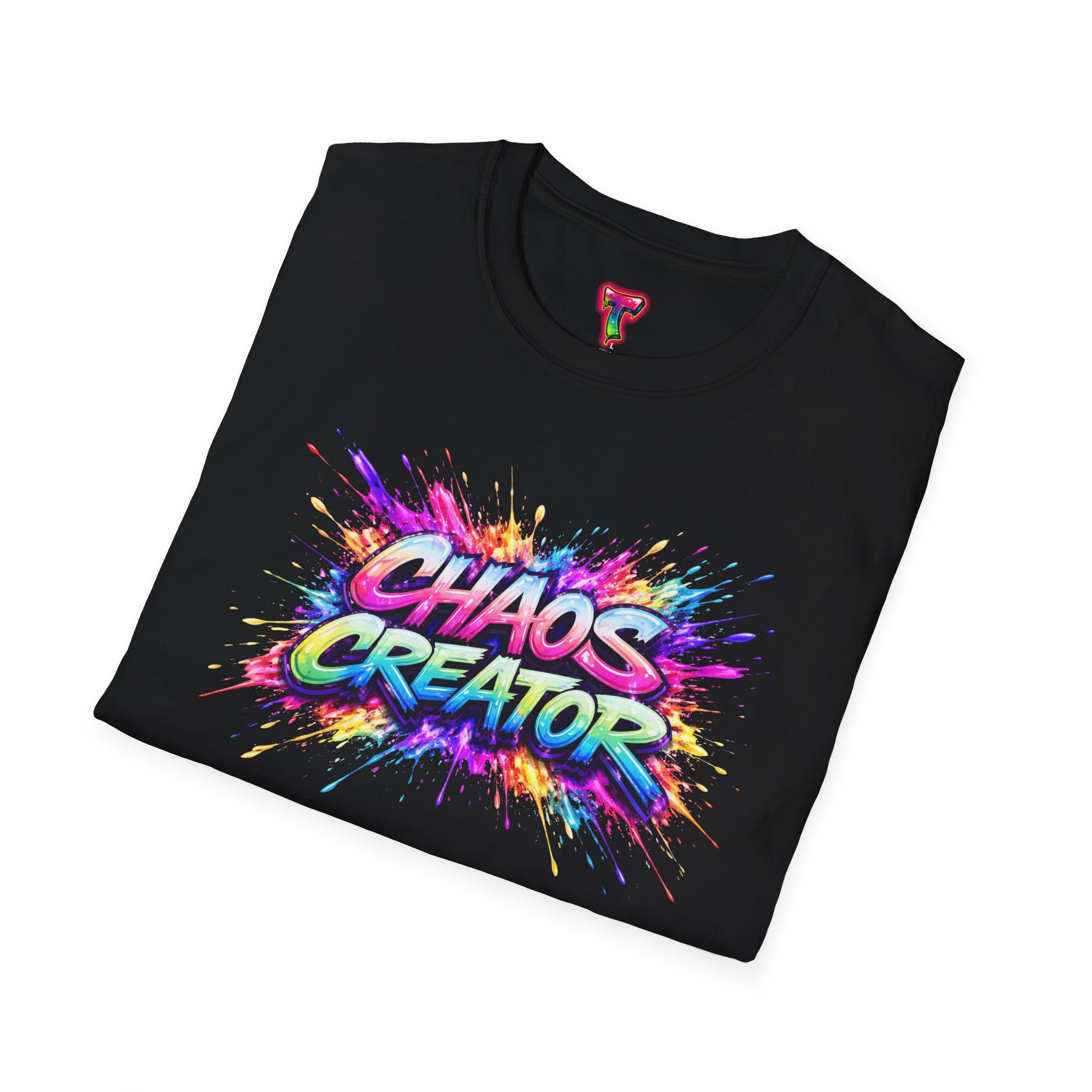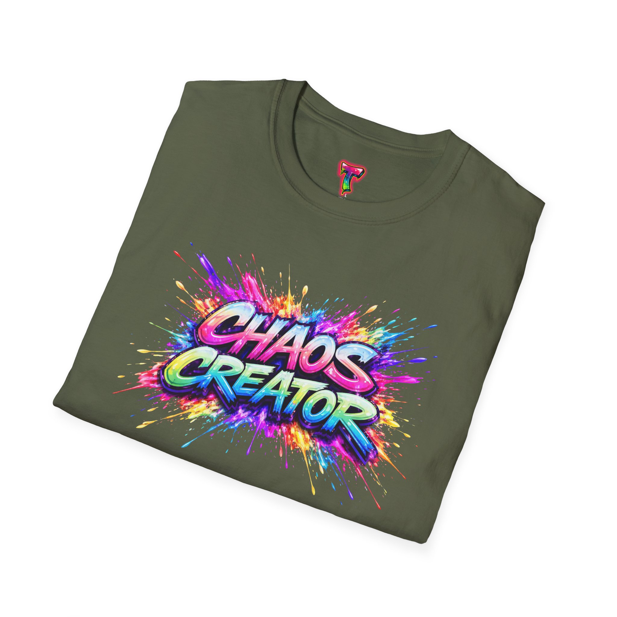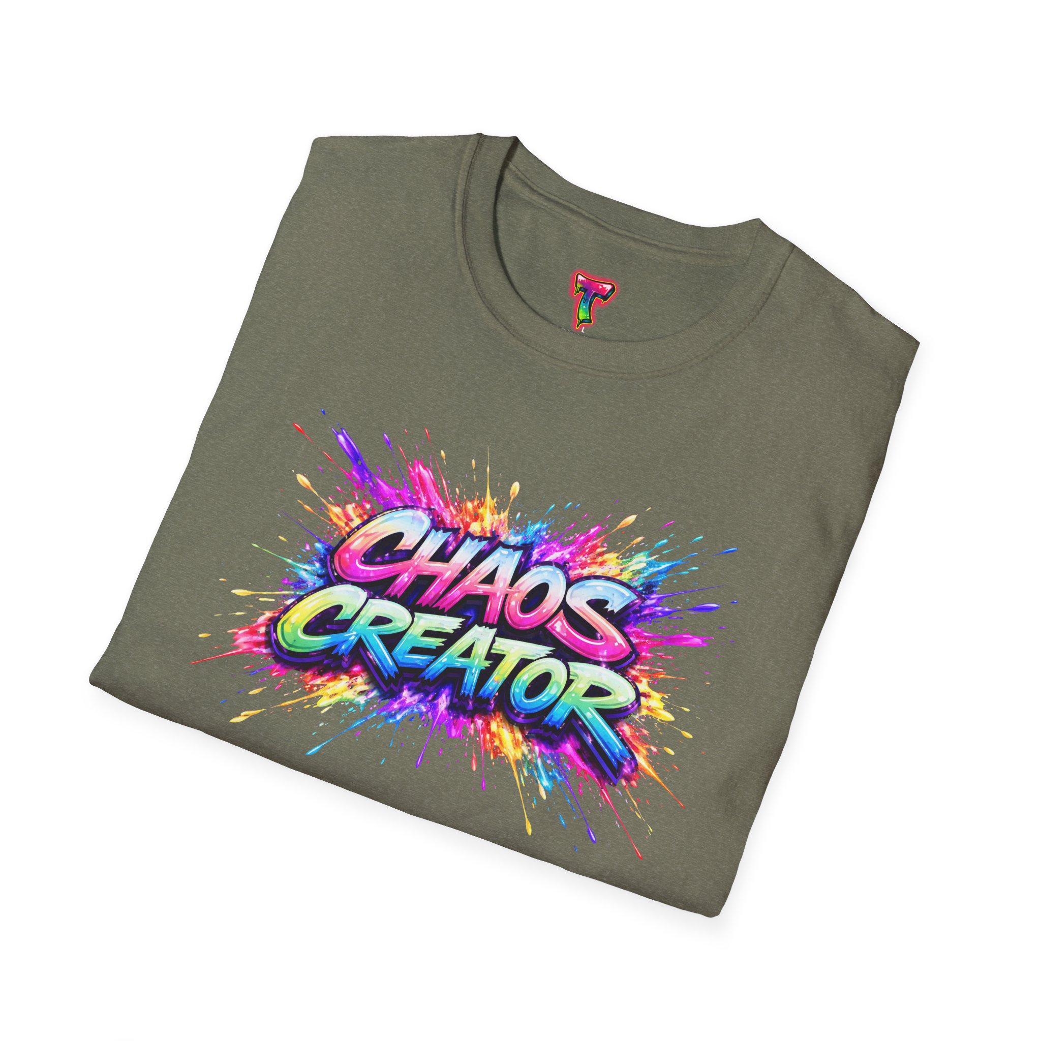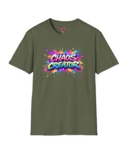 A vibrant streetwear graphic featuring the bold phrase “CHAOS CREATOR” in colorful graffiti-style typography. Surrounded by explosive paint splashes and dynamic neon accents, the design captures raw creative energy and fearless expression. The layered composition and high-contrast colors make it visually striking and full of movement. Perfect for those who thrive on creativity, break rules, and turn chaos into art.