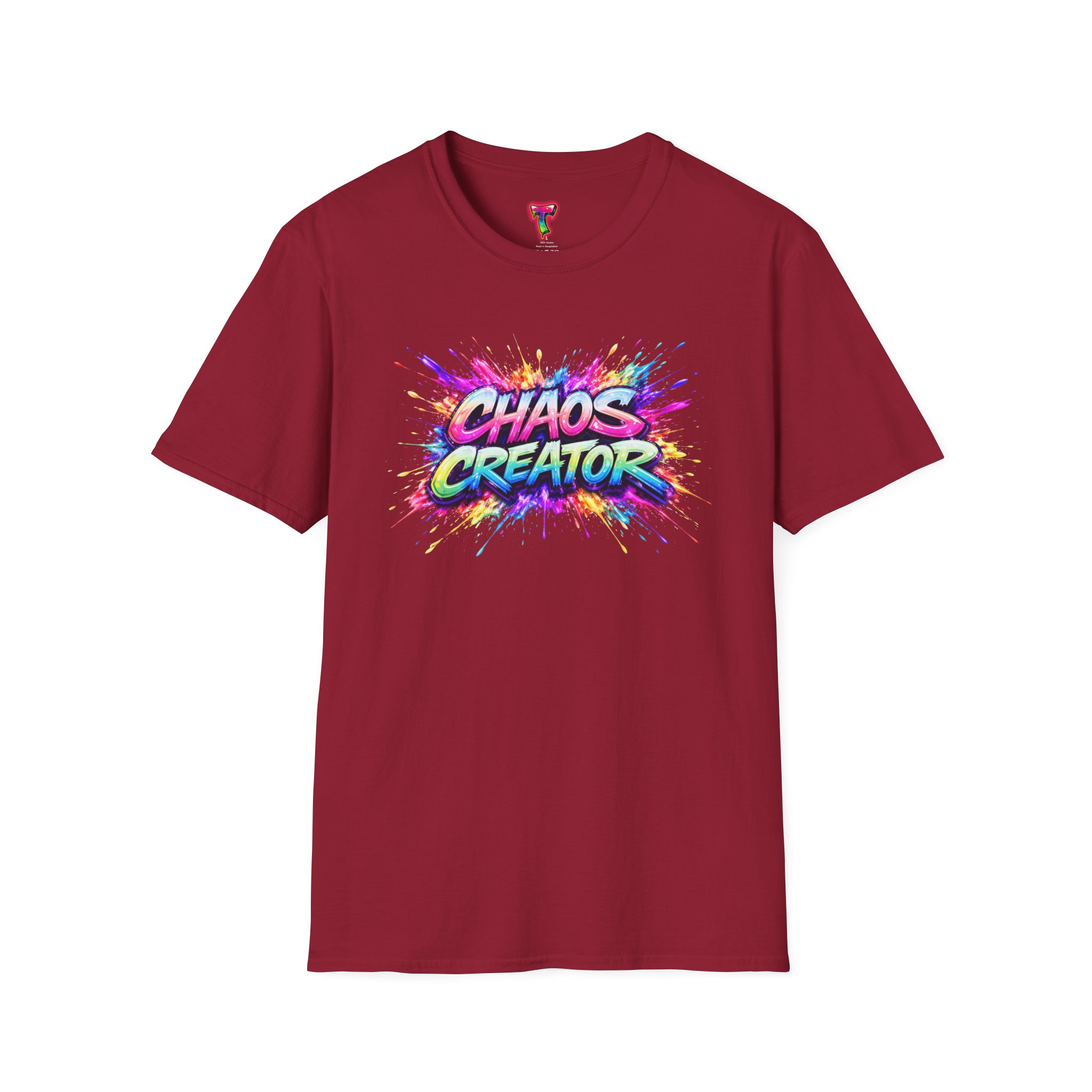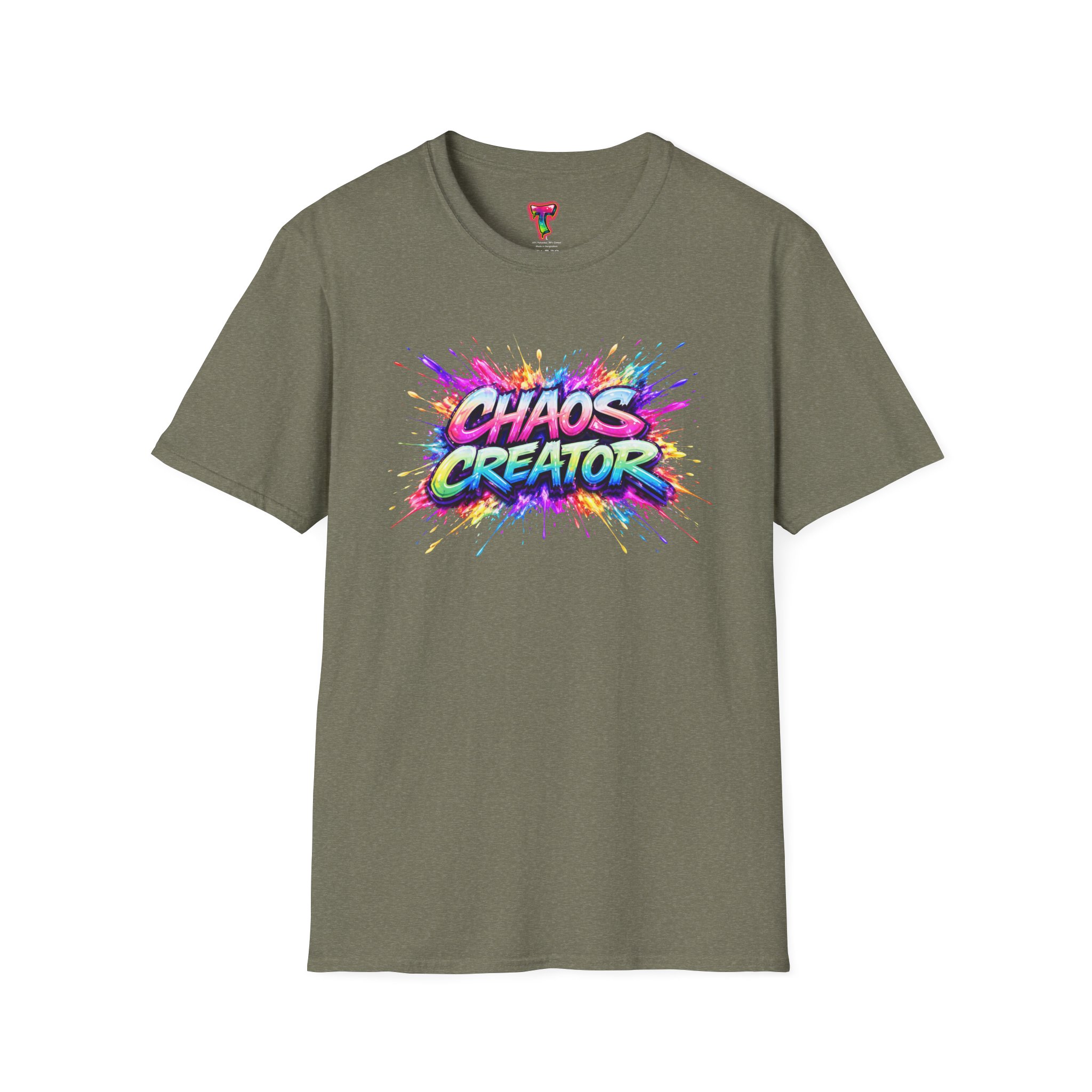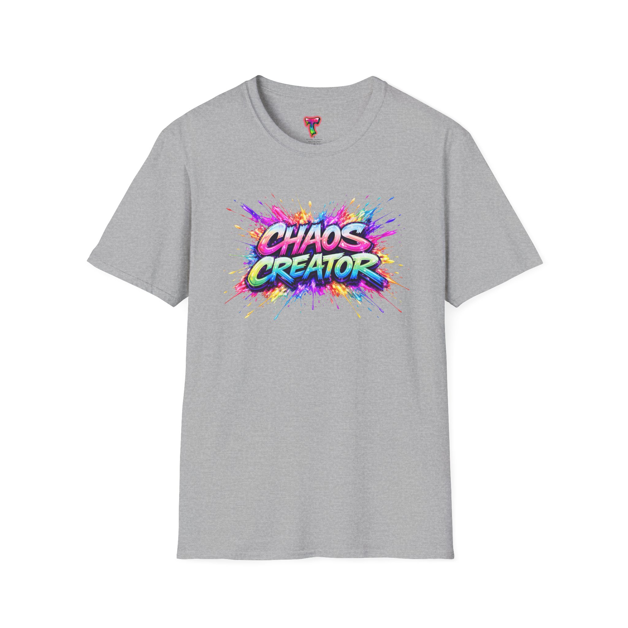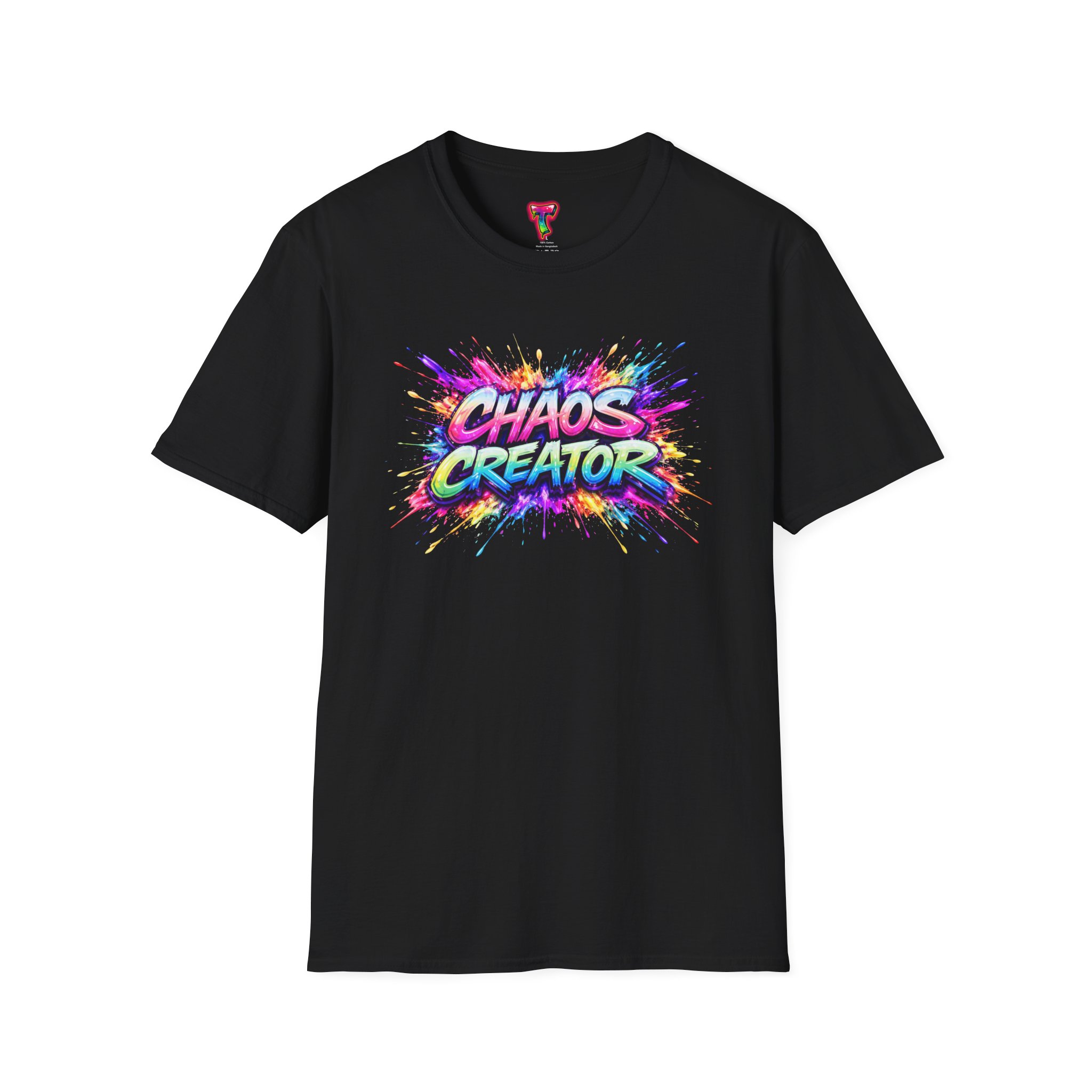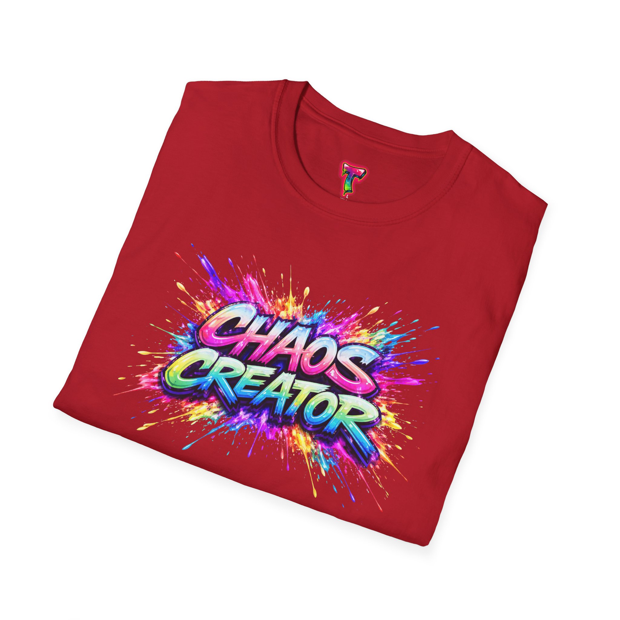 A vibrant streetwear graphic featuring the bold phrase “CHAOS CREATOR” in colorful graffiti-style typography. Surrounded by explosive paint splashes and dynamic neon accents, the design captures raw creative energy and fearless expression. The layered composition and high-contrast colors make it visually striking and full of movement. Perfect for those who thrive on creativity, break rules, and turn chaos into art.