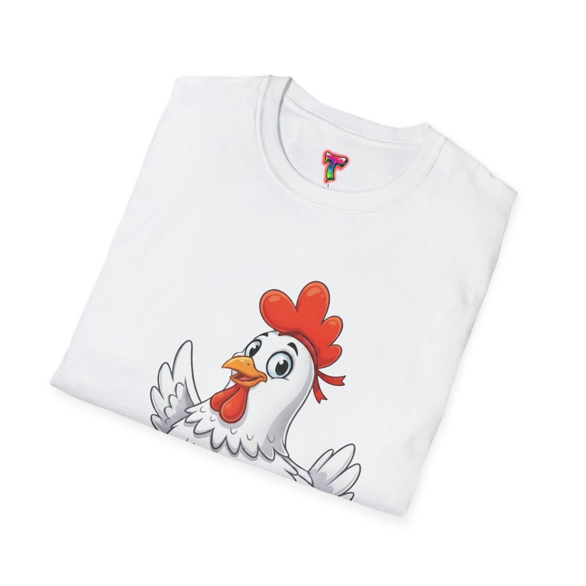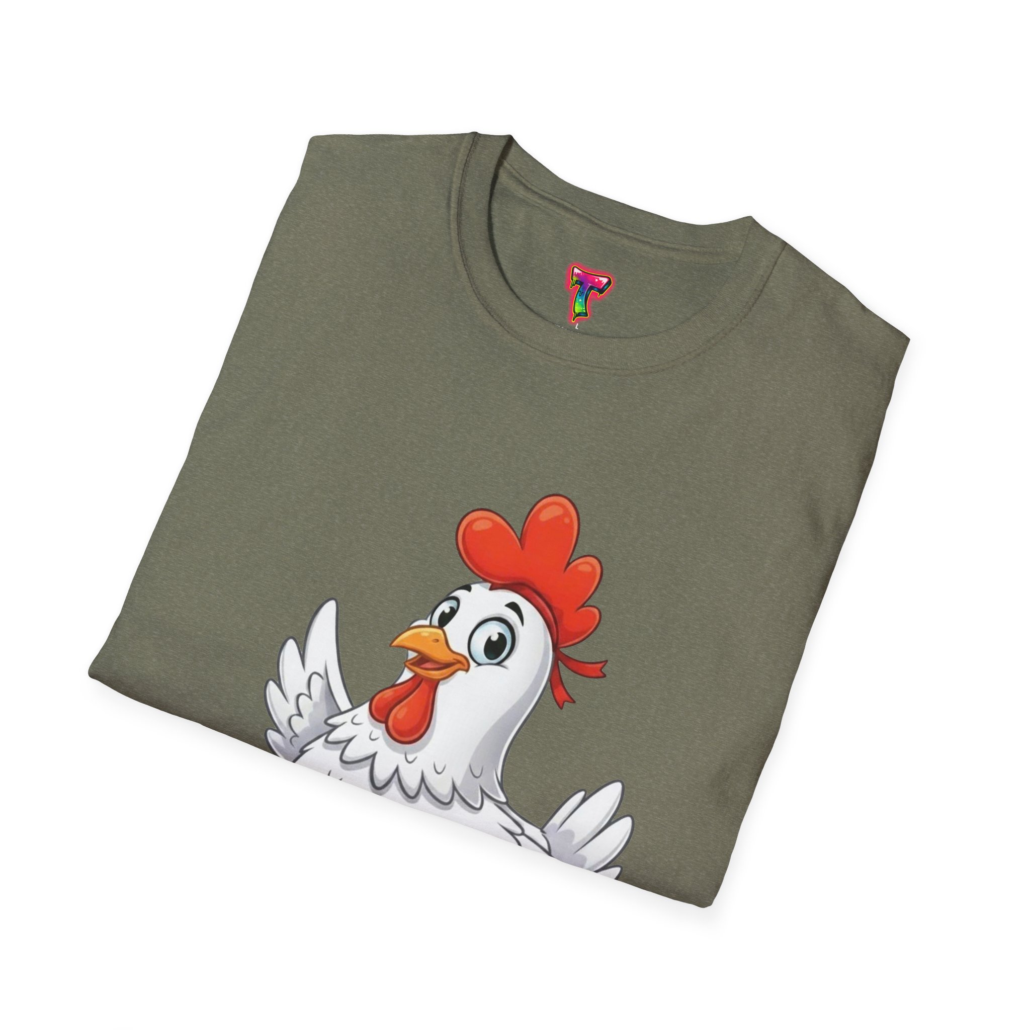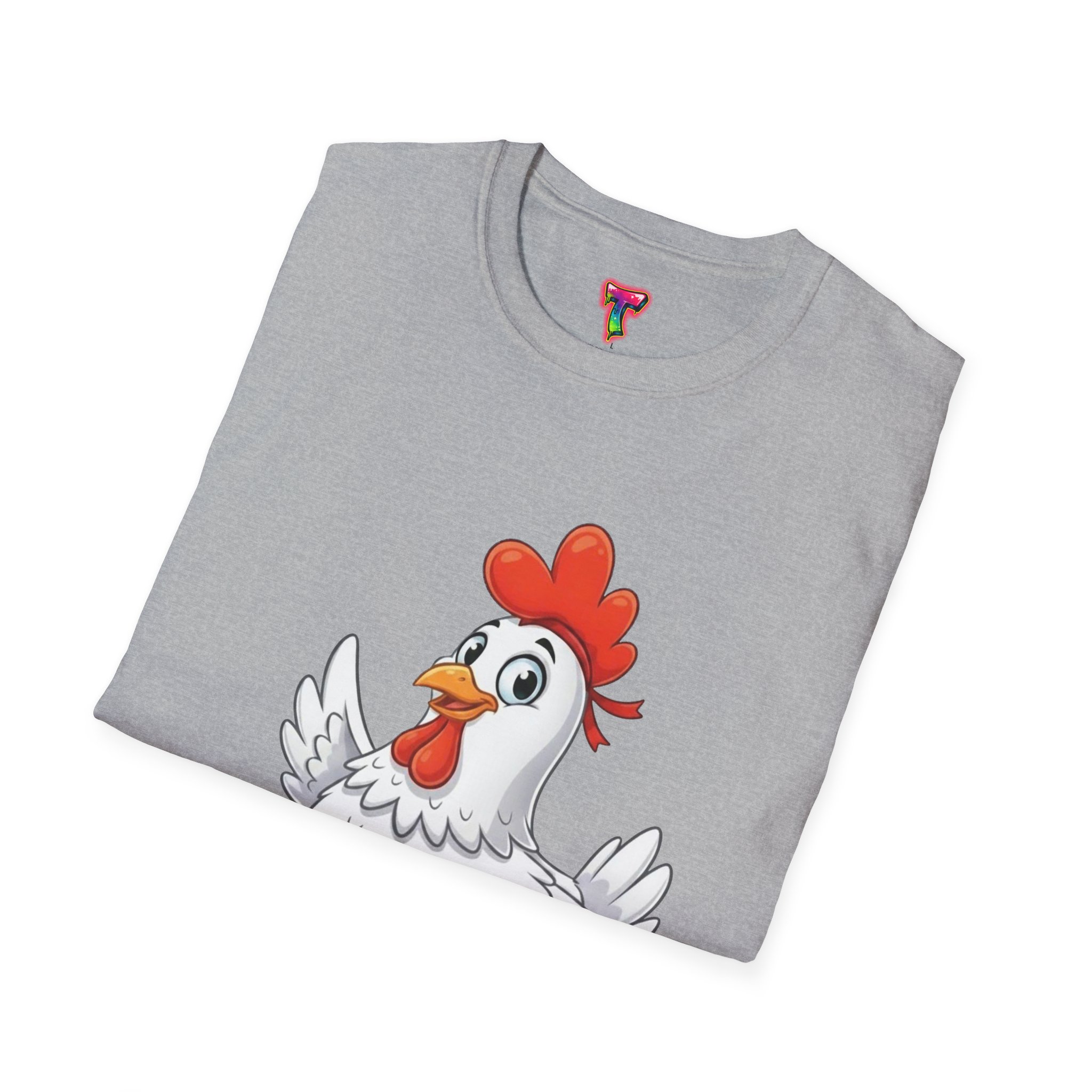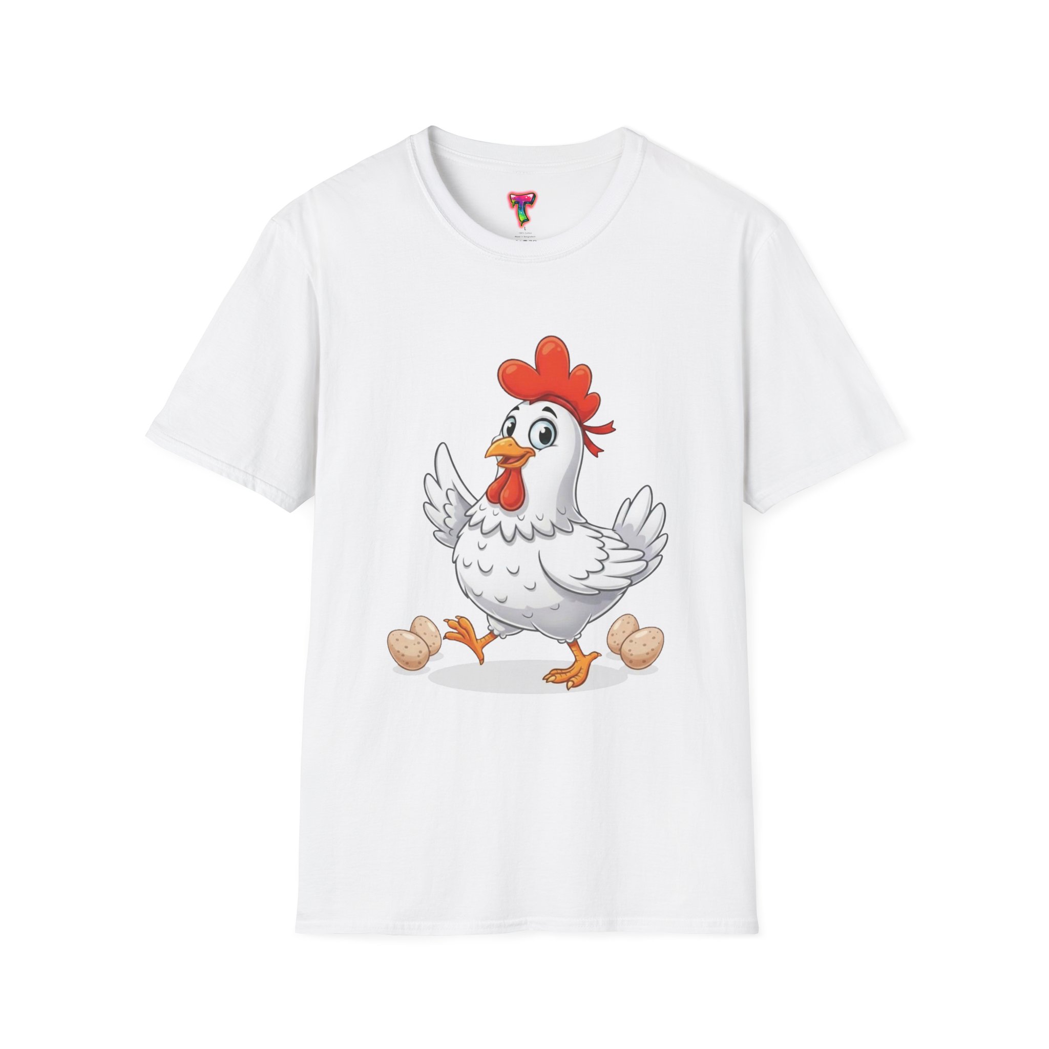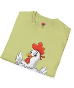 This lightweight cotton tee carries a cheerful chicken illustration that brings playful countryside energy to everyday wear. The friendly hen, bright comb, and scattered eggs sit cleanly on the chest in a bold, cartoon style that reads well from a distance. Wear it on mornings in the coop, while running errands, or when you want to add a bit of farmyard personality to jeans and boots. The shirt’s soft hand and classic crew silhouette keep the focus on comfort—perfect for folks who appreciate simple, honest designs and a little rural humor in their wardrobe.