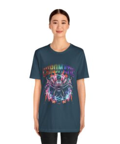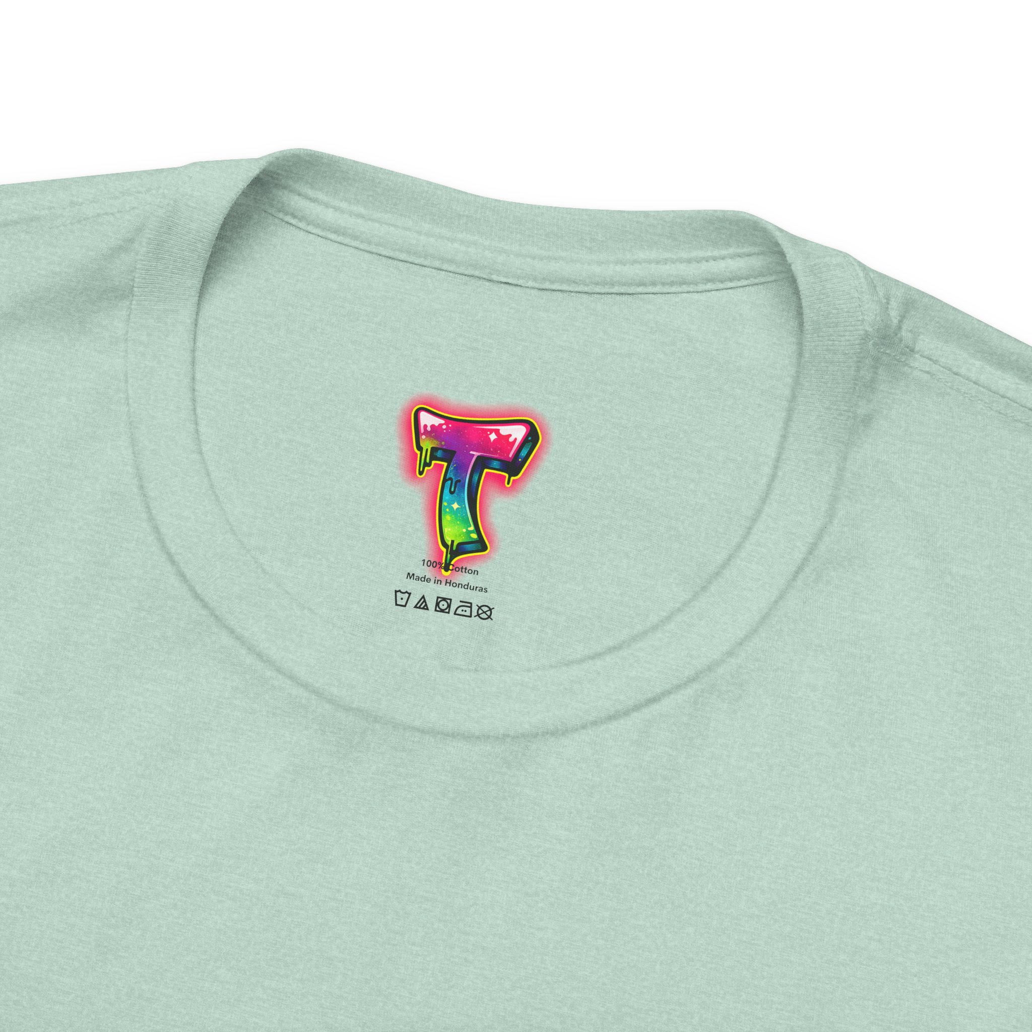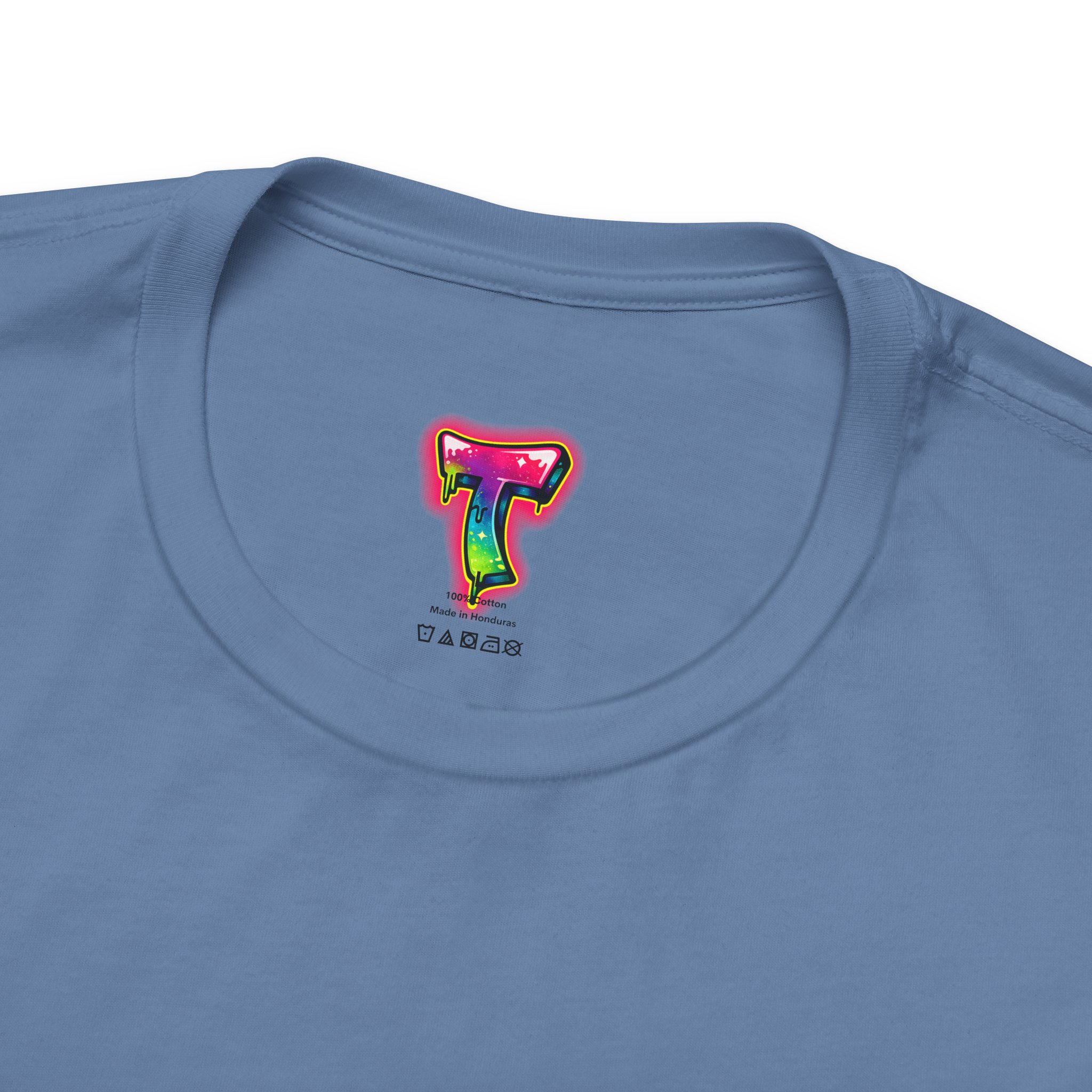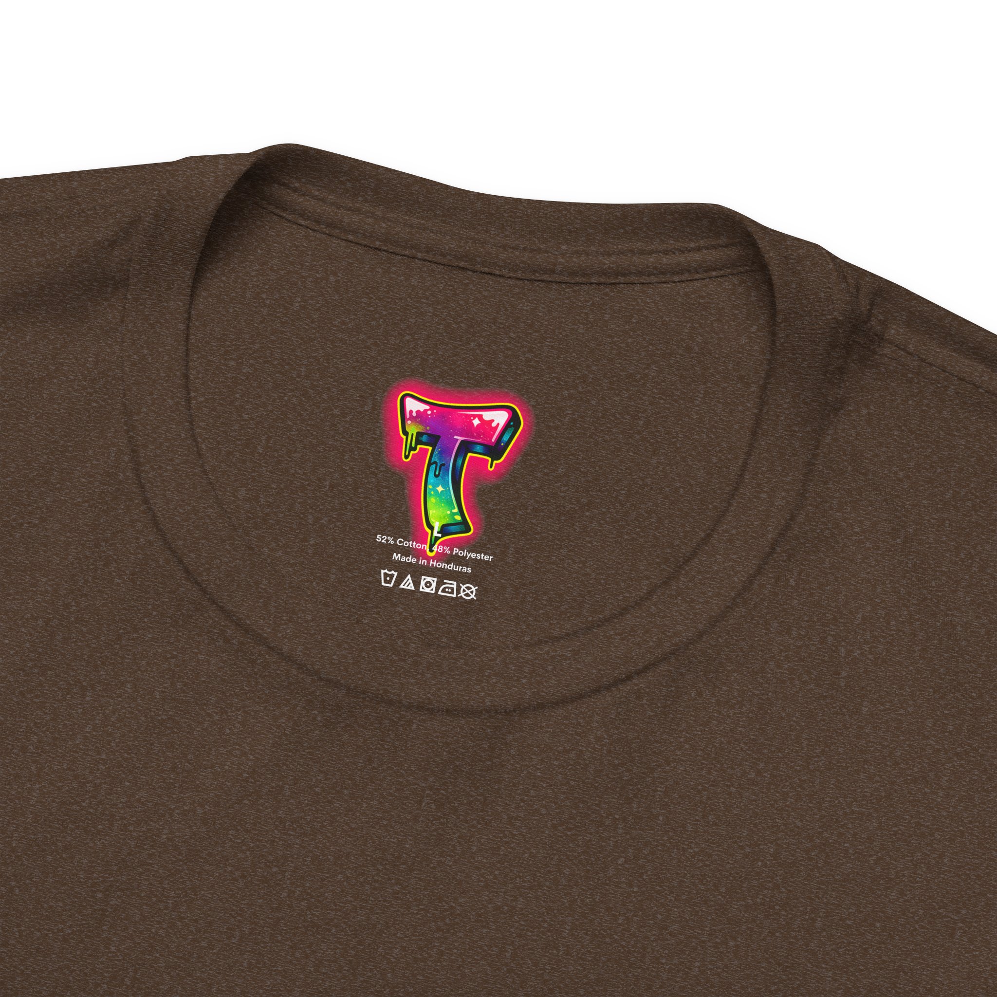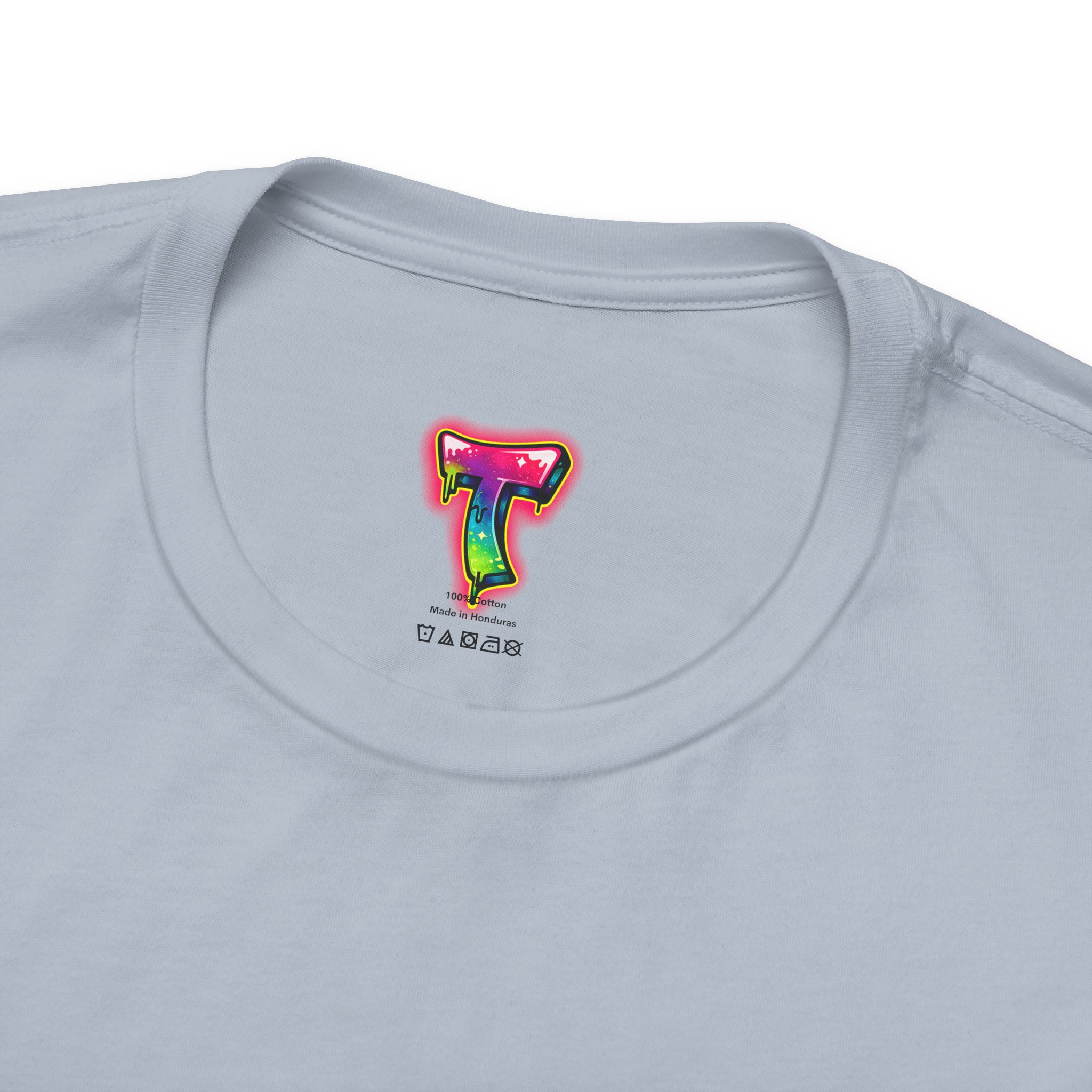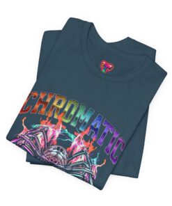 – DTF/DTG printed vibrant chromatic graphic with crisp detail on chest and sleeves