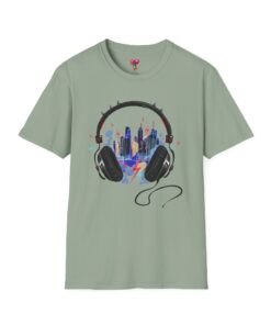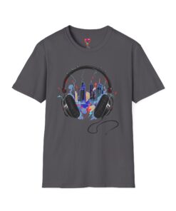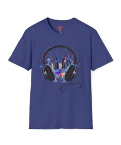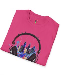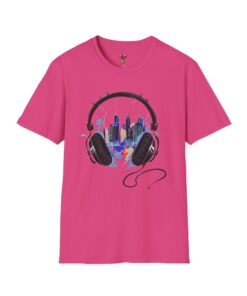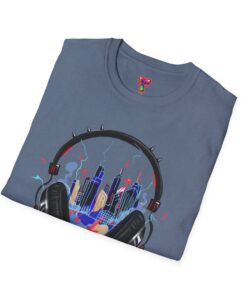Feel the rhythm of the urban jungle with our “Music City Headphones” T-Shirt. This creative design features a large, detailed pair of headphones that perfectly frames a vibrant, neon-colored city skyline. With splashes of blue, pink, and yellow, this artwork captures the energy of late-night city streets and the power of music to transform your surroundings.