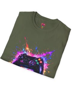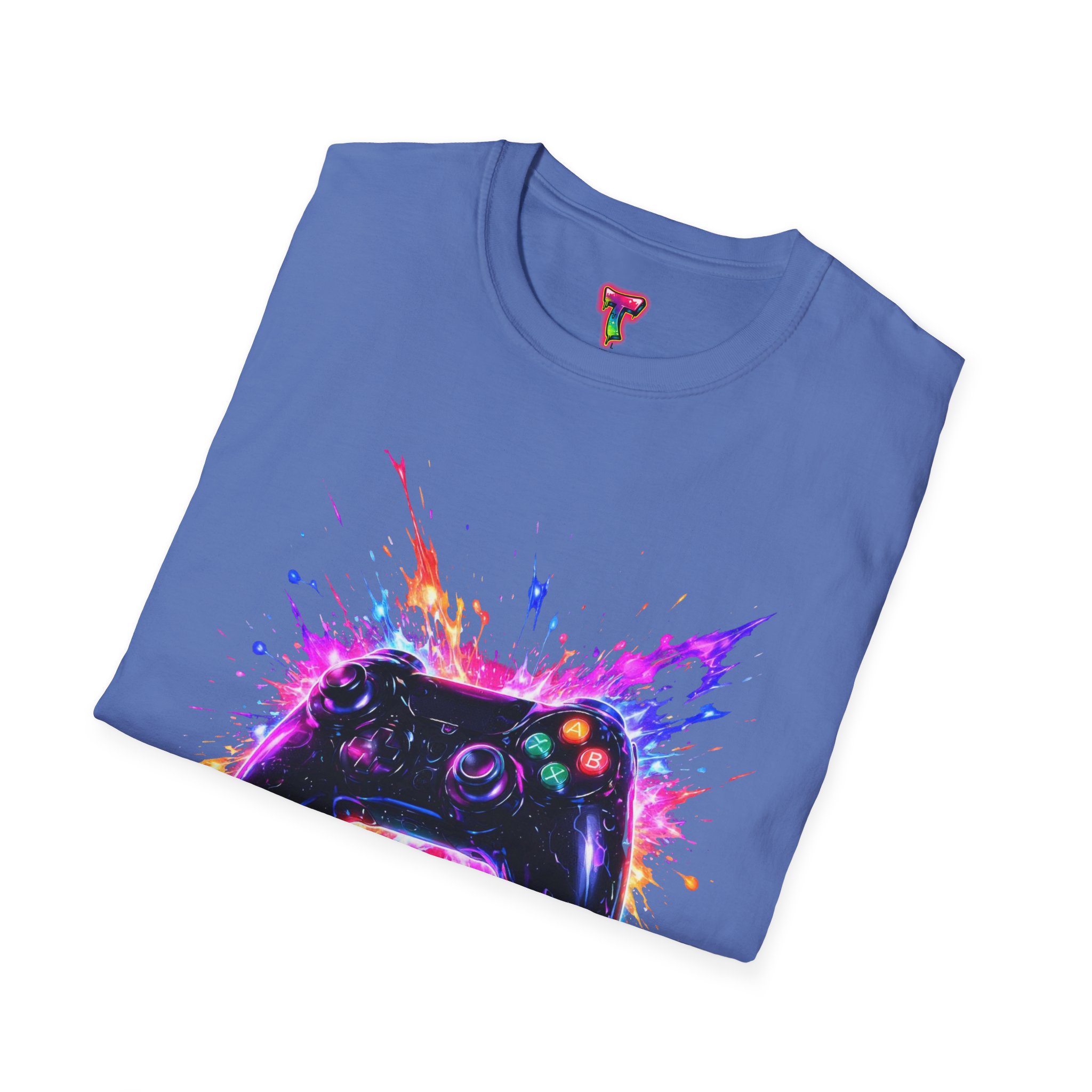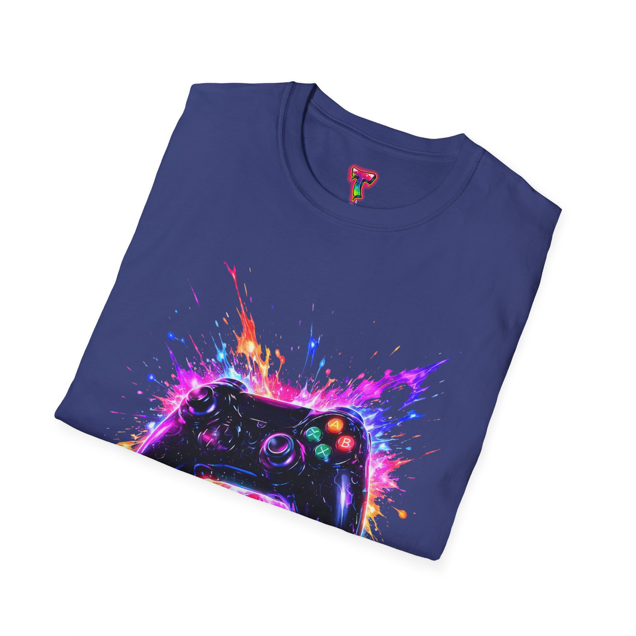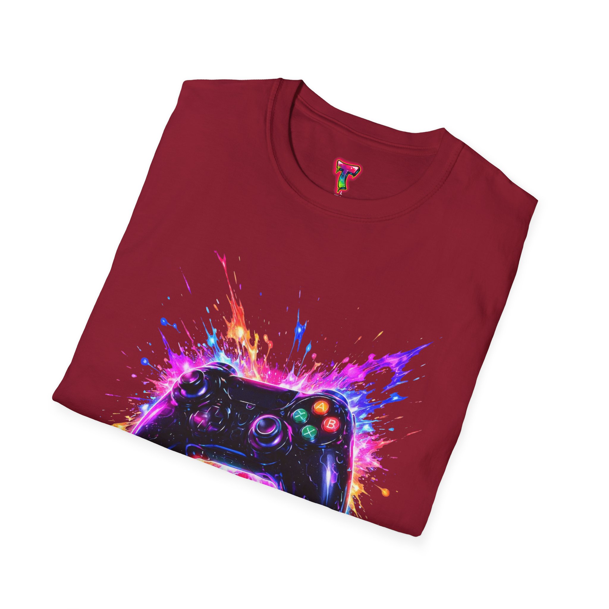 Level up your style with this vibrant gaming controller graphic tee featuring neon electric splashes, glowing colors, and explosive energy effects. Designed for gamers who live for competition, fun, and nonstop action. A bold statement shirt perfect for gaming sessions, esports fans, streamers, and anyone who loves modern gamer culture.