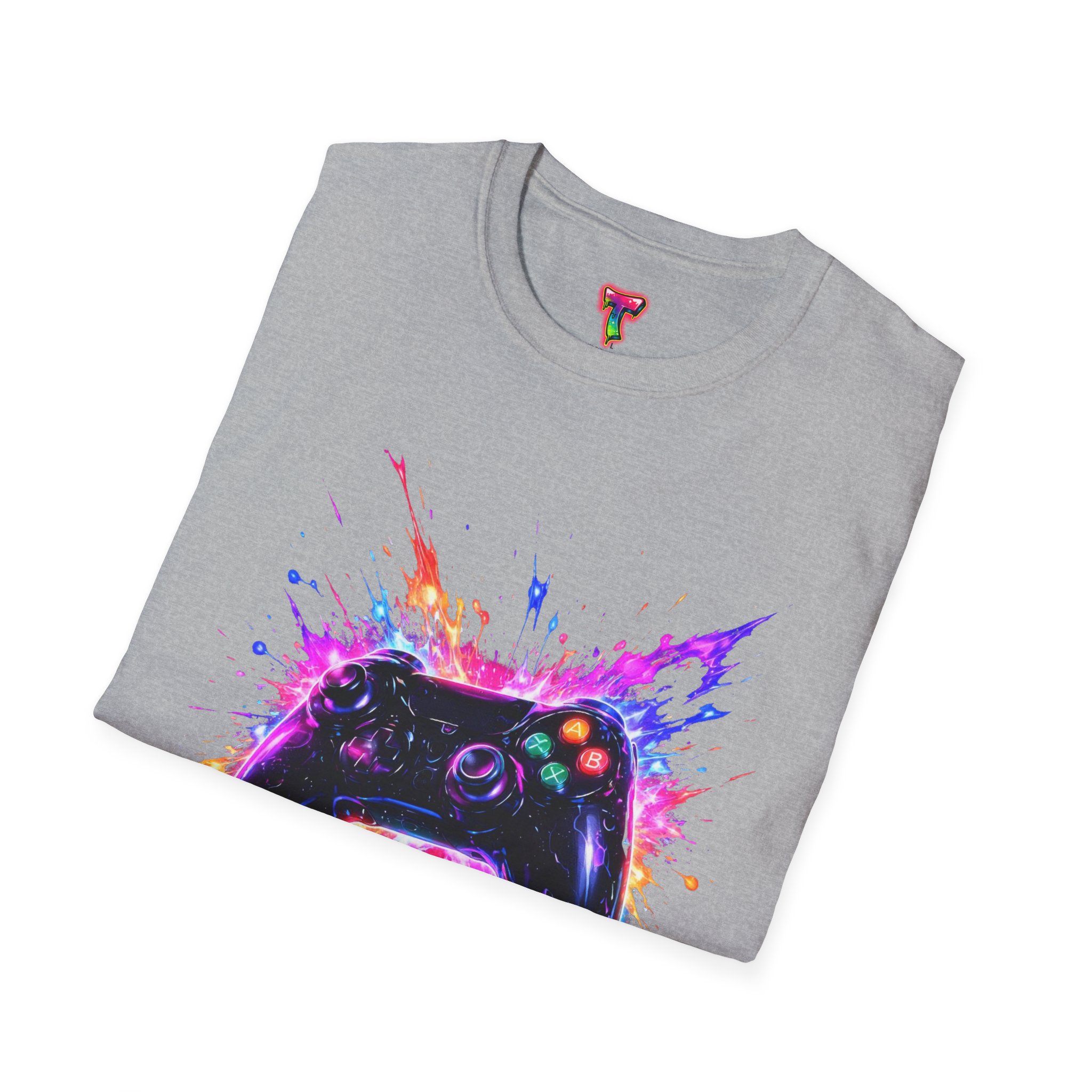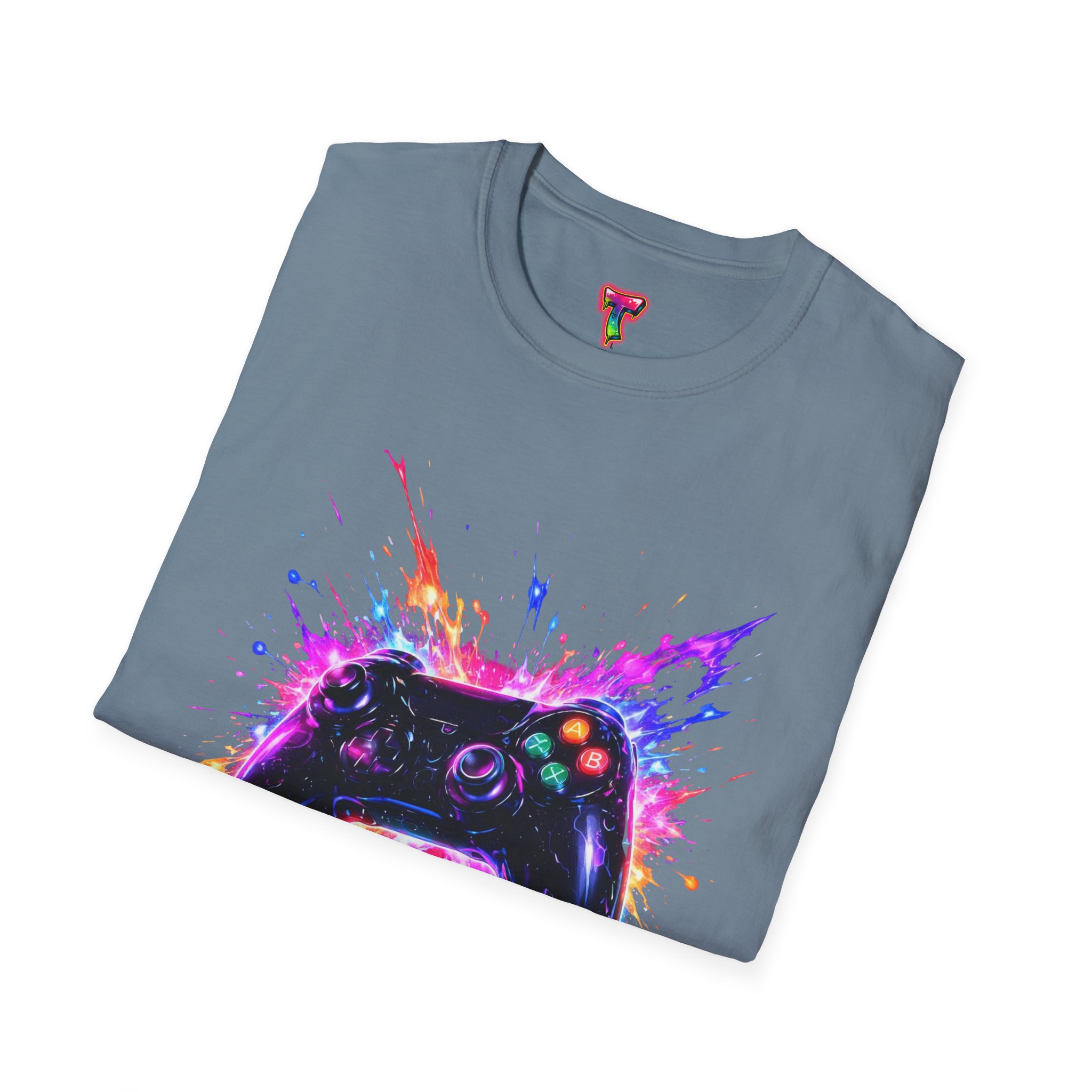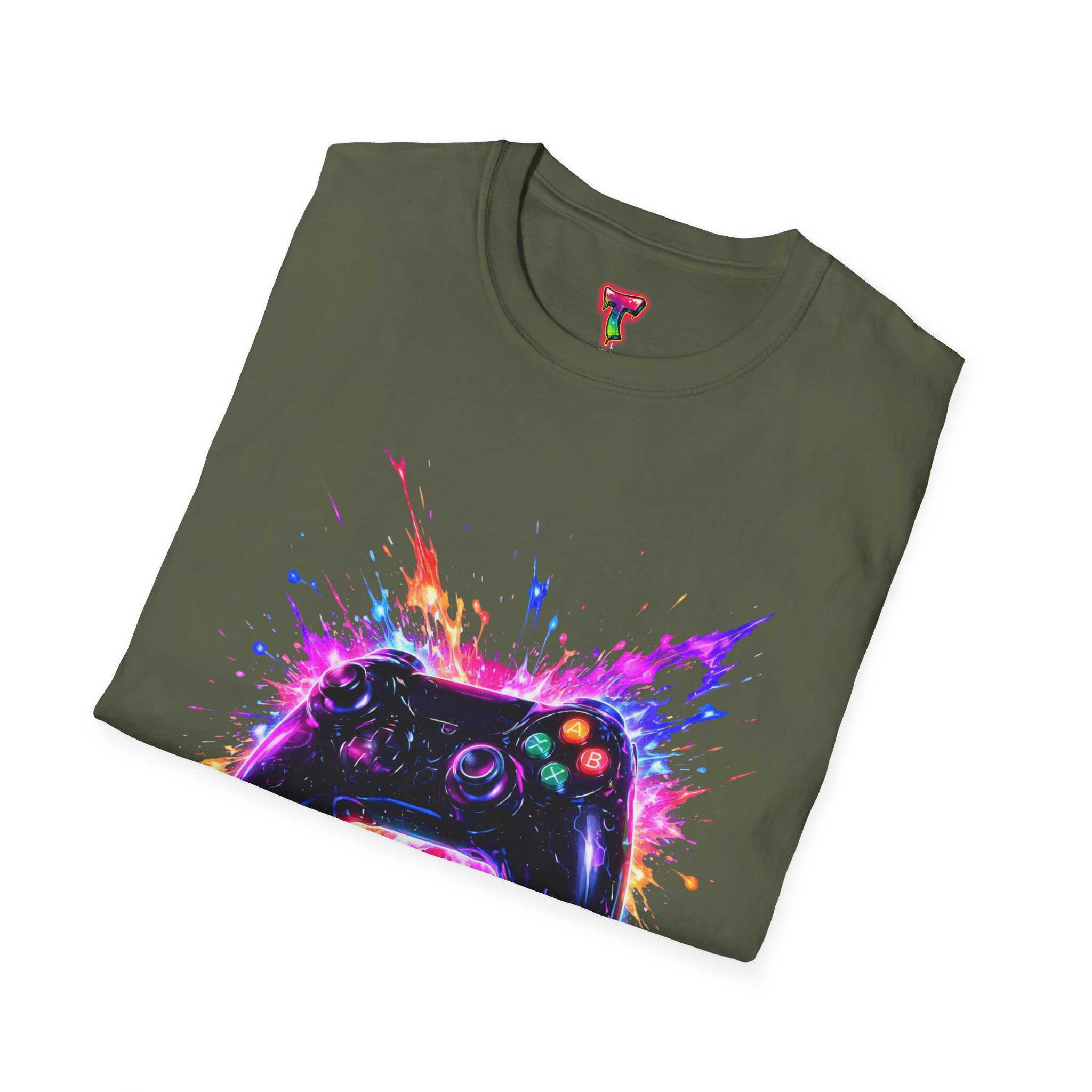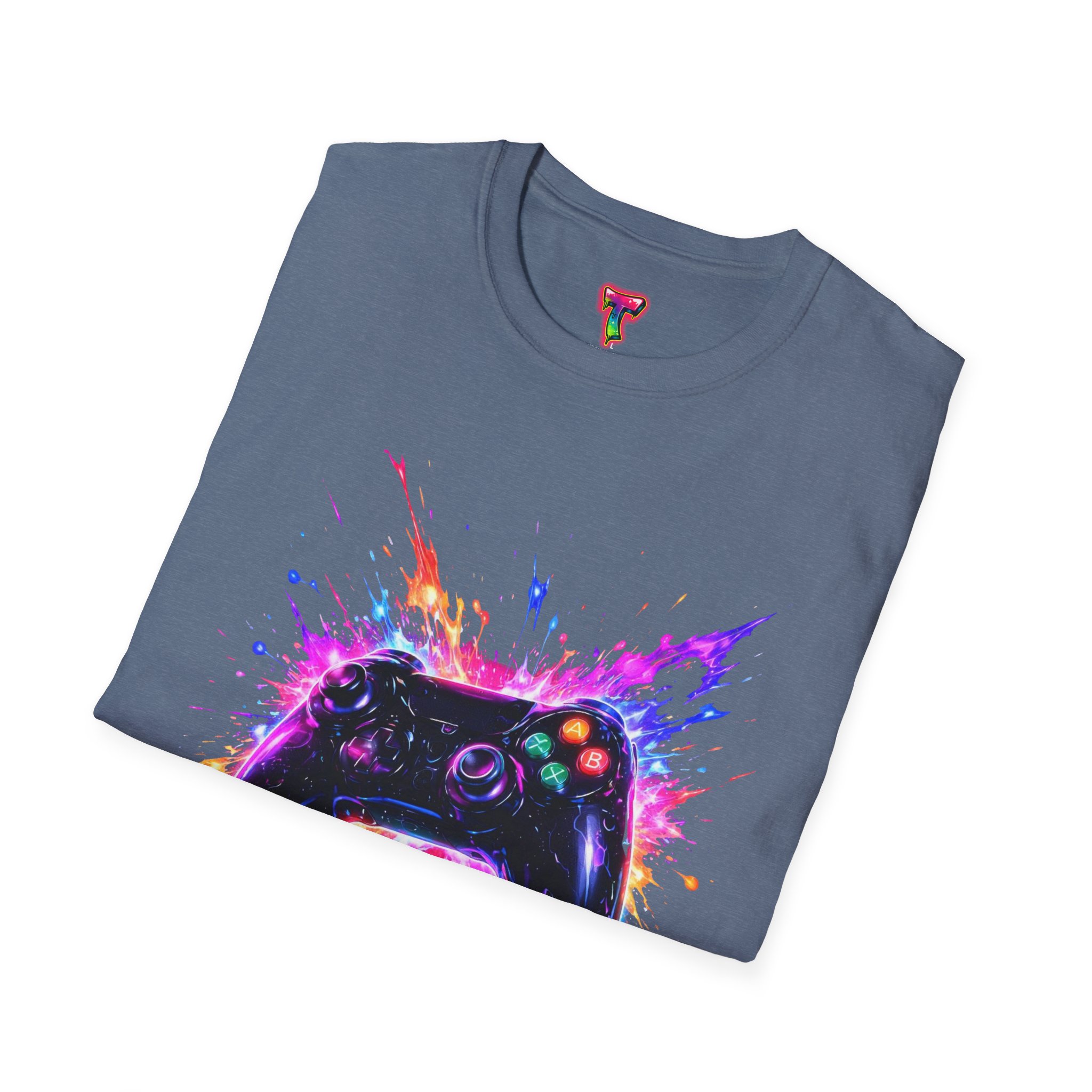 Level up your style with this vibrant gaming controller graphic tee featuring neon electric splashes, glowing colors, and explosive energy effects. Designed for gamers who live for competition, fun, and nonstop action. A bold statement shirt perfect for gaming sessions, esports fans, streamers, and anyone who loves modern gamer culture.