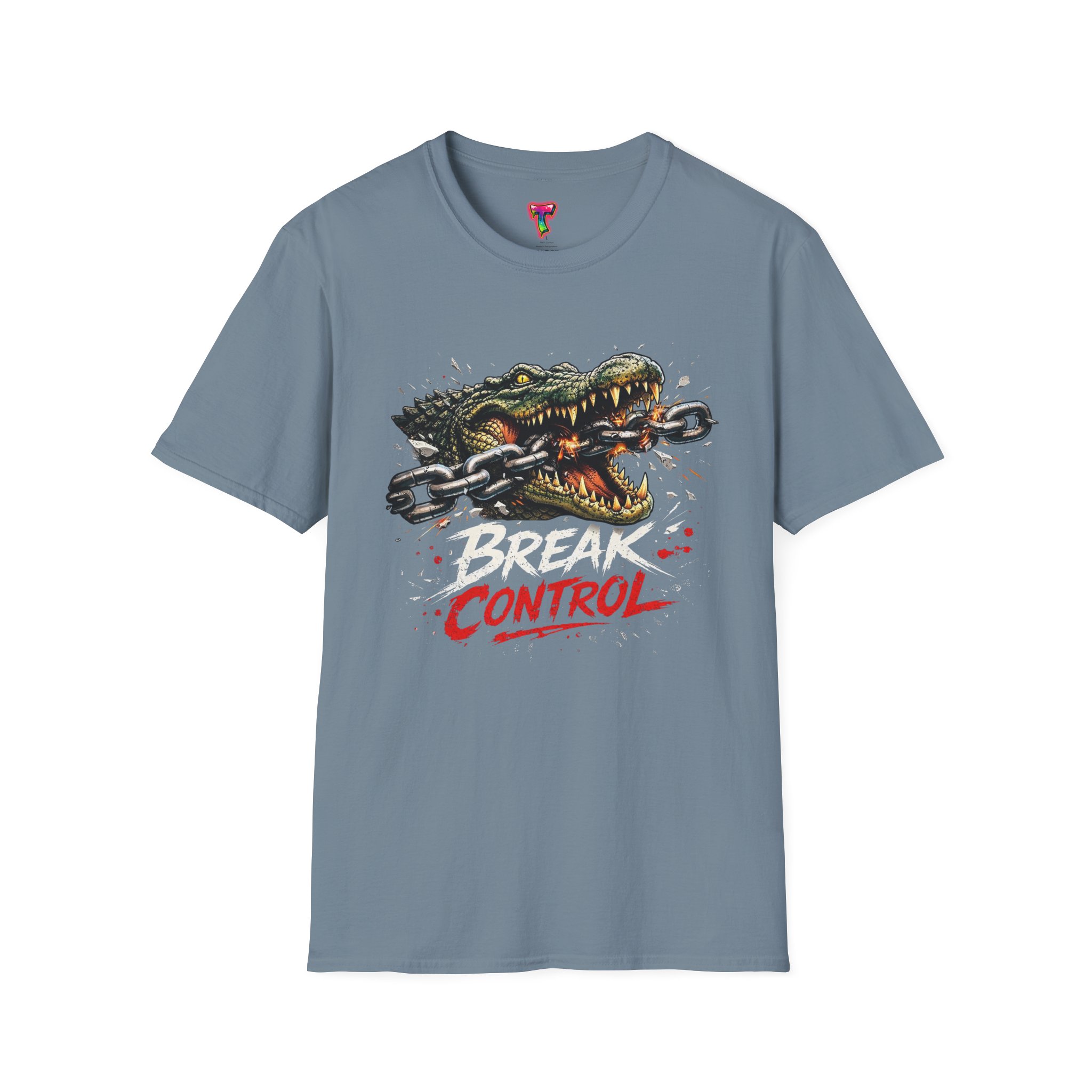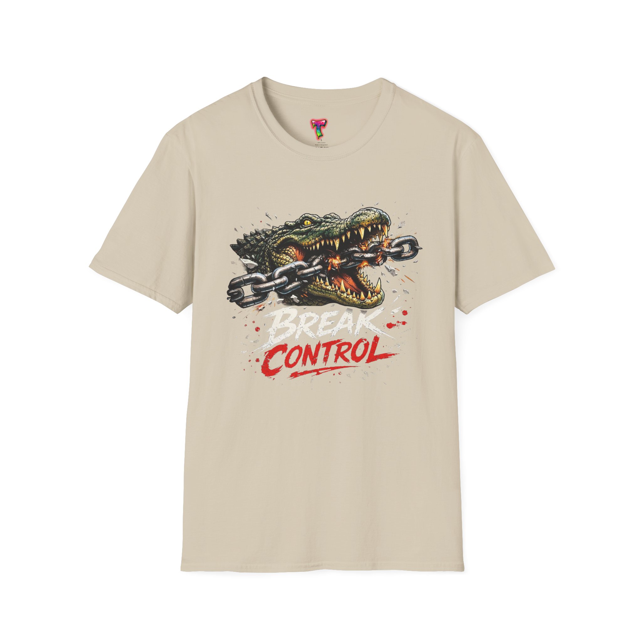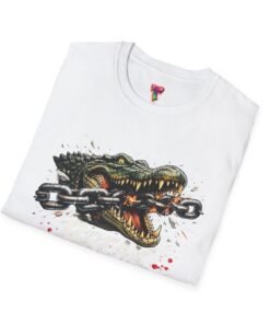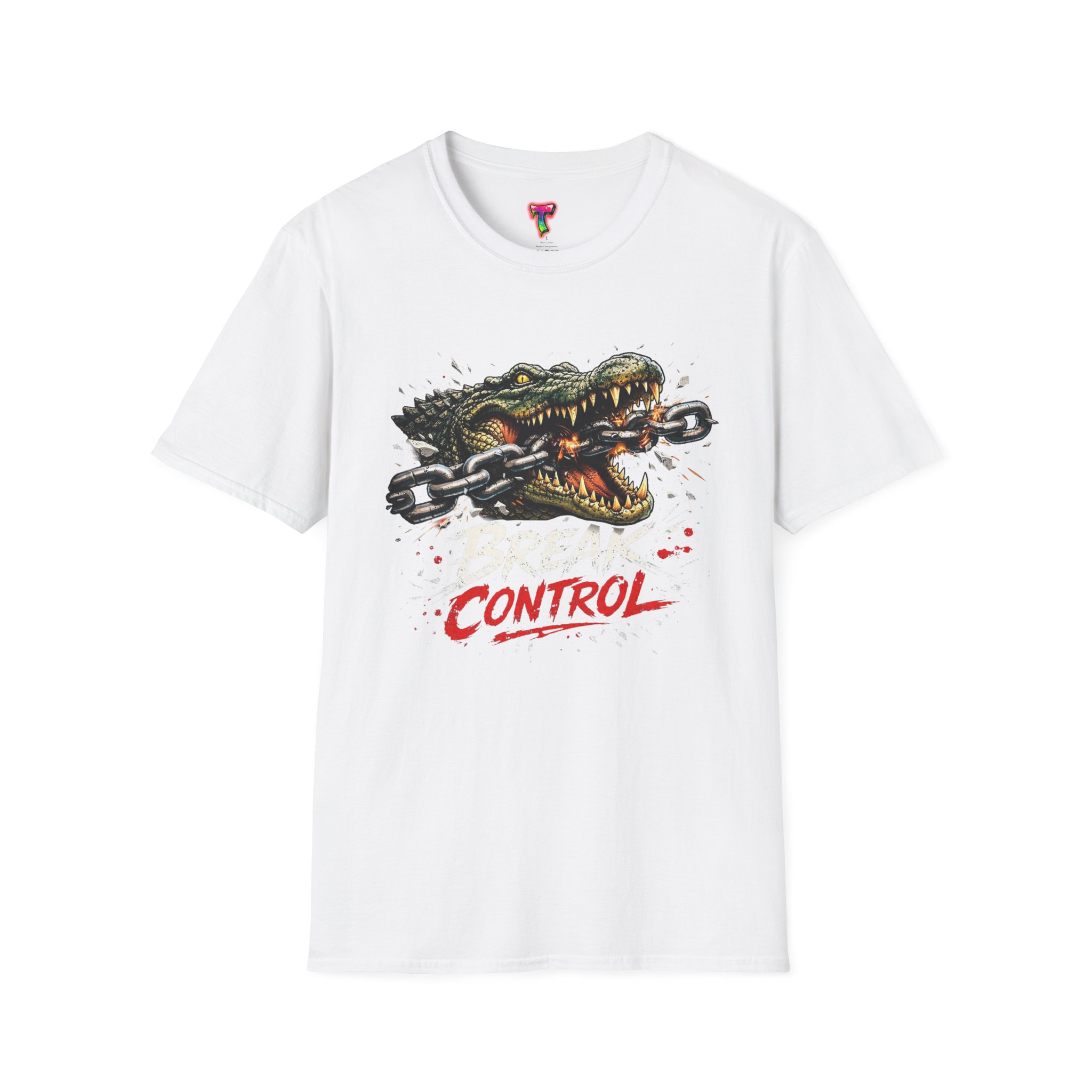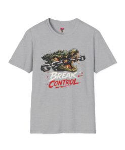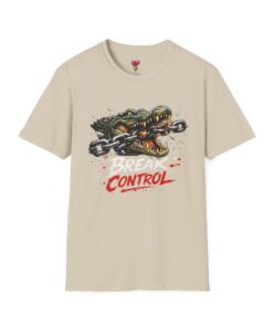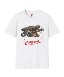 Raw energy and a quiet dare — this lightweight tee puts a snarling, chained crocodile front and center with a bold, handwritten “CONTROL” beneath. The artwork feels urgent and tactile: ink splatters, distressed texture, and a vintage poster vibe that reads like a personal declaration. Wear it when you want your outfit to speak a little louder than your words — walking through city streets, at a gig, or layered under a jacket for nights out. The soft, breathable cotton keeps the focus on the art while giving a lived-in comfort that invites repeat wear. It’s a statement piece for someone who likes grit, attitude, and a graphic that tells a story.