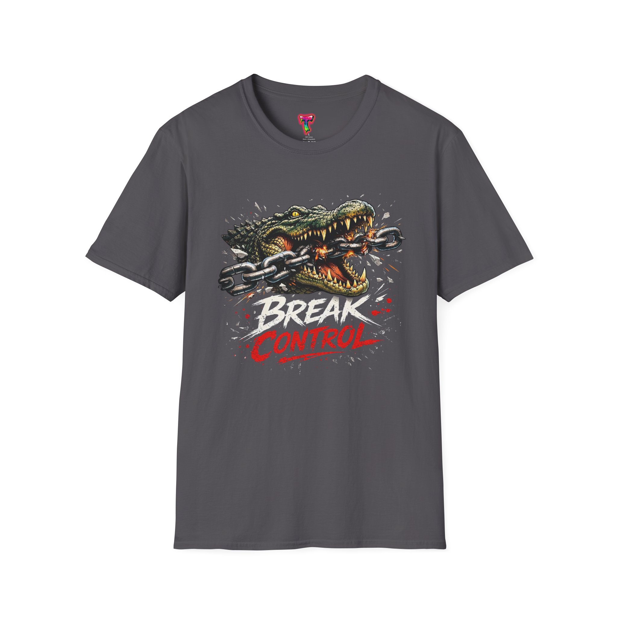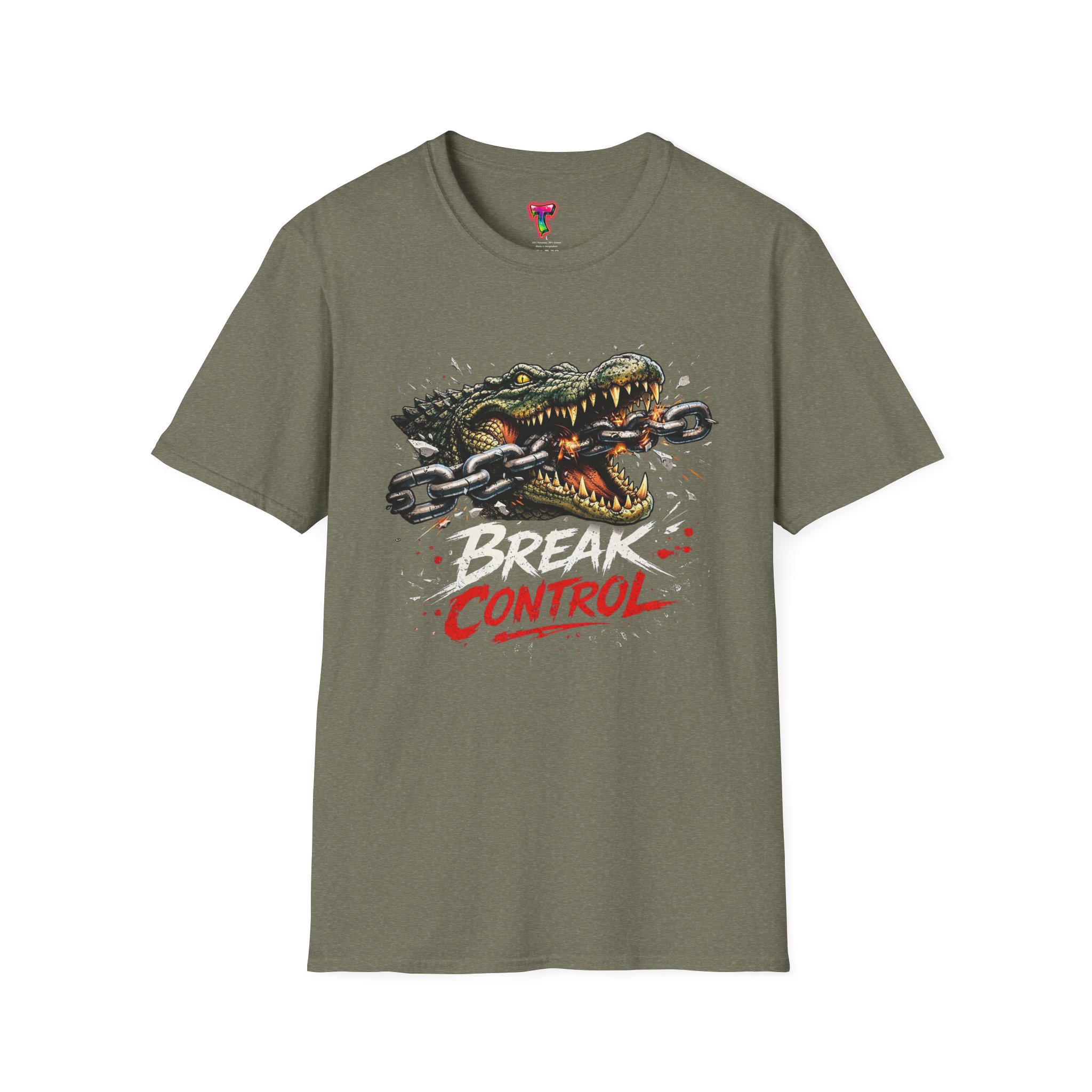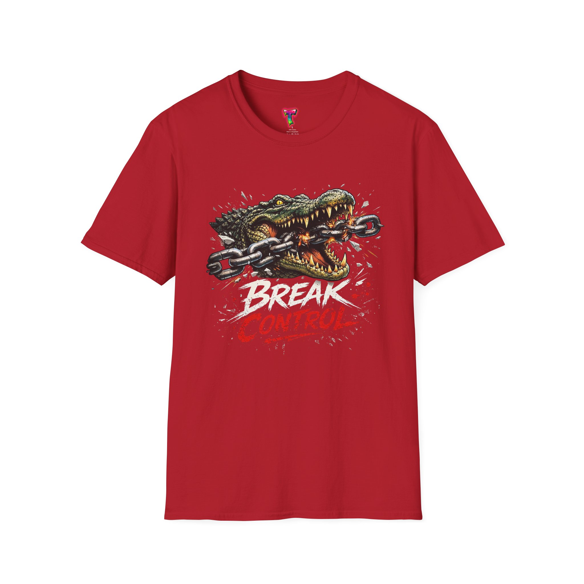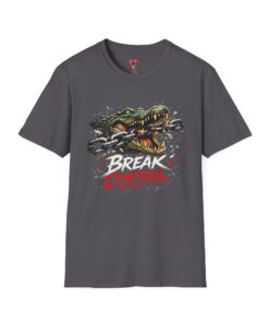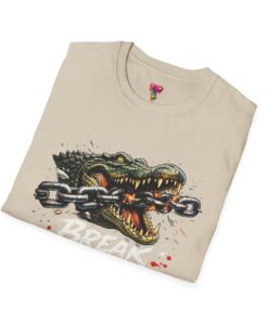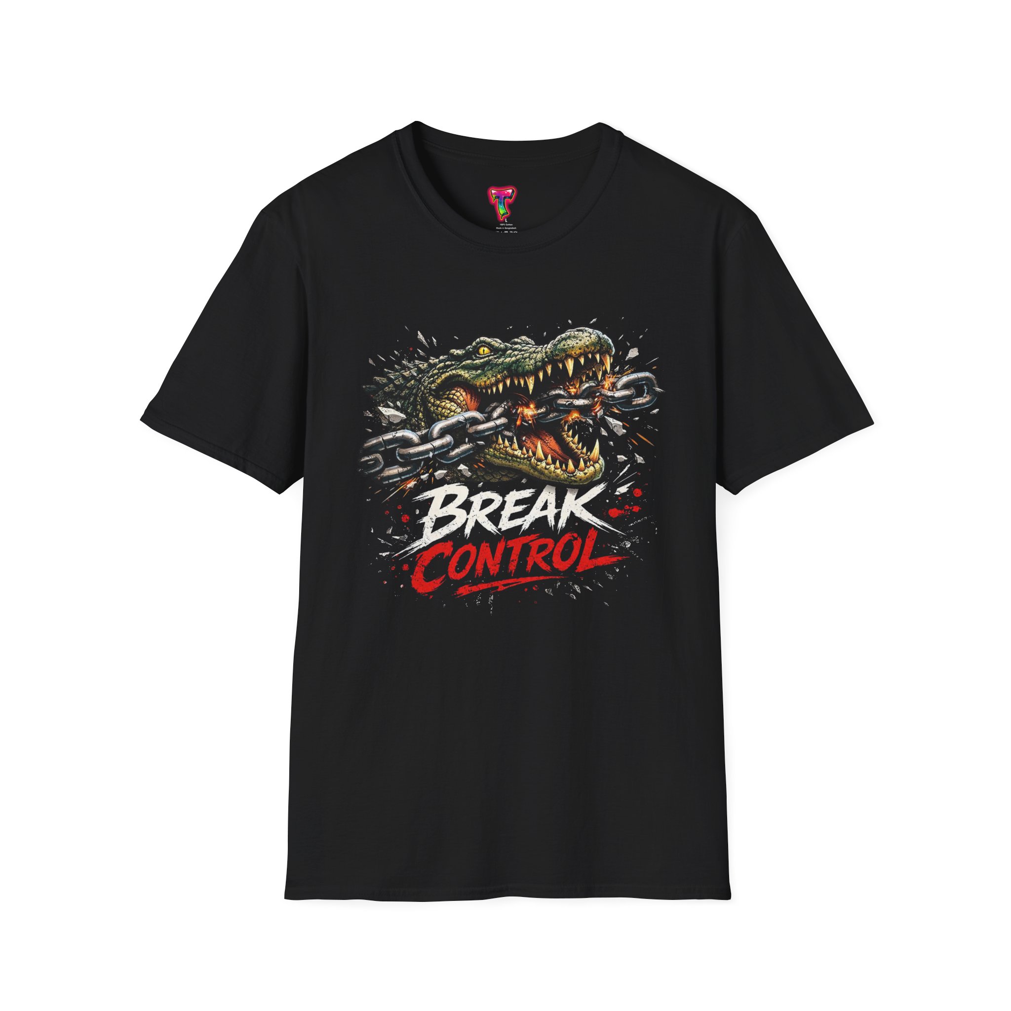 Raw energy and a quiet dare — this lightweight tee puts a snarling, chained crocodile front and center with a bold, handwritten “CONTROL” beneath. The artwork feels urgent and tactile: ink splatters, distressed texture, and a vintage poster vibe that reads like a personal declaration. Wear it when you want your outfit to speak a little louder than your words — walking through city streets, at a gig, or layered under a jacket for nights out. The soft, breathable cotton keeps the focus on the art while giving a lived-in comfort that invites repeat wear. It’s a statement piece for someone who likes grit, attitude, and a graphic that tells a story.