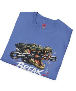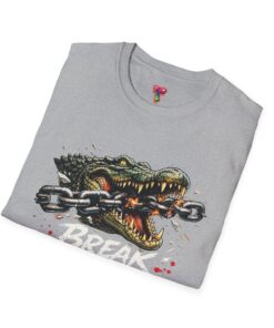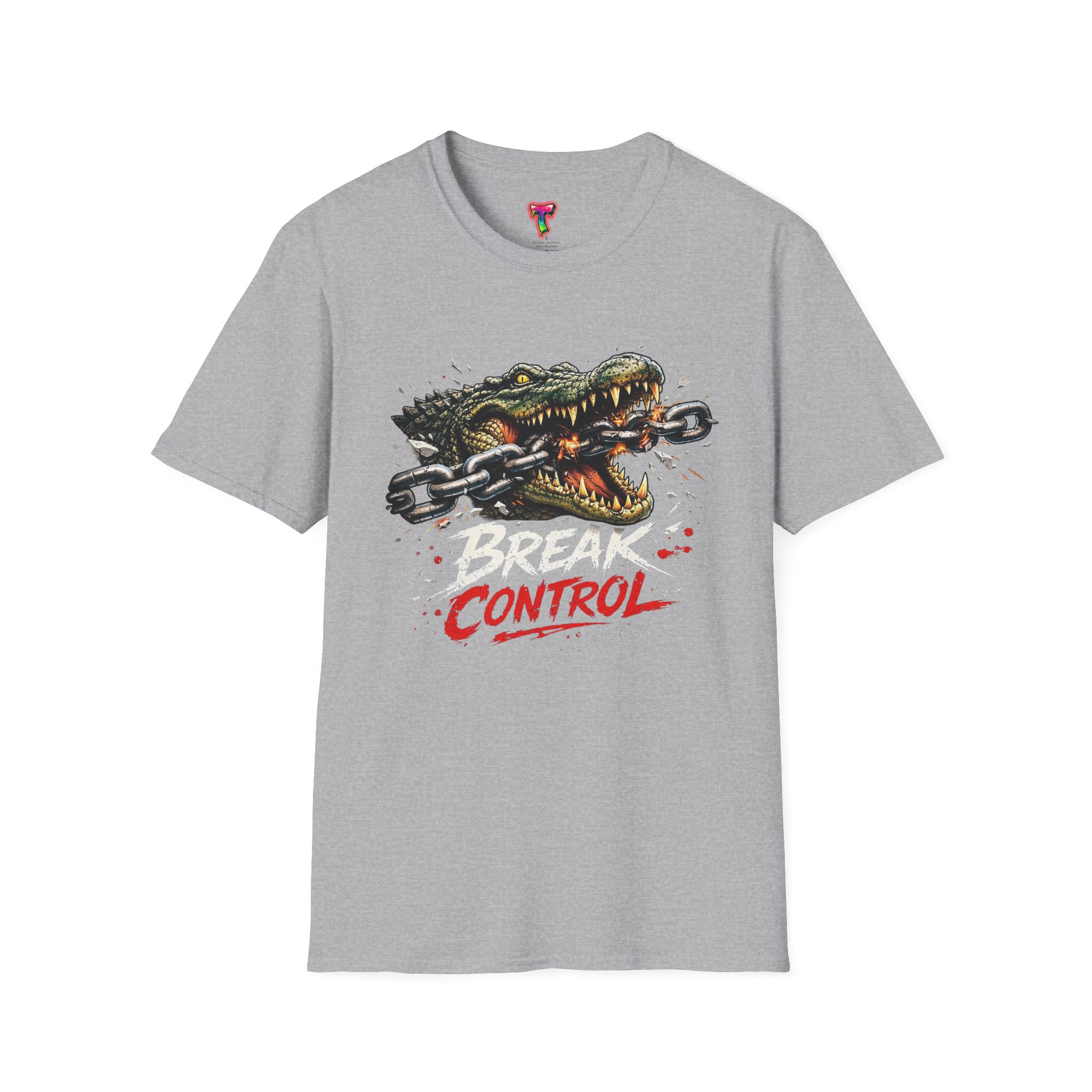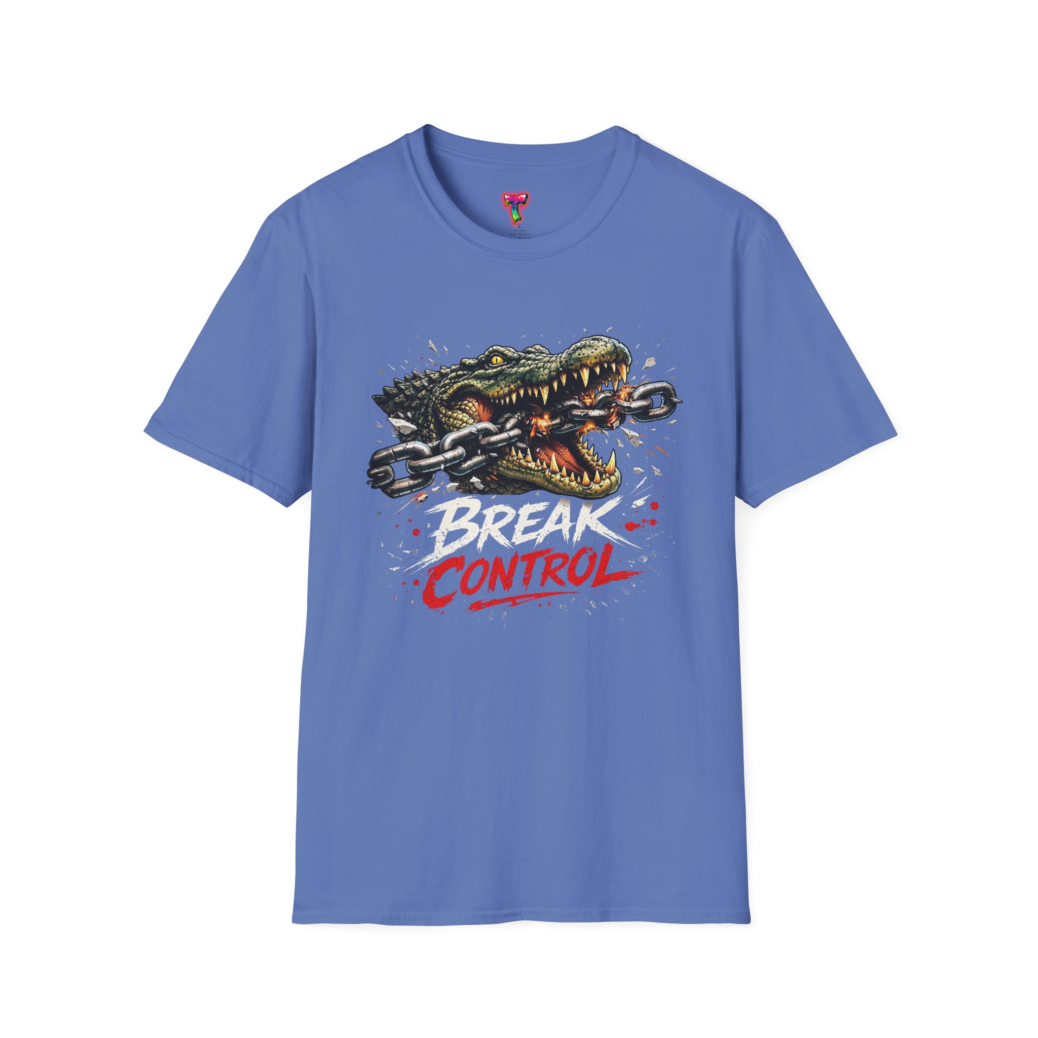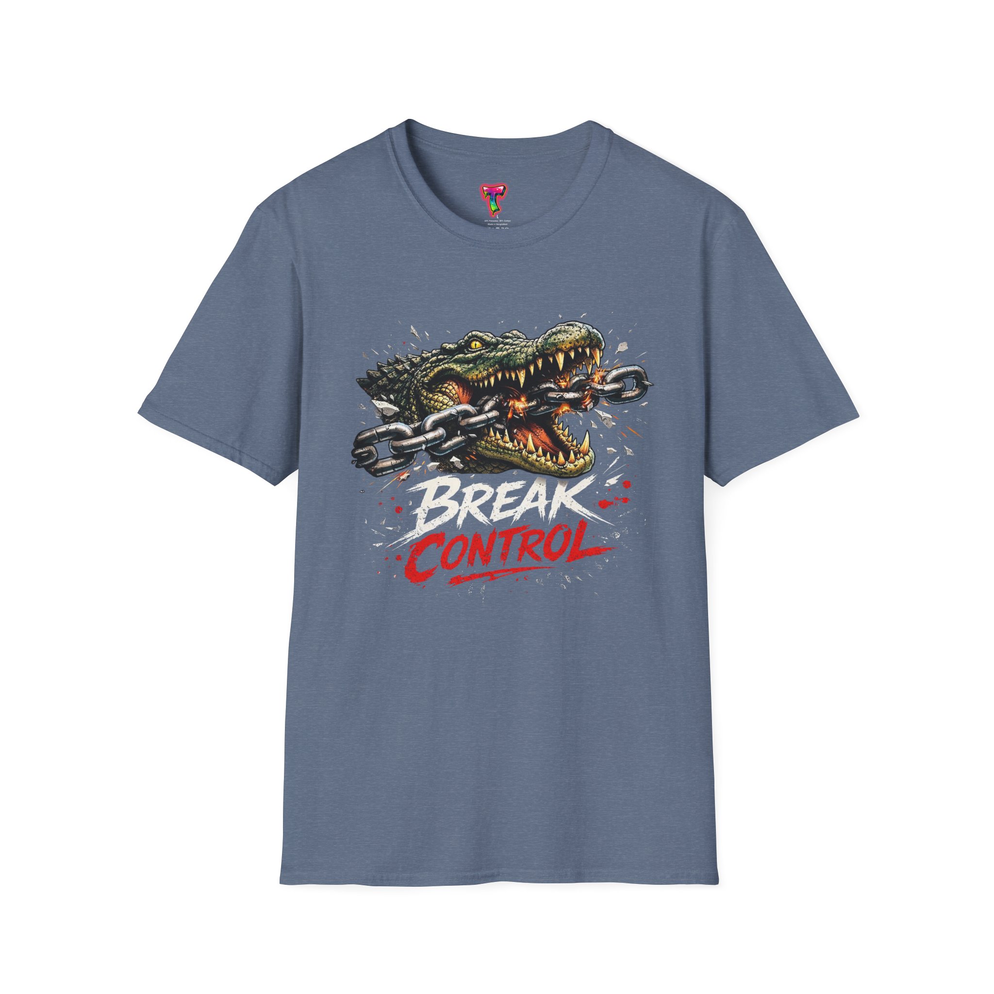 Raw energy and a quiet dare — this lightweight tee puts a snarling, chained crocodile front and center with a bold, handwritten “CONTROL” beneath. The artwork feels urgent and tactile: ink splatters, distressed texture, and a vintage poster vibe that reads like a personal declaration. Wear it when you want your outfit to speak a little louder than your words — walking through city streets, at a gig, or layered under a jacket for nights out. The soft, breathable cotton keeps the focus on the art while giving a lived-in comfort that invites repeat wear. It’s a statement piece for someone who likes grit, attitude, and a graphic that tells a story.