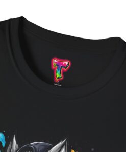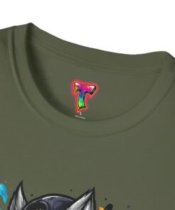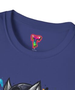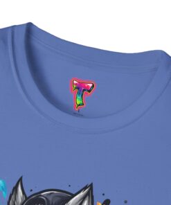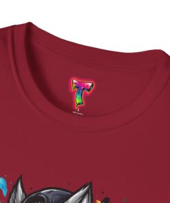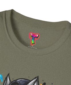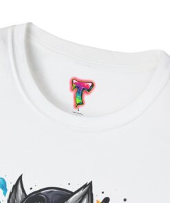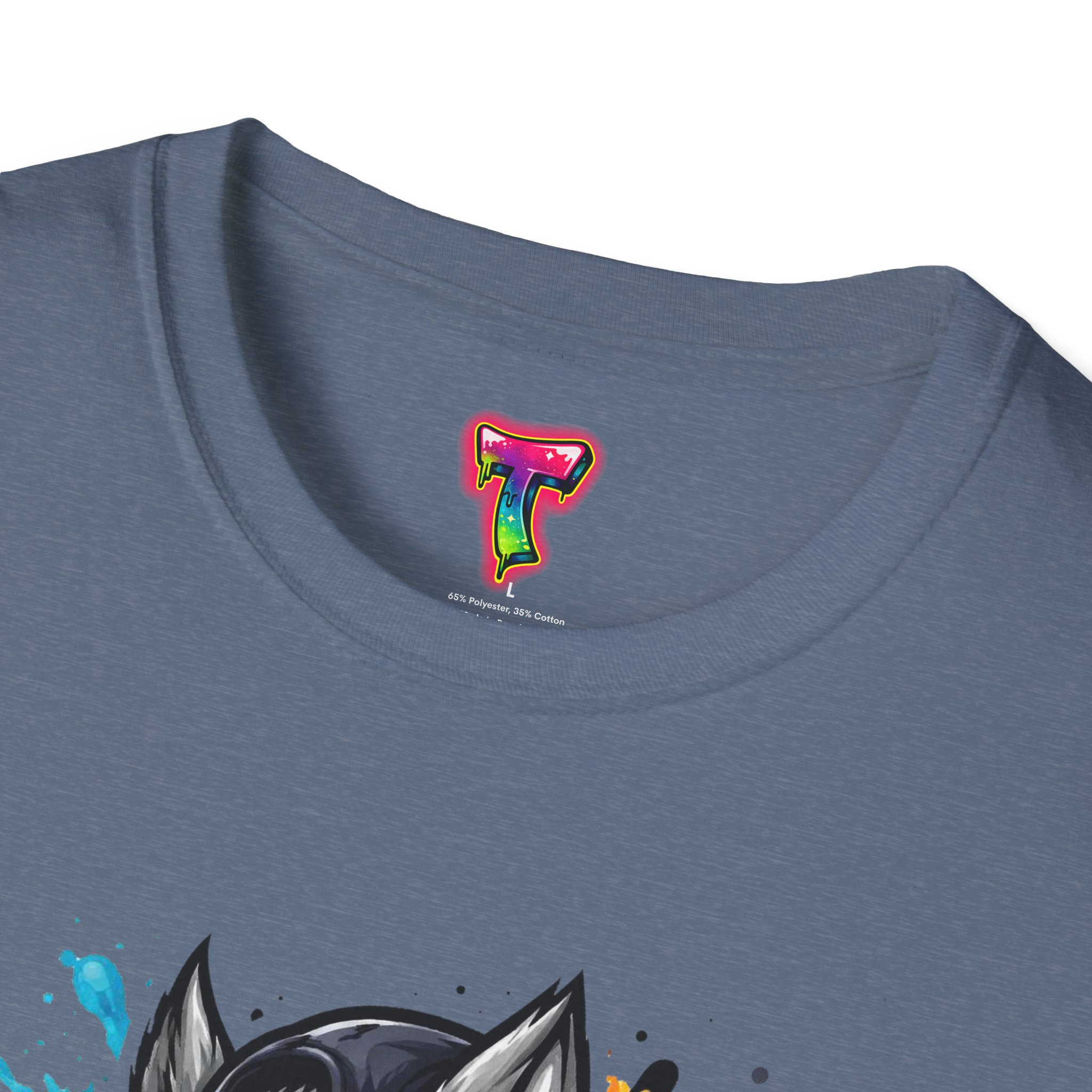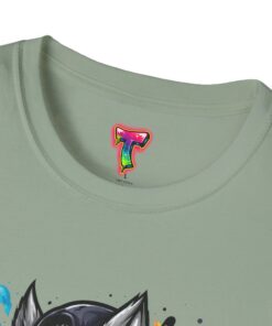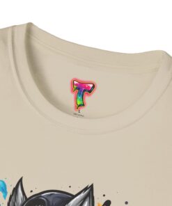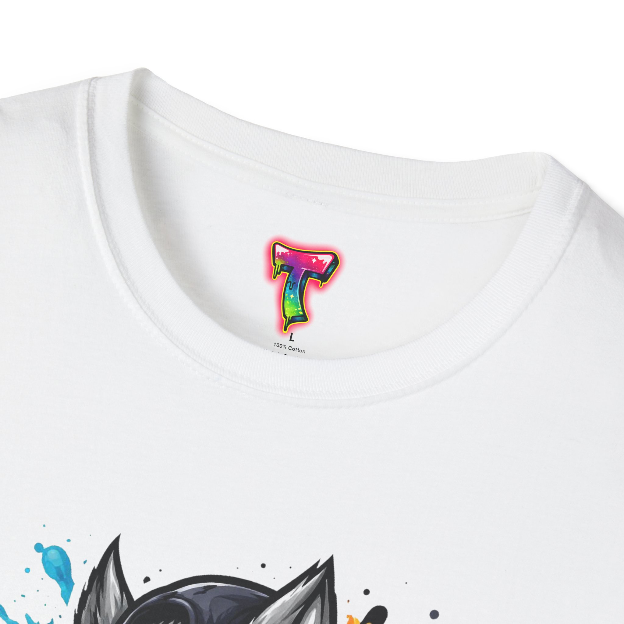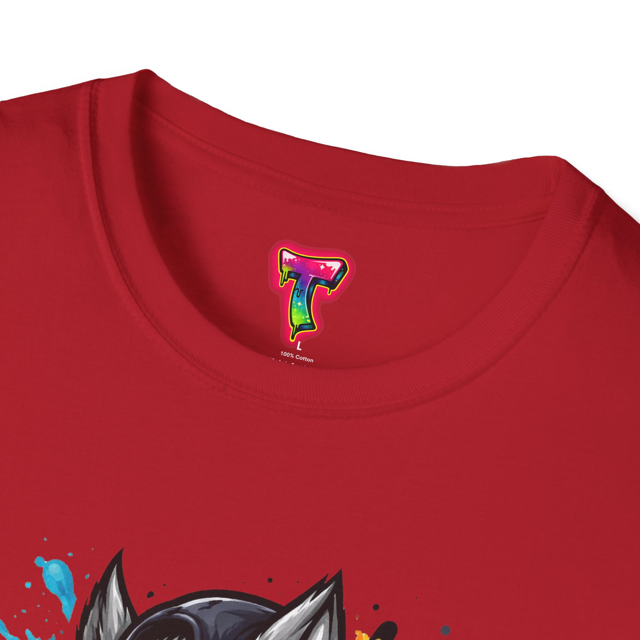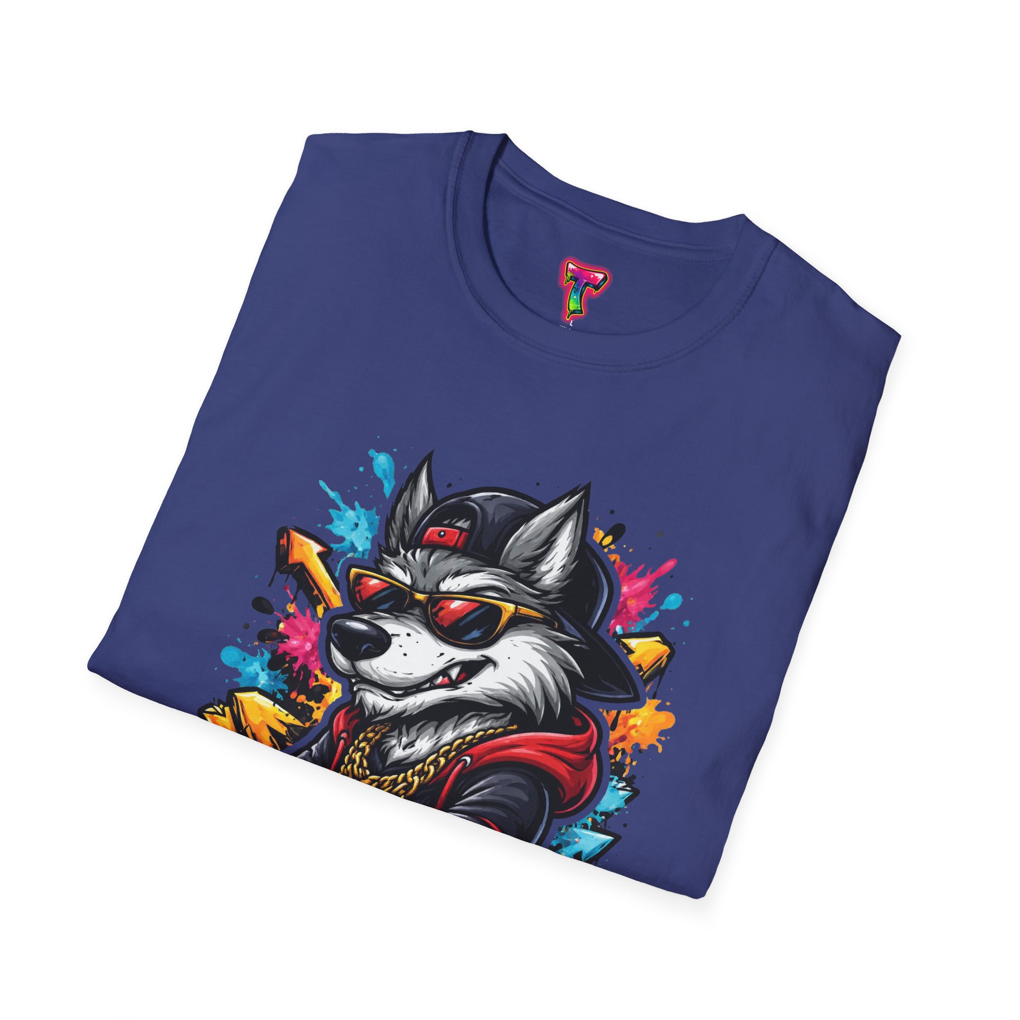 This crisp cotton tee wears like a confident nod — bold artwork at the chest, soft drape against the skin, and a clean crew neckline that keeps the look effortless. The graphic shows a streetwise wolf in a leather jacket and shades, splashed with vibrant paint accents that catch the eye and add movement. It fits into everyday wardrobes for people who lean into urban edge: skateboarders, street-art fans, band-goers, and anyone who likes a bit of bite in their style. Wear it to late-night gigs, art walks, skate sessions, or casual meetups; the lightweight ring-spun cotton keeps you comfortable while the durable print holds up to repeat wear. Simple, sturdy construction (no side seams, taped shoulders, ribbed collar) means this tee looks good wash after wash.