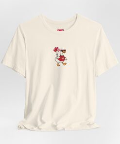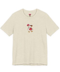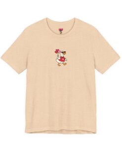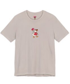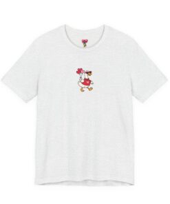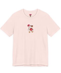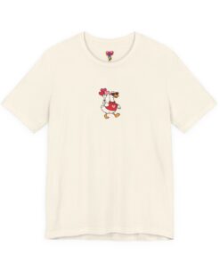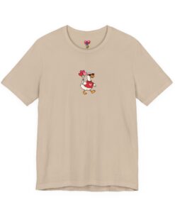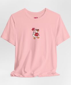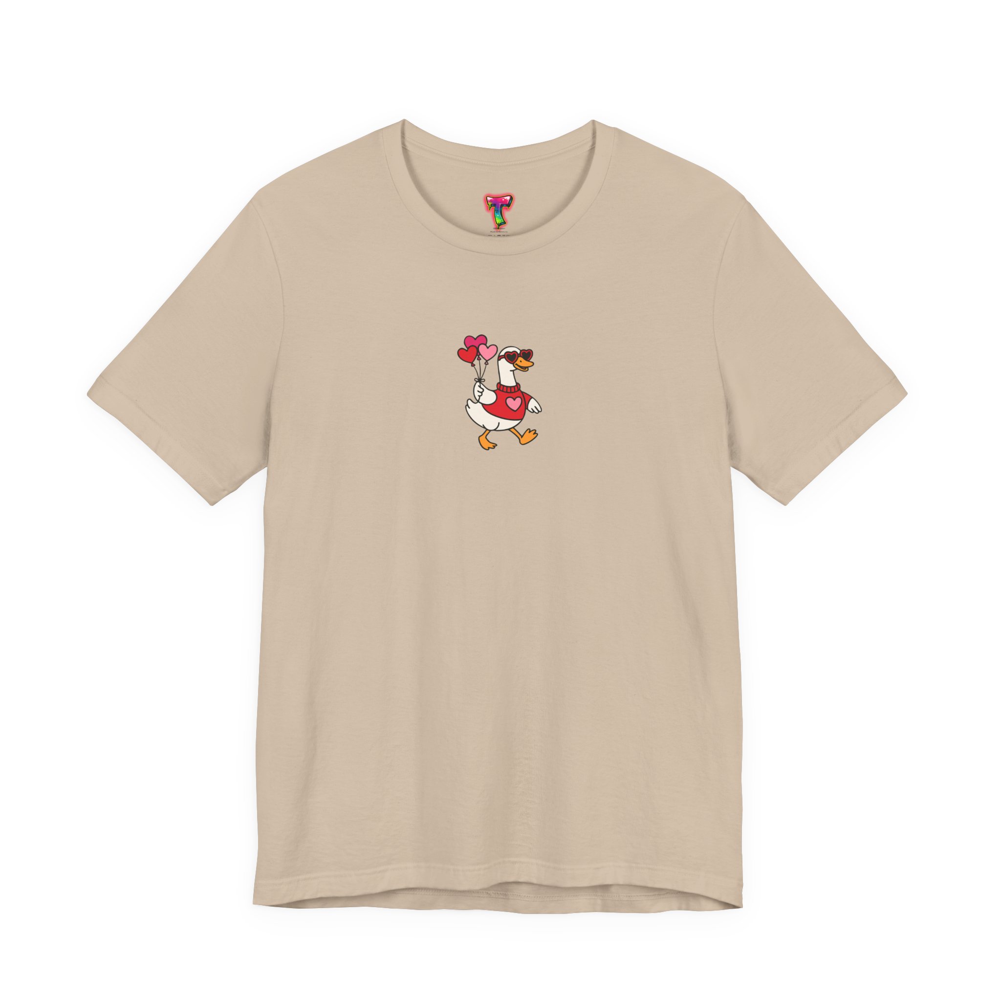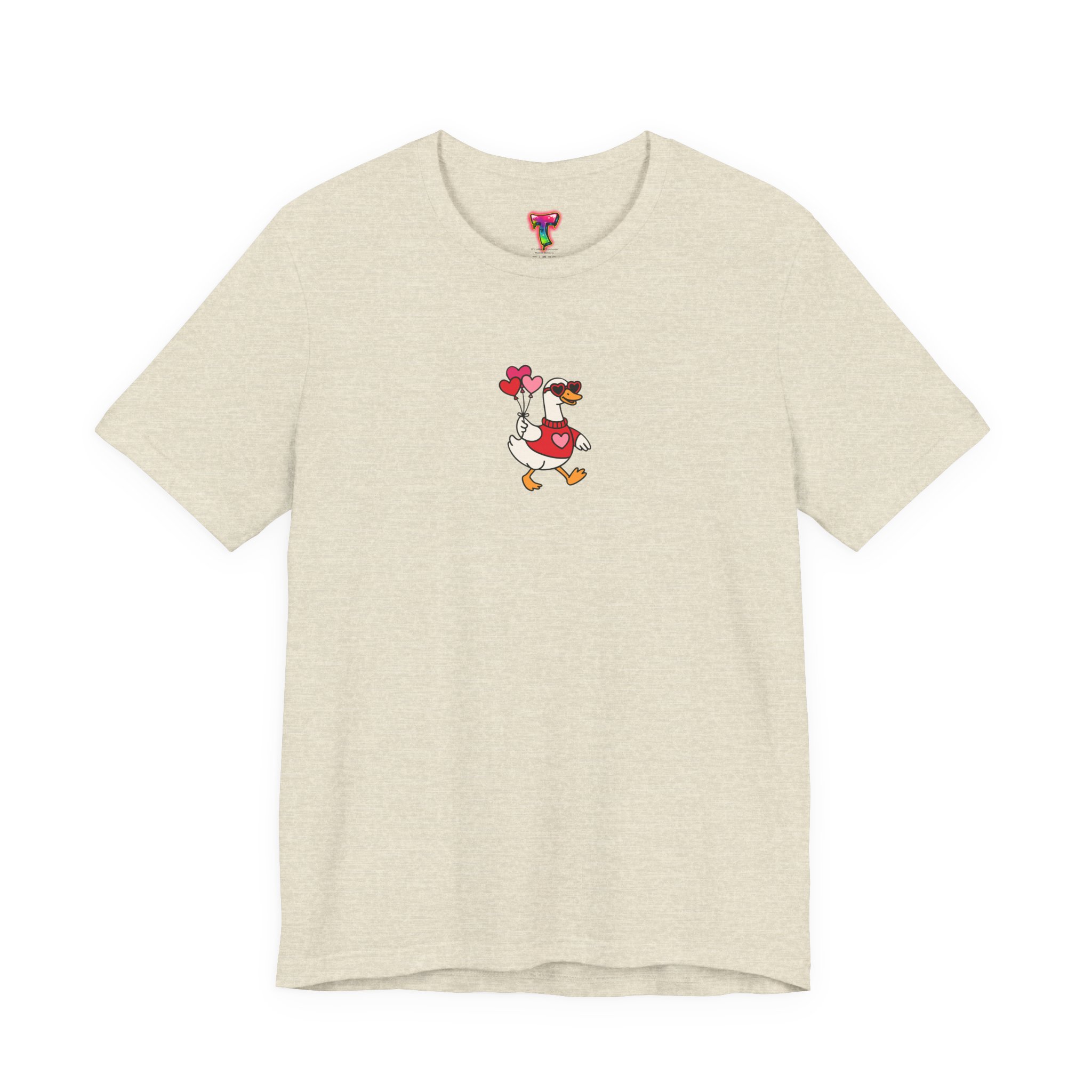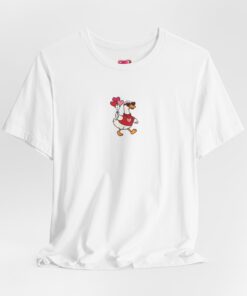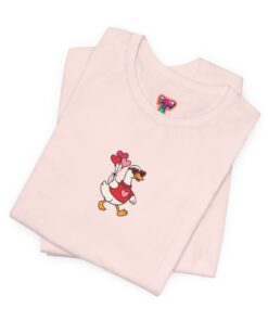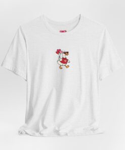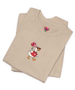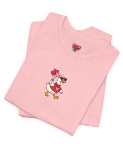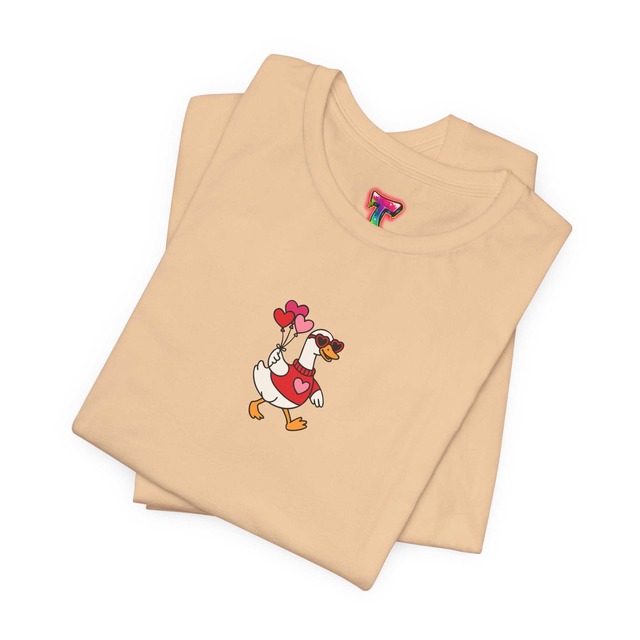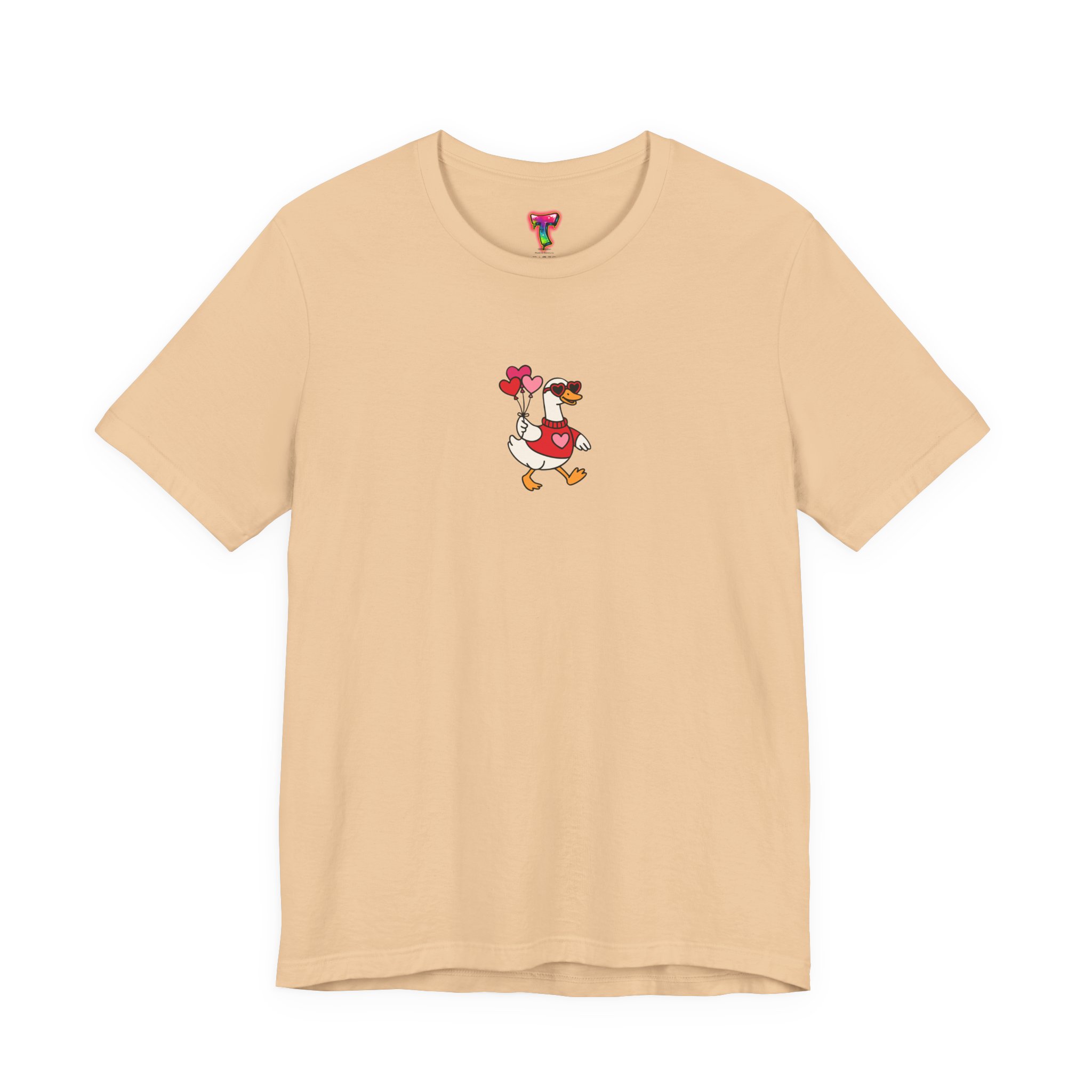 Steal the show with the coolest bird in town! Our “Cool Duck” Tee is all about confident vibes. This design features our signature white duckling looking extra smooth in black sunglasses and a heart-patterned red sweater, holding a bunch of pink heart balloons. It’s a playful mix of “cool” and “cute” that makes it an irresistible choice for anyone who loves unique, conversation-starting fashion.
