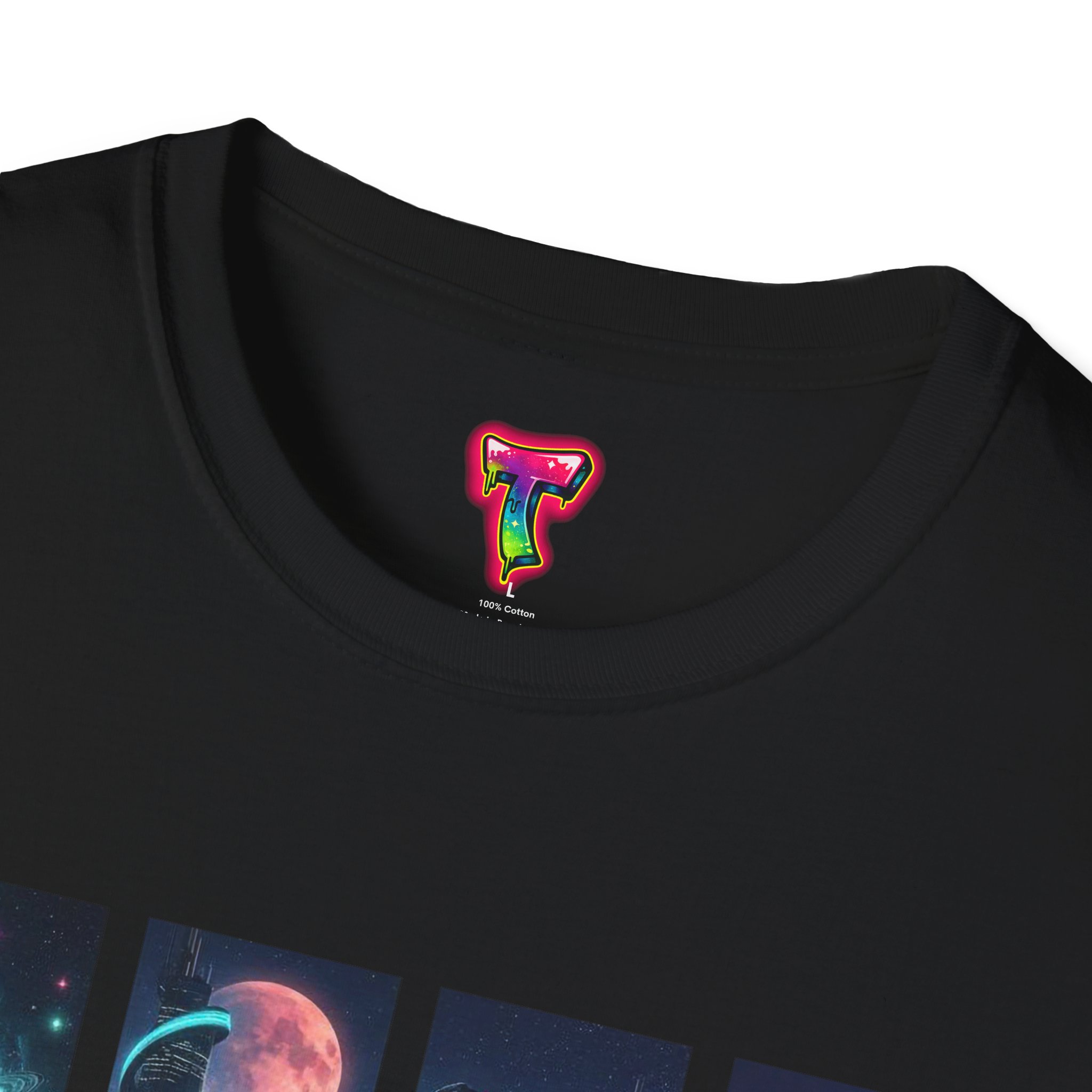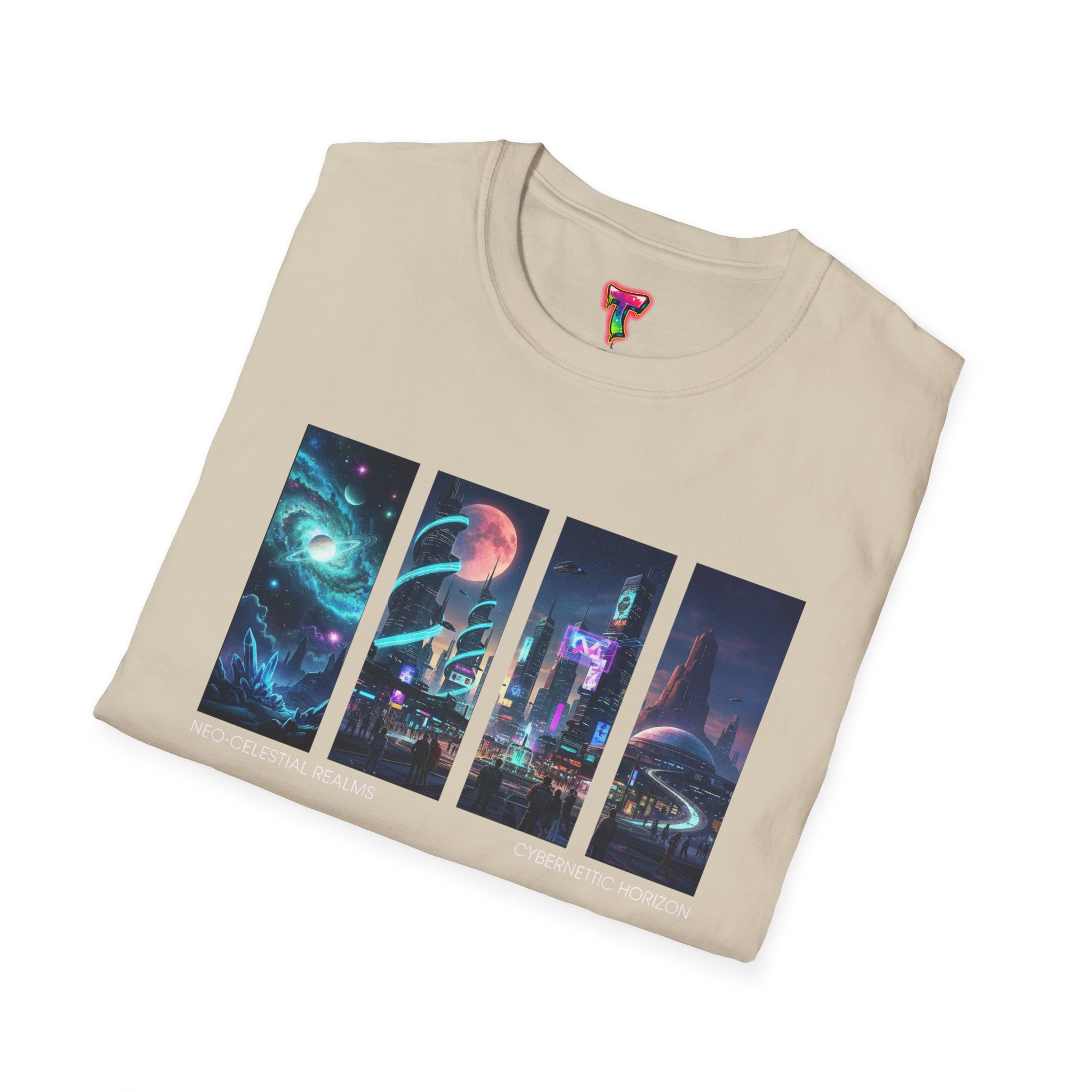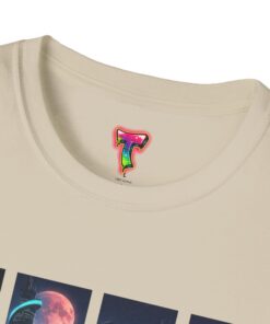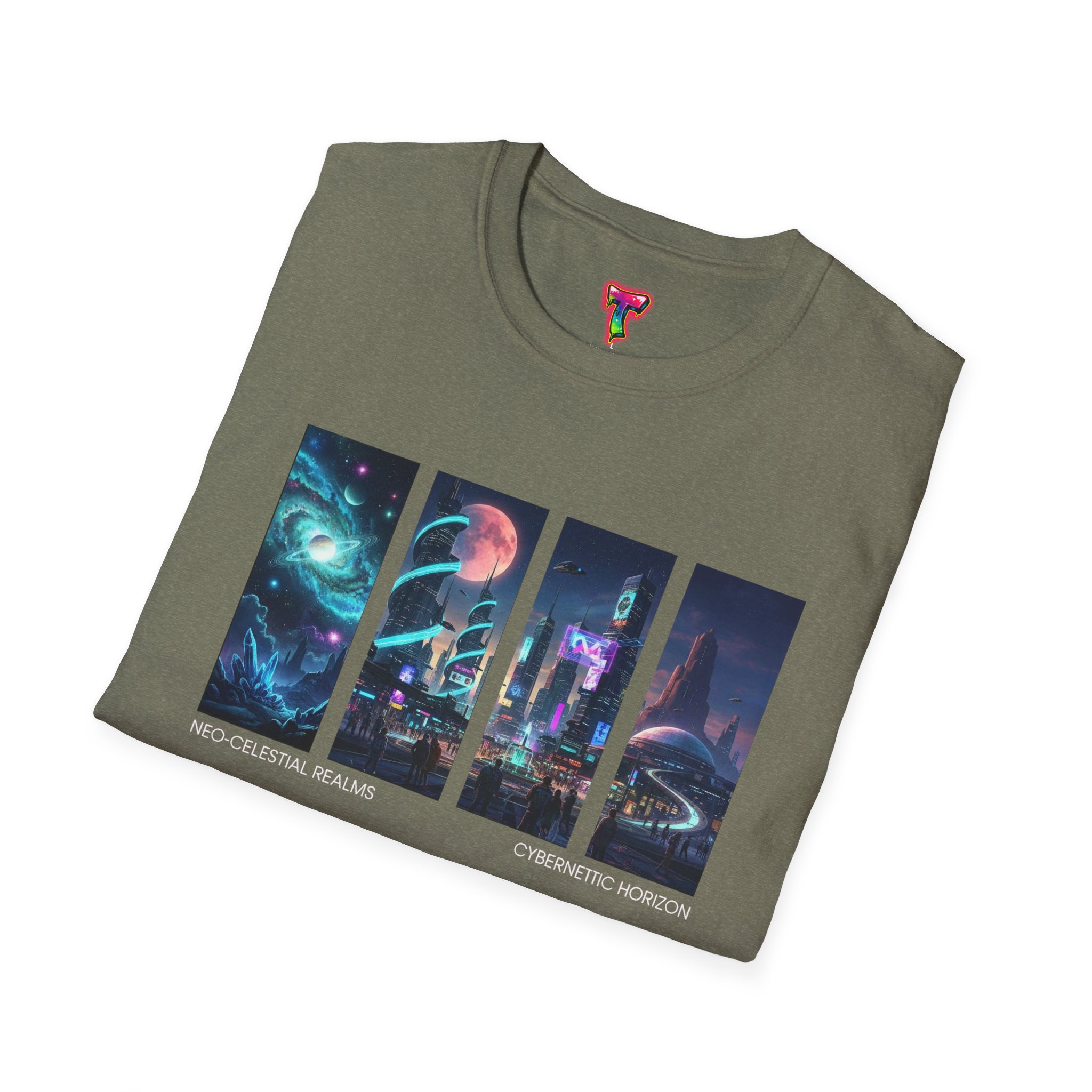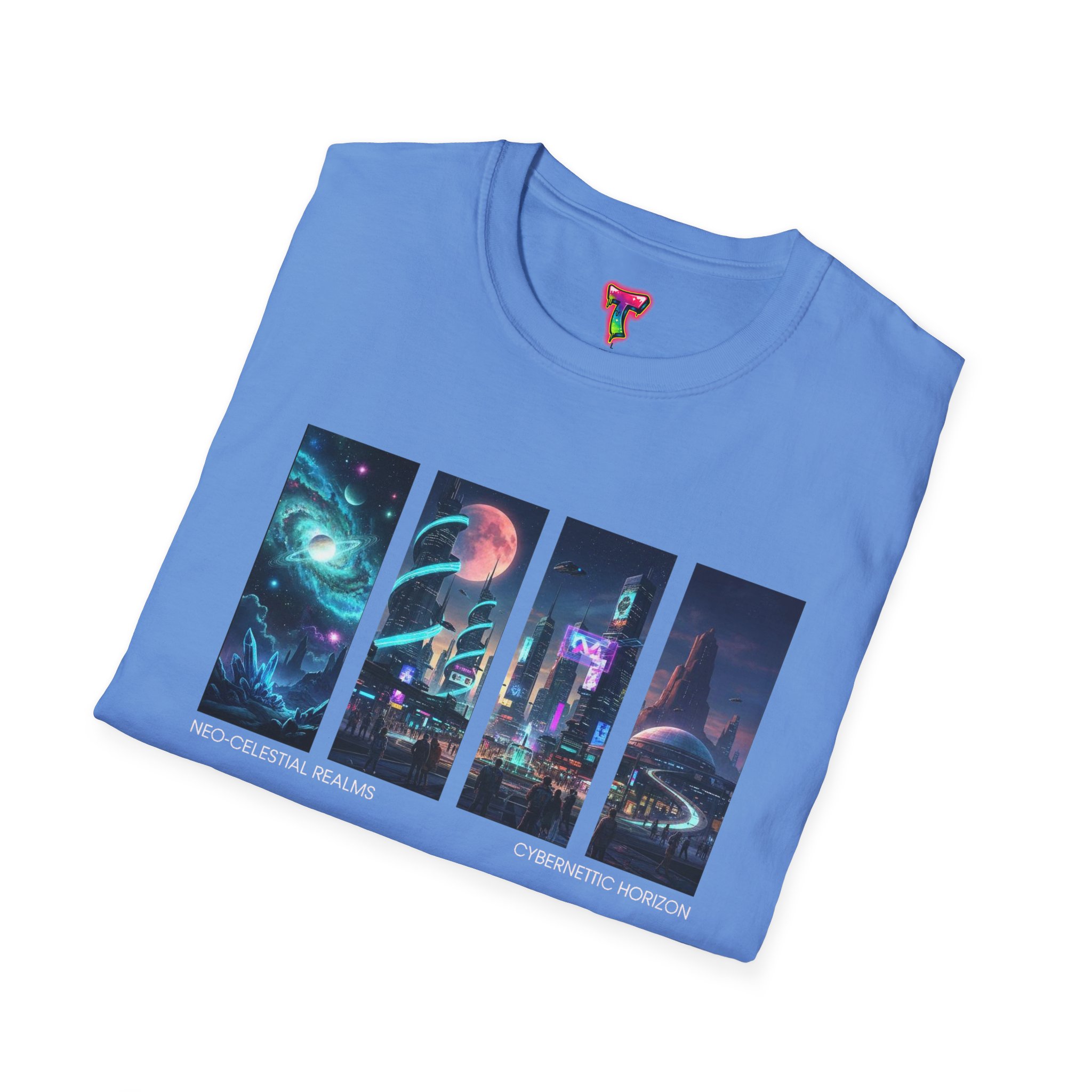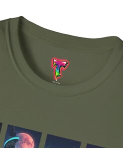 A soft, breathable tee printed with a quartet of neon-soaked sci‑fi vignettes — swirling galaxies, a lone astronaut on a glowing world, a neon city skyline, and a looming starship. Wear it when you want to carry a small, vivid story on your chest: retro-futuristic colors that pop against the red fabric, fine DTG/DTF printing that keeps details crisp, and a lightweight feel that moves with you. It sits comfortably under a jacket or stands out on its own during late-night meetups, con‑wars, con panels, or casual city wandering. The shirt ages gracefully thanks to ring‑spun cotton and thoughtful construction — shoulder tape, ribbed collar, and tear‑away label for everyday comfort — while certifications and ethical sourcing give the piece quiet integrity.