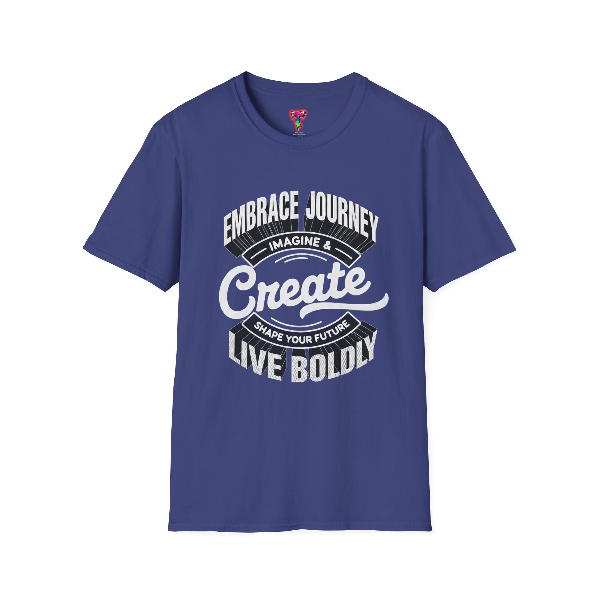 This soft, ring-spun cotton tee carries a bold, hand-lettered message: “Create — Embrace Journey, Live Boldly.” The vintage-style typography sits centered on a rich maroon background, giving the shirt a worn-in, adventurous feel without feeling precious. Lightweight and breathable, it layers easily under a jacket or stands alone when you want your message to lead the room. Wear it while sketching, pacing through a new city, or meeting other makers — it reads like a quiet nudge to take risks and turn ideas into action.