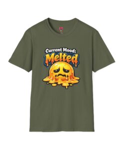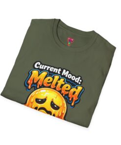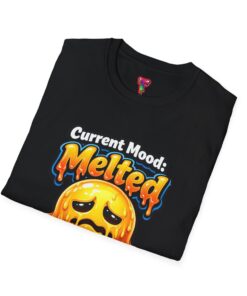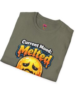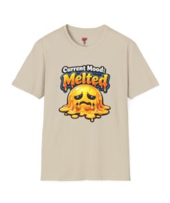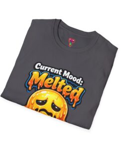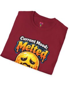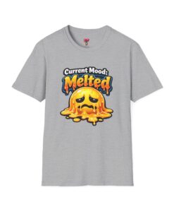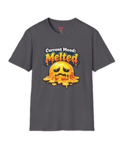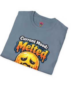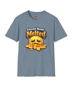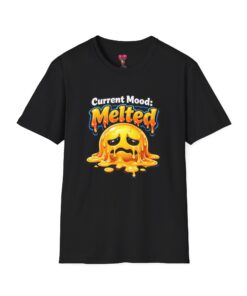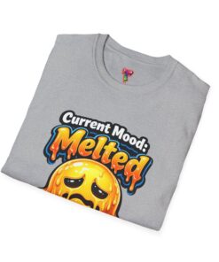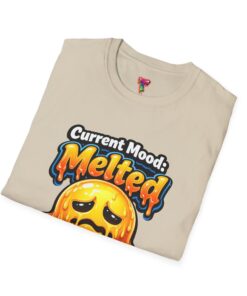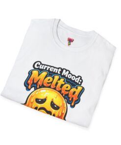 This lightweight cotton tee carries a playful, slightly sardonic mood — a melting emoji and the caption “Current Mood: Melted” printed in bold, glossy colors. It feels soft against the skin and sits with a relaxed, classic fit so the design reads clearly without stretching or distortion. Wear it on slow, sticky days or when you want to confess exhaustion with a sly sense of humor. The single-piece tubular knit and ribbed collar keep the silhouette tidy after many washes, and the tear-away label lets you layer comfortably. Ethically grown cotton and Oeko-Tex certification mean you can shrug into it with a little less worry about how it was made.