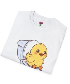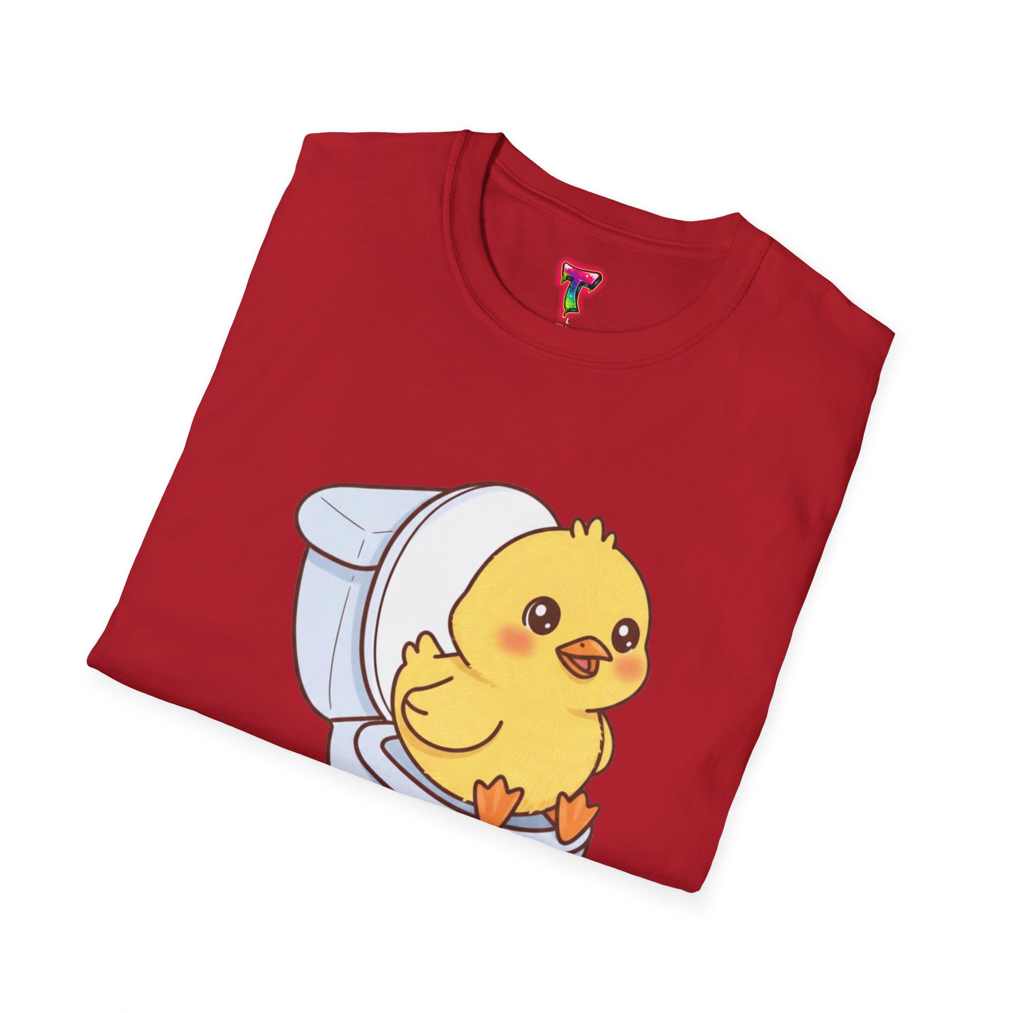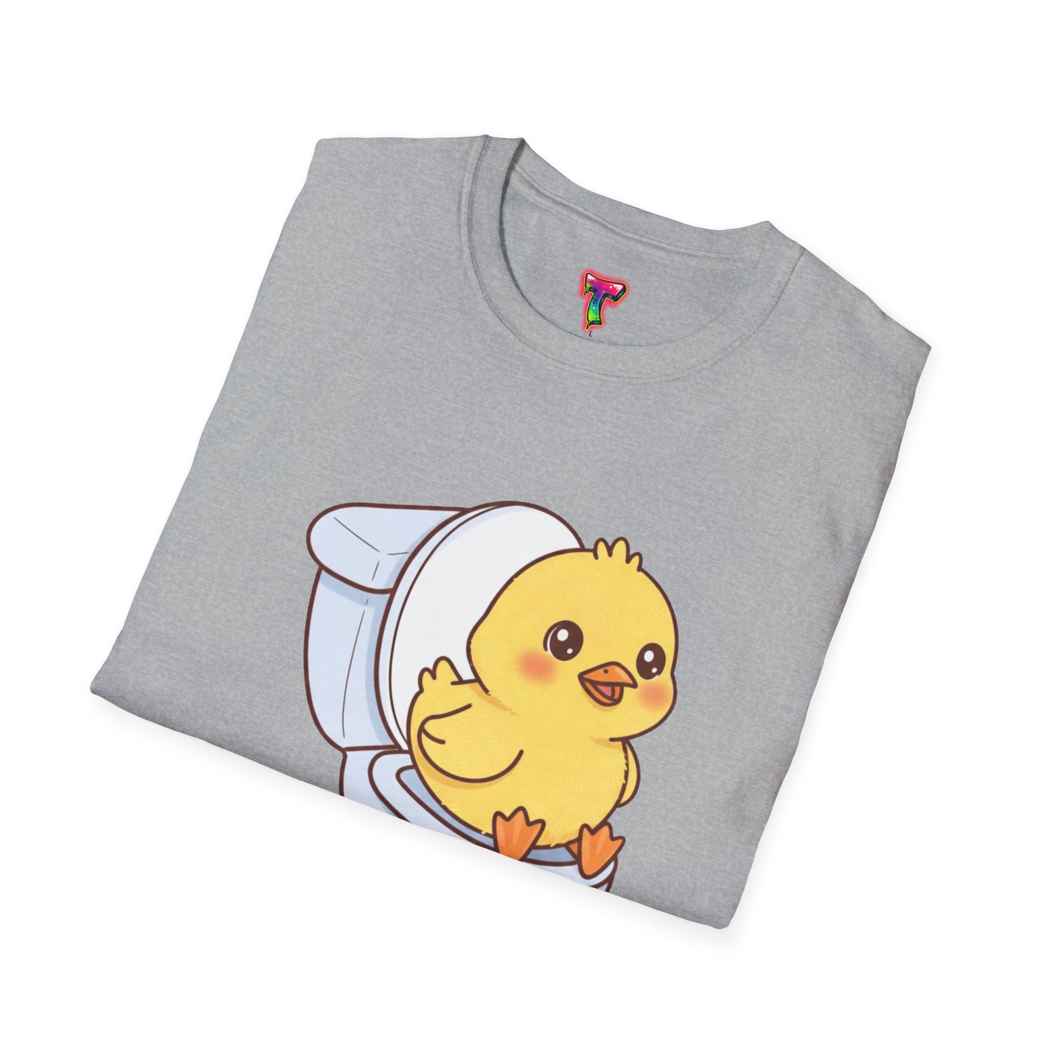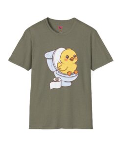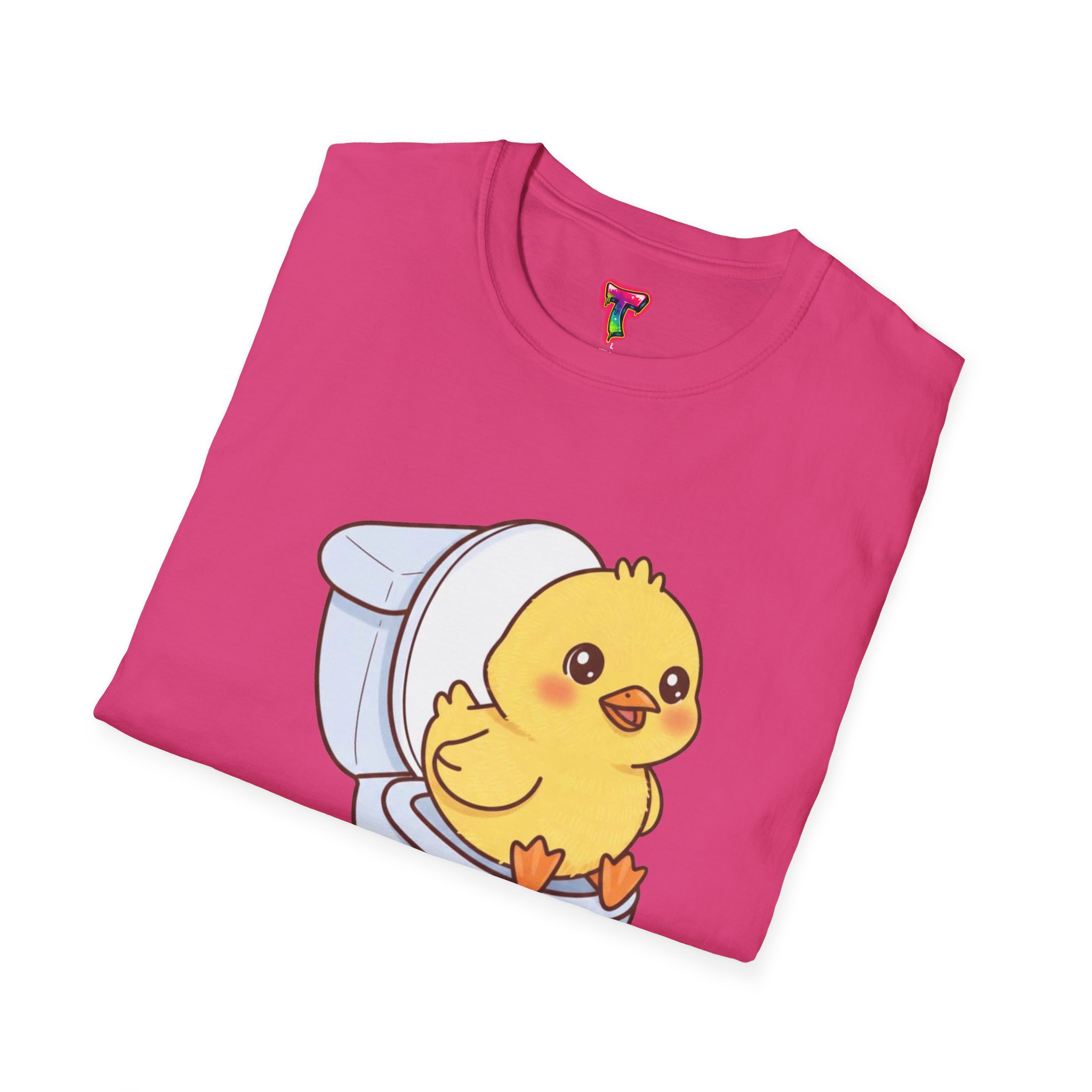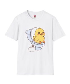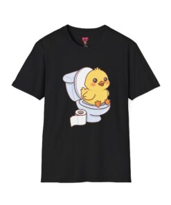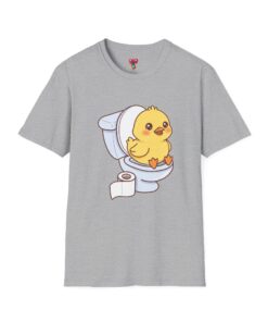 Bring a little playful charm to everyday wear with this soft, lightweight tee featuring an adorable chick perched on a toilet. The design blends cheeky humor with warm, hand-drawn styling so it feels like a wink between friends. Wear it on casual days at home, while running errands, or to lighten the mood at low-key gatherings. The smooth knit and classic crew neck keep the silhouette simple, letting the illustration do the talking. It pairs easily with jeans, joggers, or layered under a zip hoodie when the morning is brisk. This shirt sits comfortably in a relaxed wardrobe — fun, unpretentious, and ready to spark a grin.