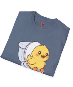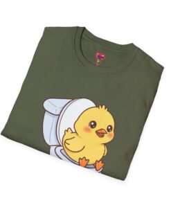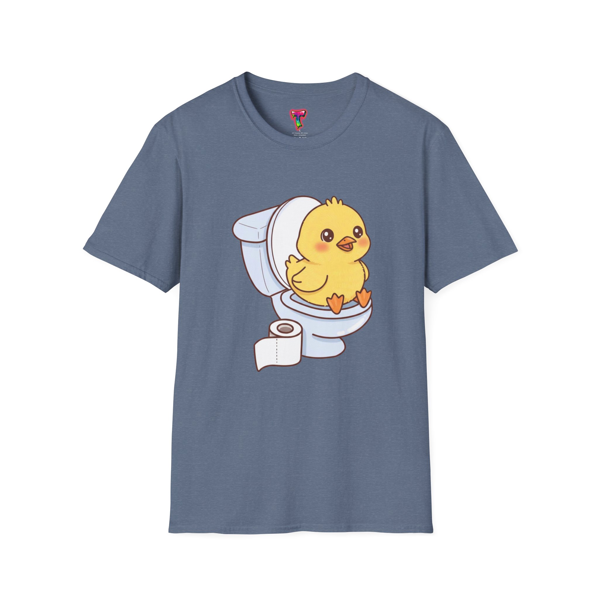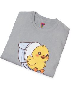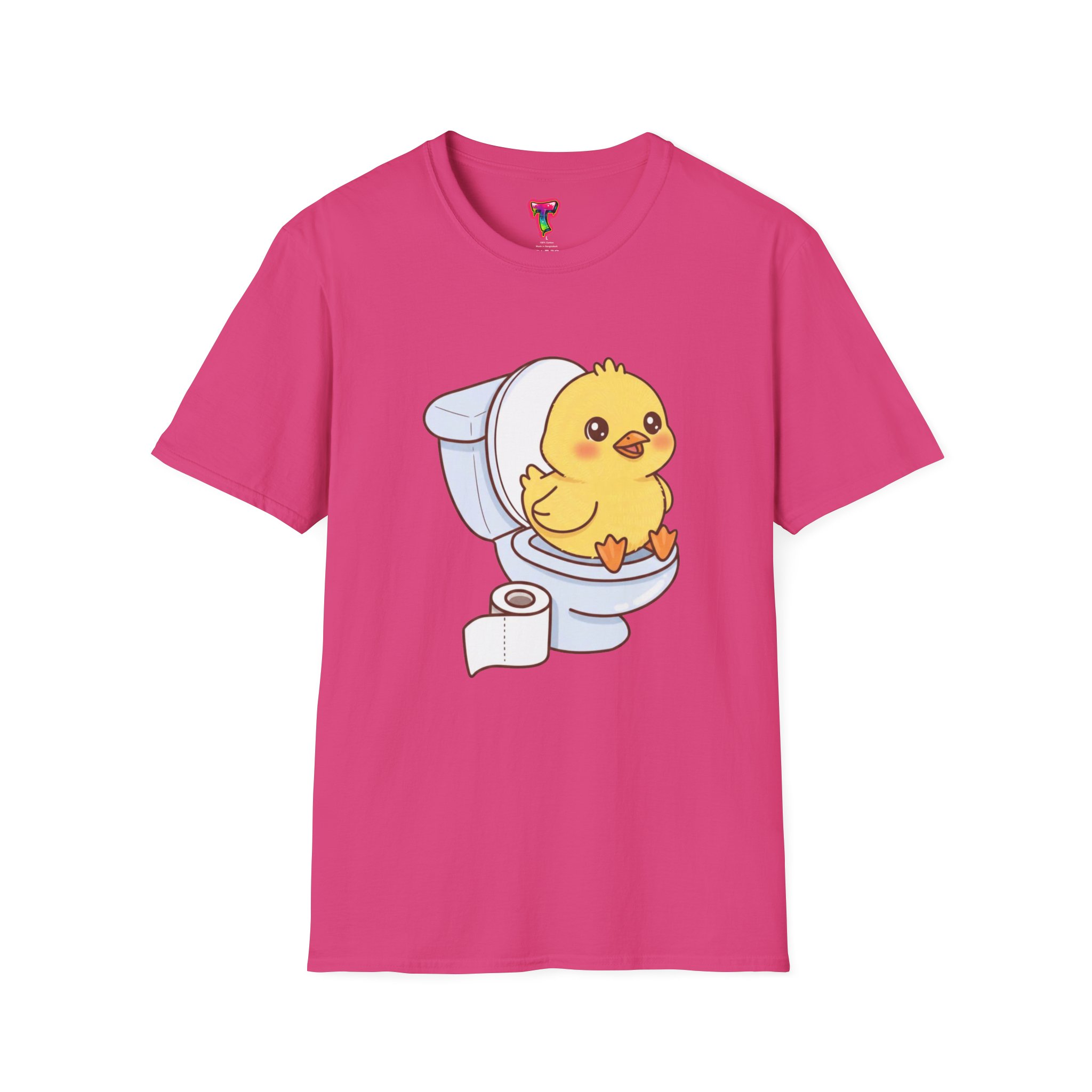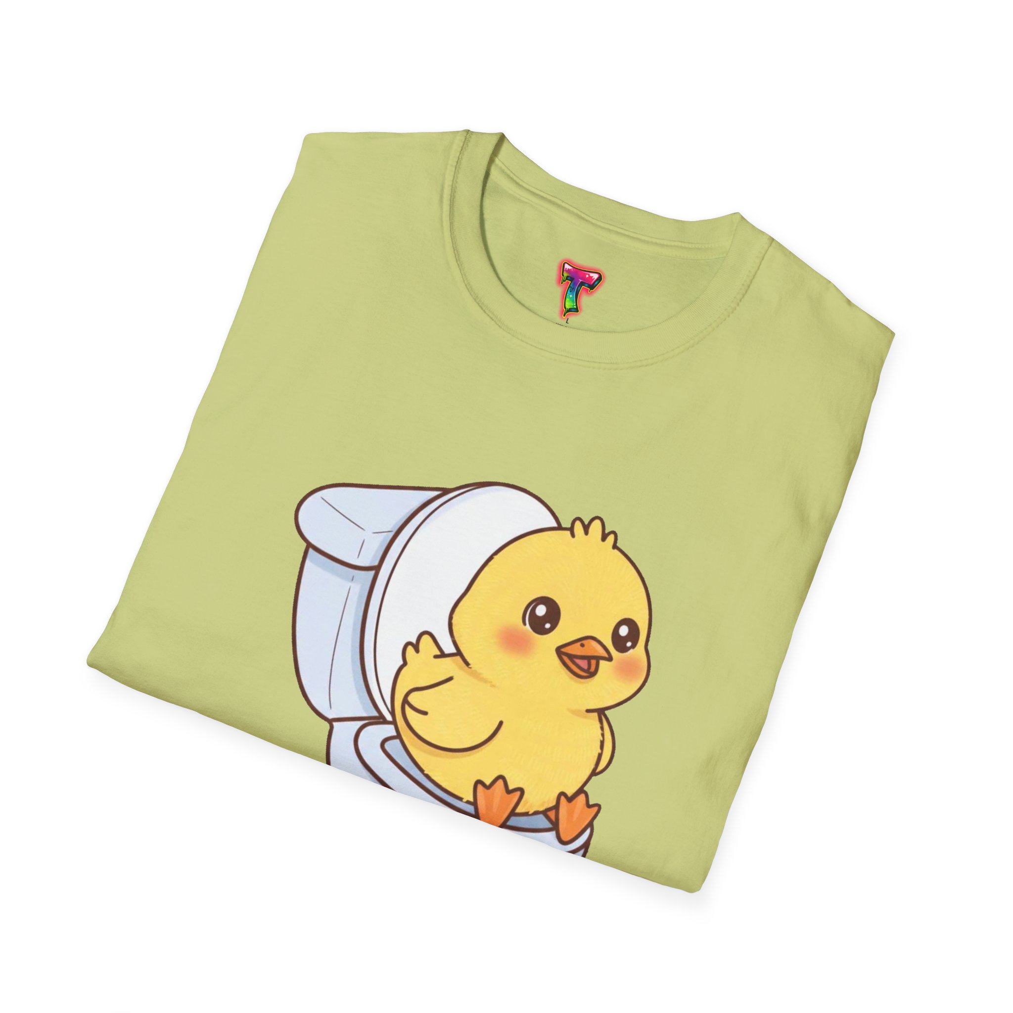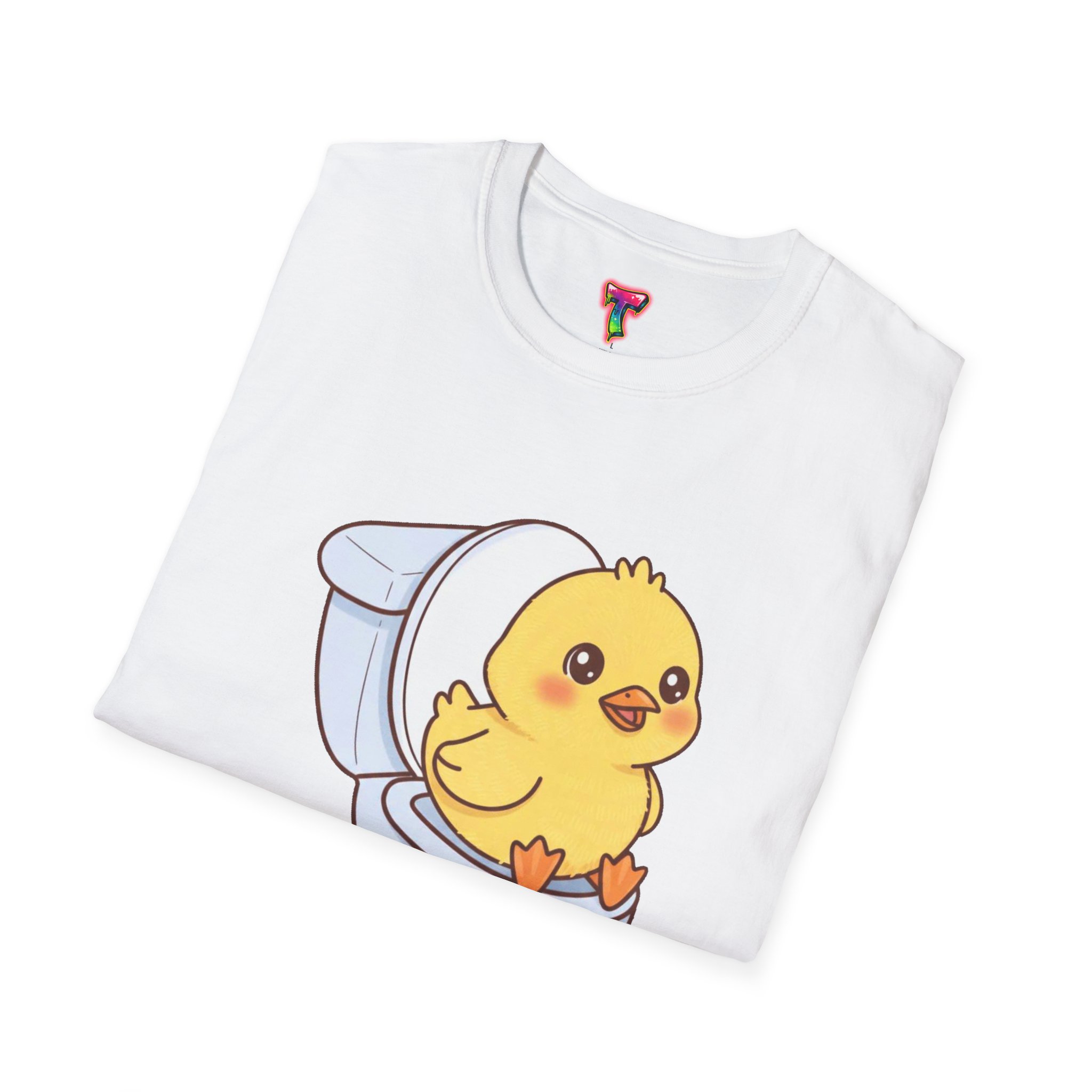Bring a little playful charm to everyday wear with this soft, lightweight tee featuring an adorable chick perched on a toilet. The design blends cheeky humor with warm, hand-drawn styling so it feels like a wink between friends. Wear it on casual days at home, while running errands, or to lighten the mood at low-key gatherings. The smooth knit and classic crew neck keep the silhouette simple, letting the illustration do the talking. It pairs easily with jeans, joggers, or layered under a zip hoodie when the morning is brisk. This shirt sits comfortably in a relaxed wardrobe — fun, unpretentious, and ready to spark a grin.