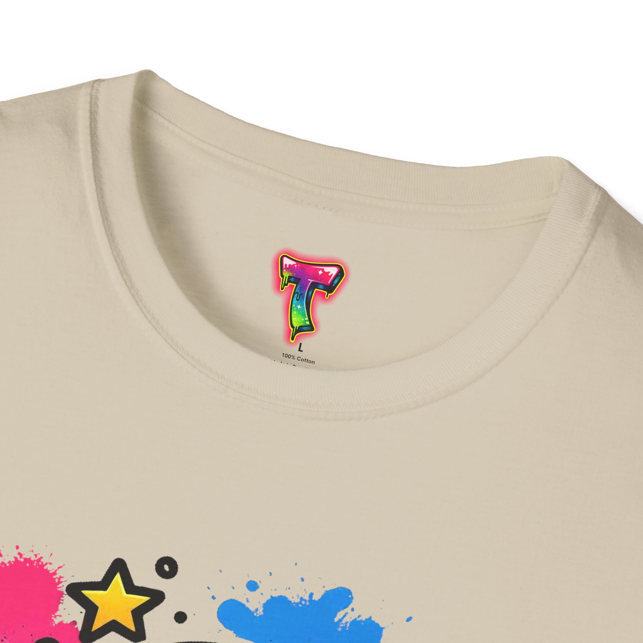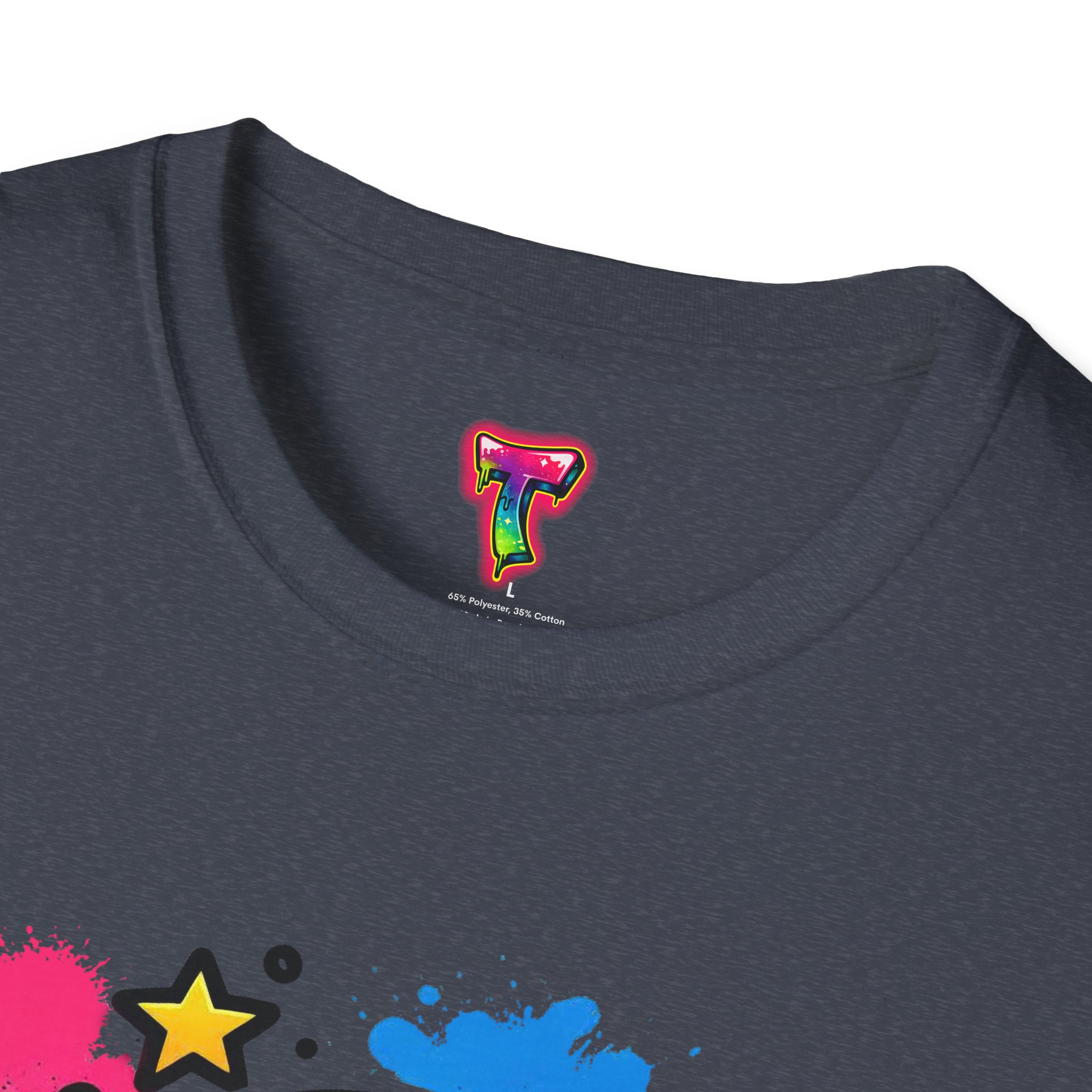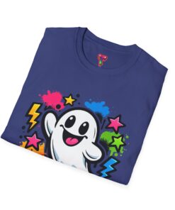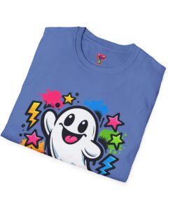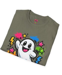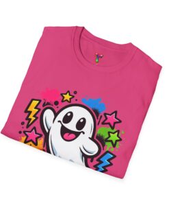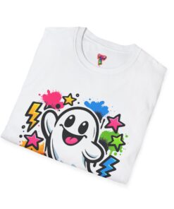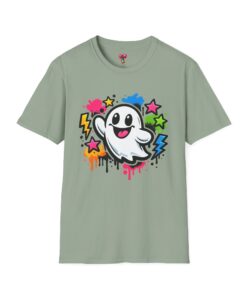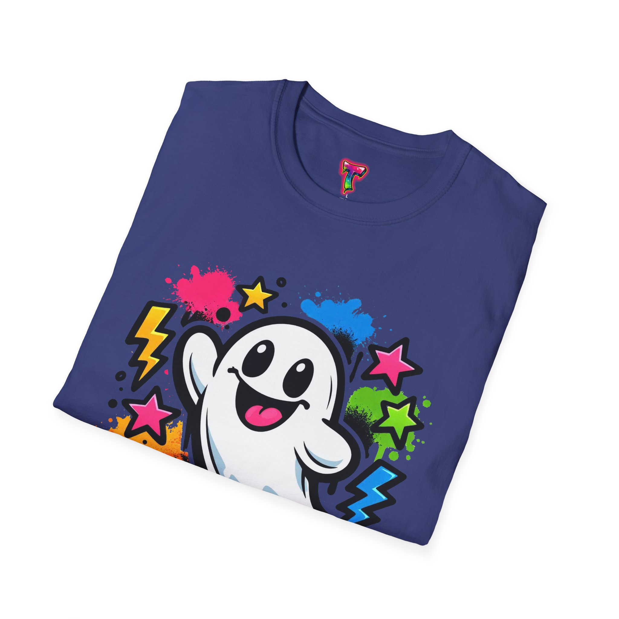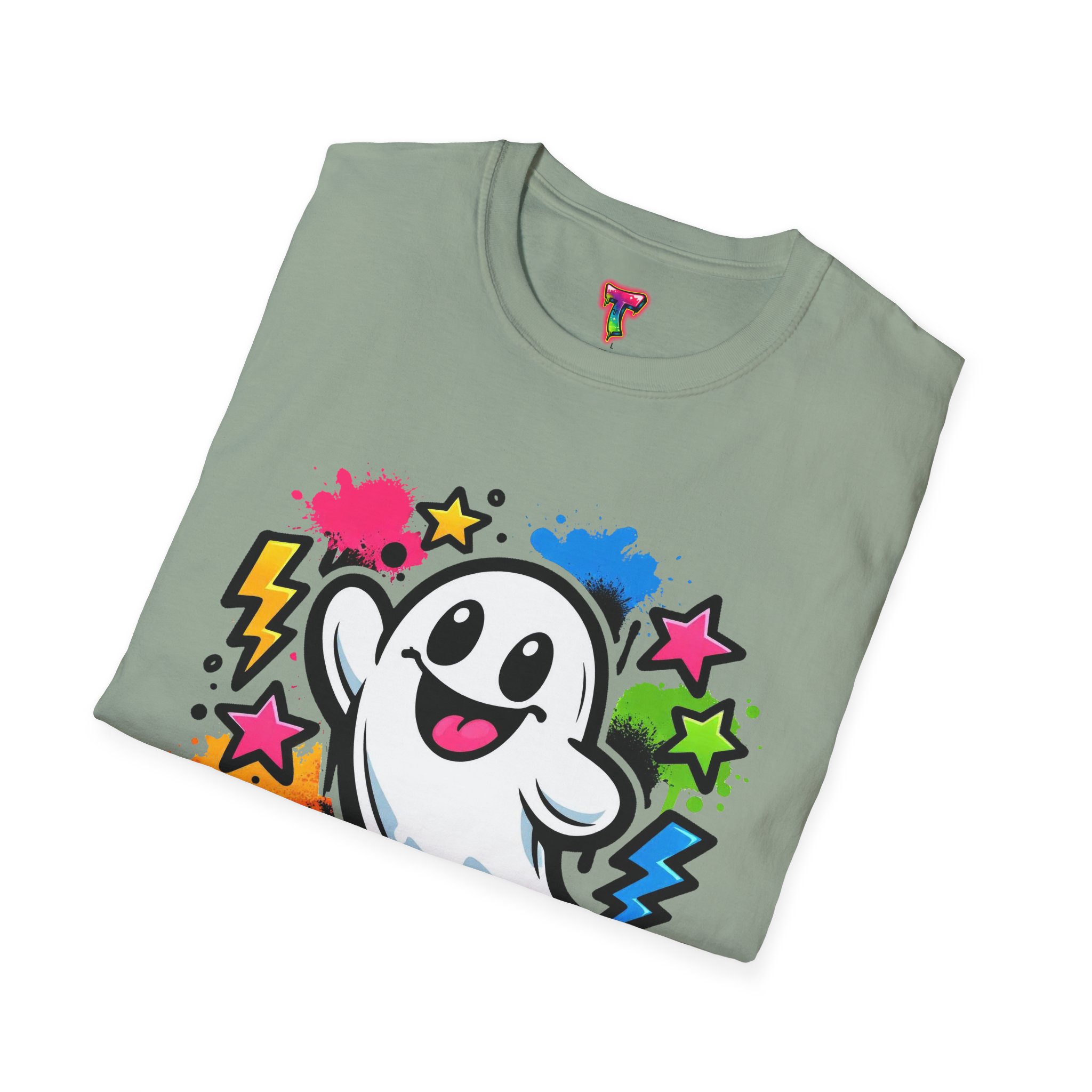 A playful, street-art inspired tee that brings a burst of color and fun to everyday wear. The lightweight, ring-spun cotton feels soft against the skin while the bold, graffiti-style ghost print adds a cheerful, energetic vibe. Wear it to brighten a casual day, to layer under a jacket for a pop of personality, or to celebrate spooky season with a lighthearted twist. The clean crew neckline and classic fit keep the look versatile and easy to style, while durable construction and quality printing keep the design lively wash after wash.