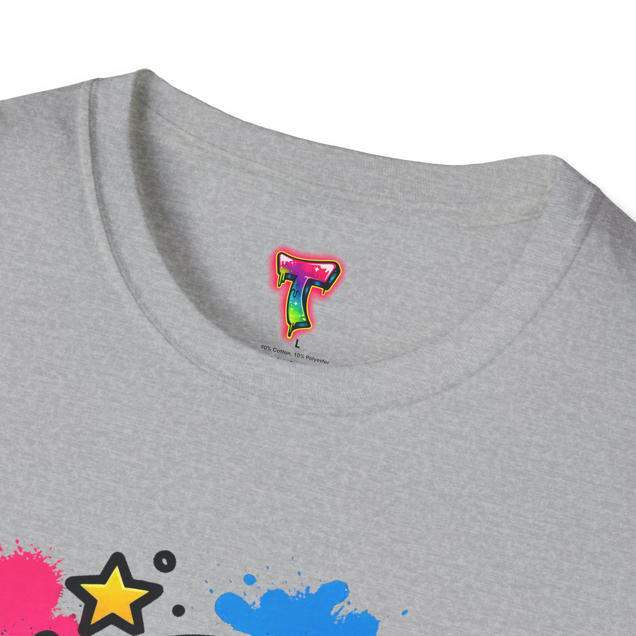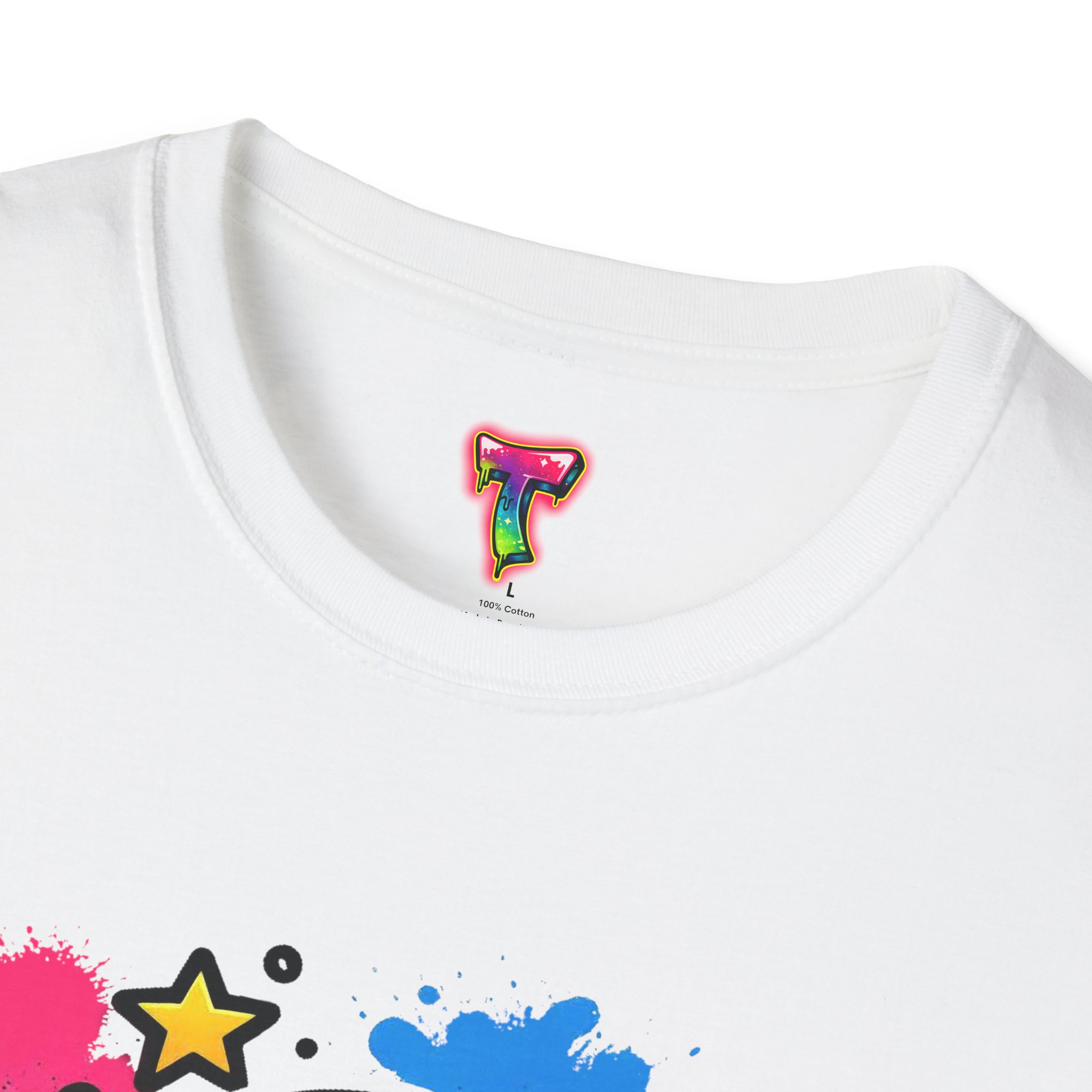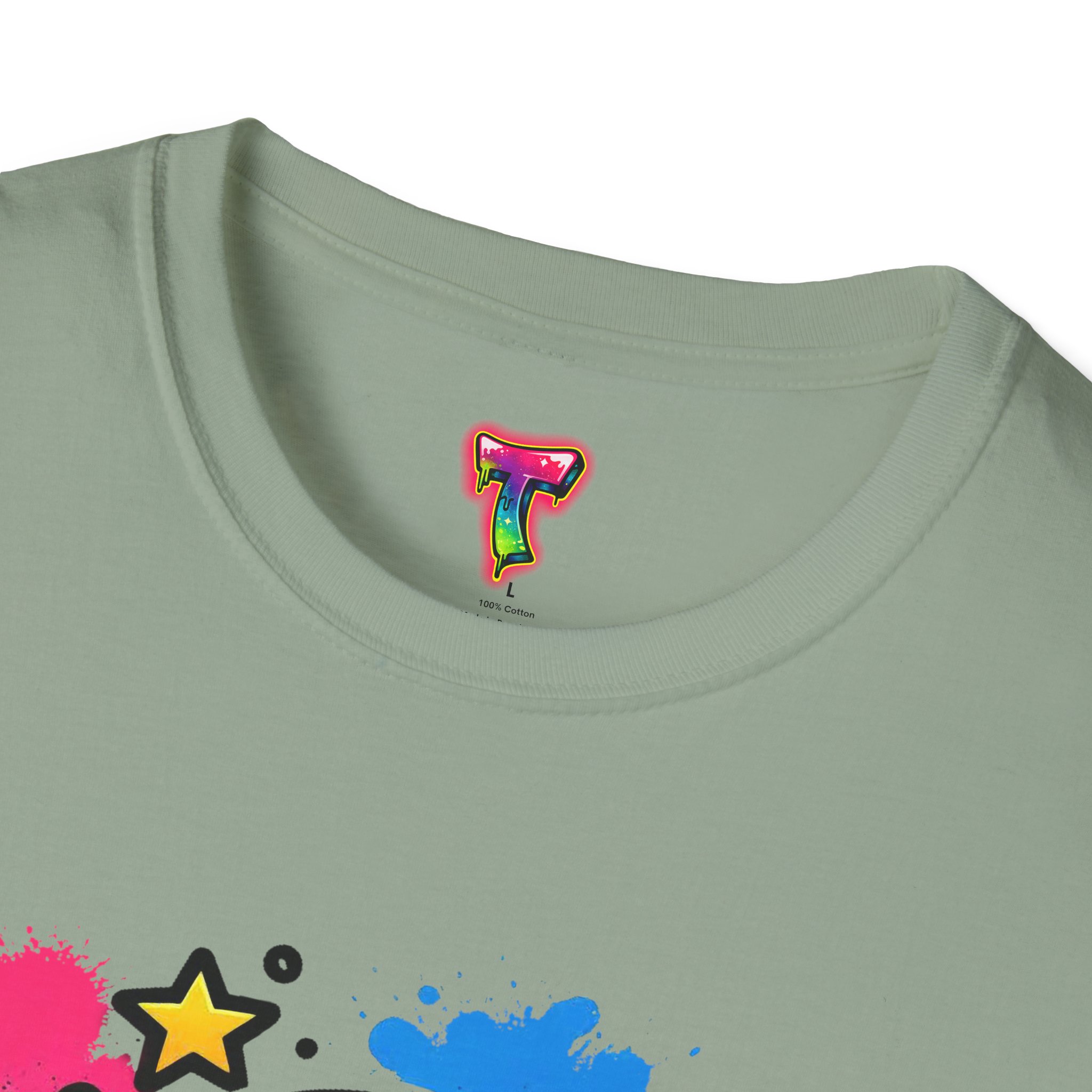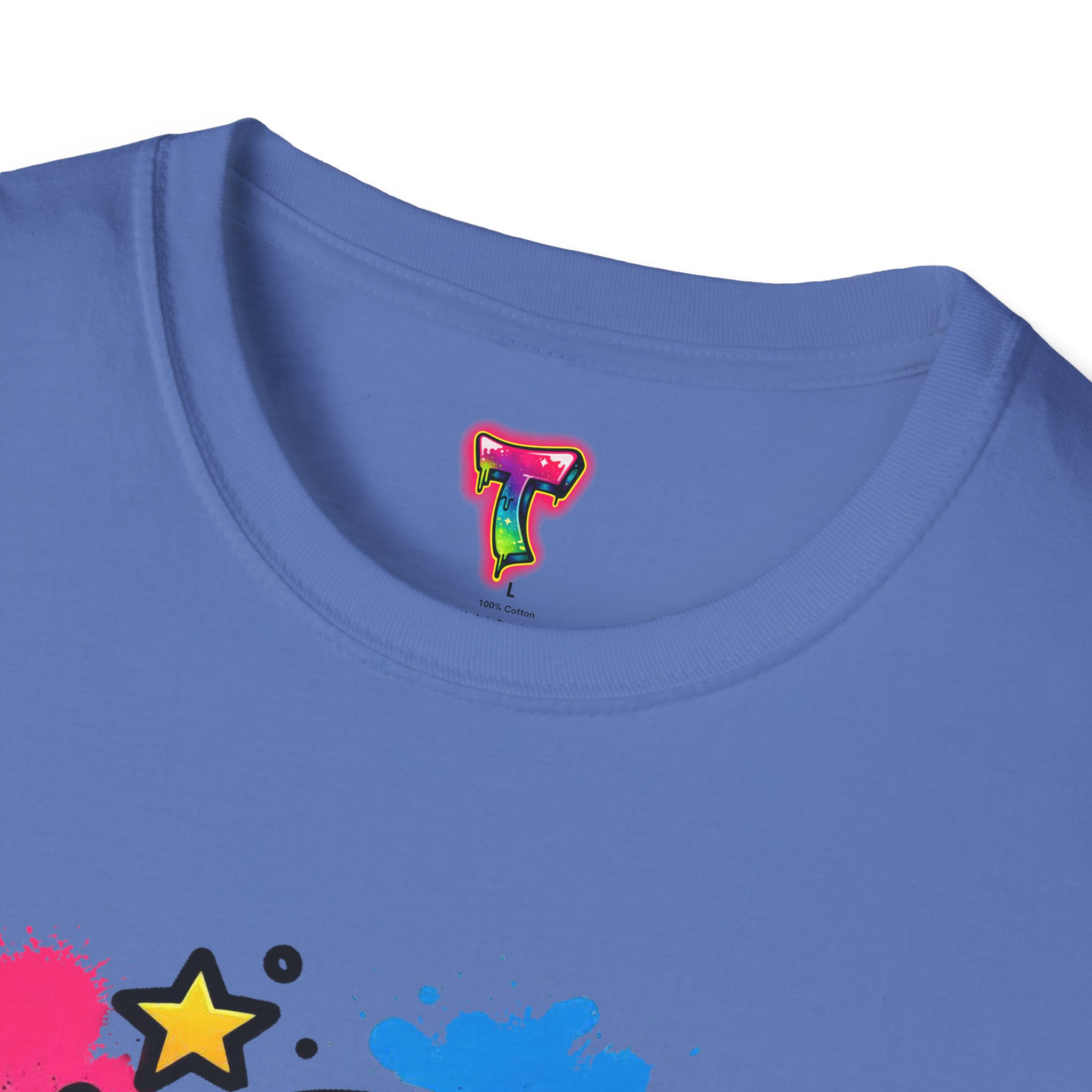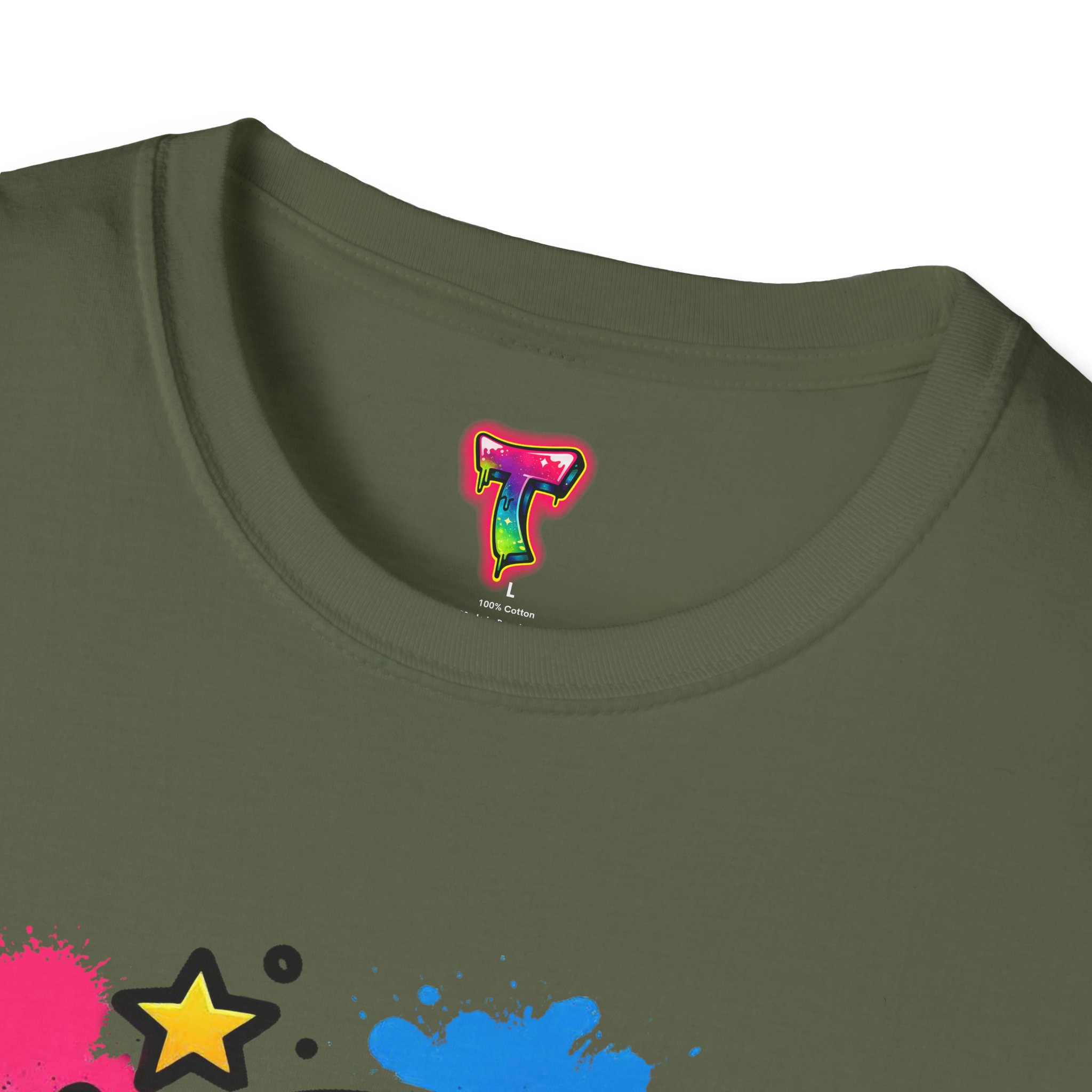 A playful, street-art inspired tee that brings a burst of color and fun to everyday wear. The lightweight, ring-spun cotton feels soft against the skin while the bold, graffiti-style ghost print adds a cheerful, energetic vibe. Wear it to brighten a casual day, to layer under a jacket for a pop of personality, or to celebrate spooky season with a lighthearted twist. The clean crew neckline and classic fit keep the look versatile and easy to style, while durable construction and quality printing keep the design lively wash after wash.