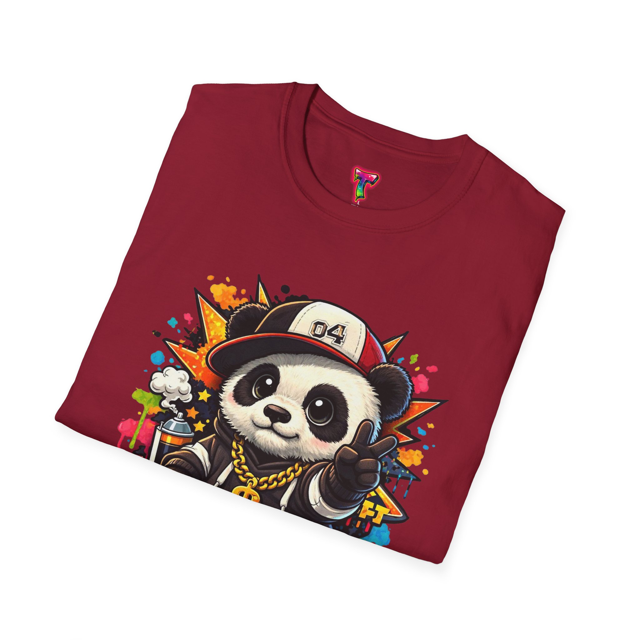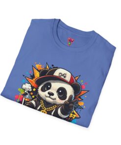 A soft, everyday tee with a bold street-art heart. This lightweight cotton shirt features a colorful, graffiti-inspired panda decked out in sneakers, a cap, and a gold chain — playful attitude without the stiffness. Wear it when you want to bring a little urban energy to weekend walks, skatepark hangs, or late-night coffee runs. The crew neck and classic cut keep the silhouette clean so the graphic pops, while breathable ring-spun cotton keeps you comfortable from morning errands to evening meetups. It’s the kind of shirt that sparks compliments and fits easily into a layered, streetwise wardrobe.