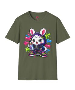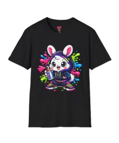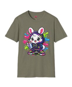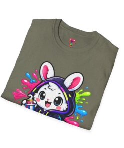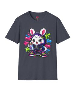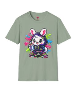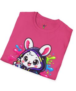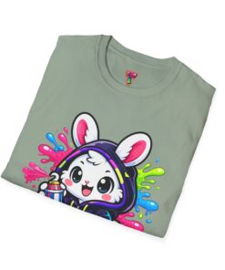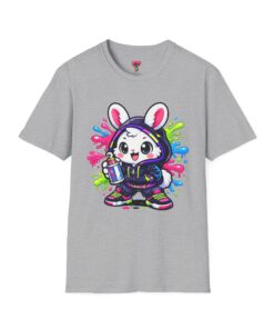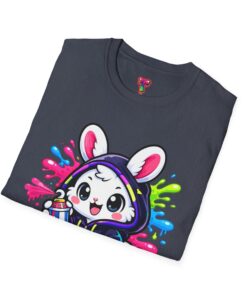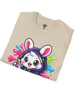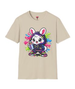 Bright, playful, and full of attitude — this lightweight cotton tee brings a splash of street-art energy wherever it goes. A mischievous bunny character in a hooded sweatshirt is caught mid-spray, neon paint splatters fanned behind it. The crisp DTG print sits on a soft, smooth fabric that drapes easily and feels light on the skin. Wear it with jeans or layer under a jacket for a casual, confident look that speaks to creative mischief and late-night art runs.