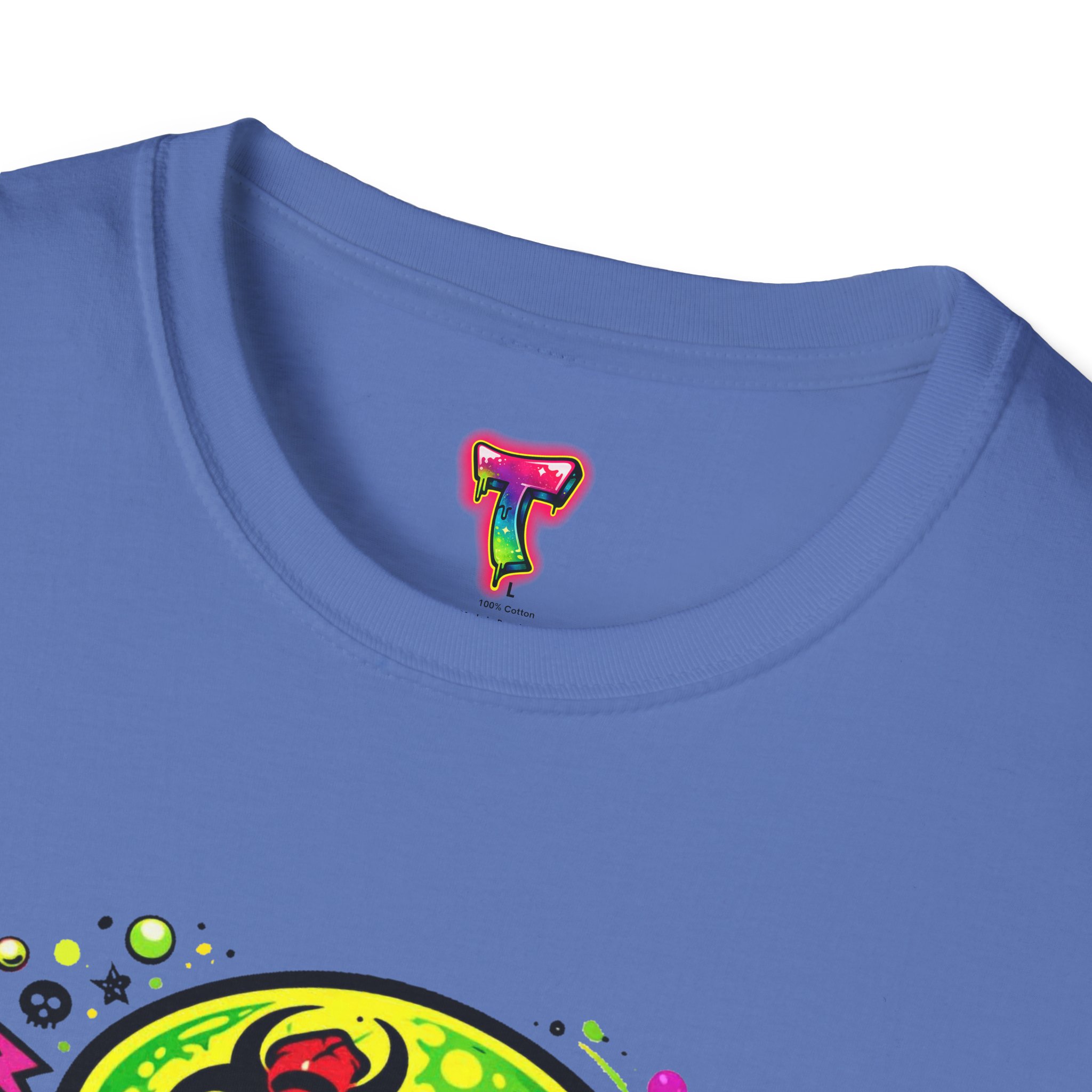 This lightweight crew neck tee wears like a favorite from the first try — soft, breathable and built to last. A bold, neon-green hazard skull bursts from the chest in a gritty, hand-illustrated style, with dripping textures and graffiti-style “DANGER” lettering that reads like a warning and a challenge. The single-piece tubular knit keeps the silhouette clean while ribbed collar and shoulder tape hold shape through washes. It’s a shirt to reach for when you want to make noise at shows, on night rides, or while turning city streets into your personal backdrop. The print’s lively, street-art energy pairs with the tee’s comfortable, year-round drape so you can wear it loud and keep moving.