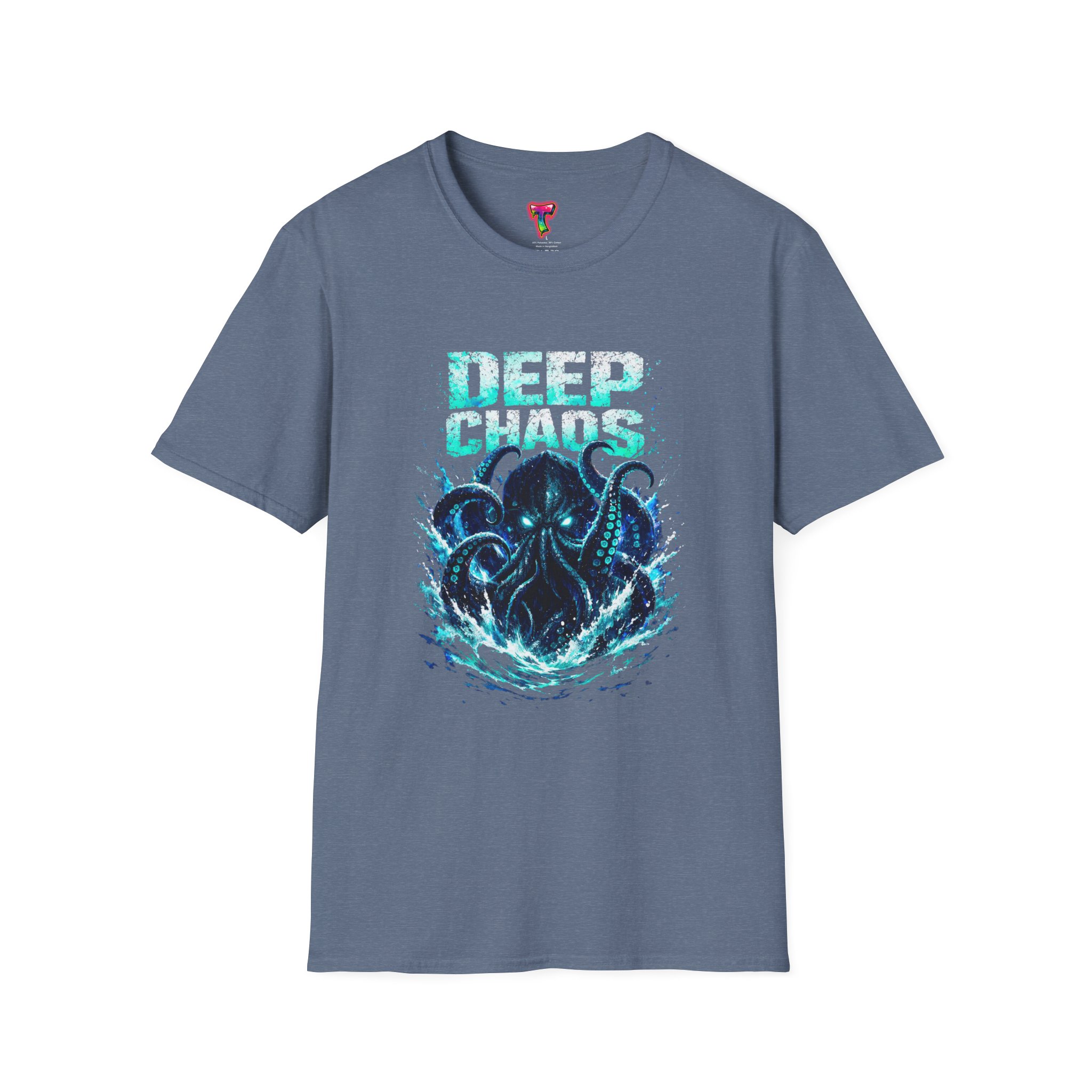 Salt-spray and midnight currents—this lightweight tee carries the hush of the deep. A detailed octopus illustration curls across the chest in inky blues and seafoam highlights, framed by distressed lettering that suggests submerged ruins and long voyages. Wear it on shore walks, late-night bonfires, or when you want a quiet, sea-burnished look that speaks of curiosity and the unknown. The soft, breathable cotton sits close without clinging, so the art stays front-and-center whether you layer it under a jacket or wear it on its own.