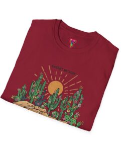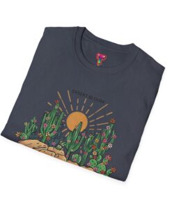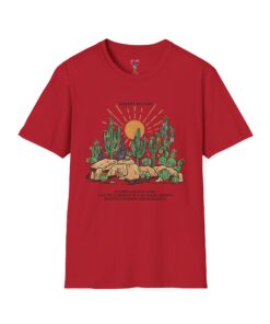 Warm, sun-baked desert energy captured in a soft, lived-in tee. This lightweight cotton shirt wears like a favorite from day one—its vintage-inspired cactus illustration and golden sunset feel like a slow afternoon on a dusty trail. The print sits low on the chest, surrounded by hand-drawn rocks and succulents, giving a quiet, grounded look that slips easily under a jacket or stands alone with rolled sleeves. It’s for people who collect roadside sunsets, who hike until the light changes, and who love garments that tell a small story every time they’re worn. Breathable, responsibly sourced fabric keeps the silhouette comfortable through warm days and cool evenings alike, while durable printing holds the art’s fine lines and muted palette wash after wash.