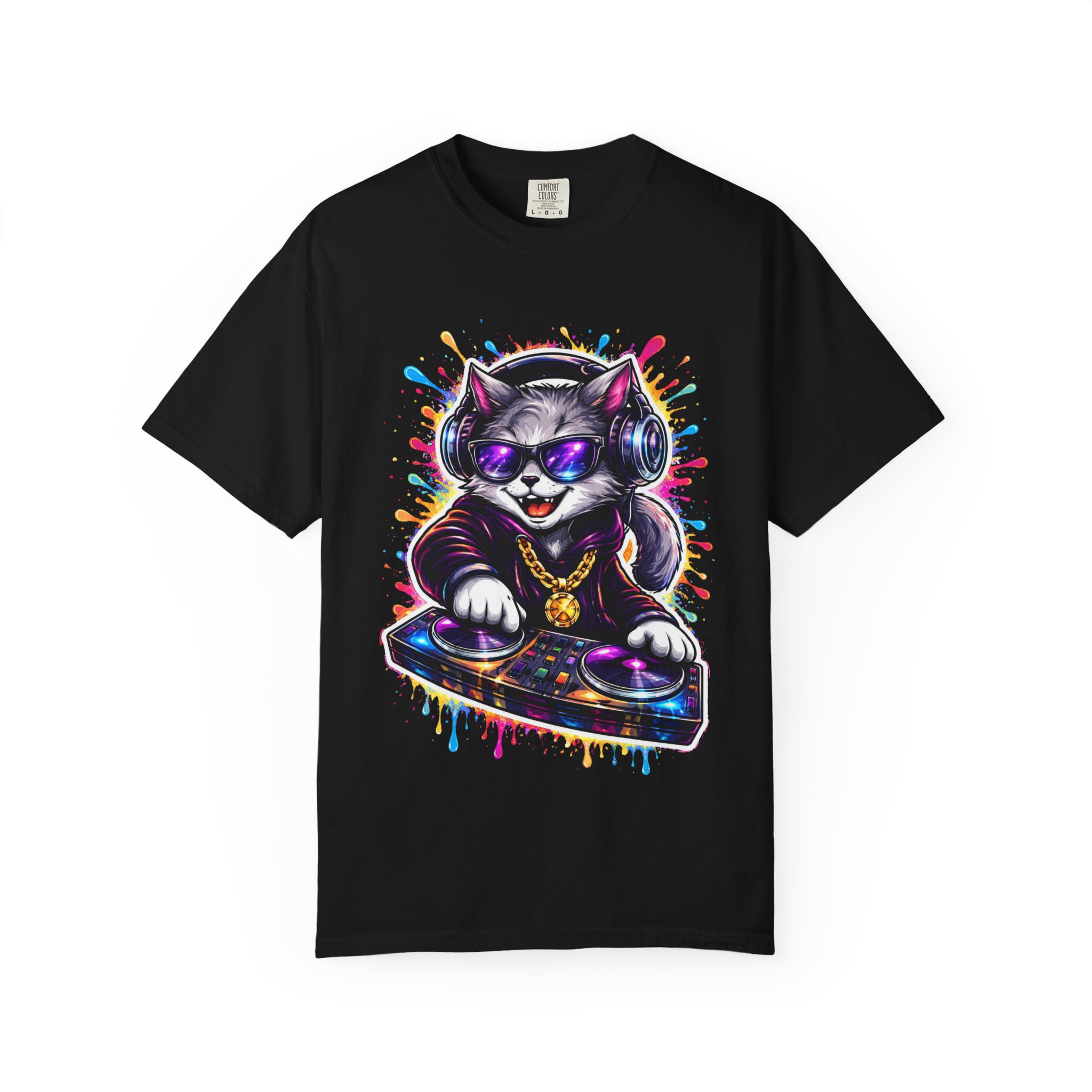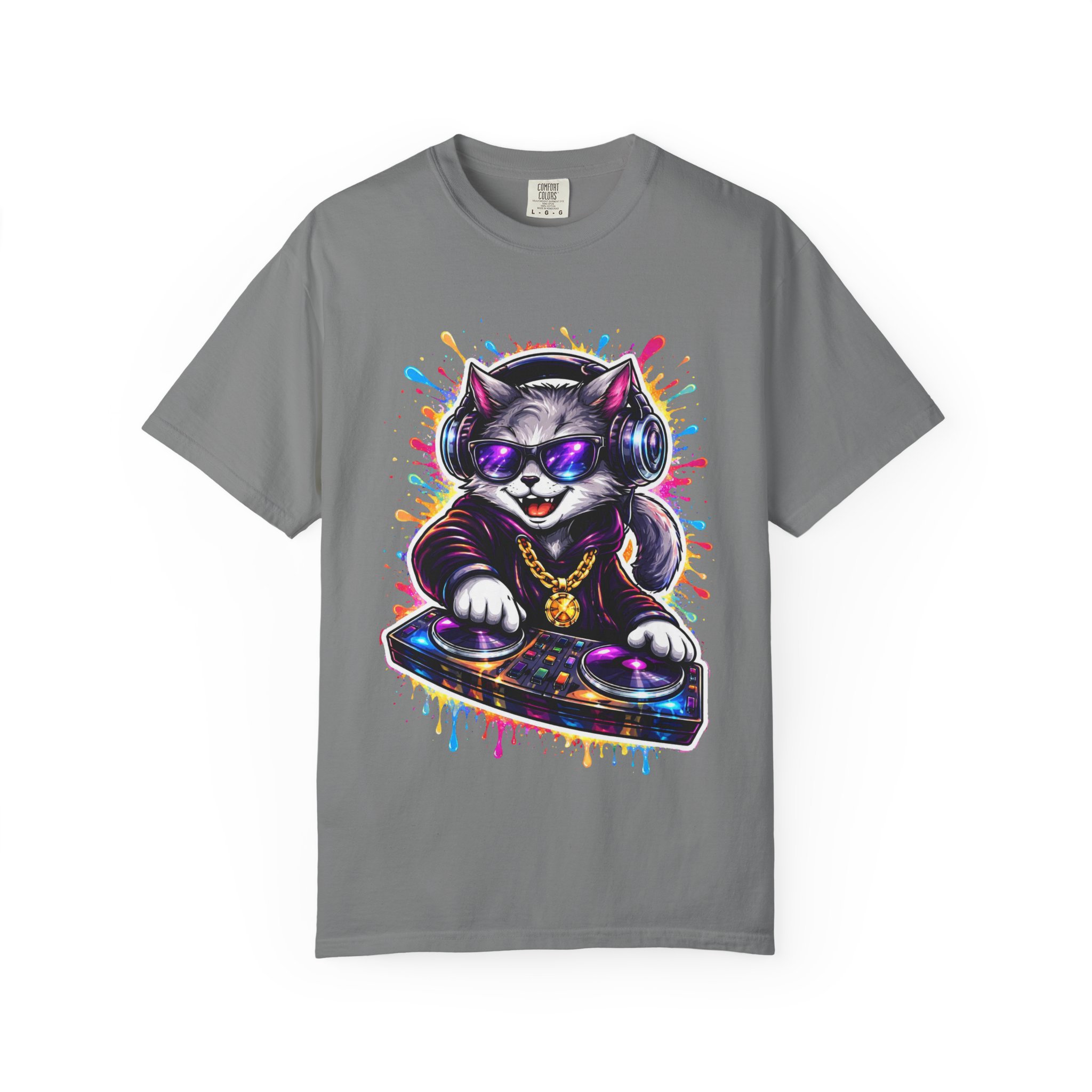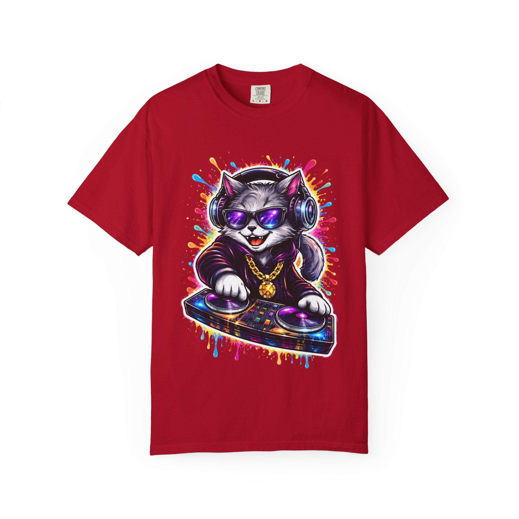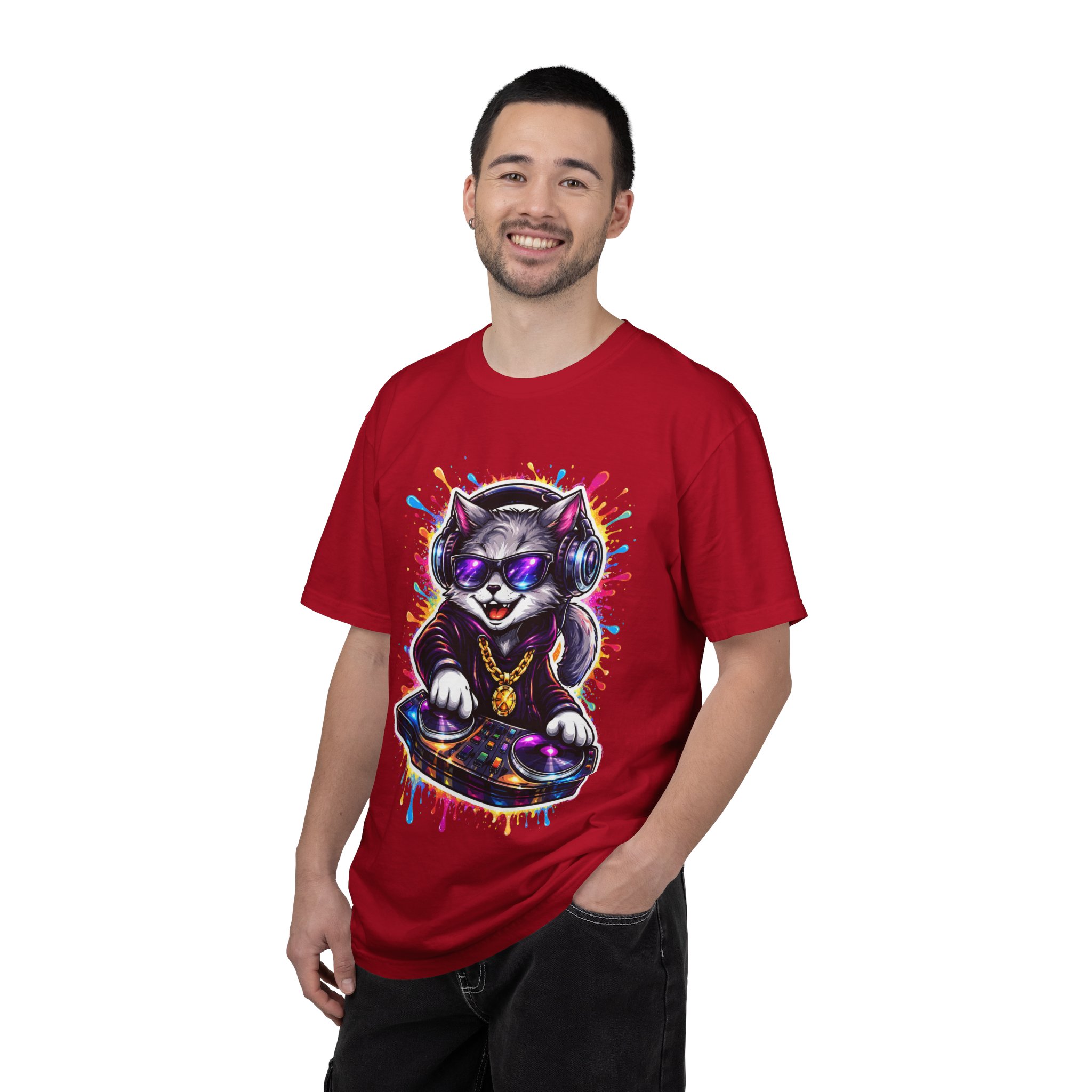 This heavyweight garment-dyed T-shirt carries a playful, streetwise vibe—think late-night beats, neon lights, and a cat spinning vinyl at the center of the scene. The soft, garment-dyed finish gives the fabric a lived-in feel that settles into your wardrobe, while the bold, colorful DJ-cat print adds personality without shouting. It sits relaxed on the body, made to move with you whether you’re running errands, DJing a friend’s house party, or layering under a jacket for a gig. The sewn-in label and double-needle stitching mean this tee is built to last through repeat wears and washes. Available in a wide palette of colors and sizes, it’s a comfortable, durable canvas for anyone who loves music, street art, and playful self-expression.