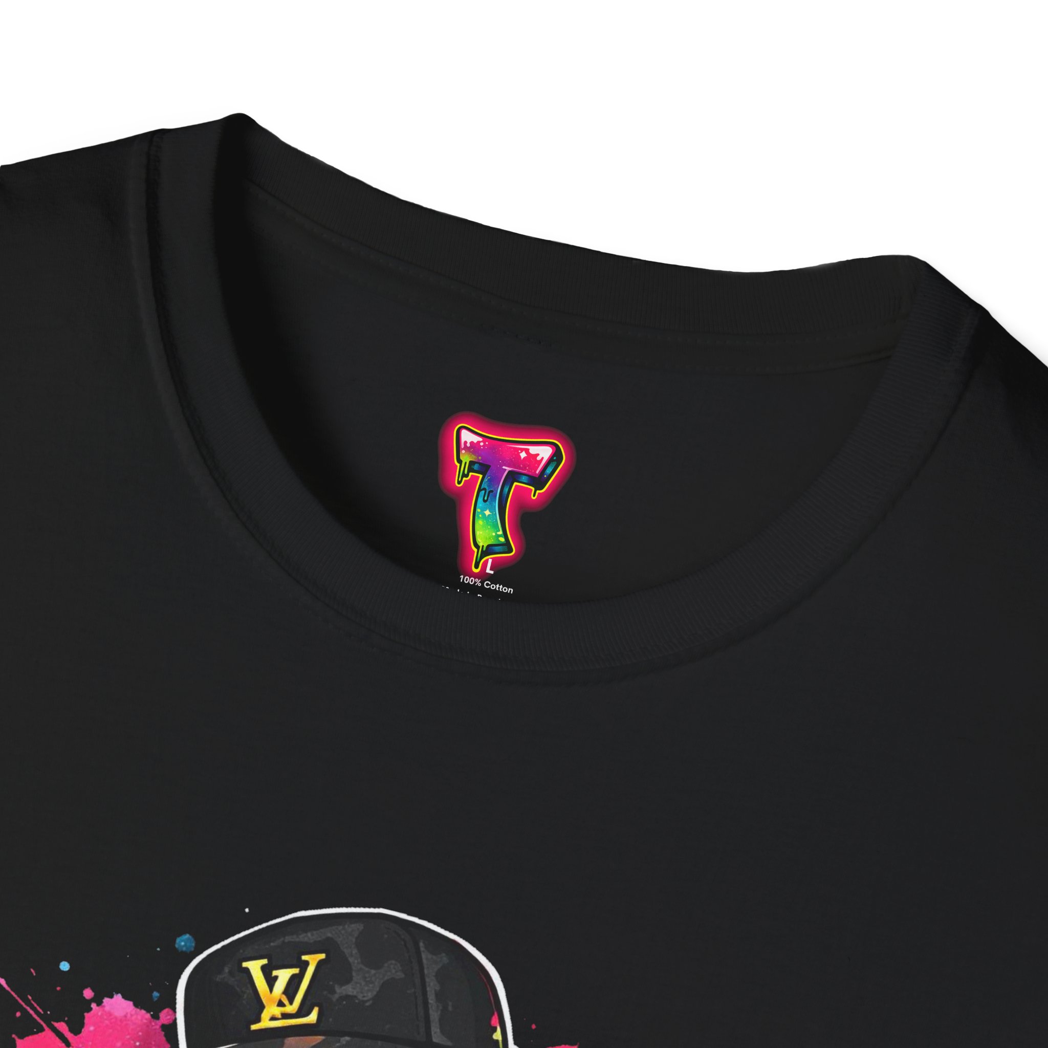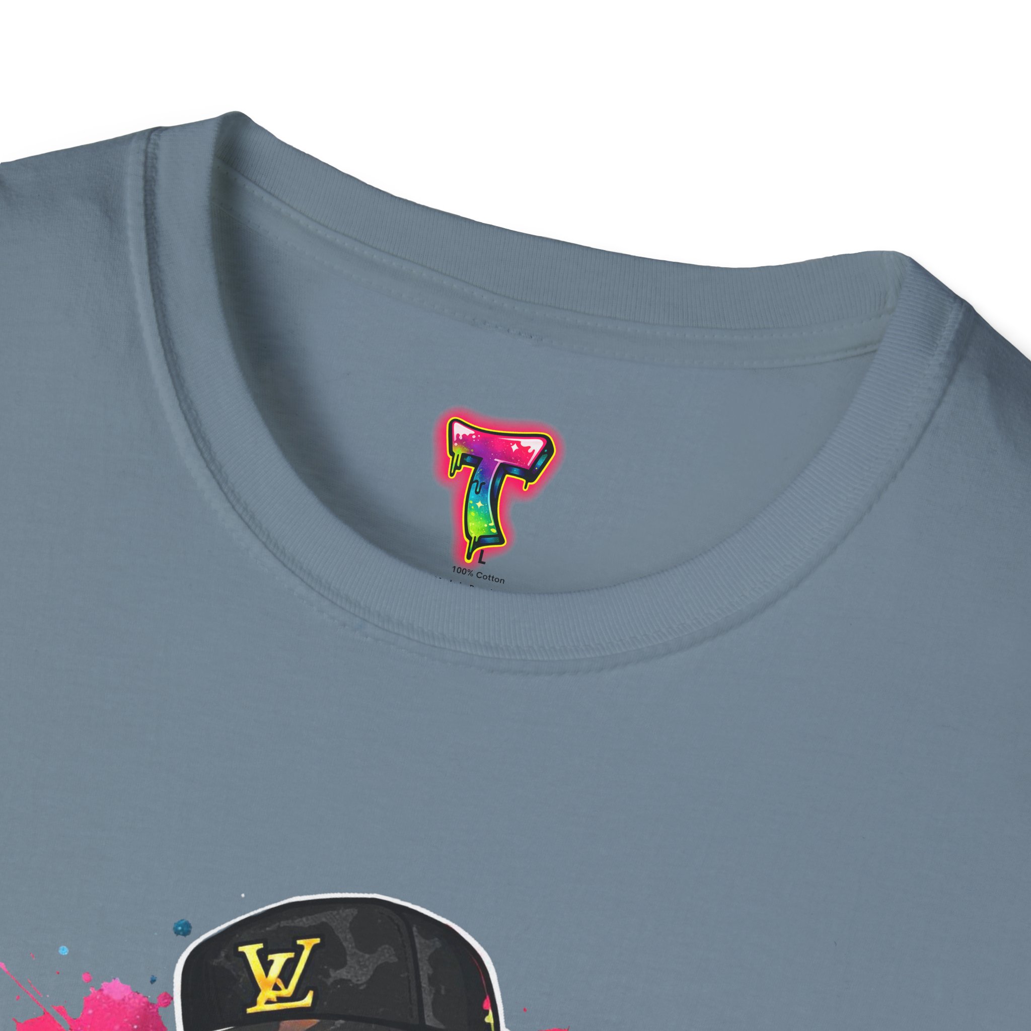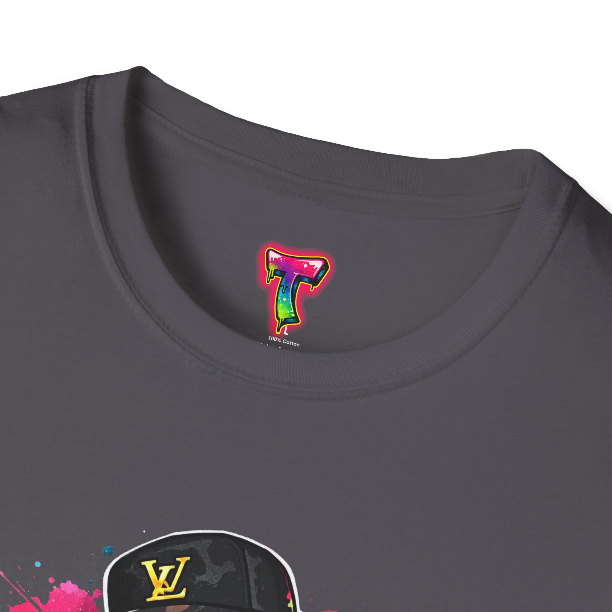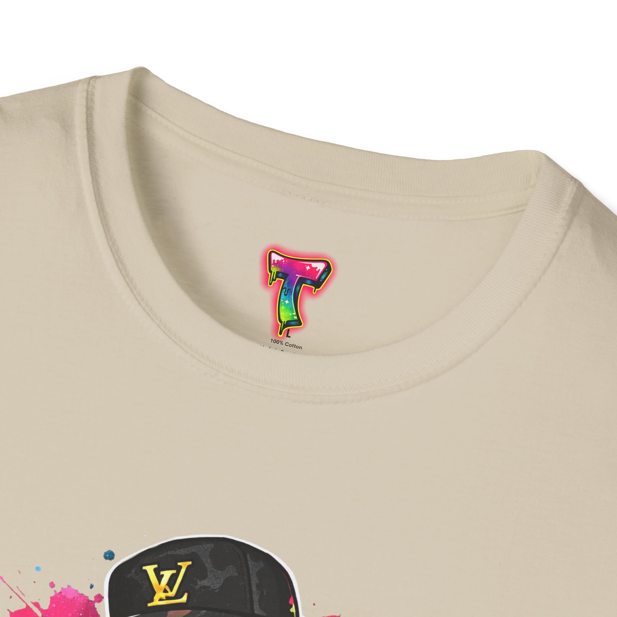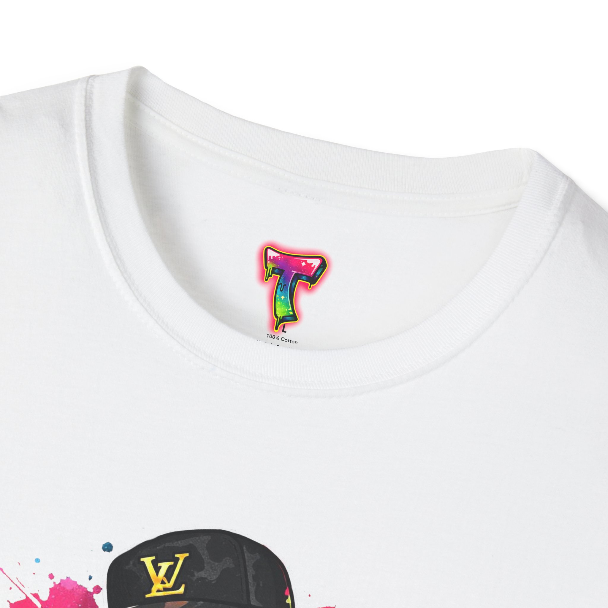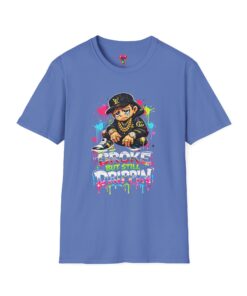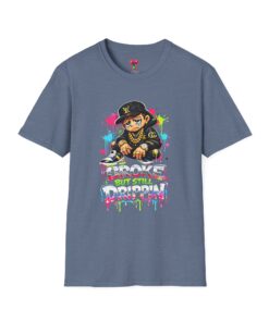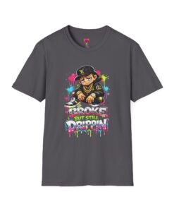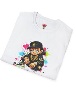 This lightweight cotton tee carries street energy with playful color splatters and bold DJ character artwork. The design feels like an underground block party — bright neon drips, graffiti-style lettering and a turntable-slinging character that radiates hustle and humor. Wear it layered under a denim jacket or solo with joggers to bring a casual, confident vibe to everyday runs, late-night sets, or city hangs. The soft ring-spun cotton and clean crew neckline keep the focus on the art while staying comfortable through long days and nights.