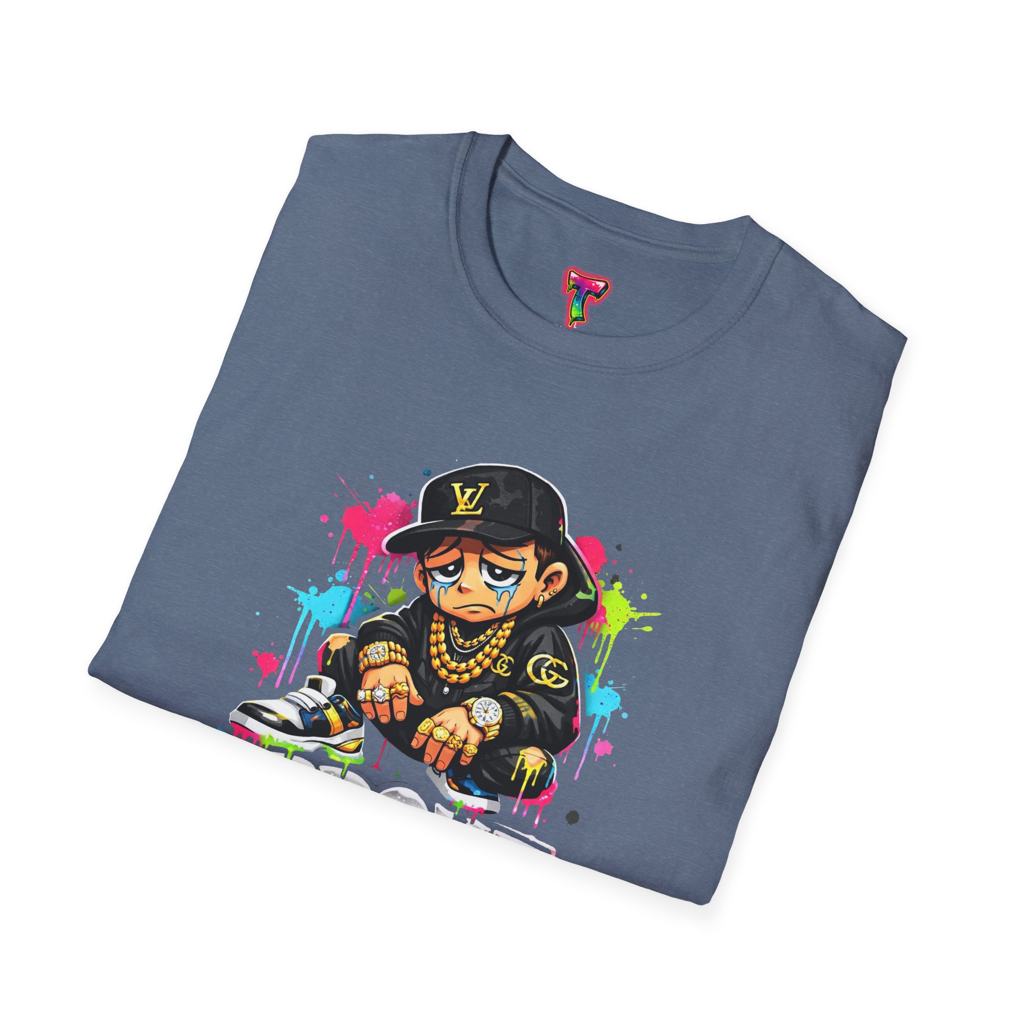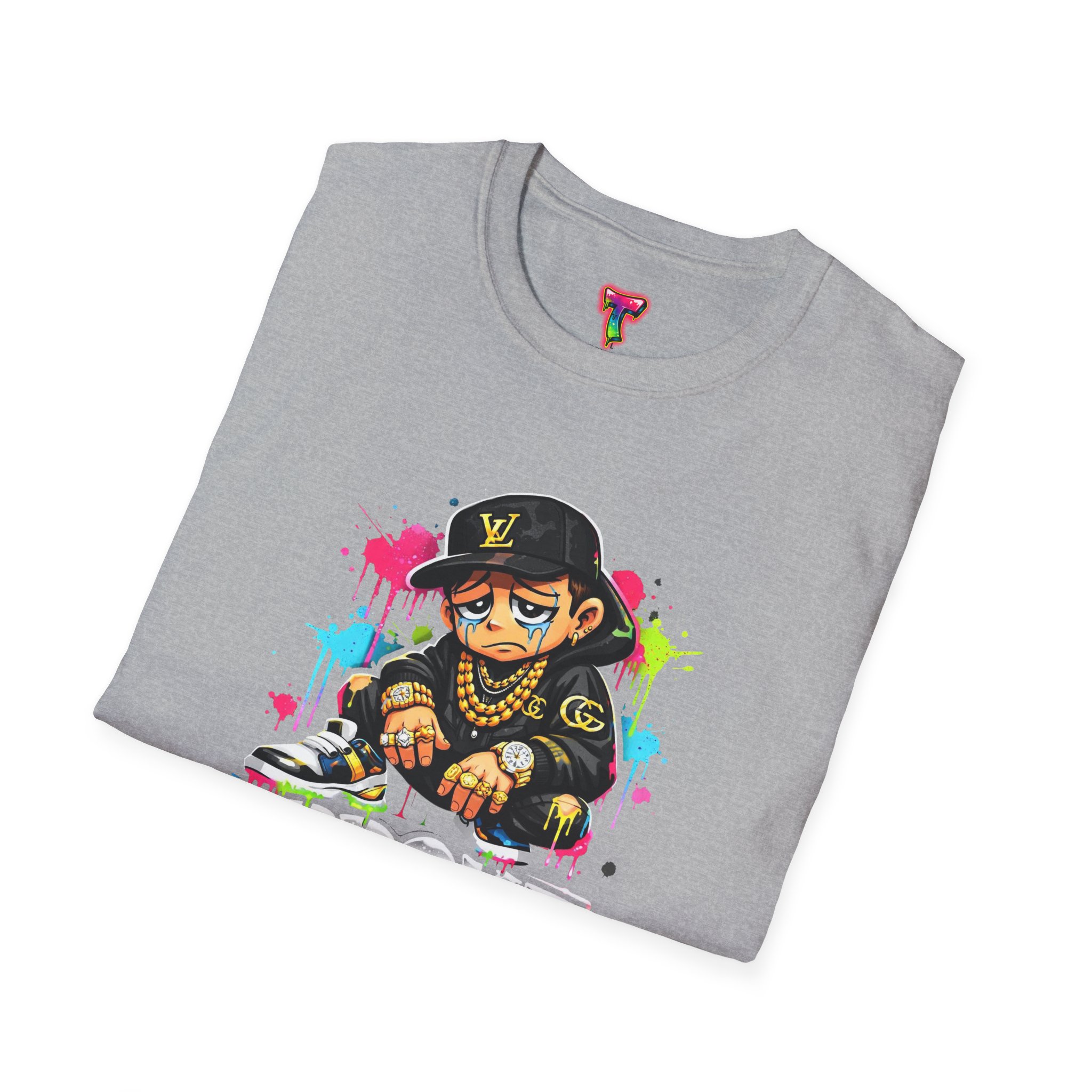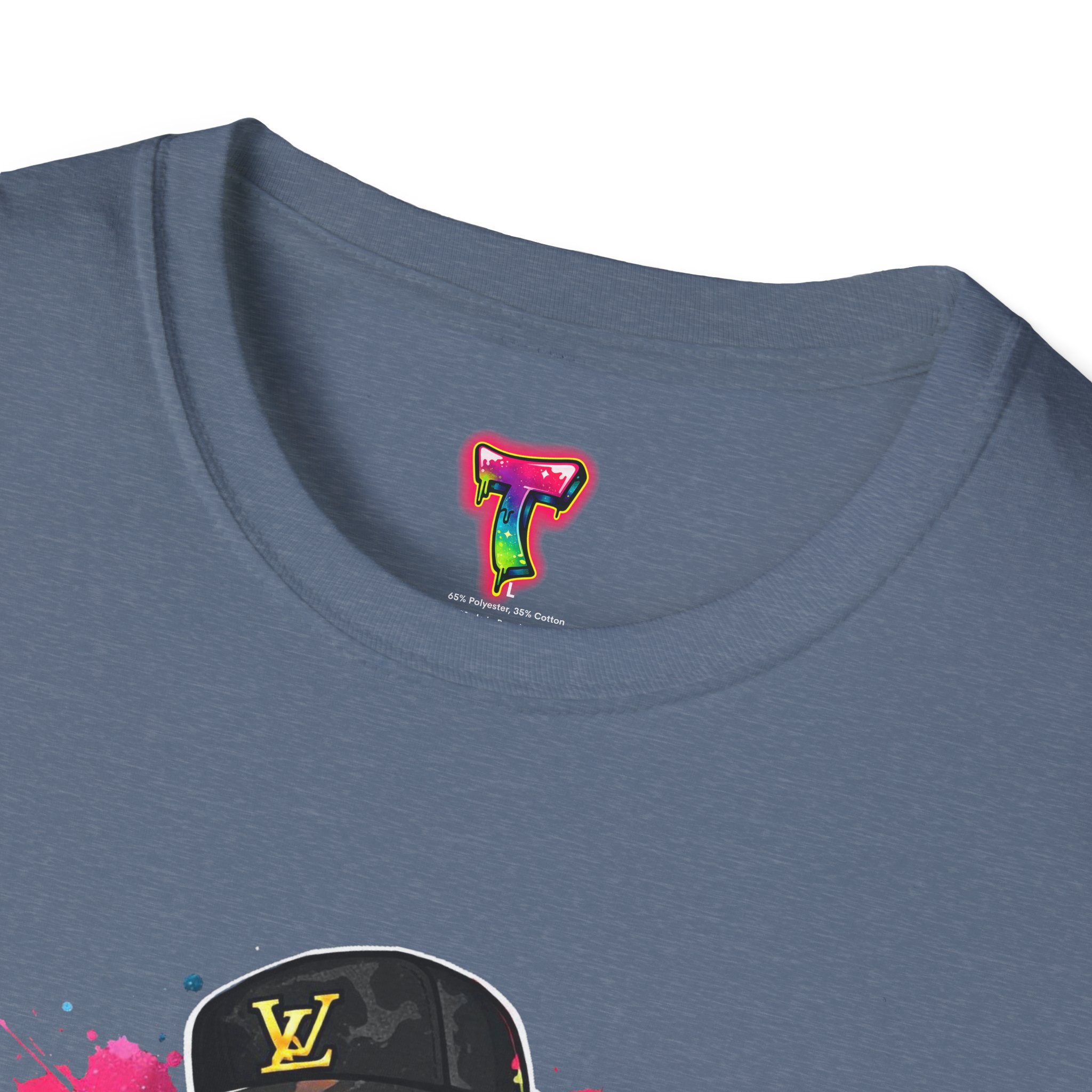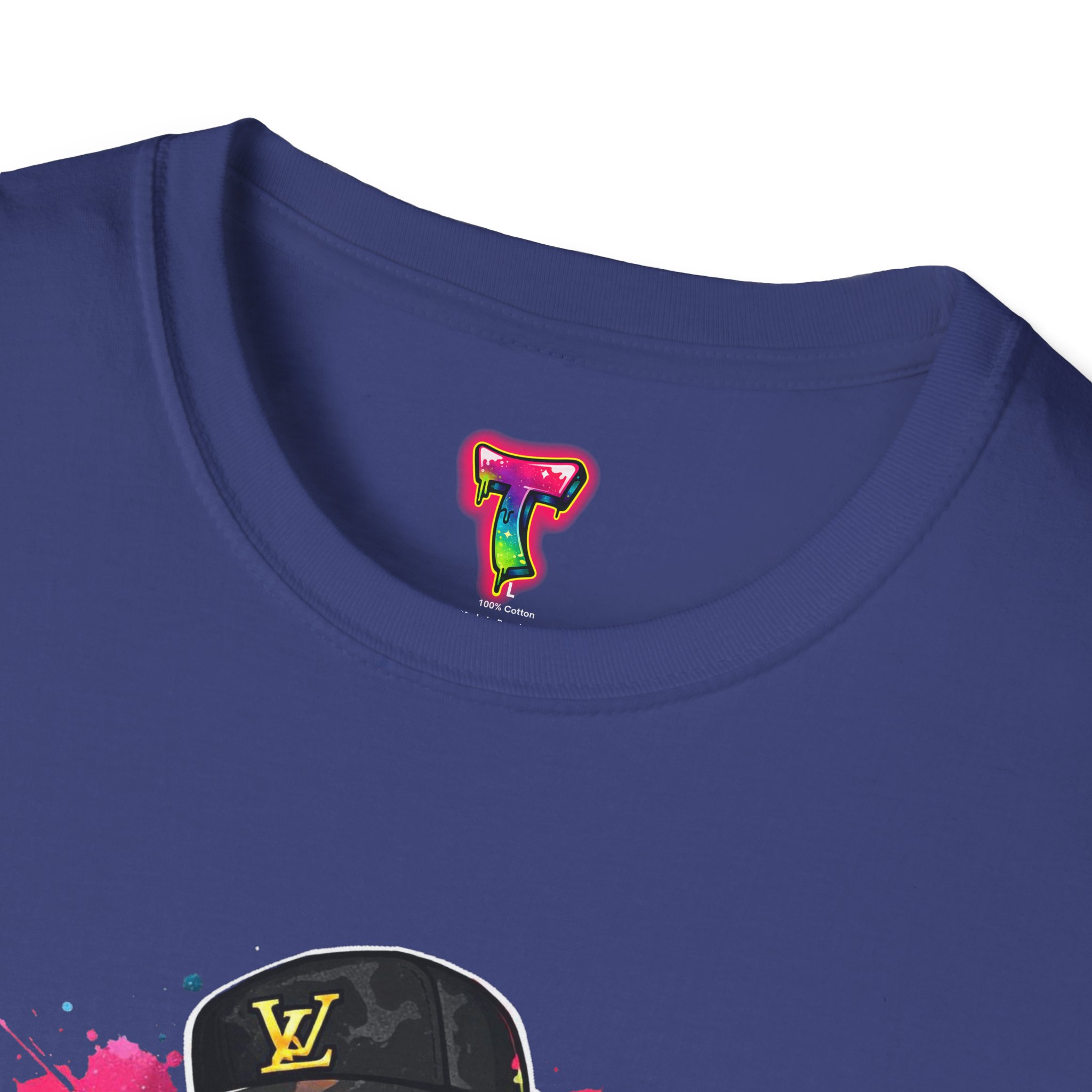 This lightweight cotton tee carries street energy with playful color splatters and bold DJ character artwork. The design feels like an underground block party — bright neon drips, graffiti-style lettering and a turntable-slinging character that radiates hustle and humor. Wear it layered under a denim jacket or solo with joggers to bring a casual, confident vibe to everyday runs, late-night sets, or city hangs. The soft ring-spun cotton and clean crew neckline keep the focus on the art while staying comfortable through long days and nights.