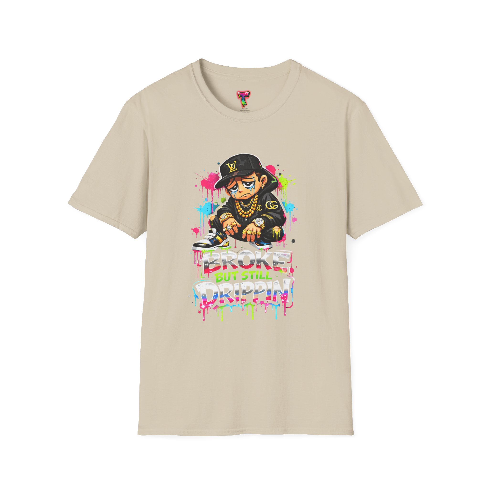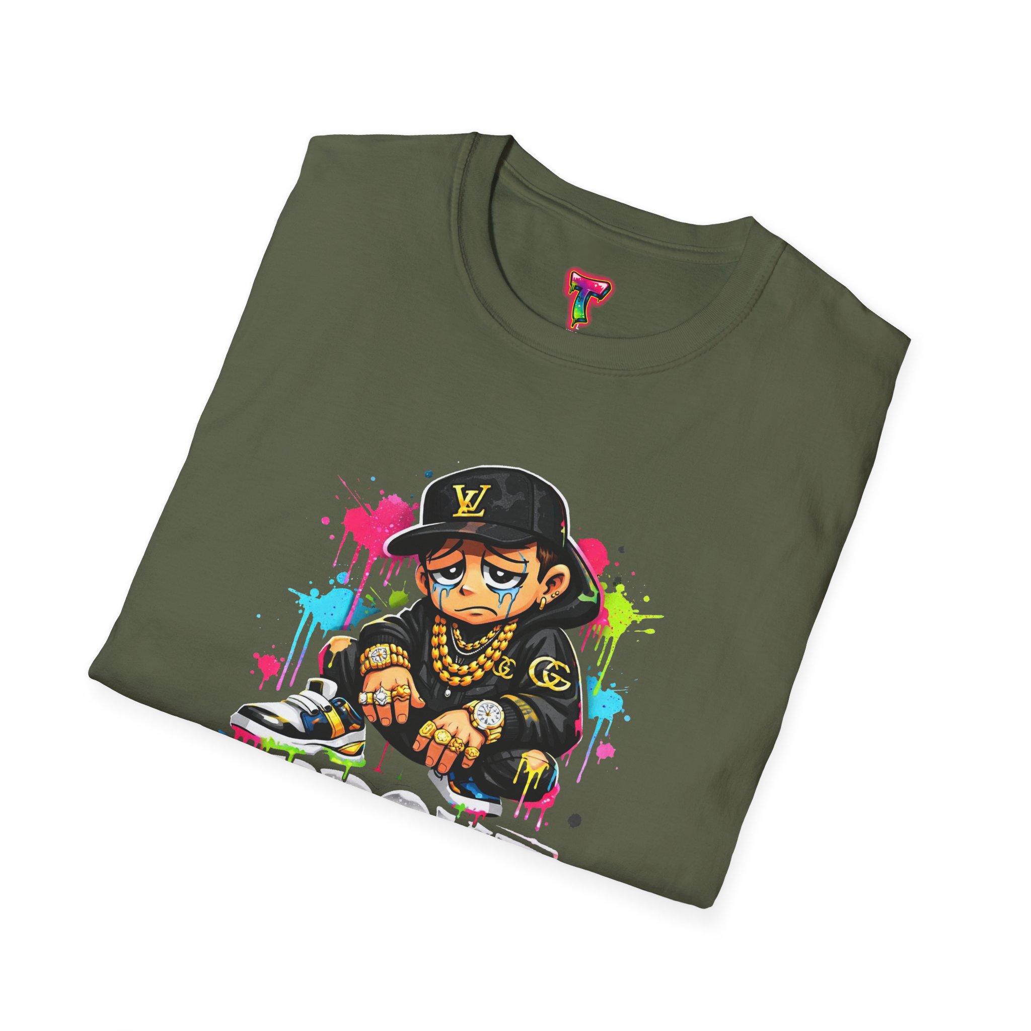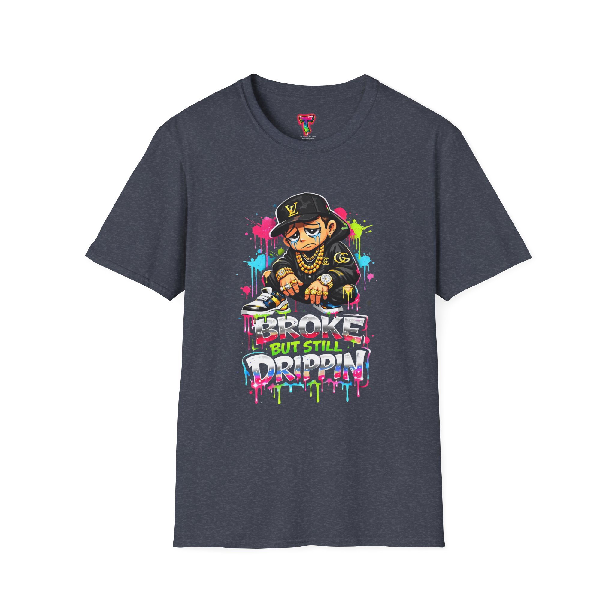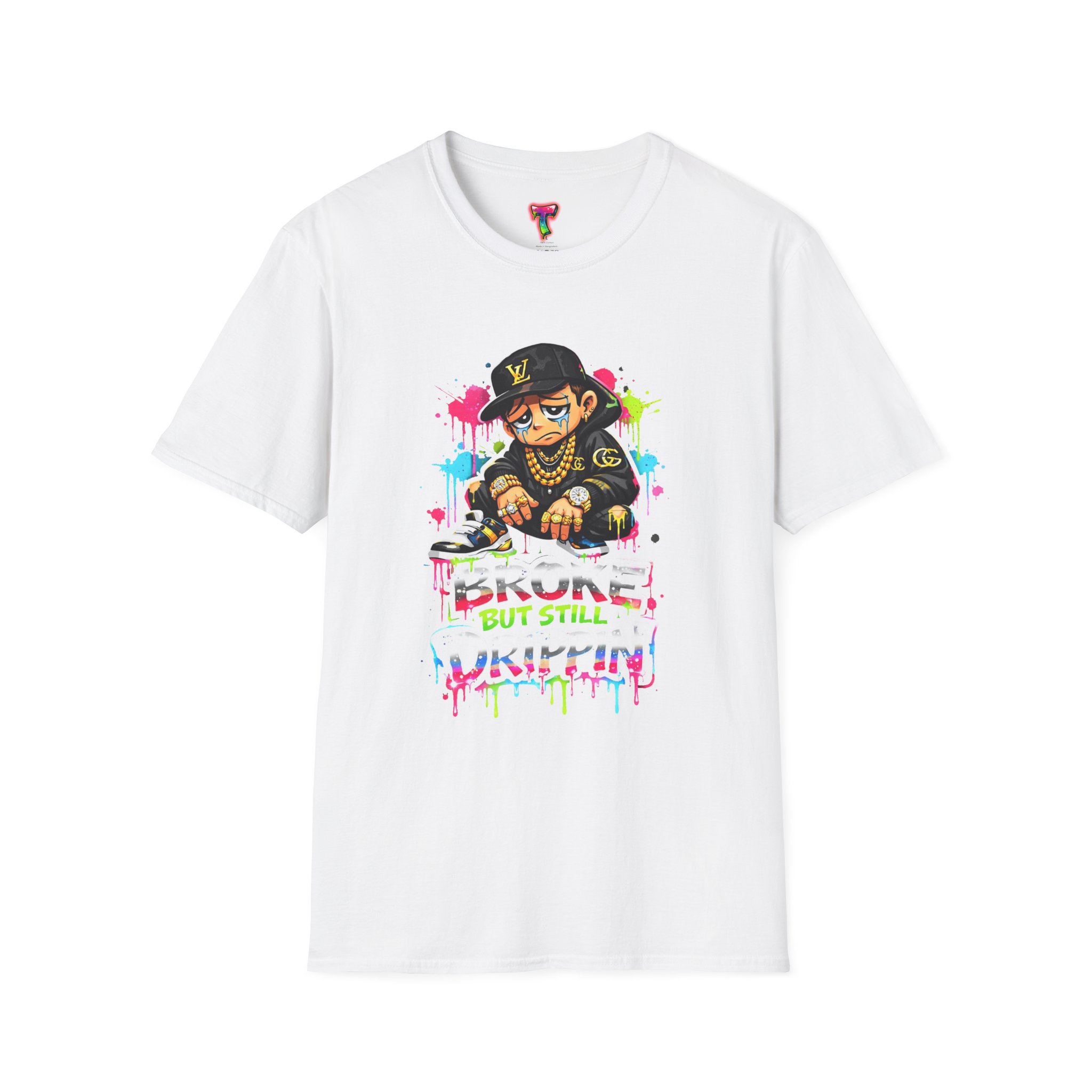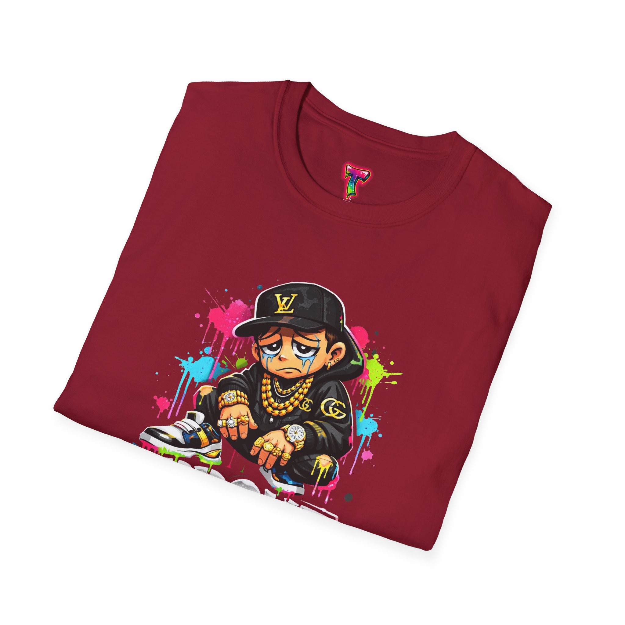 This lightweight cotton tee carries street energy with playful color splatters and bold DJ character artwork. The design feels like an underground block party — bright neon drips, graffiti-style lettering and a turntable-slinging character that radiates hustle and humor. Wear it layered under a denim jacket or solo with joggers to bring a casual, confident vibe to everyday runs, late-night sets, or city hangs. The soft ring-spun cotton and clean crew neckline keep the focus on the art while staying comfortable through long days and nights.