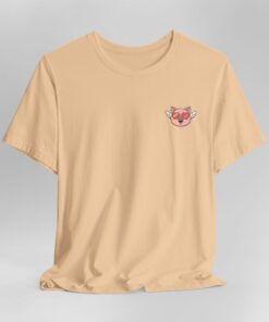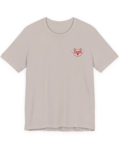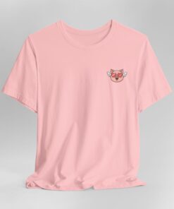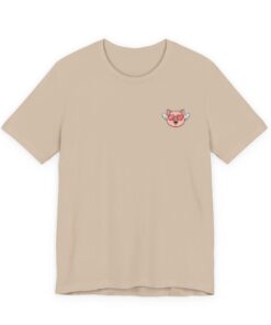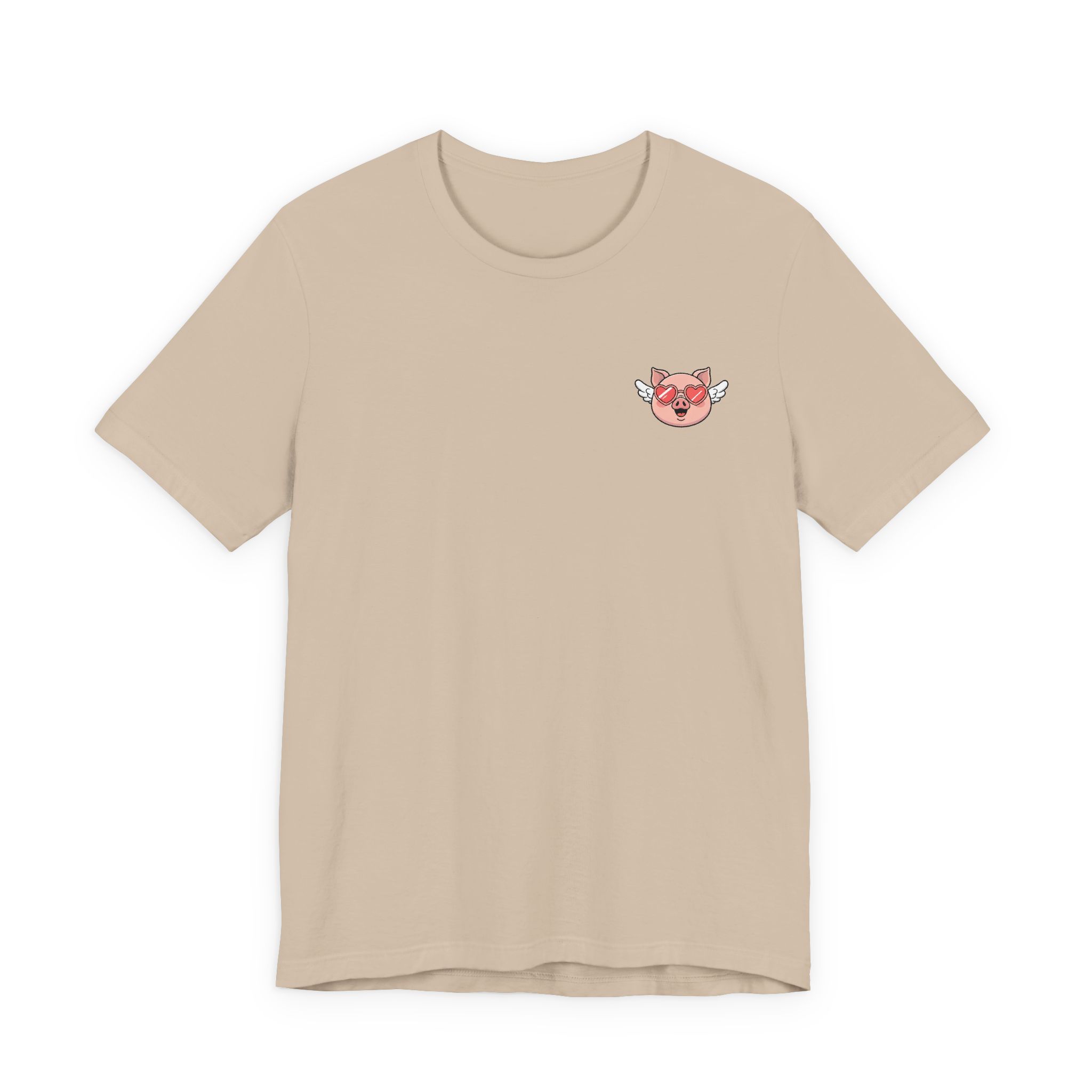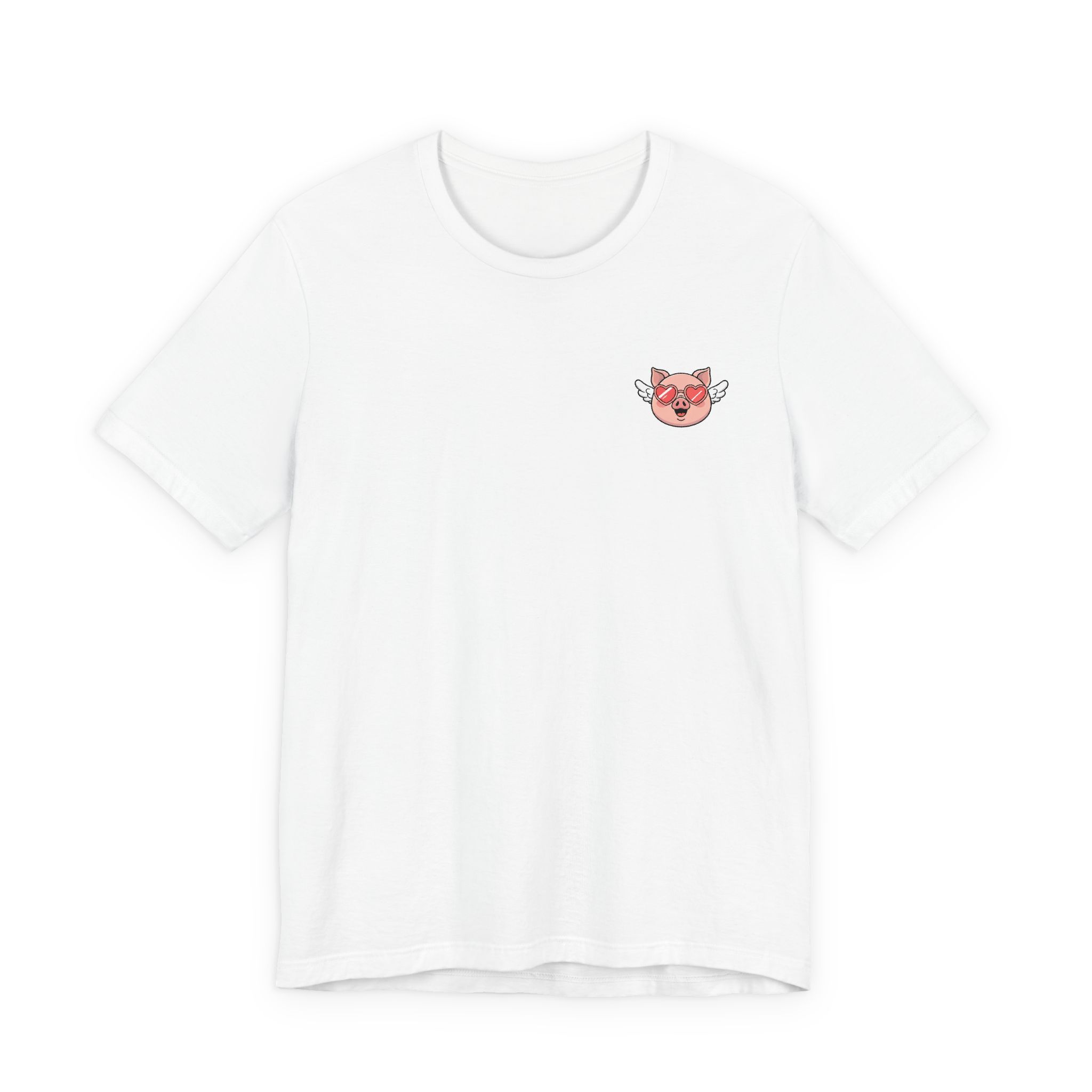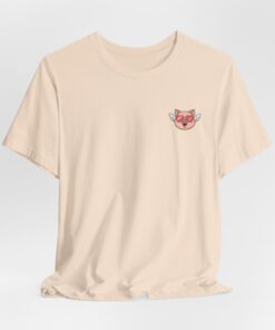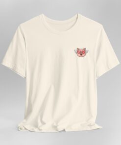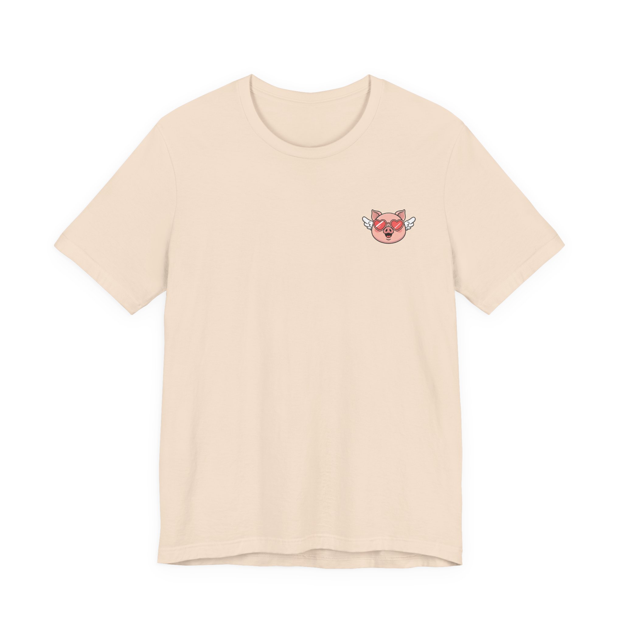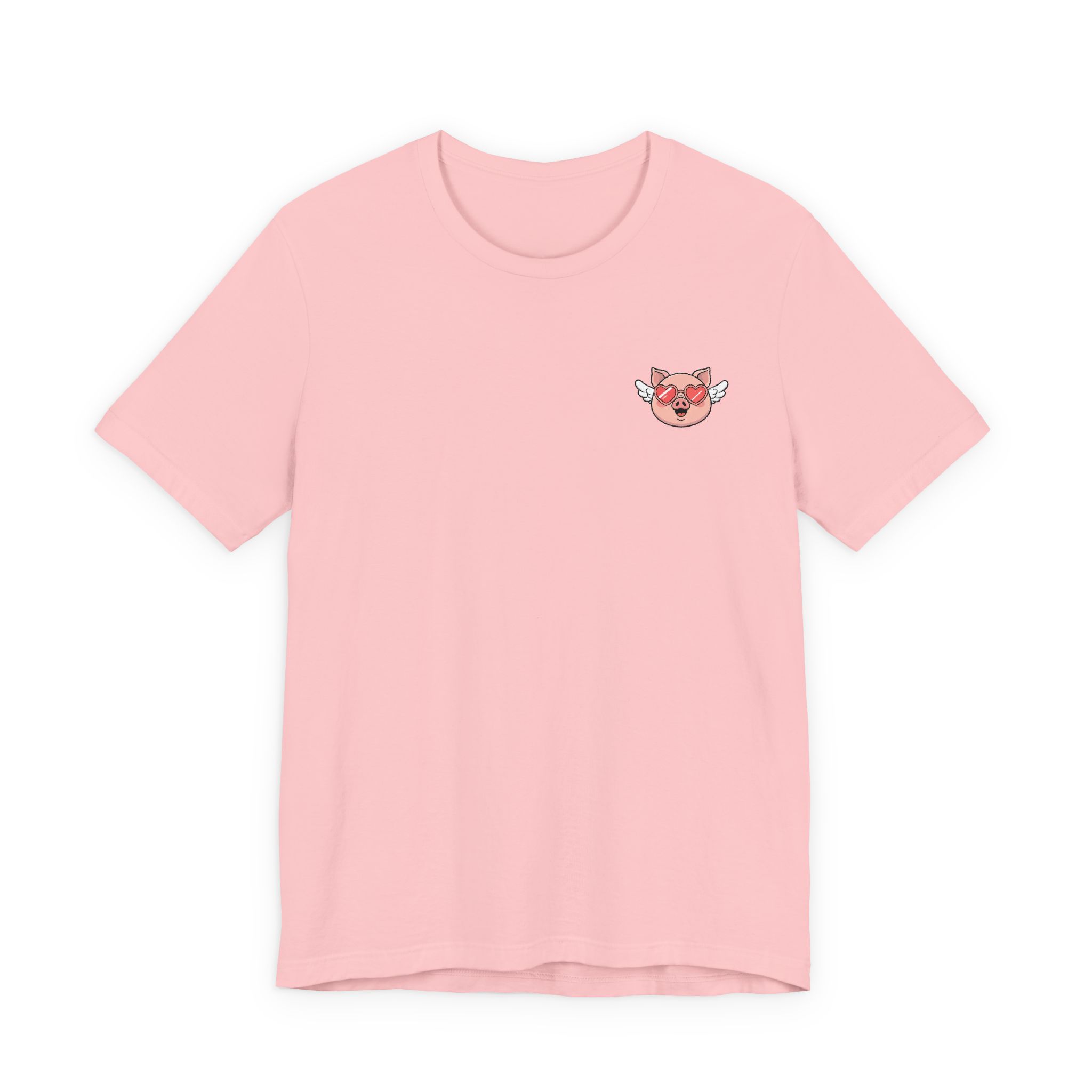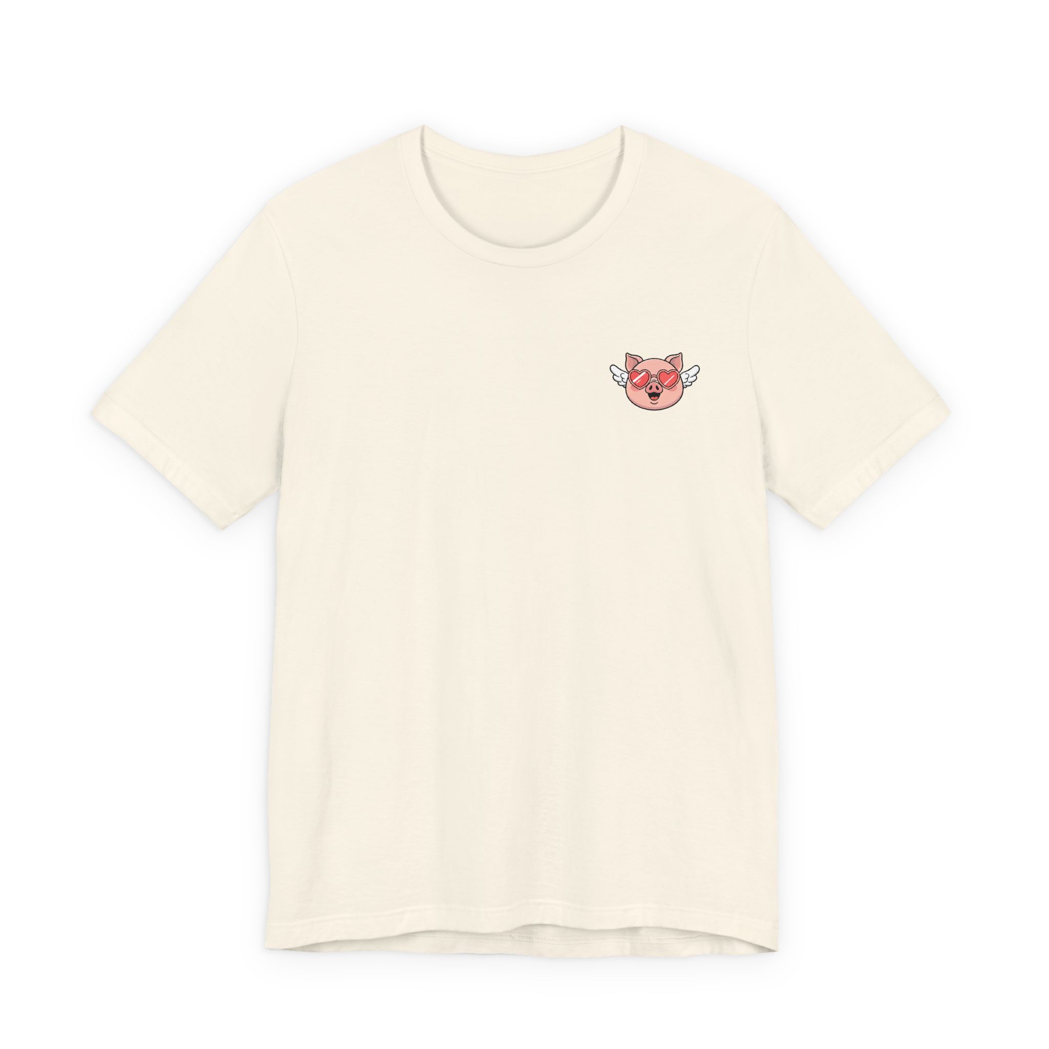 Soft, breathable, and charming — this lightweight tee brings a playful wink to everyday wear. Made from 100% Airlume combed and ring-spun cotton (with select heather/blend color options), it feels gentle against the skin while holding its shape thanks to side seams, shoulder tape, and a ribbed knit collar. The front chest features a small, sweet pig motif; the back shows a cheerful, heart-eyed pig with wings and the text “DON’T GO BACON my heart,” giving the shirt a cheeky, affectionate vibe. Finished with a tear-away label for comfort and printed using crisp DTF or vibrant DTG methods depending on print zone, this tee layers easily under jackets or stands alone as a light, playful statement piece. Responsibly produced by a brand committed to humane, sustainable practices.