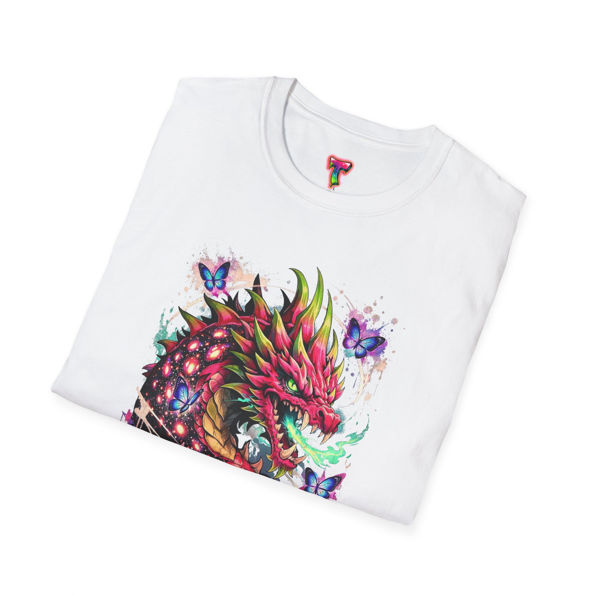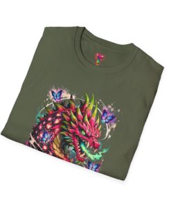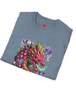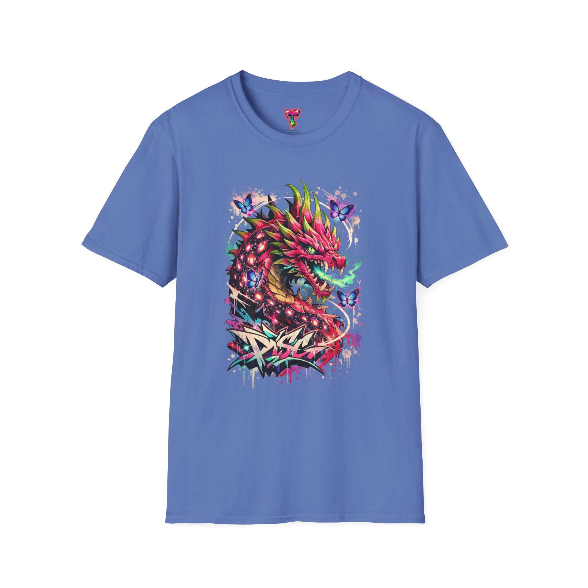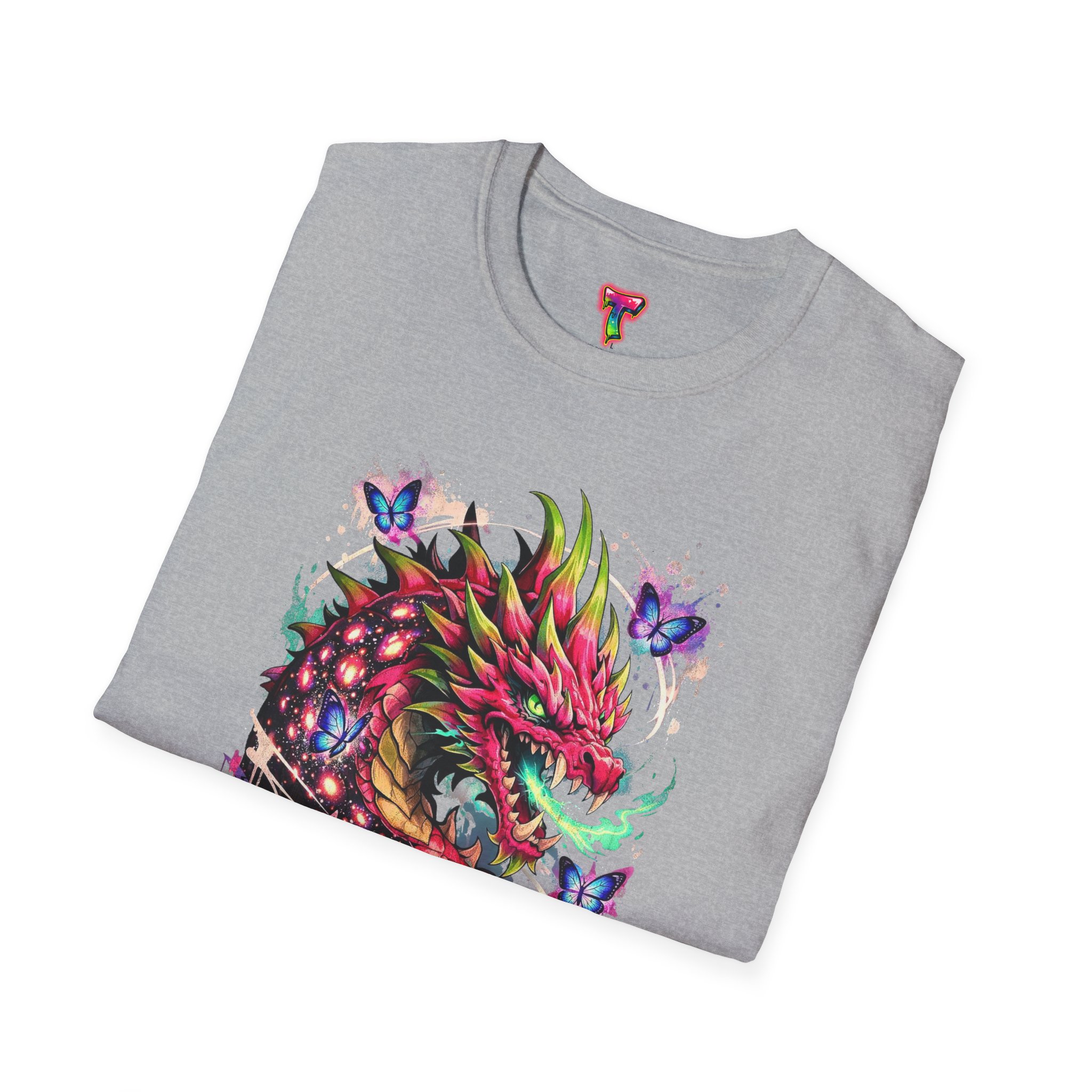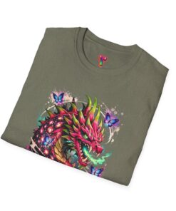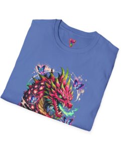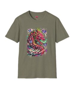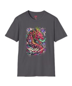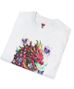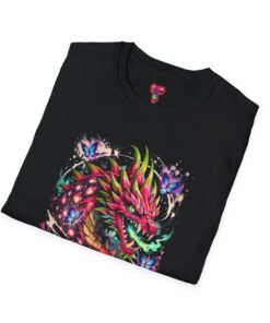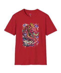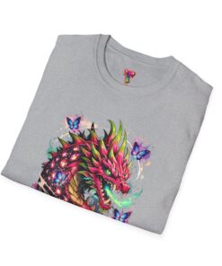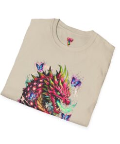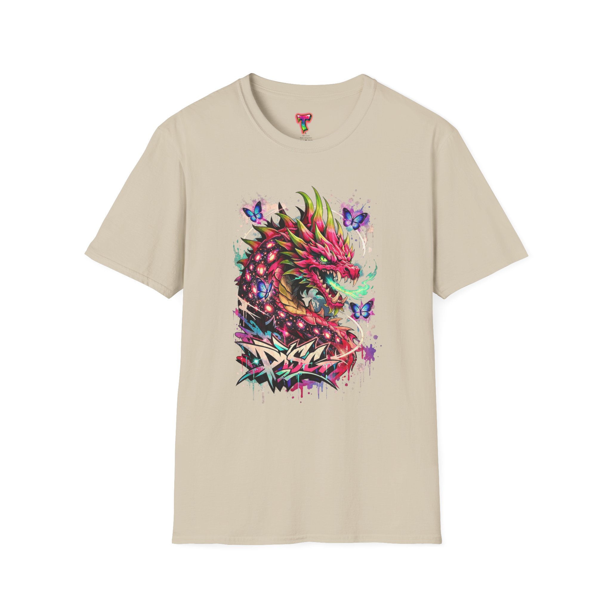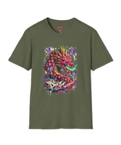 This lightweight cotton tee features a vivid, graffiti-style dragon design that feels alive with color and motion. The artwork blends street-art edge with mythical energy — jagged strokes, splashes of neon, and delicate butterflies that soften the intensity. Wear it when you want your outfit to tell a story: loud where you need it, detailed where people look closer. The crew neck and classic fit sit comfortably under a jacket or on their own, while the tear-away label and soft ring-spun cotton keep the focus on the print and your day, not the tag. Ethically sourced cotton and durable printing methods mean this shirt keeps its look wash after wash.