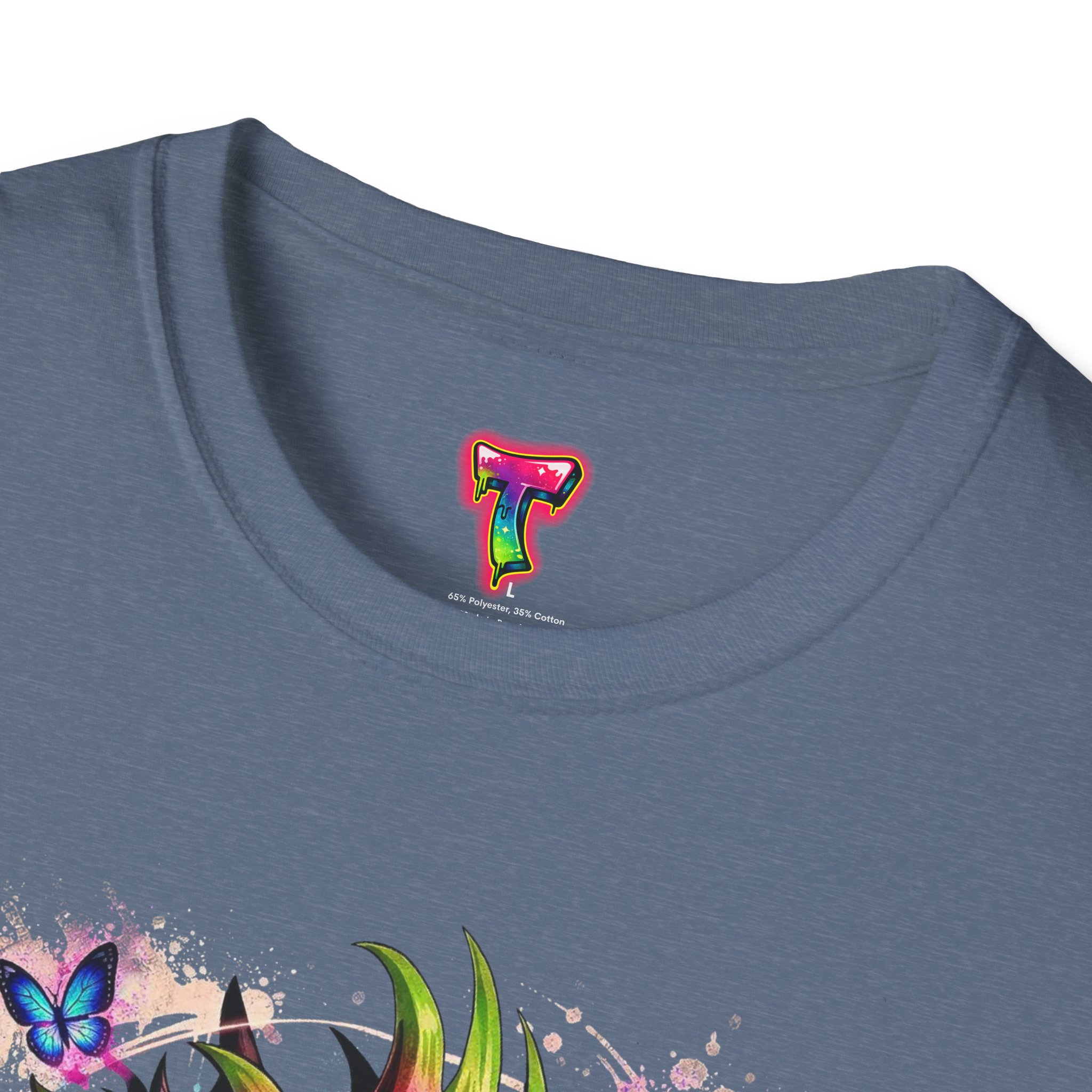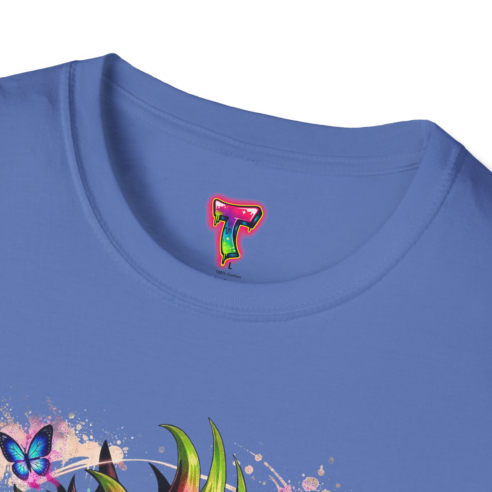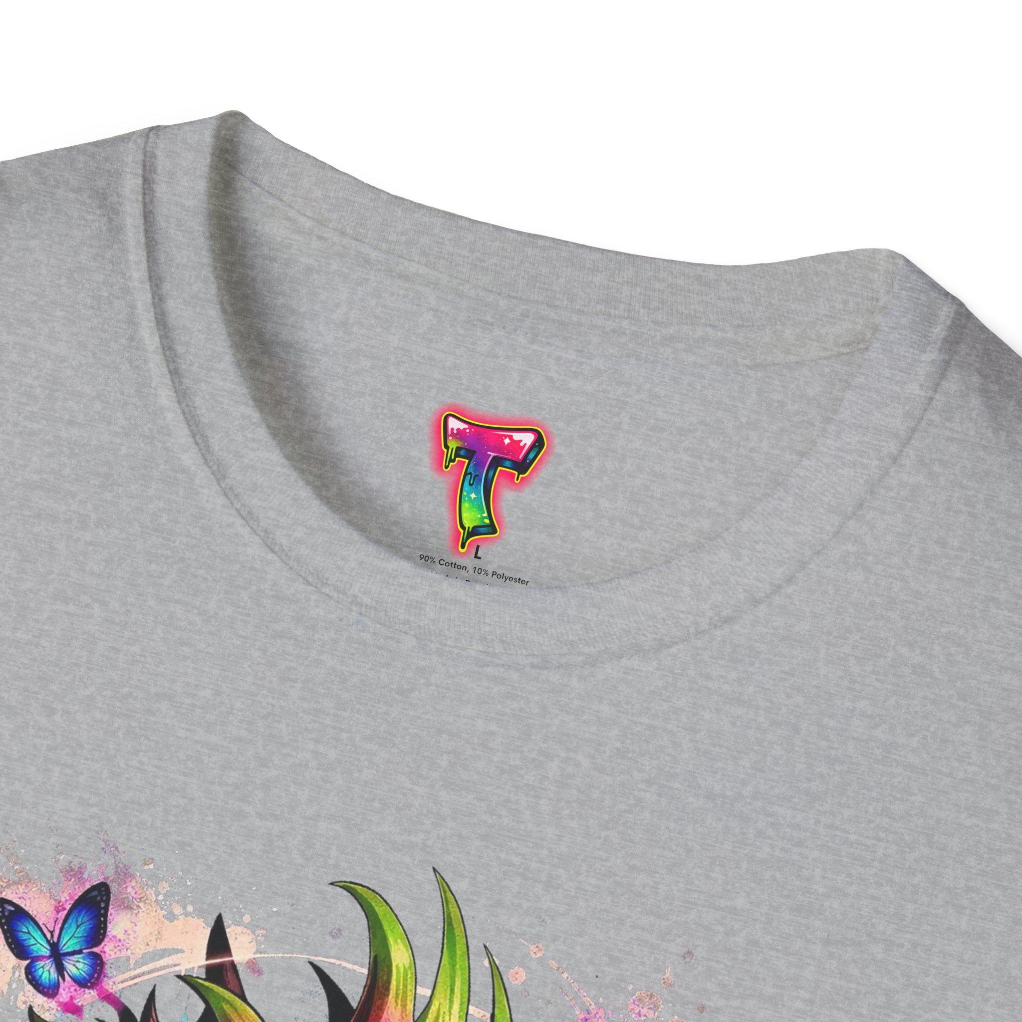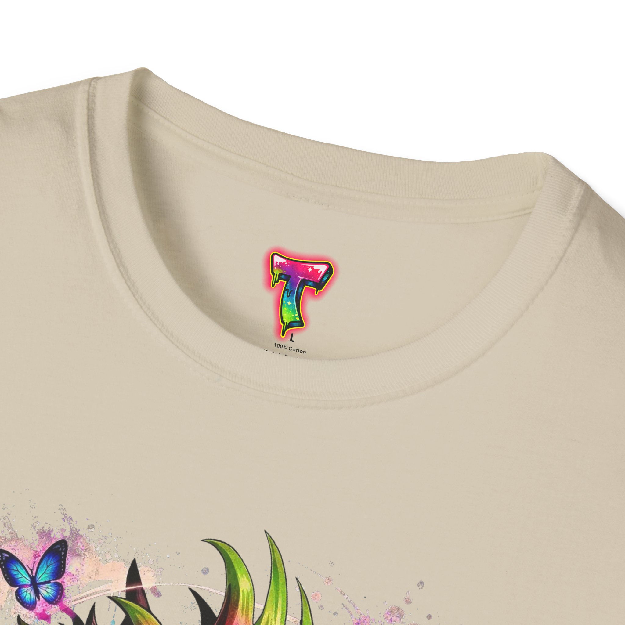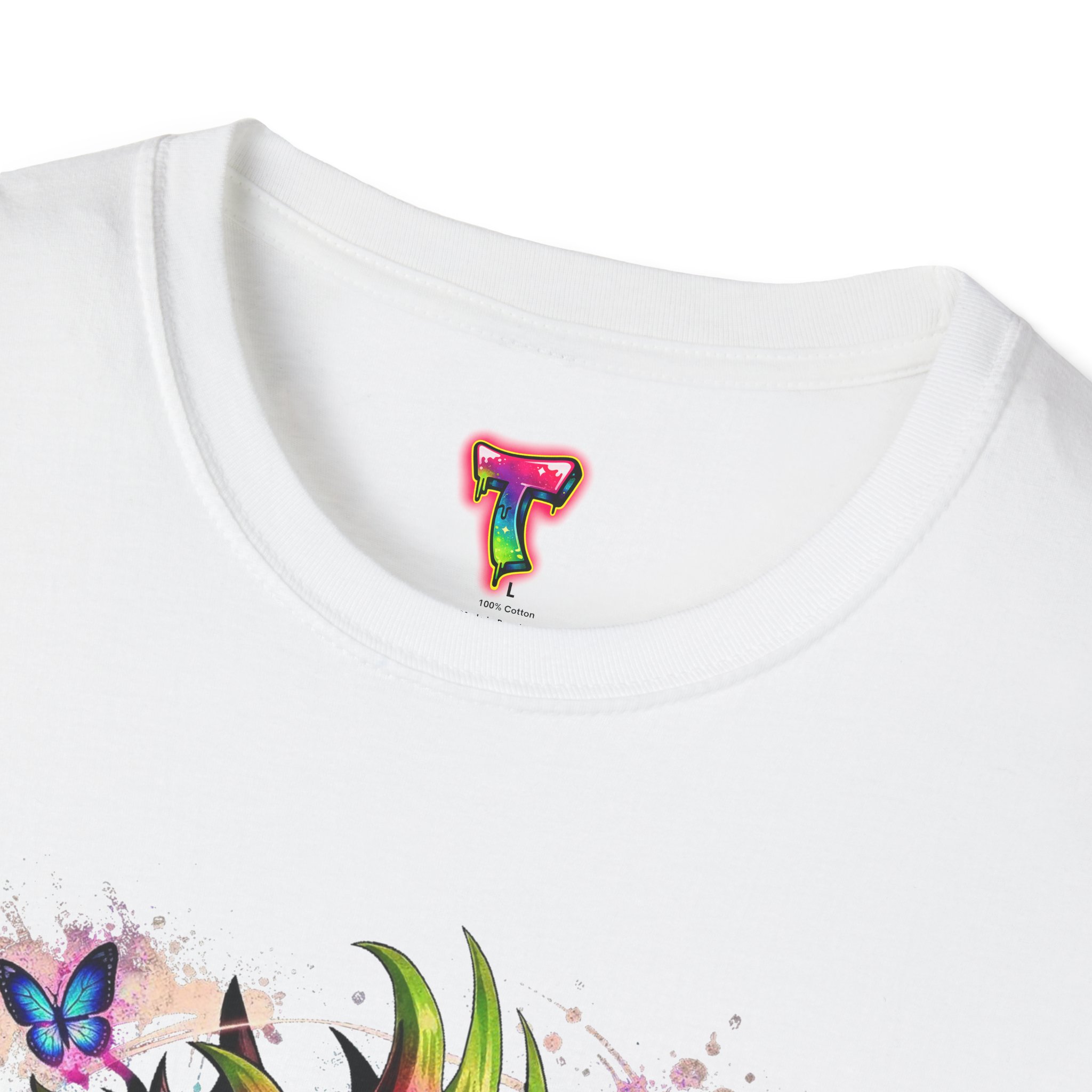 This lightweight cotton tee features a vivid, graffiti-style dragon design that feels alive with color and motion. The artwork blends street-art edge with mythical energy — jagged strokes, splashes of neon, and delicate butterflies that soften the intensity. Wear it when you want your outfit to tell a story: loud where you need it, detailed where people look closer. The crew neck and classic fit sit comfortably under a jacket or on their own, while the tear-away label and soft ring-spun cotton keep the focus on the print and your day, not the tag. Ethically sourced cotton and durable printing methods mean this shirt keeps its look wash after wash.
