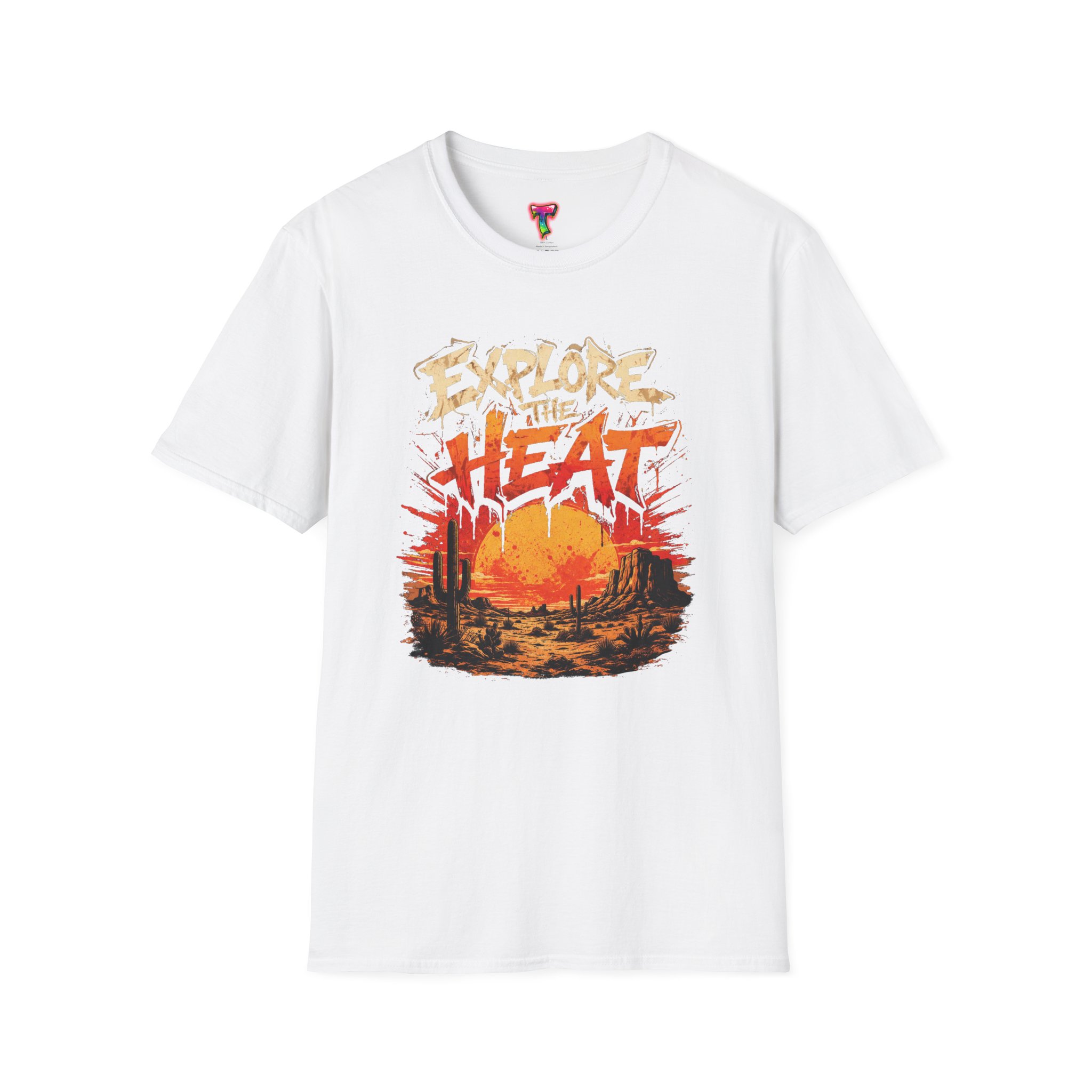 This lightweight cotton tee brings sun-baked desert vibes to everyday wear. A bold, hand-painted graphic of a blazing sunset, saguaro silhouettes and the words “Explore the Heat” sits centered on a clean white canvas. The print’s warm oranges and deep browns pop against breathable ring-spun cotton, so the shirt reads like a summer memory — dusty trails, late-afternoon light, and the quiet patience of cactus and rock. Wear it on road trips, campground evenings, or when you want an adventurous statement without bulk. The crew neckline and classic cut keep the look simple and easy to layer under a flannel or wear solo when the temperature climbs.