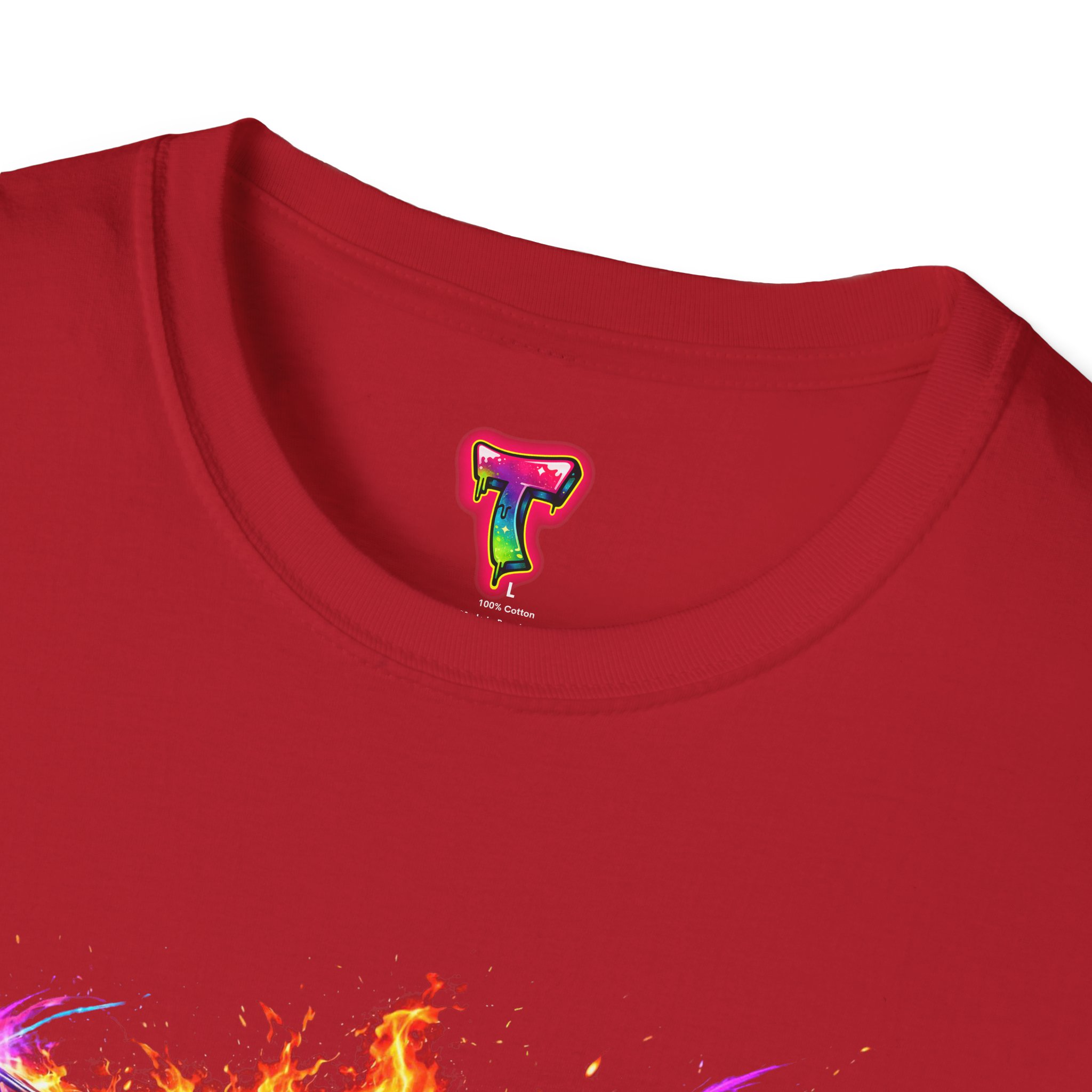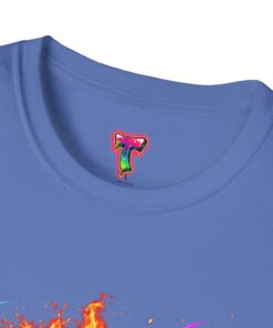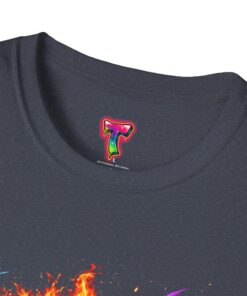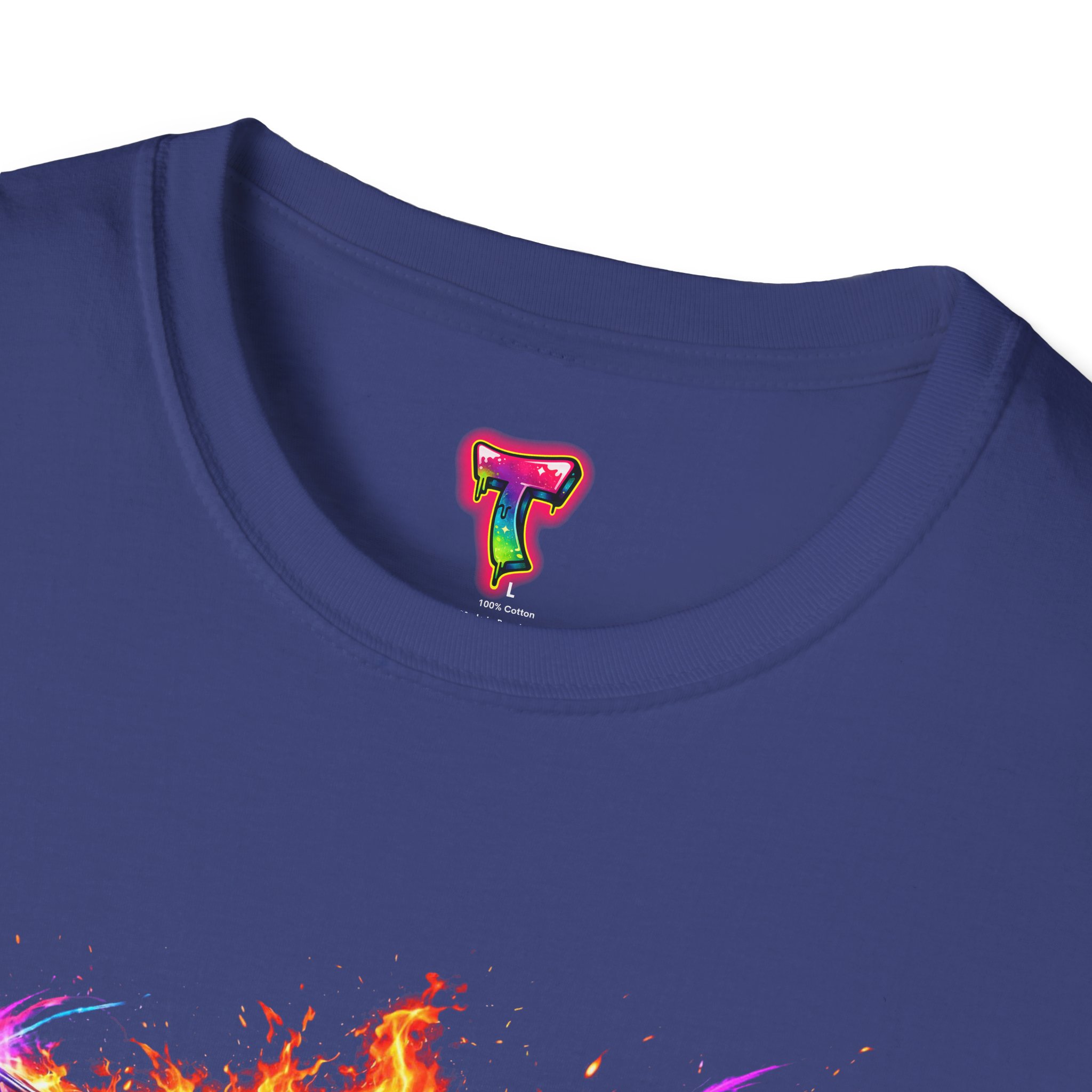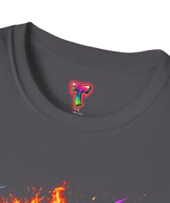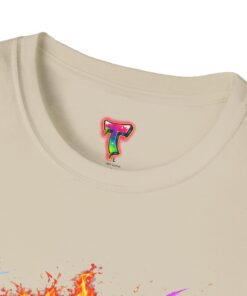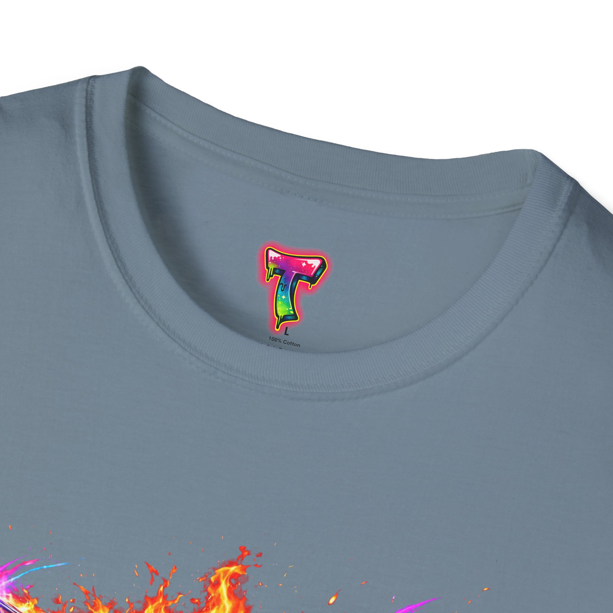 This lightweight tee carries a graphic that roars — vibrant flames form a bold graffiti-style wordmark across the chest, radiating heat and motion. It’s a clean white canvas with a punch of color: oranges, yellows and hints of electric blue blend into a street-art-inspired blaze that reads like movement captured mid-spark. Wear it on days when you want to stand out without shouting. The soft ring-spun cotton feels airy against the skin and the ribbed crew neck keeps the silhouette tidy. It slips easily into a layered look under a denim jacket or stands alone with worn-in jeans for a city-night vibe. Designed for everyday wear, it’s made with responsibly sourced cotton and finished with tear-away labels for no-scratch comfort — built to be seen and built to last.