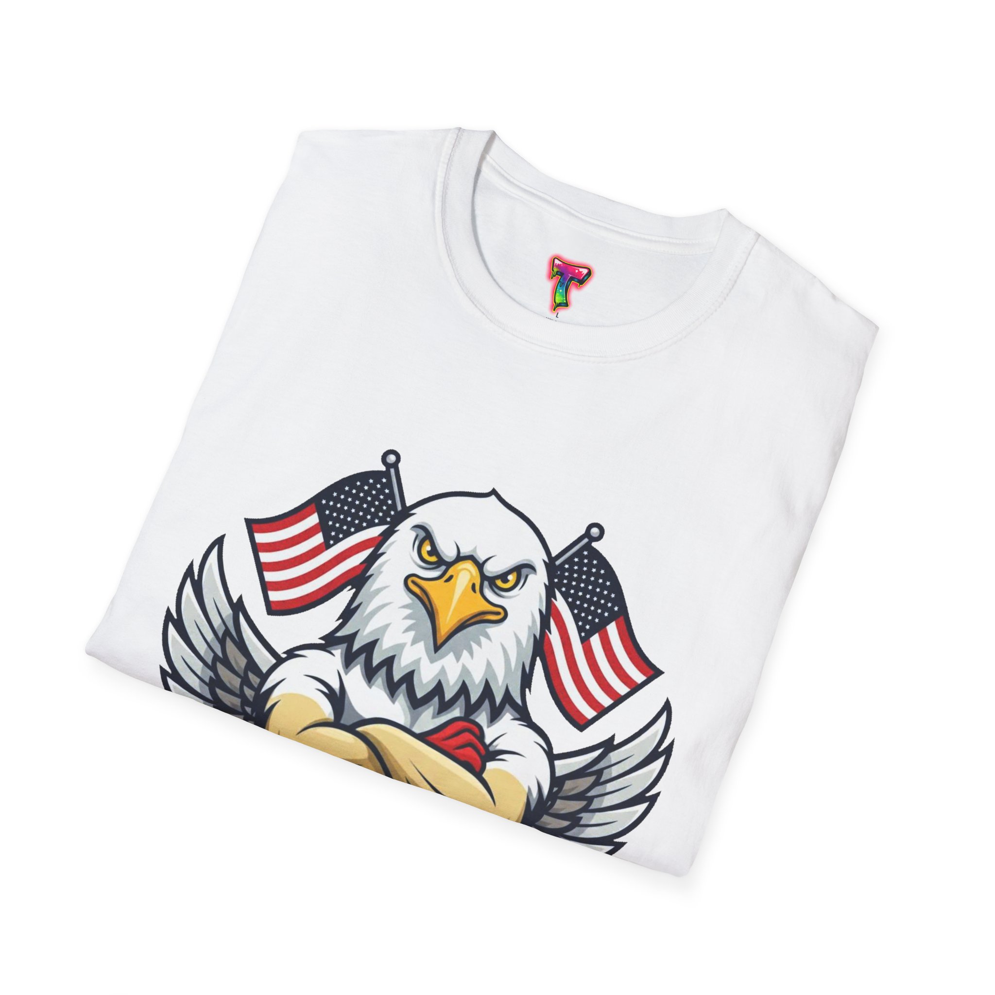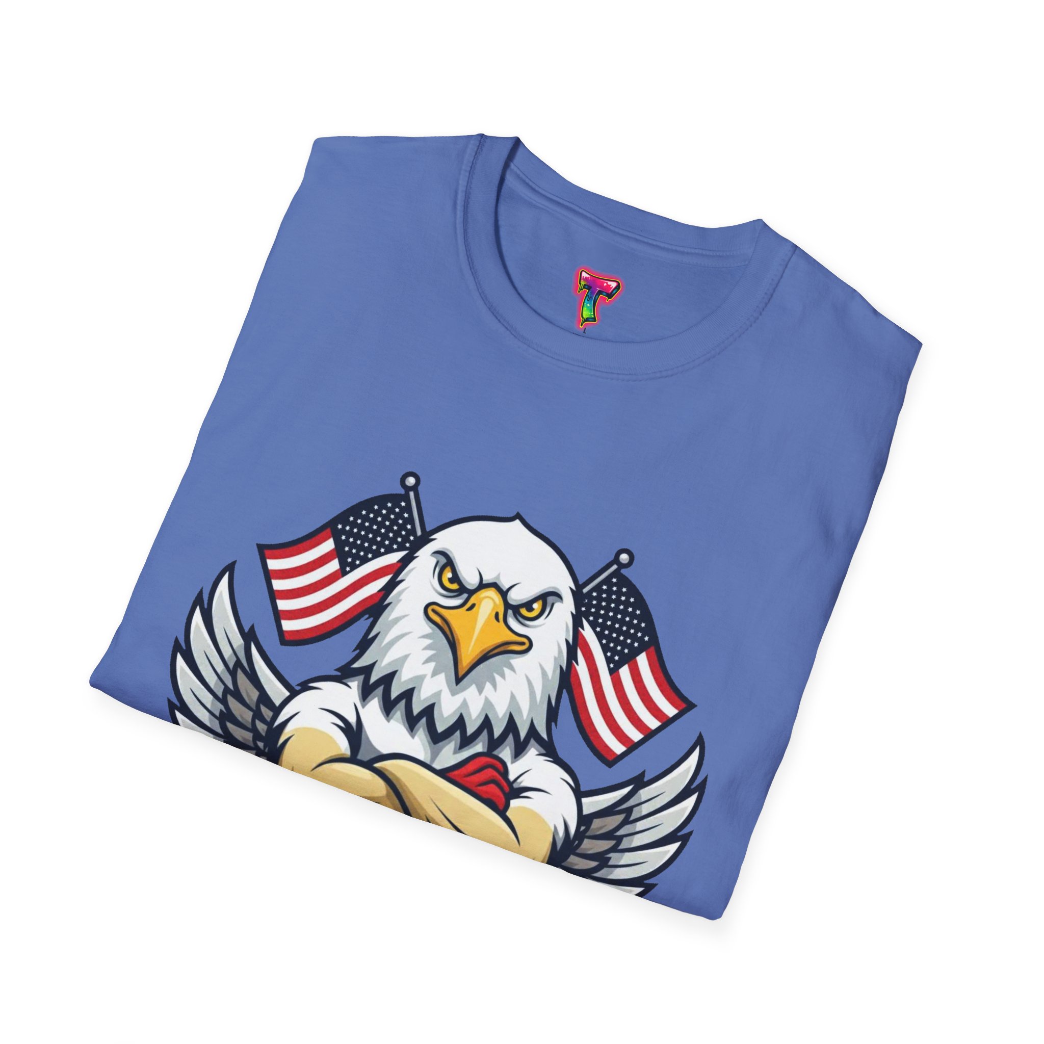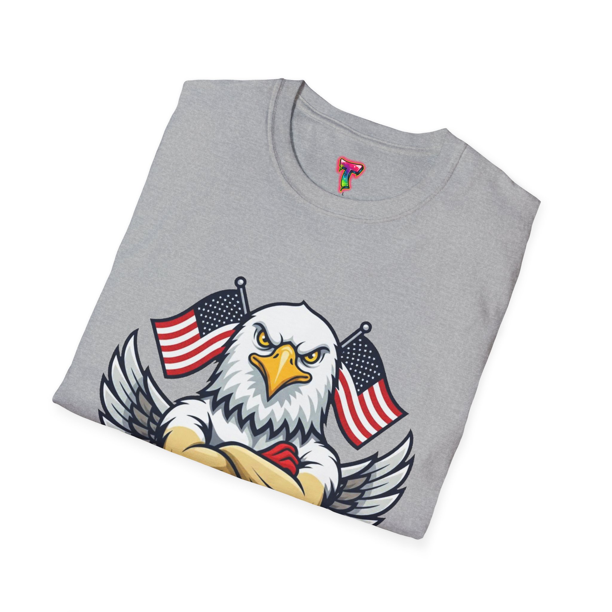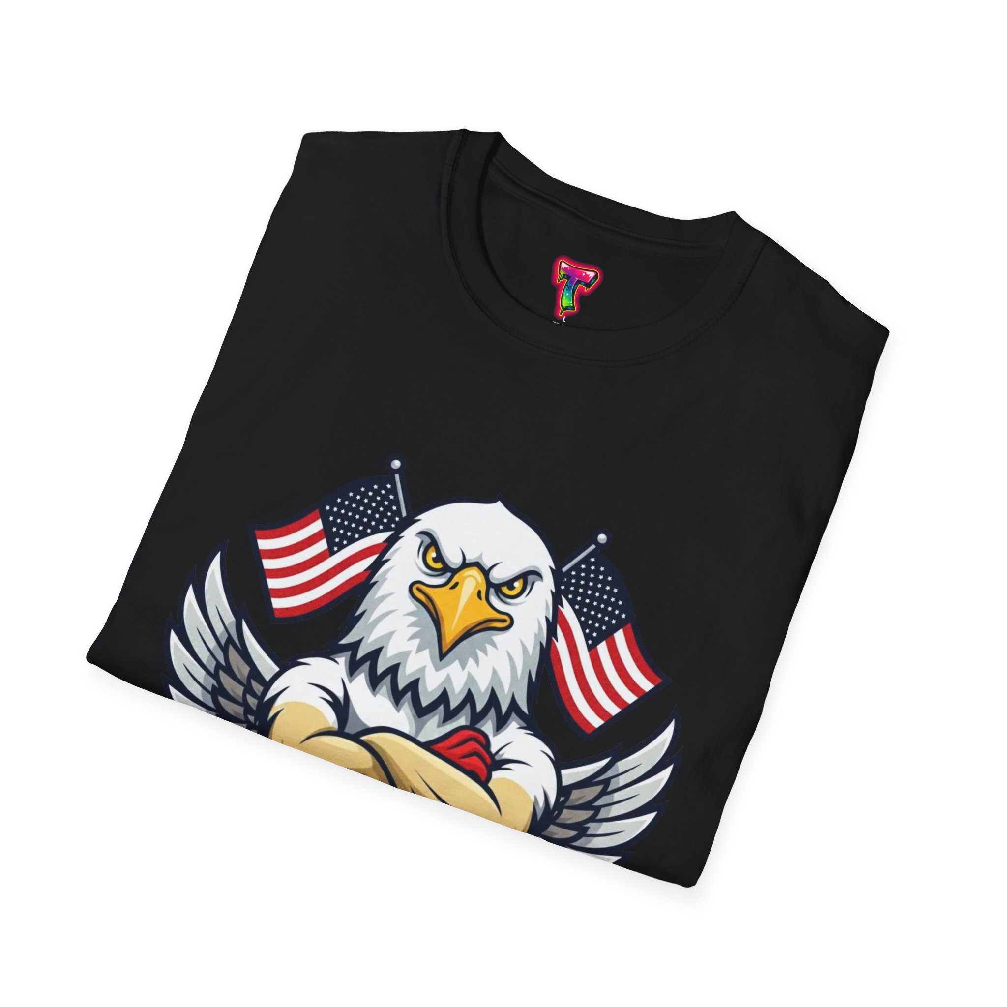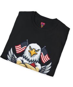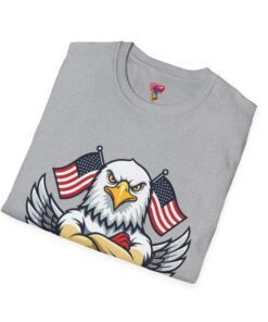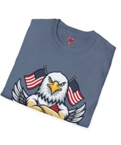 – DTG/DTF printed graphics: vibrant eagle and flag artwork on chest and optional DTF sleeve/neck labels