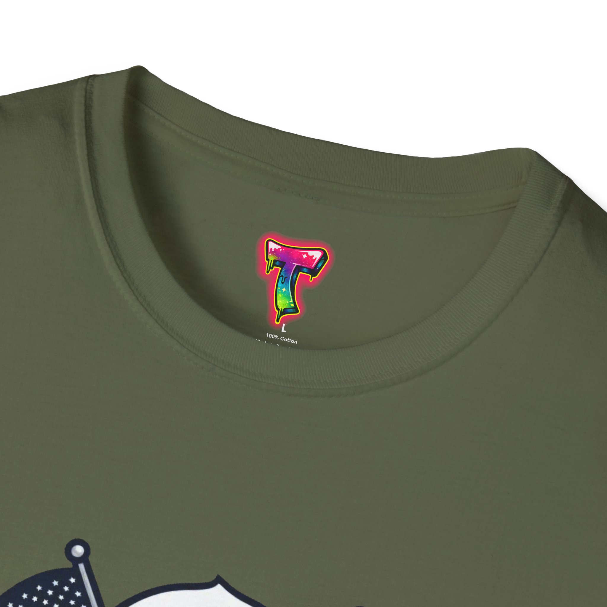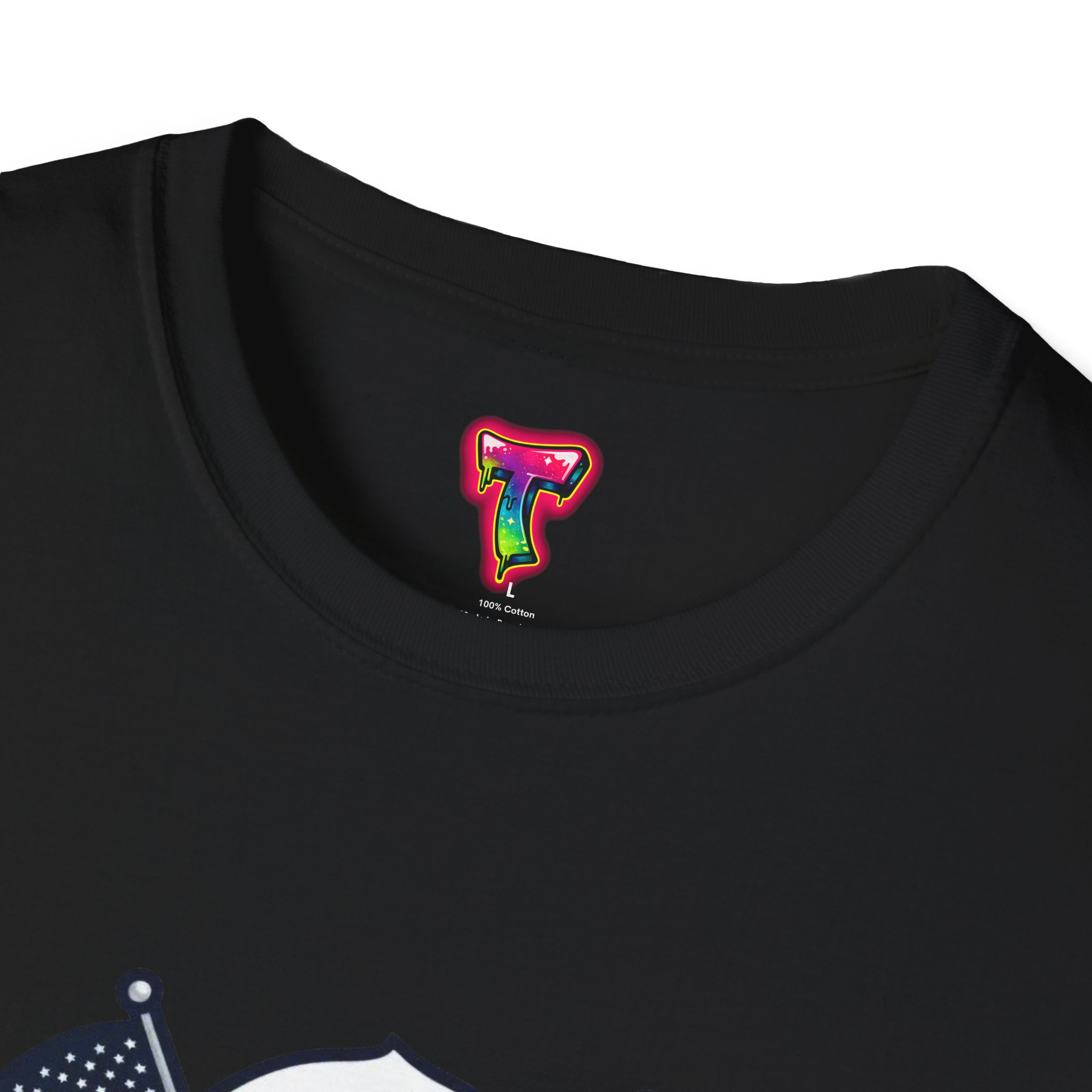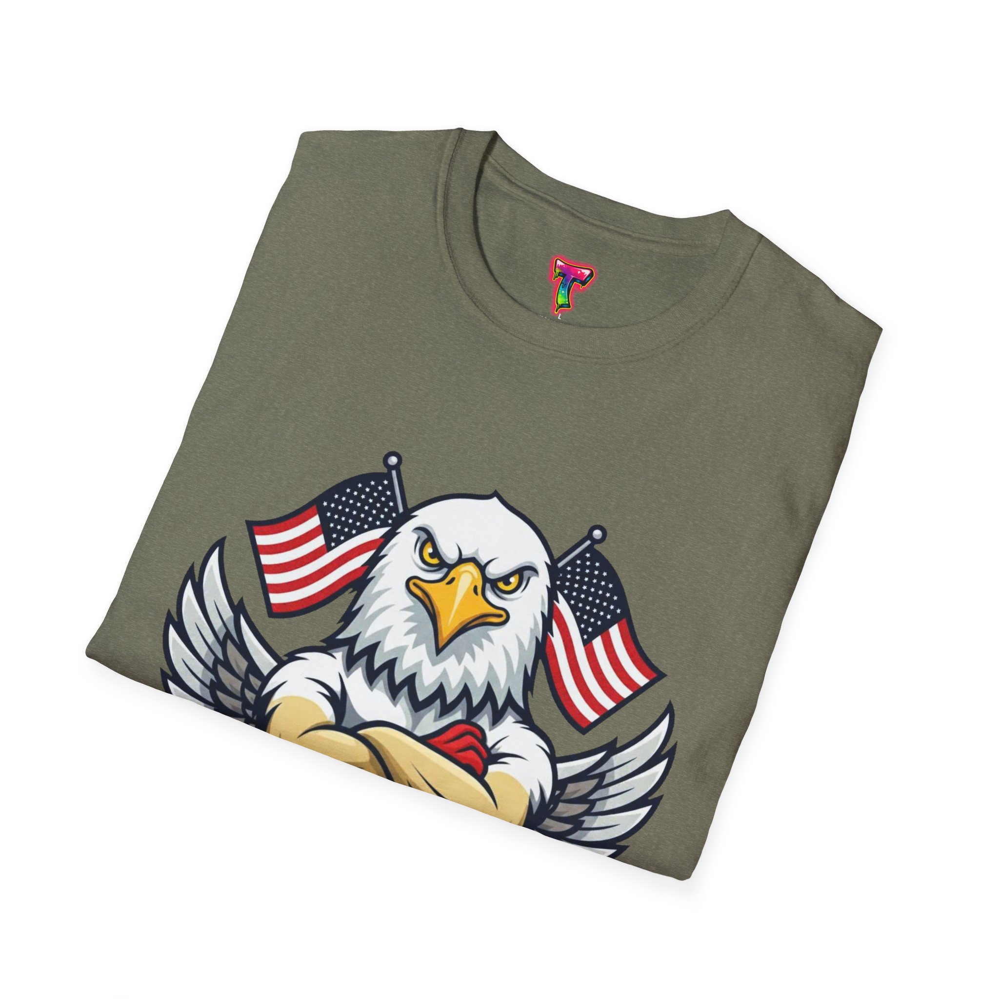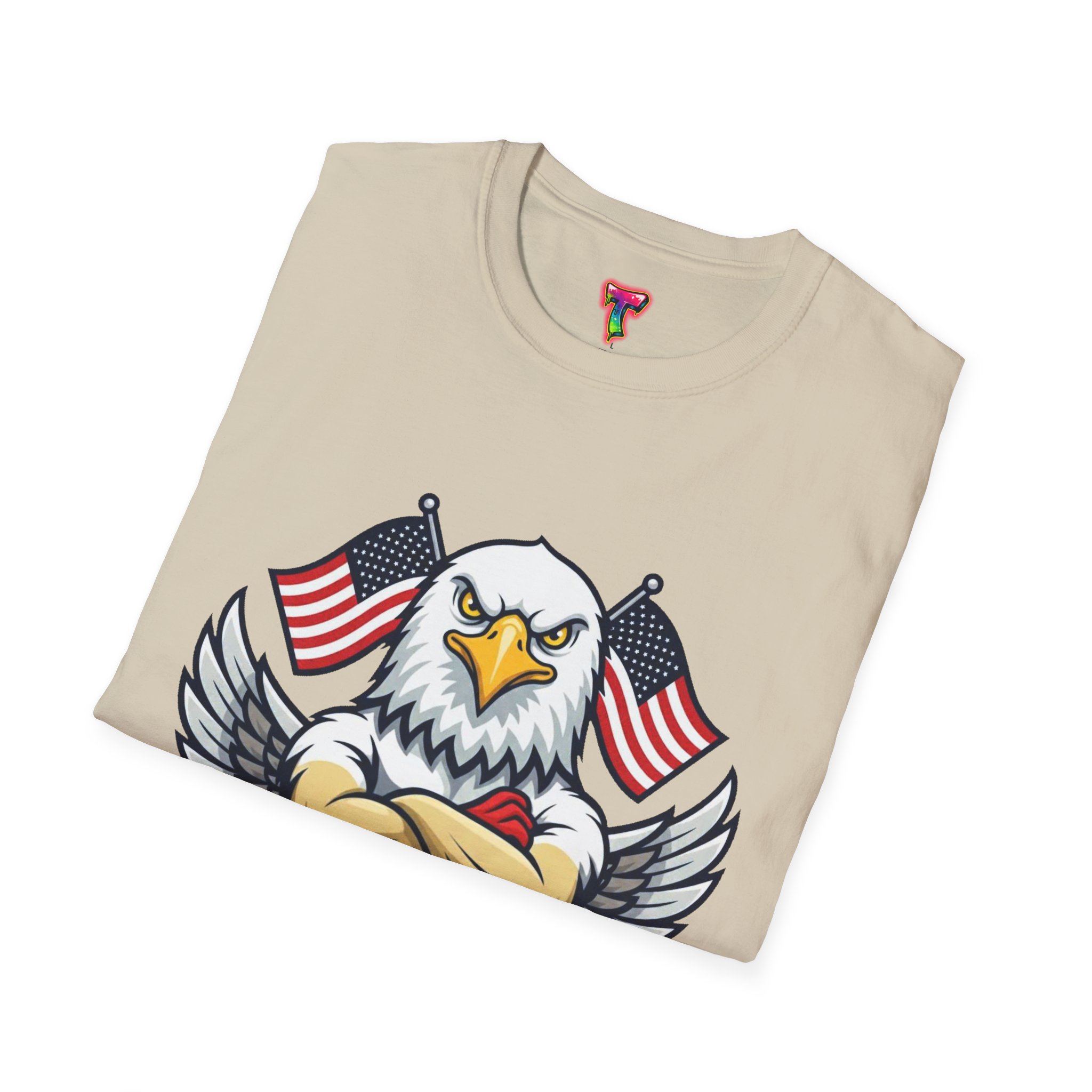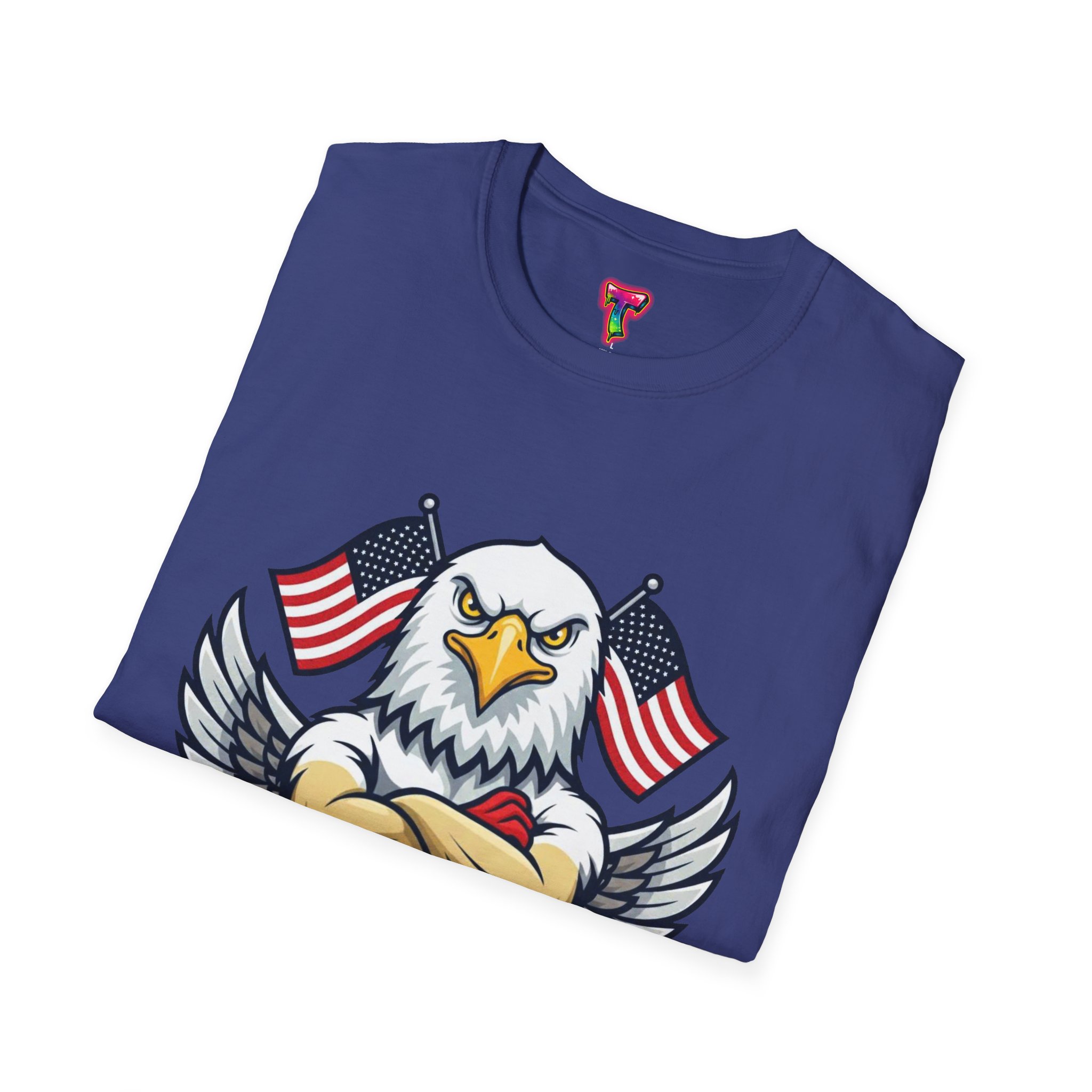 – DTG/DTF printed graphics: vibrant eagle and flag artwork on chest and optional DTF sleeve/neck labels