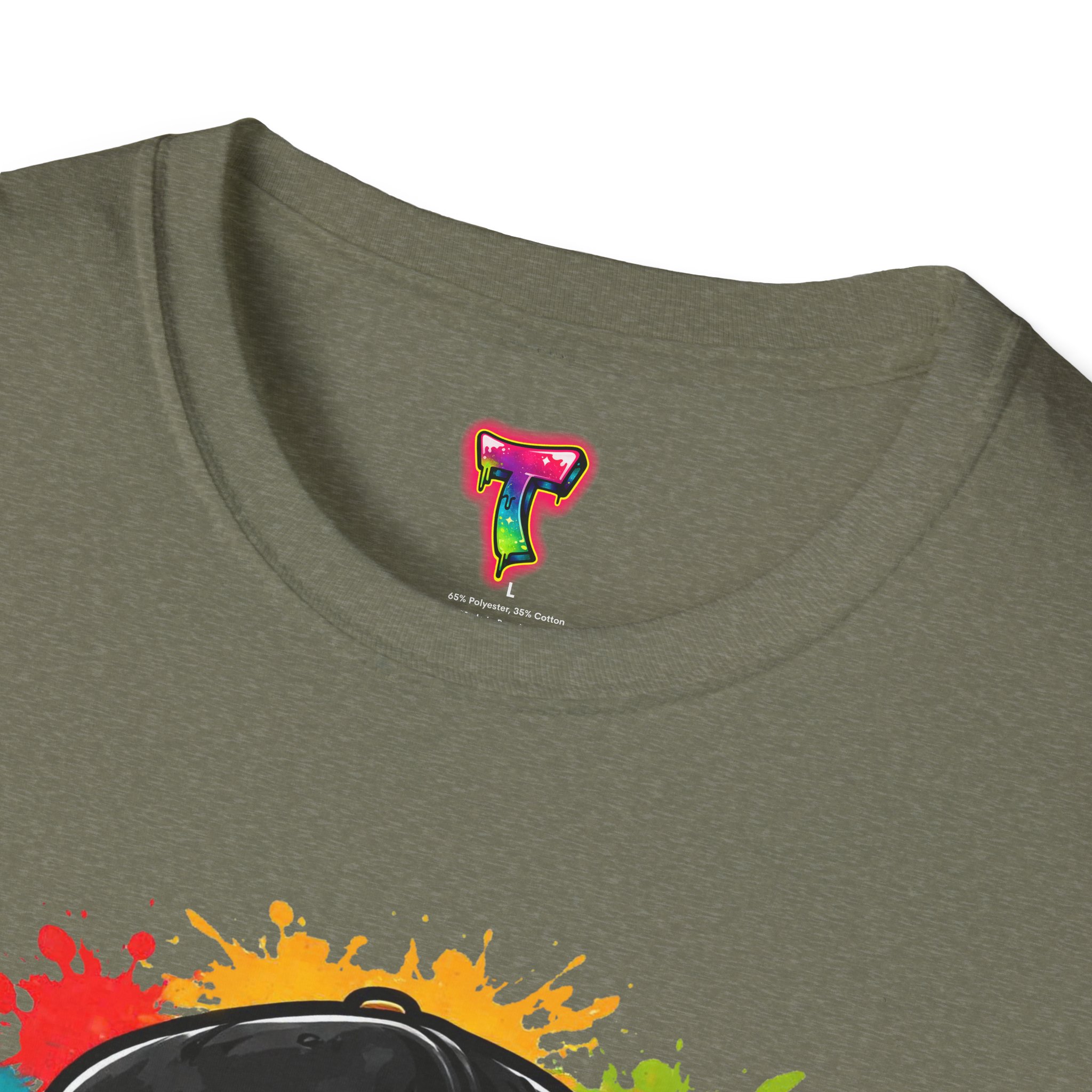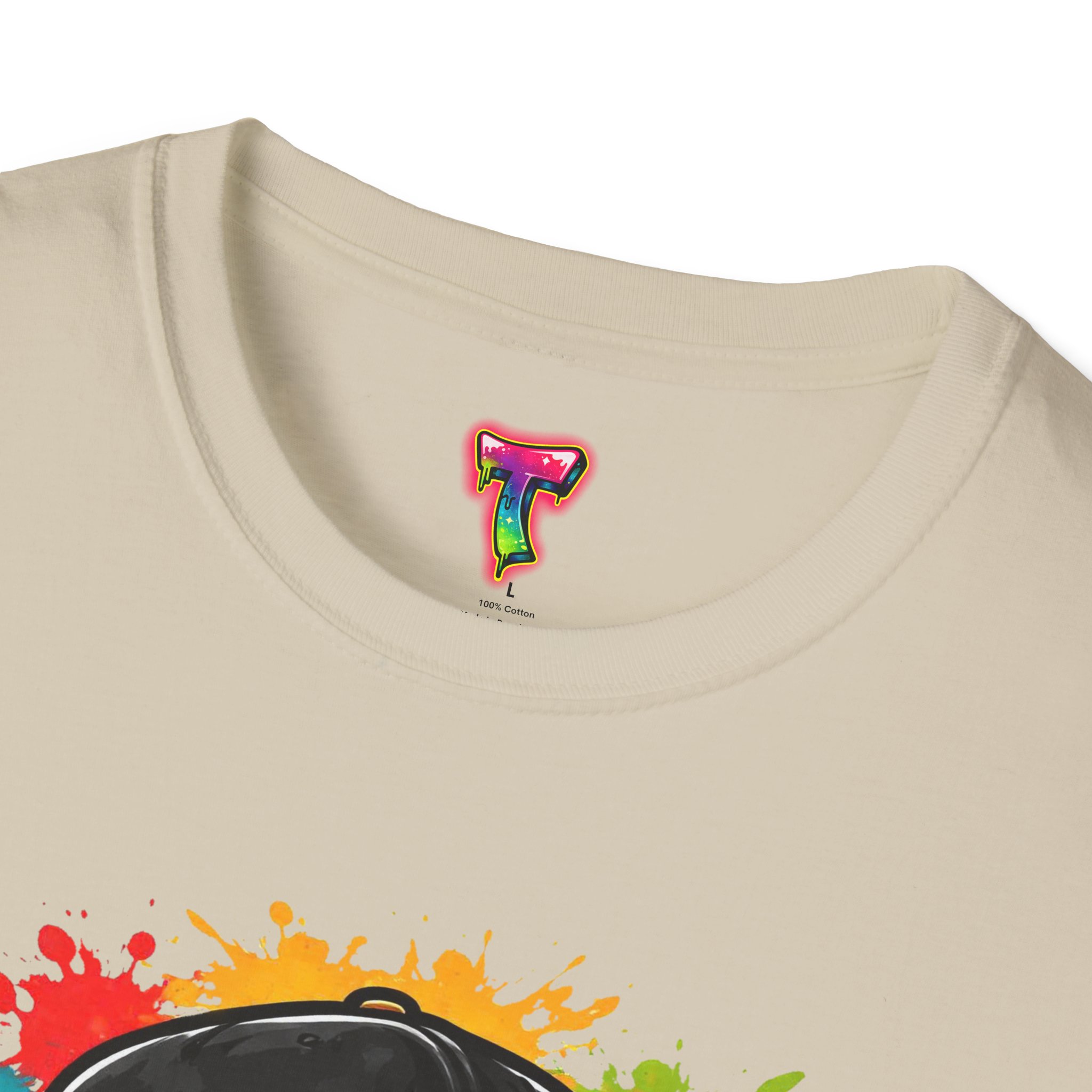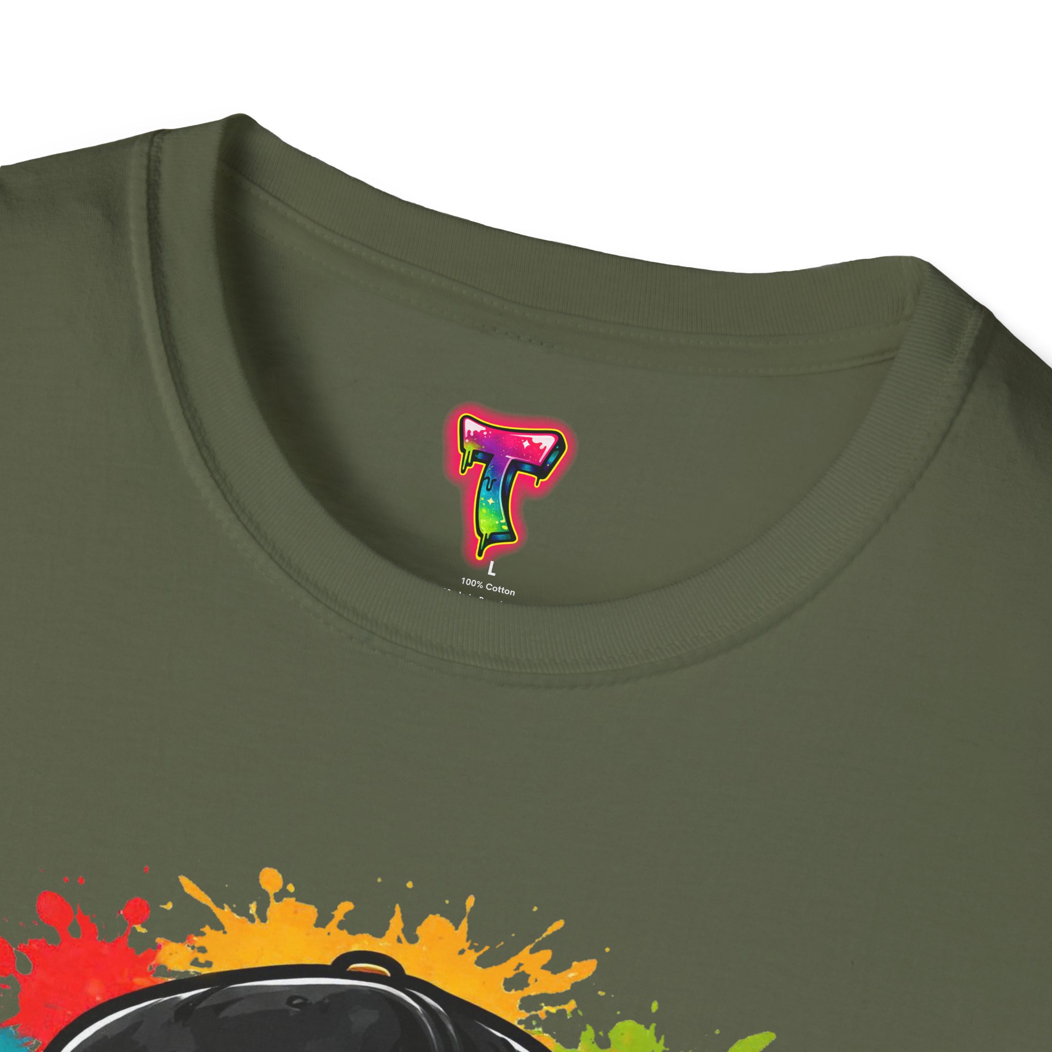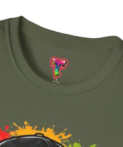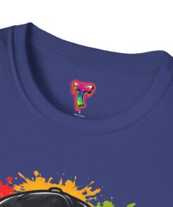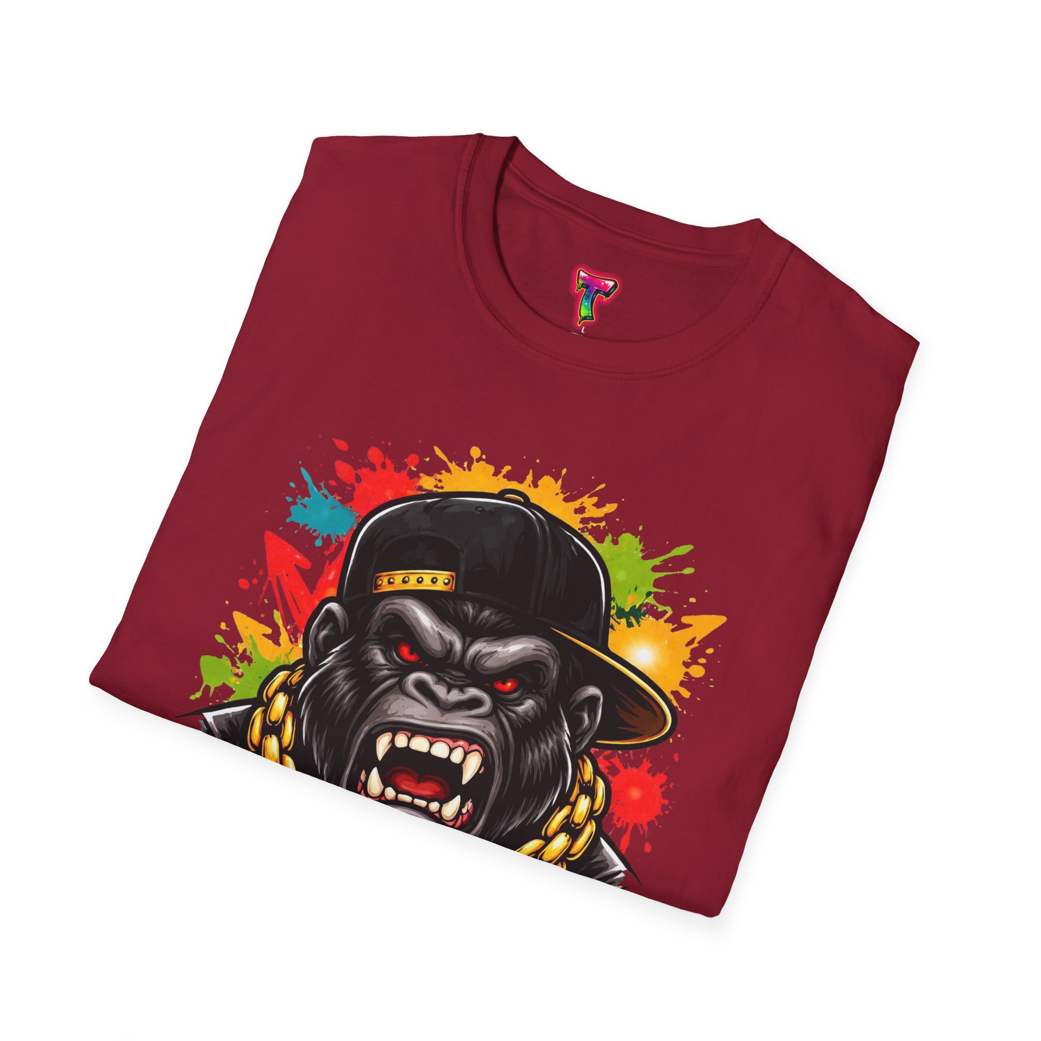 Raw energy, street attitude, and bold color collide on this lightweight cotton tee. The graphic centers a roaring gorilla wearing a sideways cap and thick gold chain, painted over a splash of vibrant inks — it feels like a vinyl sticker come to life. Wear it when you want your outfit to speak loud without trying: layered under a denim jacket for late-night city runs, thrown on for a skatepark session, or worn to casual meetups where style leans toward the unapologetic. The soft ring-spun fabric and tubular knit keep the silhouette clean and comfortable, while the ribbed collar and shoulder tape hold shape through repeat wears. This shirt ages into your rotation, not away from it.