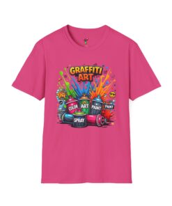 This lightweight cotton tee carries a burst of streetwise energy — splashes of neon paint, spray cans, and bold “Graffiti Art” lettering front and center. It feels like a spontaneous mural you can wear: loud colors on a clean white canvas that keep the focus on the design. The classic crew neck and relaxed fit let the artwork sit naturally on the chest while the soft ring-spun cotton keeps it comfortable for all-day wear. Wear it to jam sessions, art crawls, or while sketching your next piece — it settles into the rhythm of creative days and late-night sessions alike.