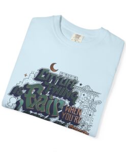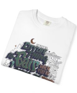 This garment-dyed tee brings streetwise edge and comfort together. The heavyweight cotton has a softened, lived-in feel from garment dyeing, so the bold graffiti-style artwork sits naturally on the chest instead of looking new and stiff. Wear it layered under a hood or loose with jeans for an easy urban silhouette — the relaxed fit and tubular knit keep lines clean and comfortable through long days. The inked, drippy lettering, tiny moon and architectural doodles create a late-night, city-sketch mood that reads like a personal manifesto. Sizes run S–4XL (see the Comfort Colors 1717 chart) and the pre-shrunk ring-spun cotton holds its weight and shape wash after wash, so the look stays honest for seasons.