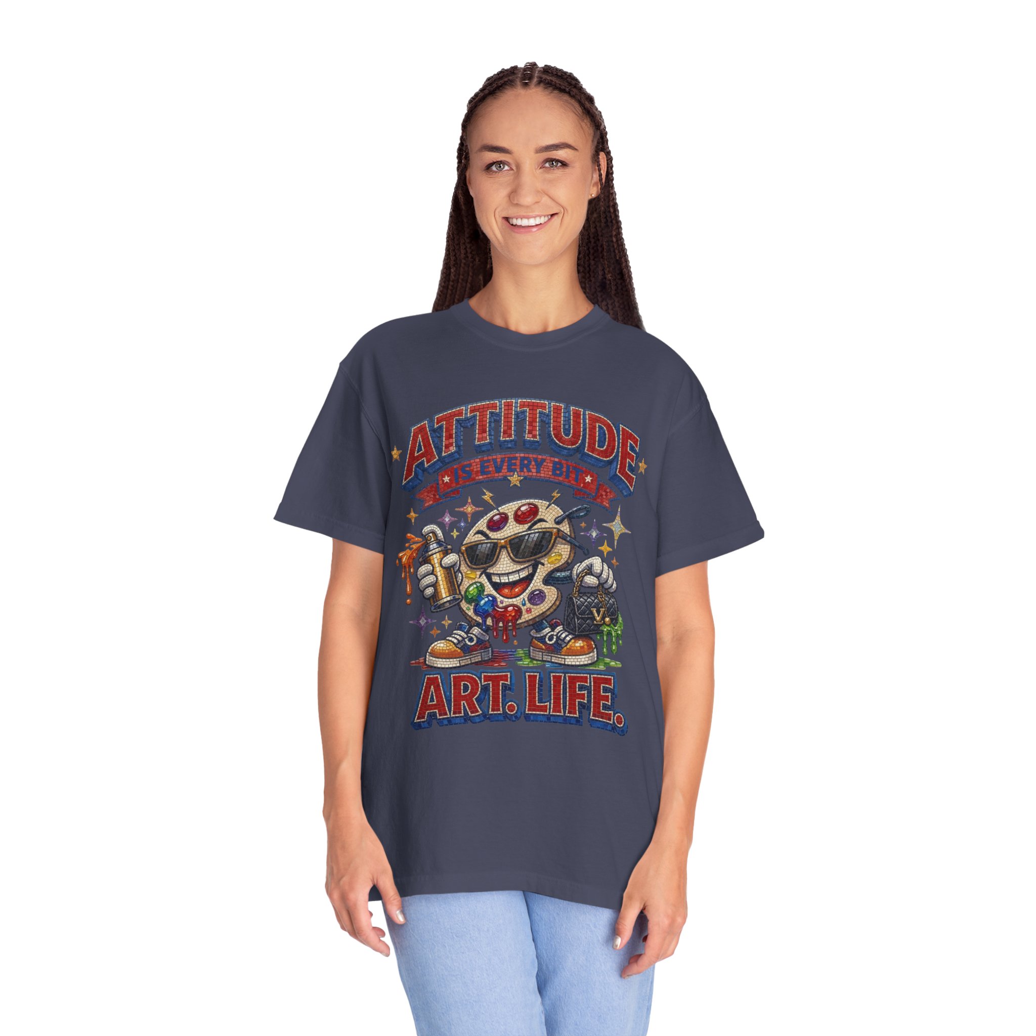 Graphic T-Shirt — “Attitude Every Day, Art Life” Painter Skull Design
