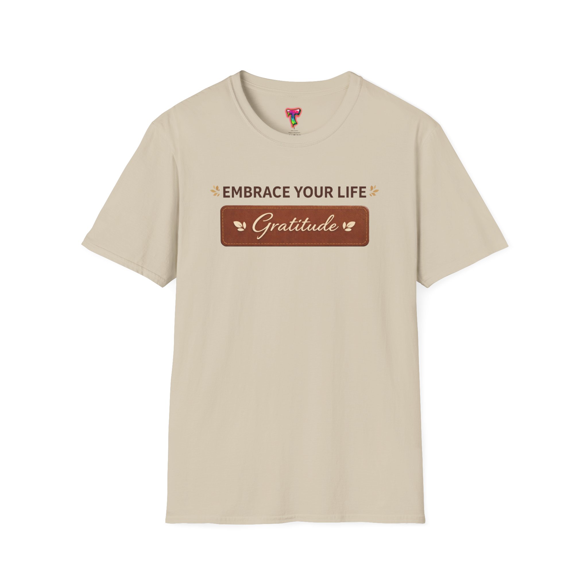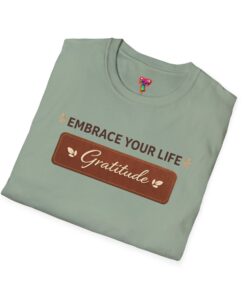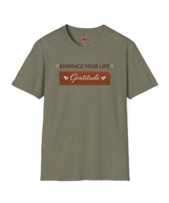 A soft, everyday tee that quietly invites calm and gratitude into your day. Lightweight ring-spun cotton drapes easily across the body while a neat crew neckline and classic fit keep the silhouette simple and wearable. The front design reads “Embrace Your Life — Gratitude” in warm, earthy tones, giving the shirt a gentle, grounded look that suits slow mornings, park walks, or evenings by a window with a cup of tea. It layers well under jackets or sits comfortably on its own when you want a low-key reminder to slow down and notice the small things.