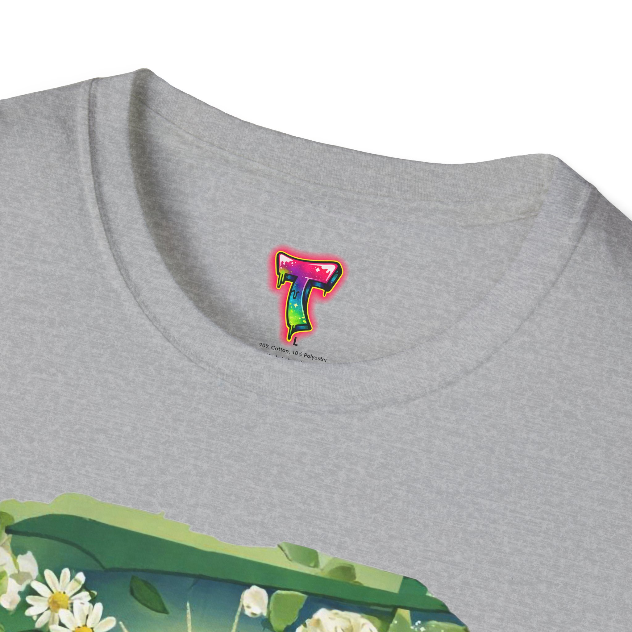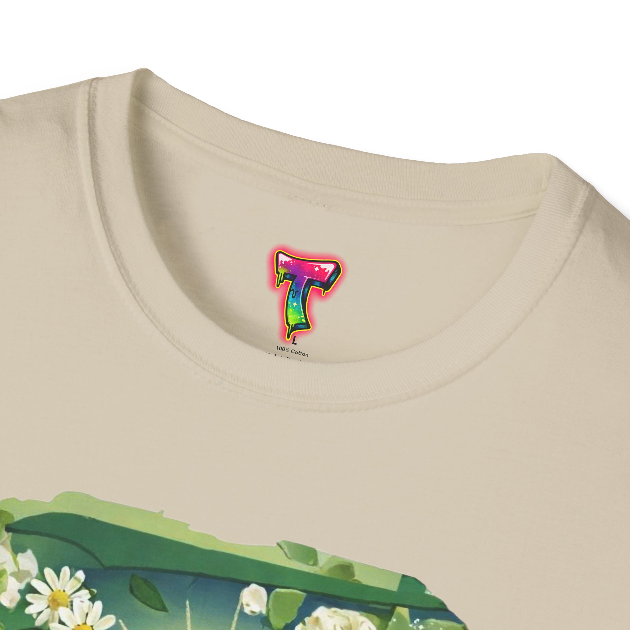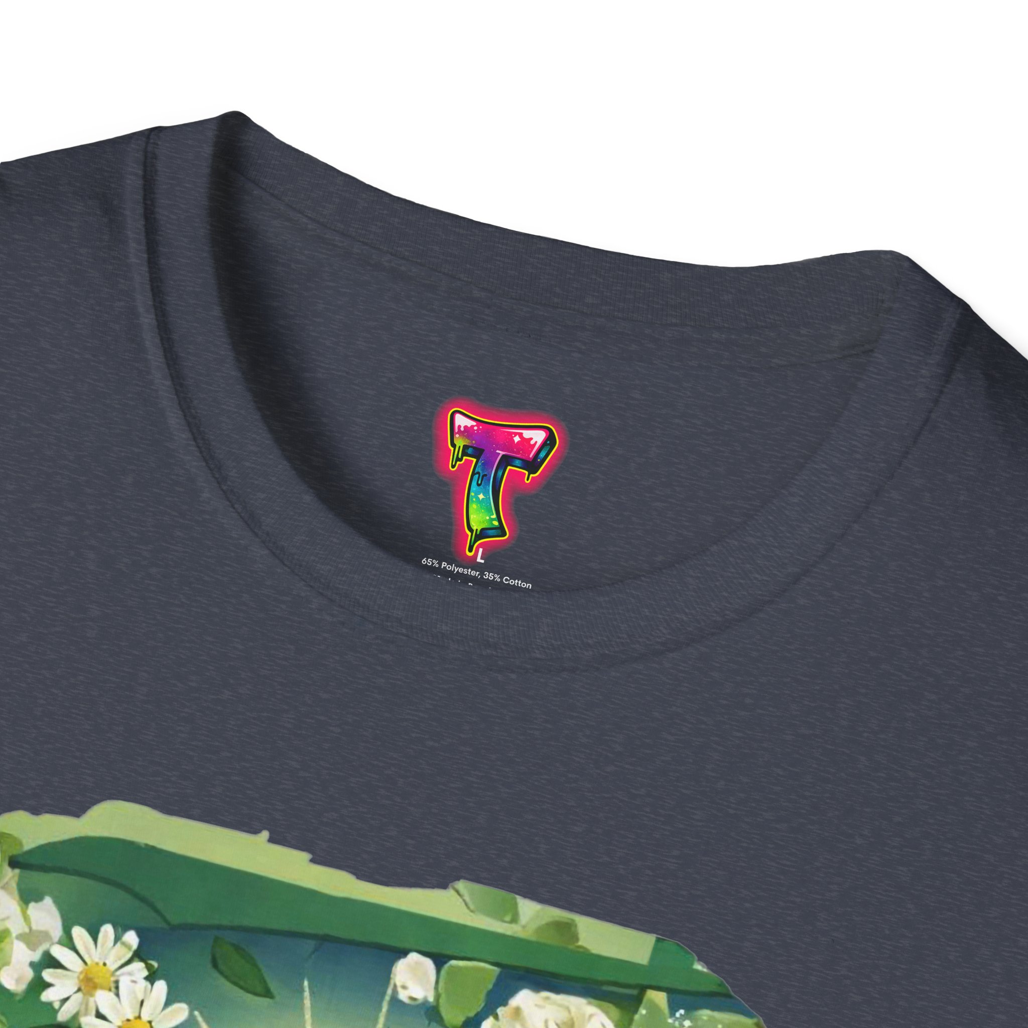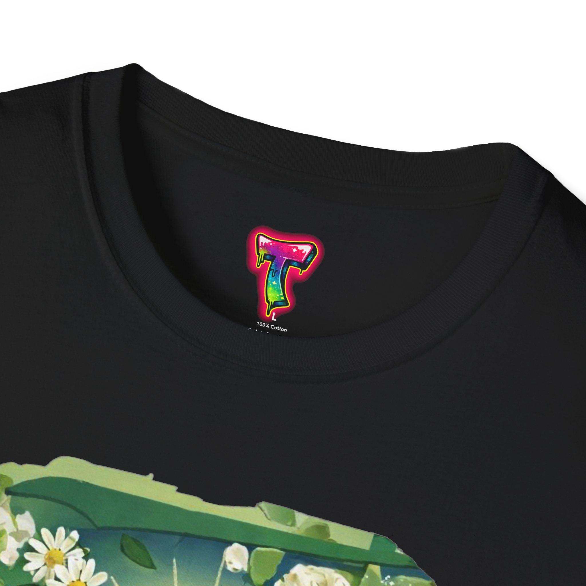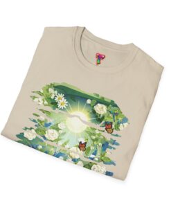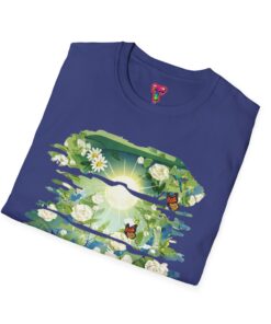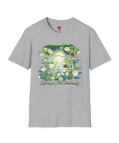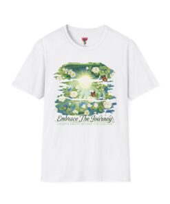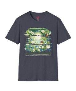 Breathe in a quiet moment: warm green light spilling across a pond, lilies floating like small islands, and a lone figure rowing toward a bright horizon. This lightweight tee carries a soft, painterly scene that reads like a small escape — thoughtful, hopeful, and calm. Wear it on slow mornings or during long drives when you need a gentle reminder that growth is patient and begins with a single stroke. The smooth ring-spun cotton feels effortless against skin, the ribbed collar holds its shape, and tear-away label keeps the back of your neck irritation-free. Subtle sleeve and neck prints are applied with high-quality DTF/DTG techniques for crisp color that sits beautifully on dark fabric.