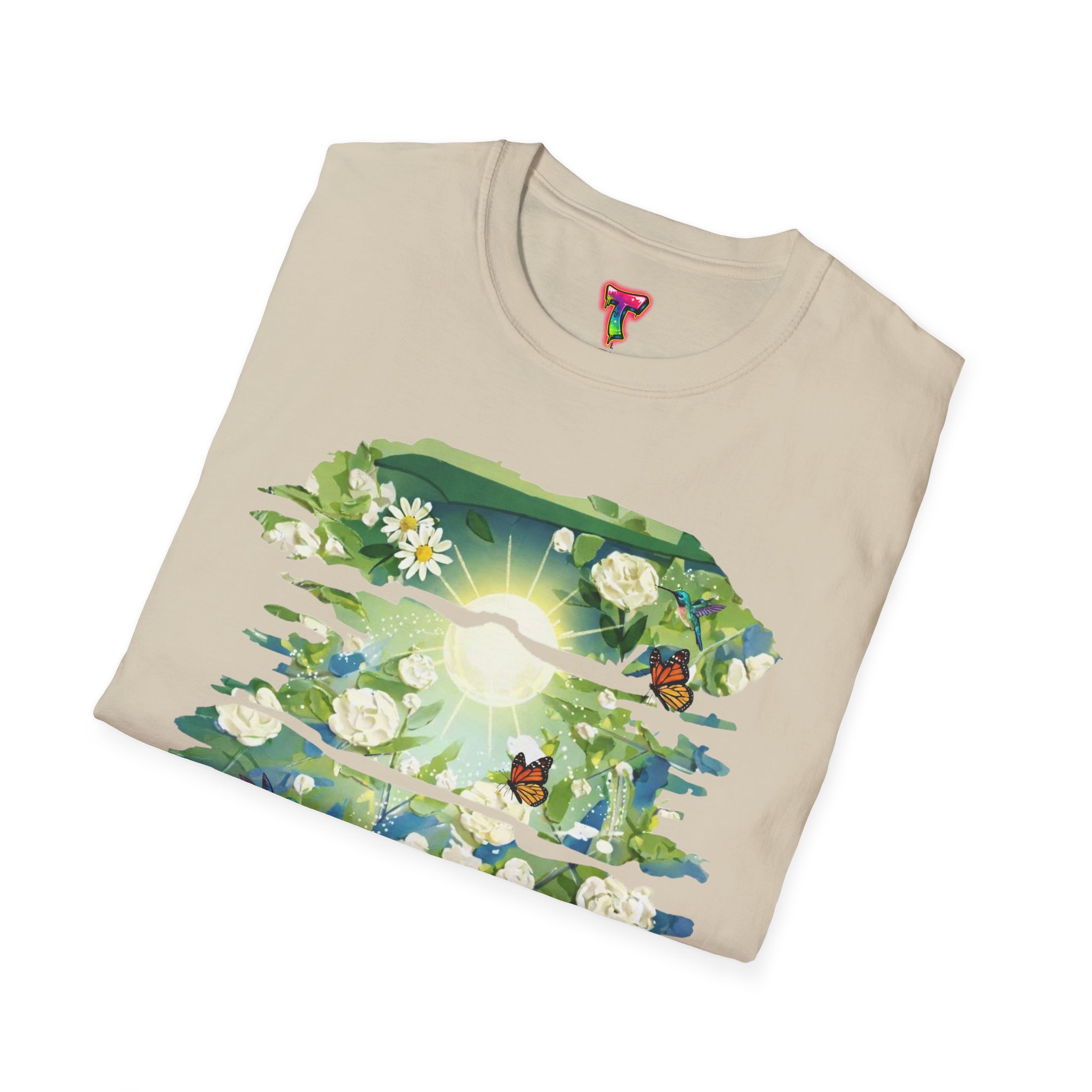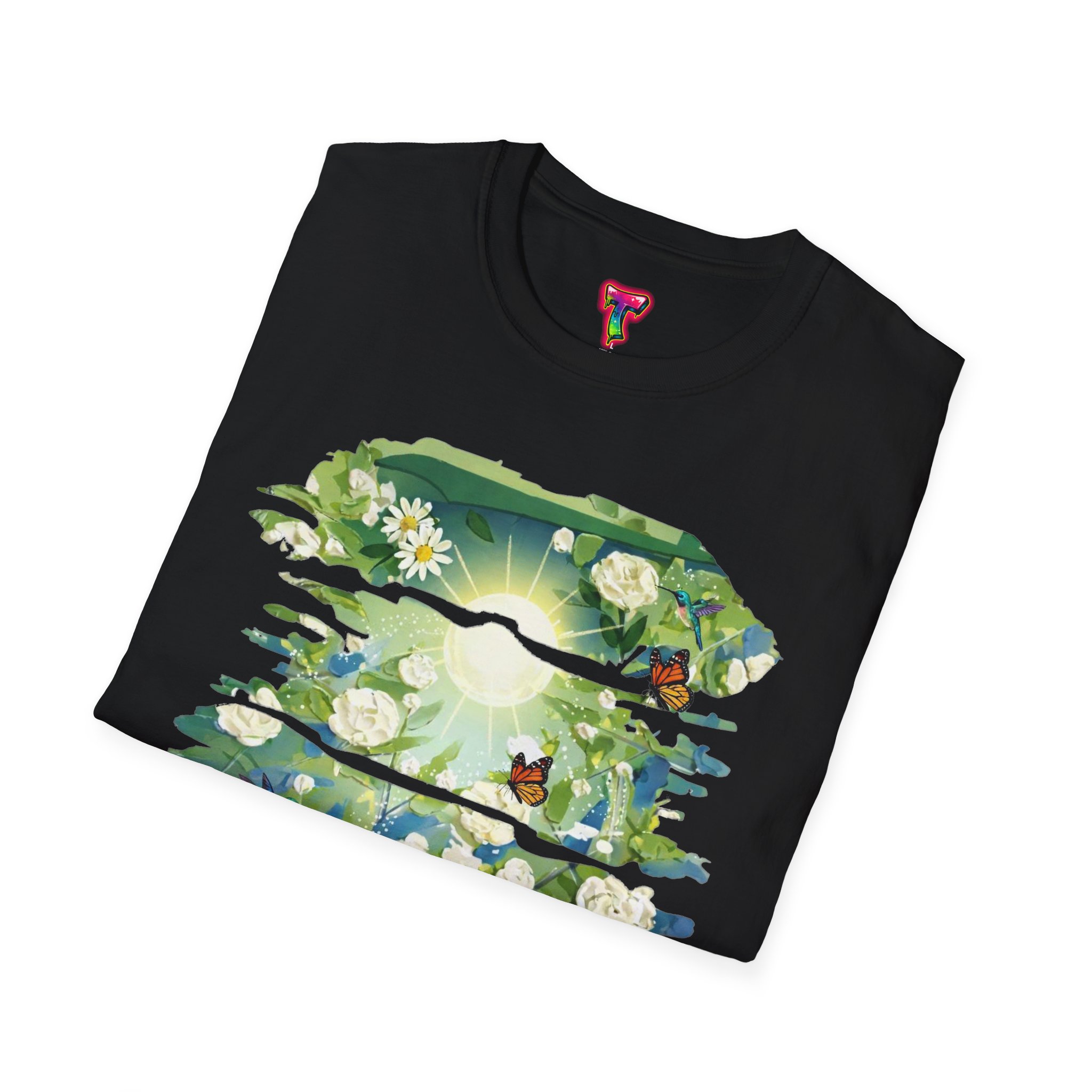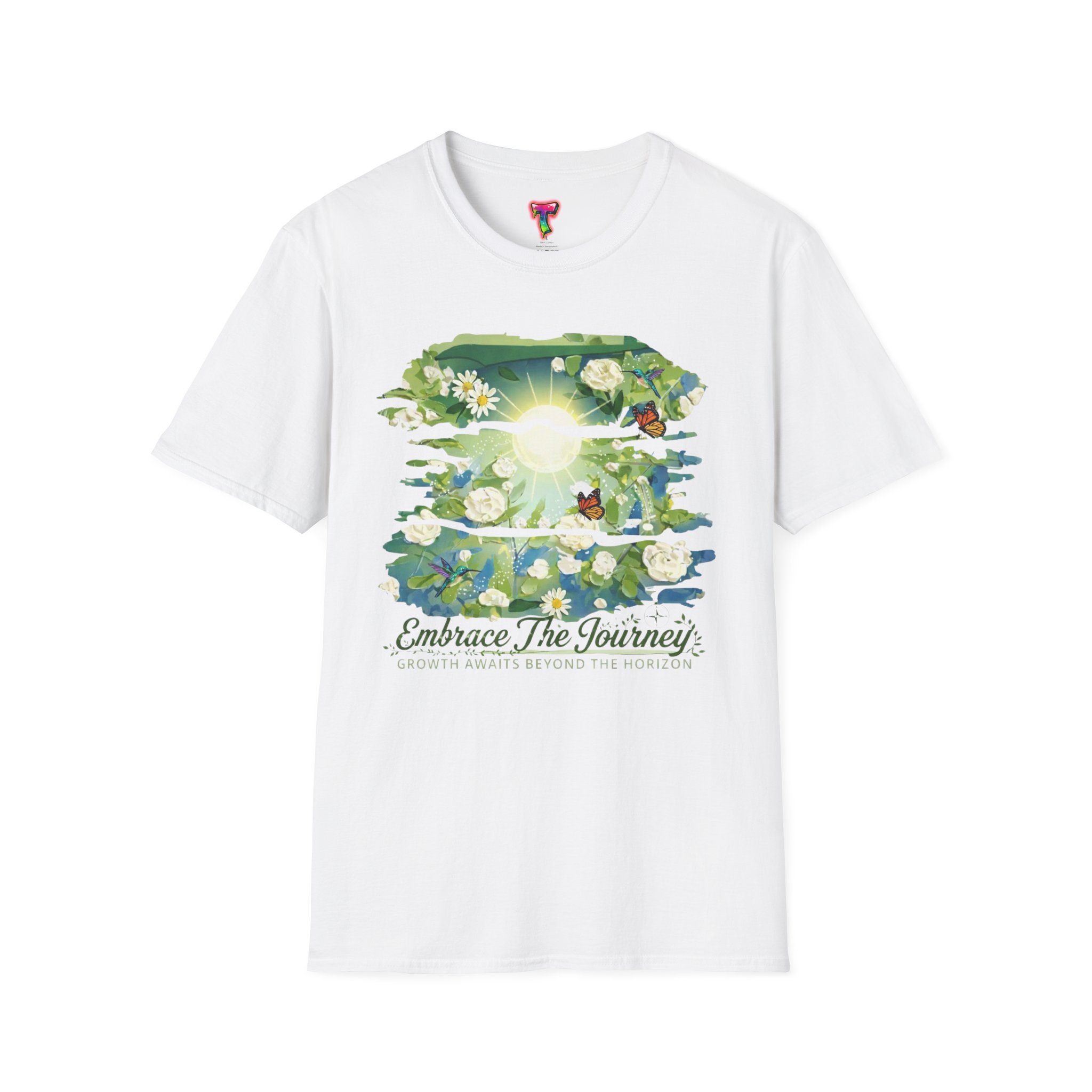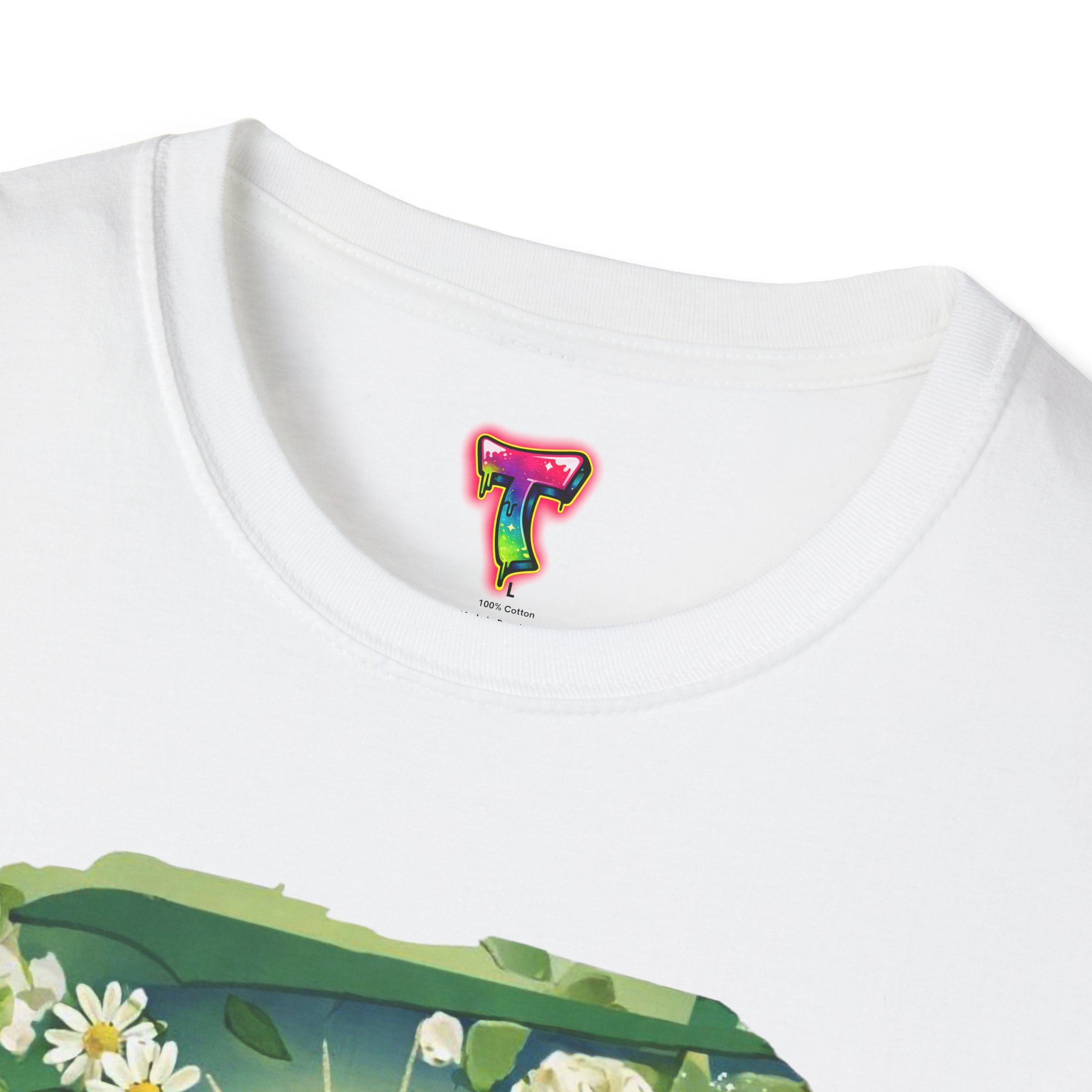 Breathe in a quiet moment: warm green light spilling across a pond, lilies floating like small islands, and a lone figure rowing toward a bright horizon. This lightweight tee carries a soft, painterly scene that reads like a small escape — thoughtful, hopeful, and calm. Wear it on slow mornings or during long drives when you need a gentle reminder that growth is patient and begins with a single stroke. The smooth ring-spun cotton feels effortless against skin, the ribbed collar holds its shape, and tear-away label keeps the back of your neck irritation-free. Subtle sleeve and neck prints are applied with high-quality DTF/DTG techniques for crisp color that sits beautifully on dark fabric.