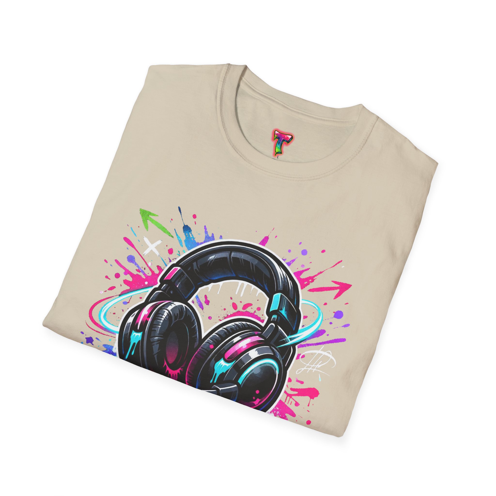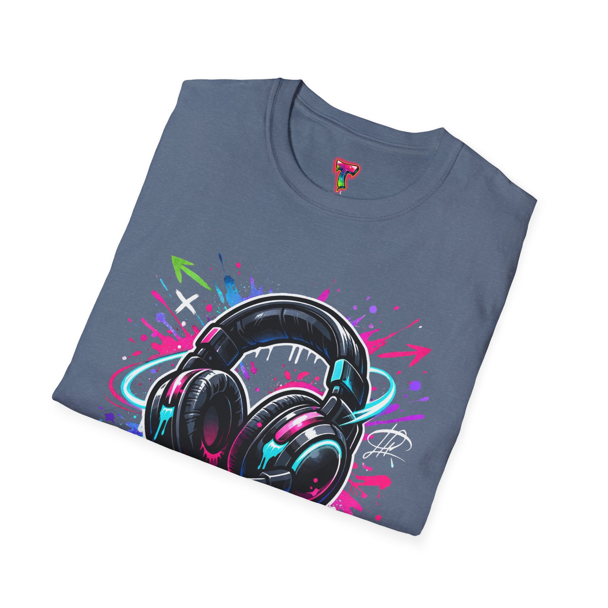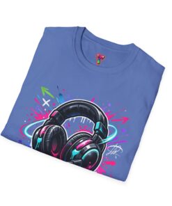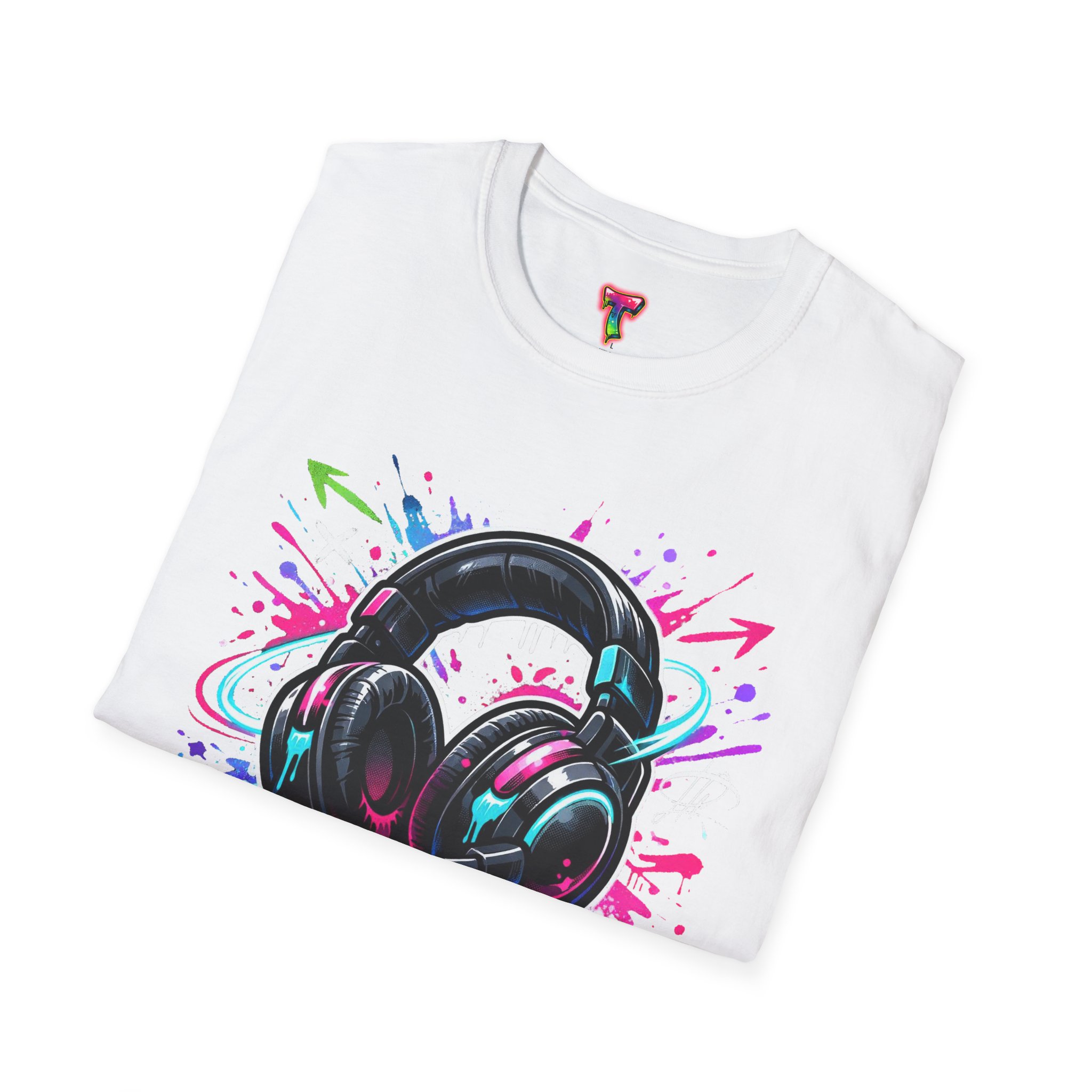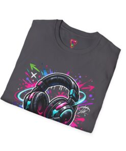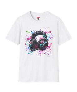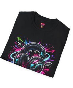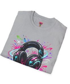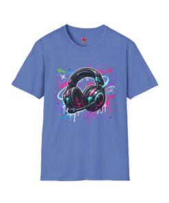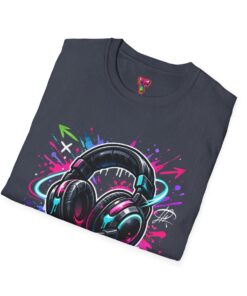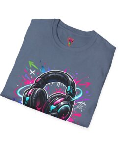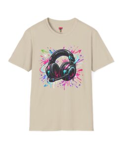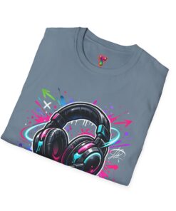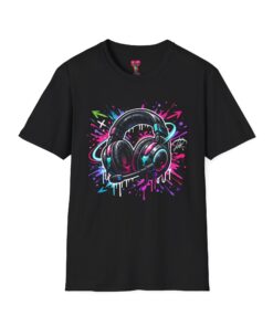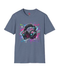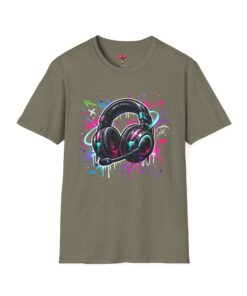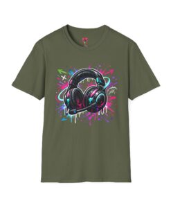 Feel the rhythm with this stylish headphone graphic tee featuring vibrant neon splashes, glossy audio gear artwork, and urban street-art energy. A perfect design for music lovers, DJs, producers, and anyone who lives through sound. Bold, modern, and expressive—this shirt brings music culture and streetwear fashion together in one standout look