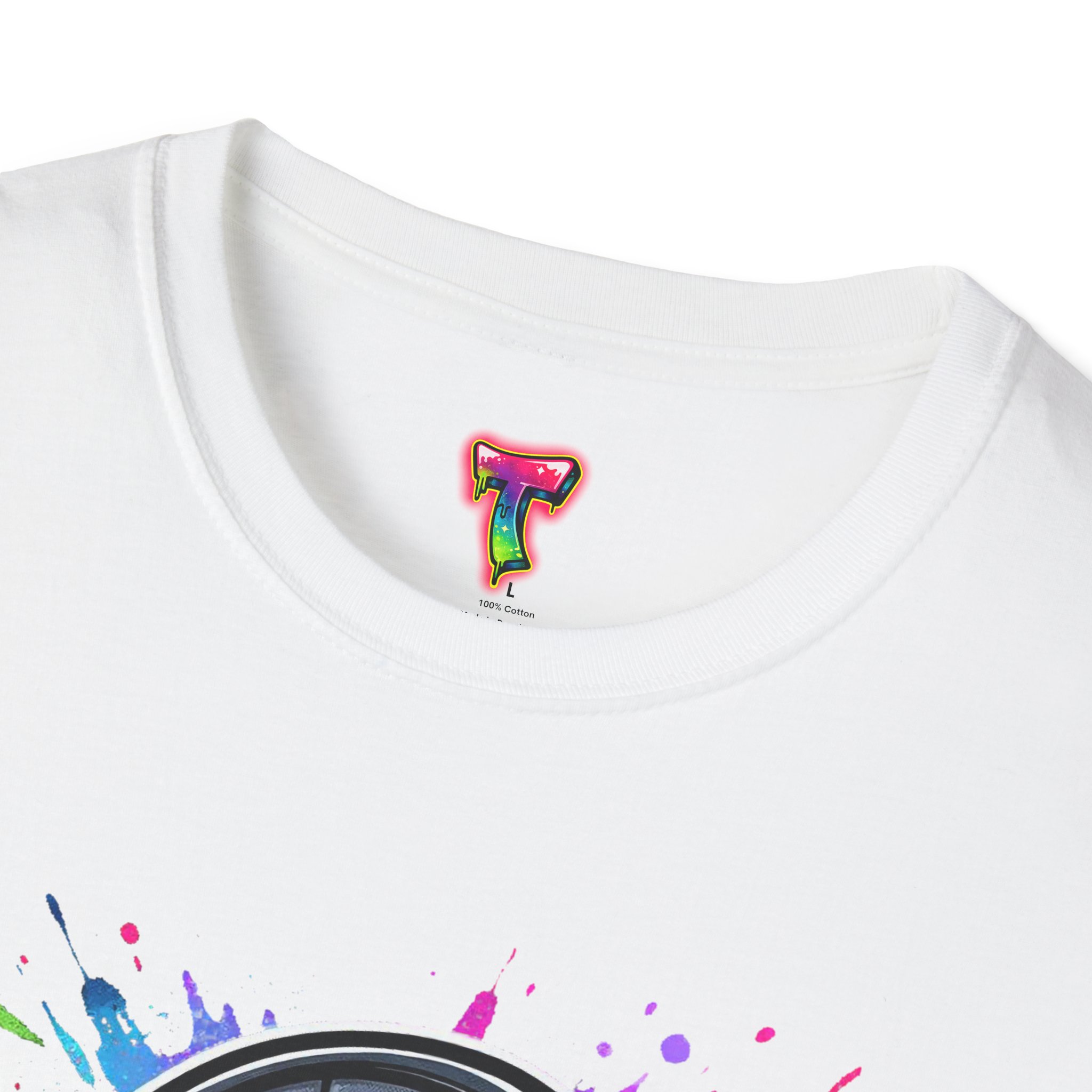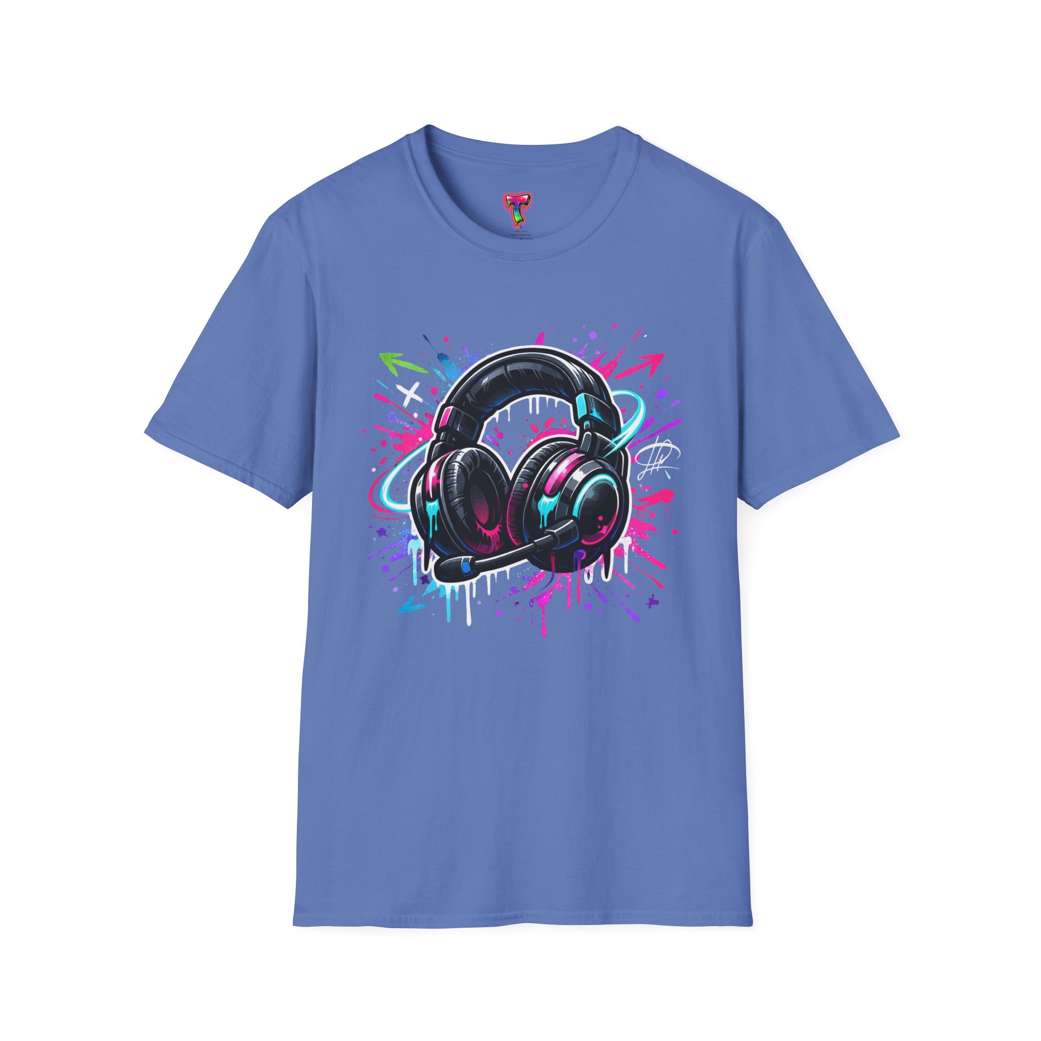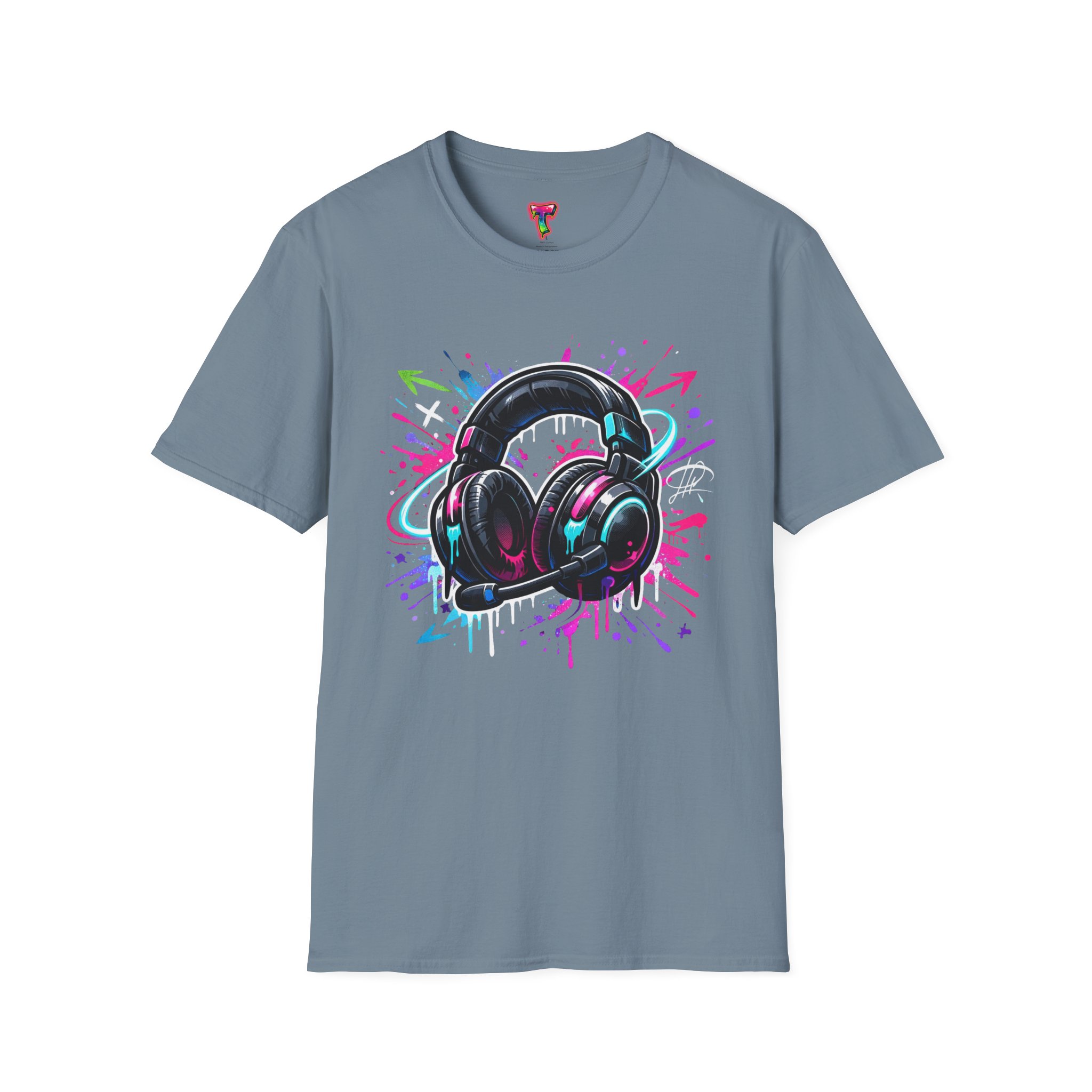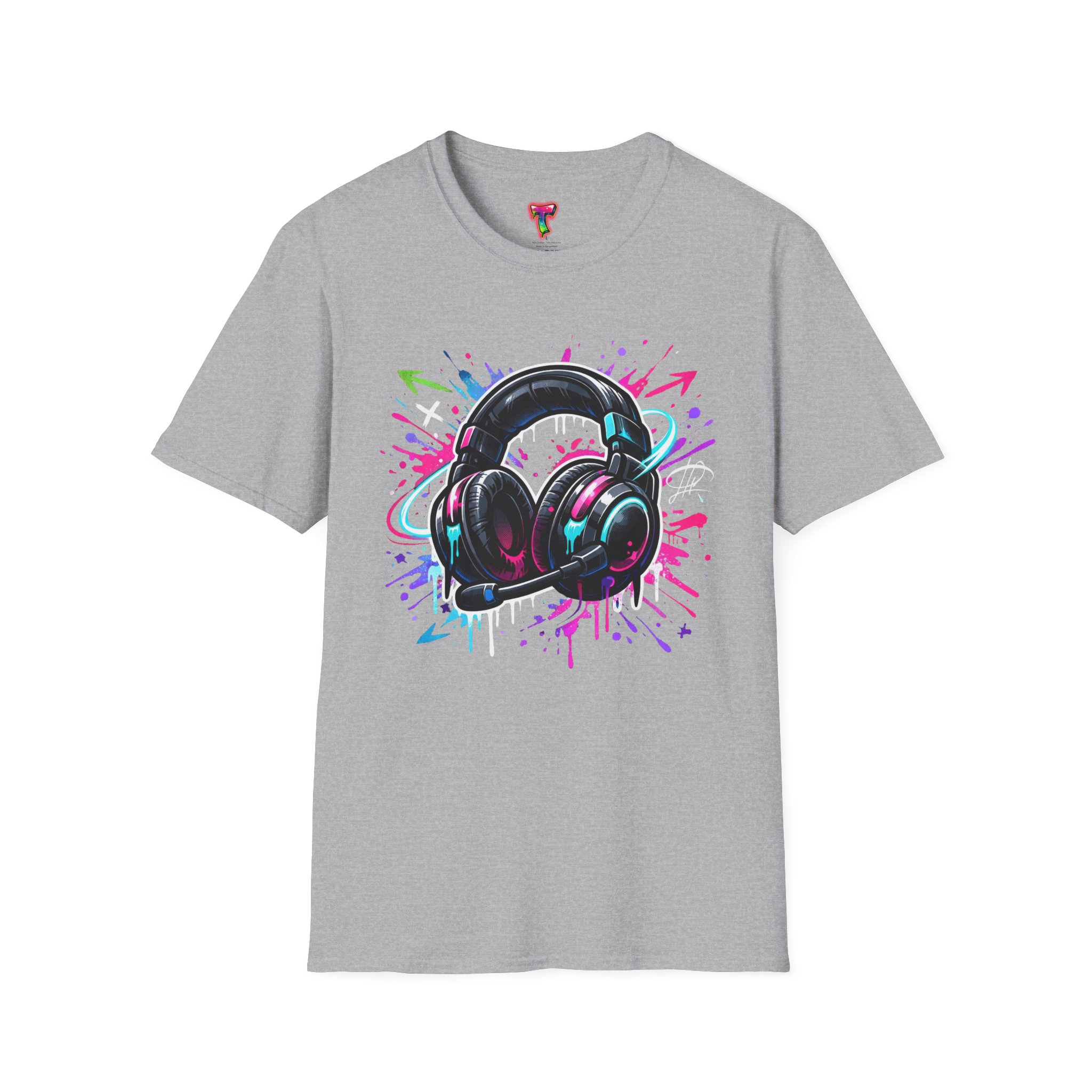 Feel the rhythm with this stylish headphone graphic tee featuring vibrant neon splashes, glossy audio gear artwork, and urban street-art energy. A perfect design for music lovers, DJs, producers, and anyone who lives through sound. Bold, modern, and expressive—this shirt brings music culture and streetwear fashion together in one standout look
